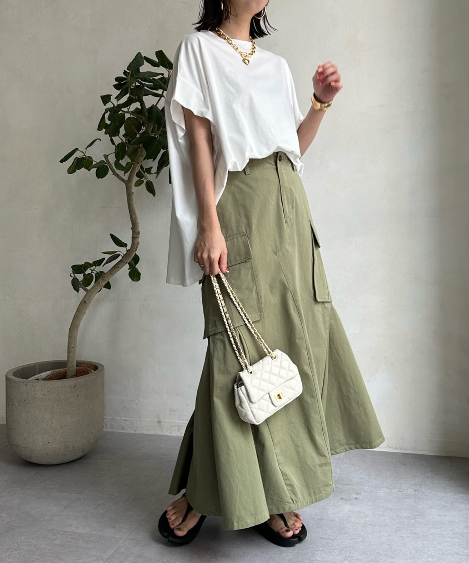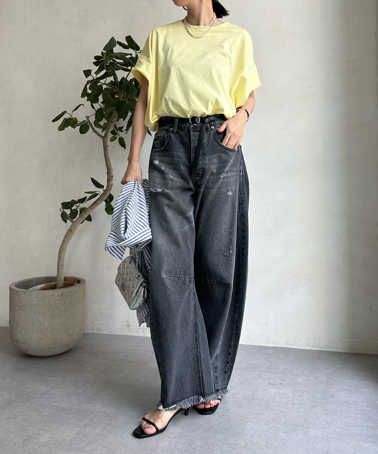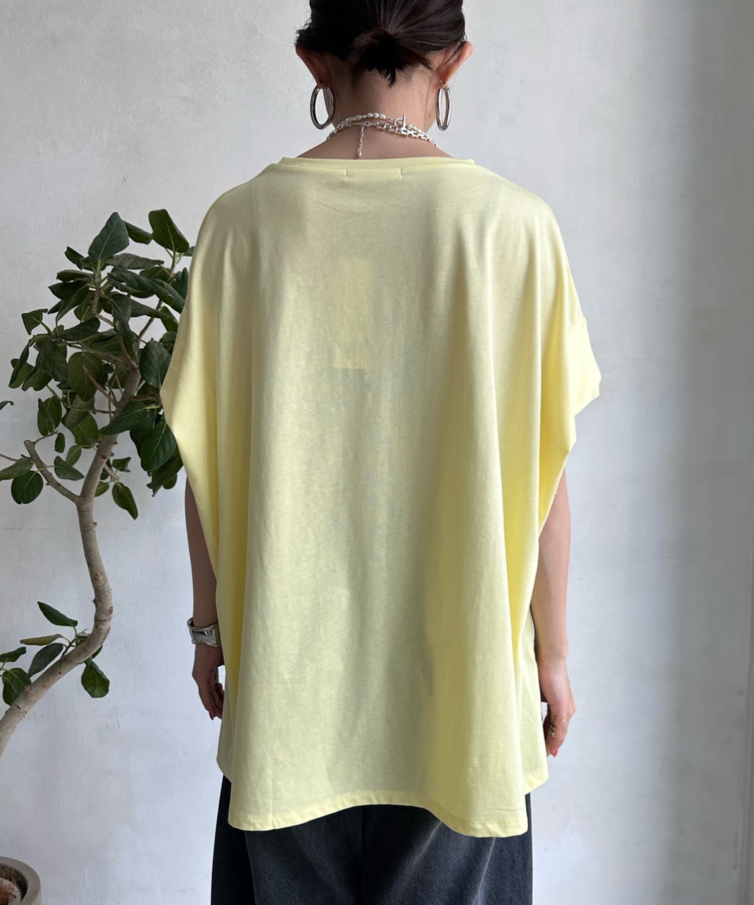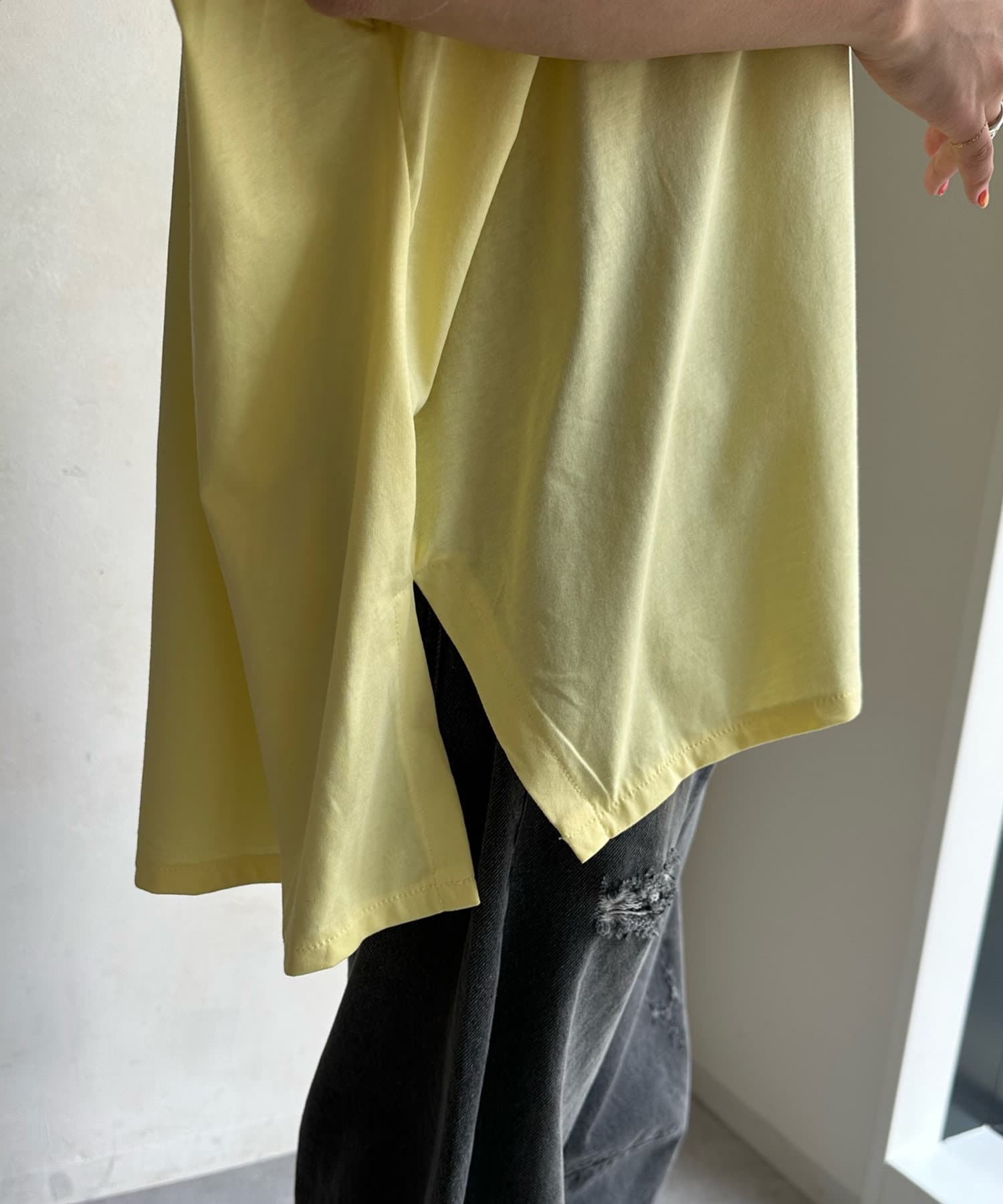 ボディラインを拾わないオーバーサイズで、綿100%とリラクシーな着心地なのもおすすめポイント〇