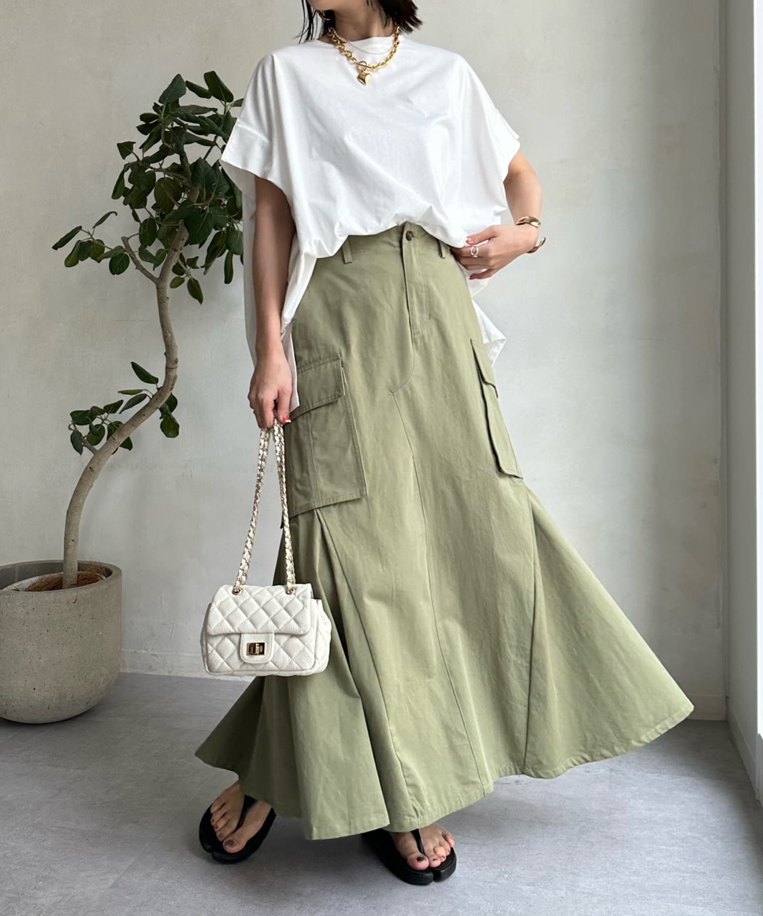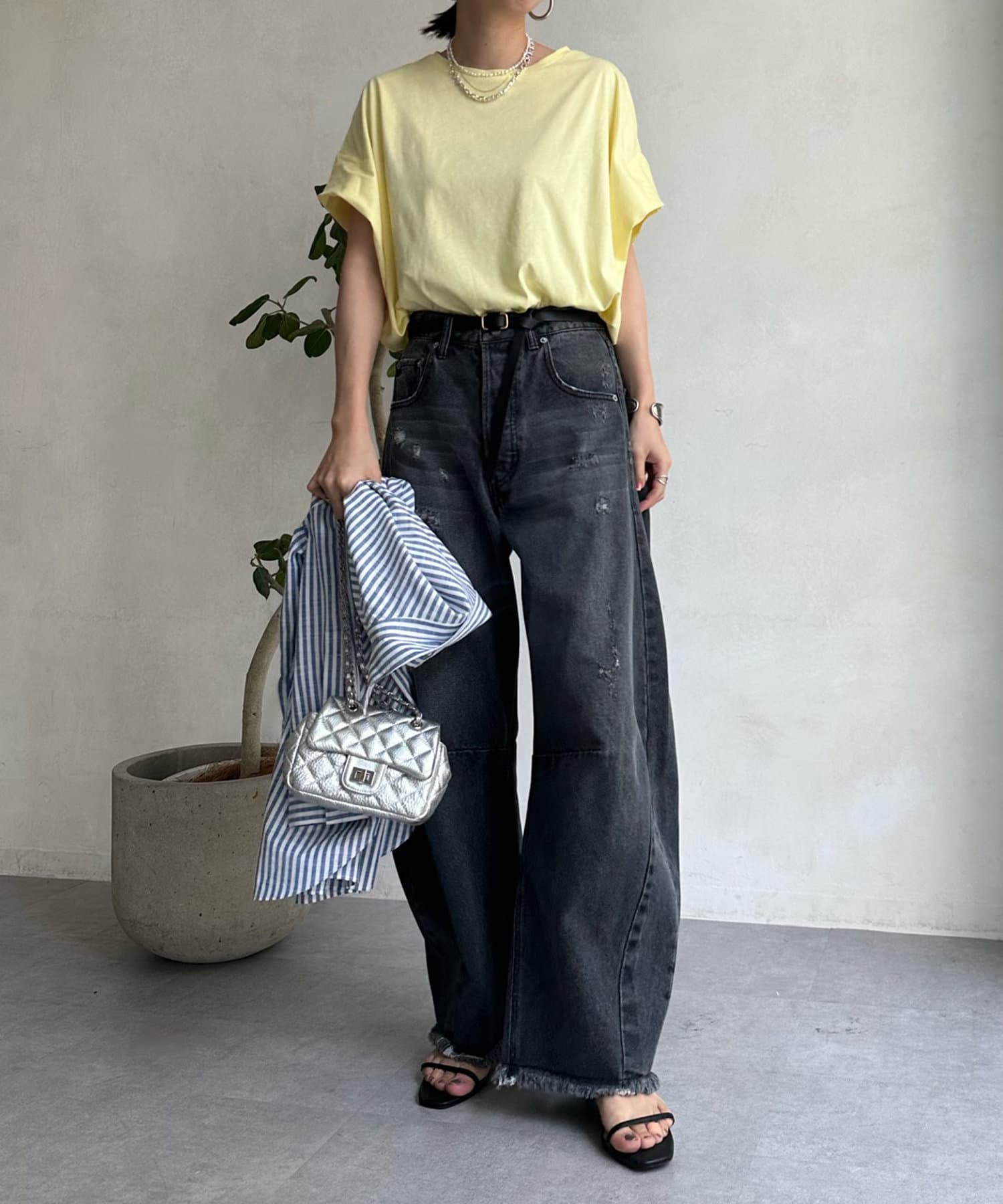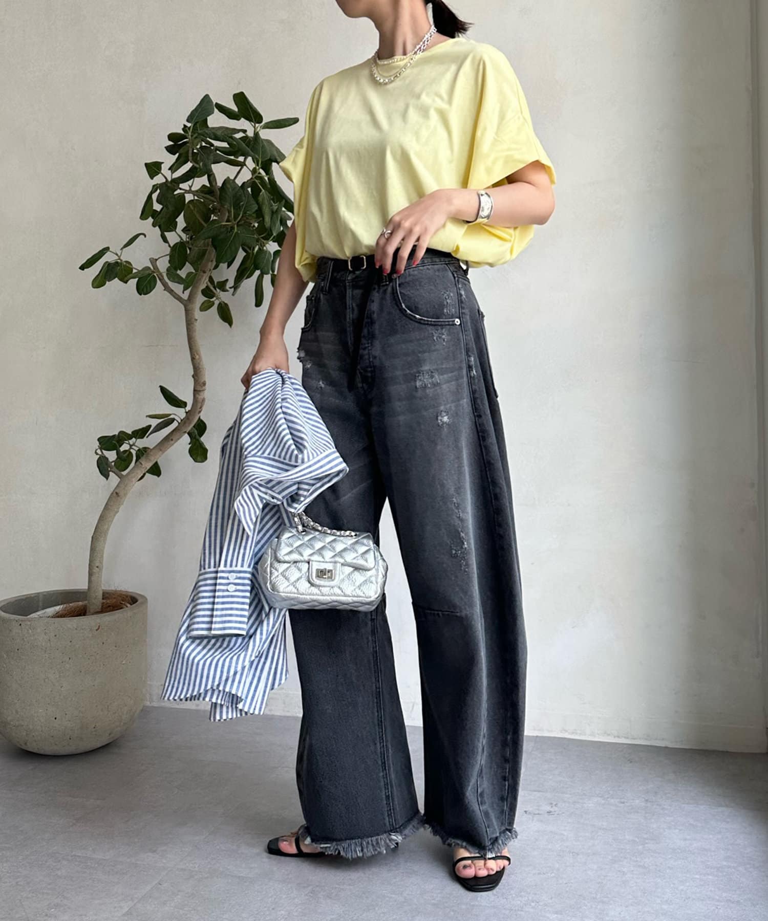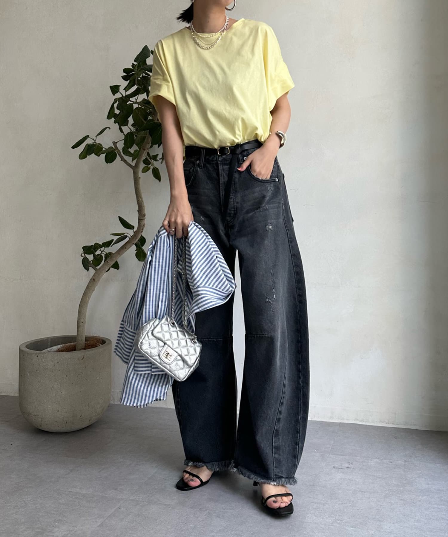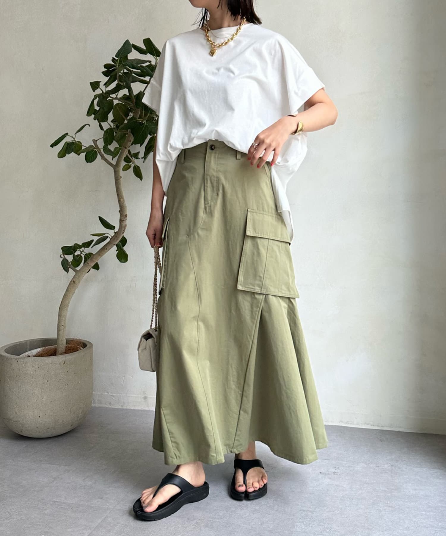 ボディラインを拾わないオーバーサイズで、綿100%とリラクシーな着心地なのもおすすめポイント〇