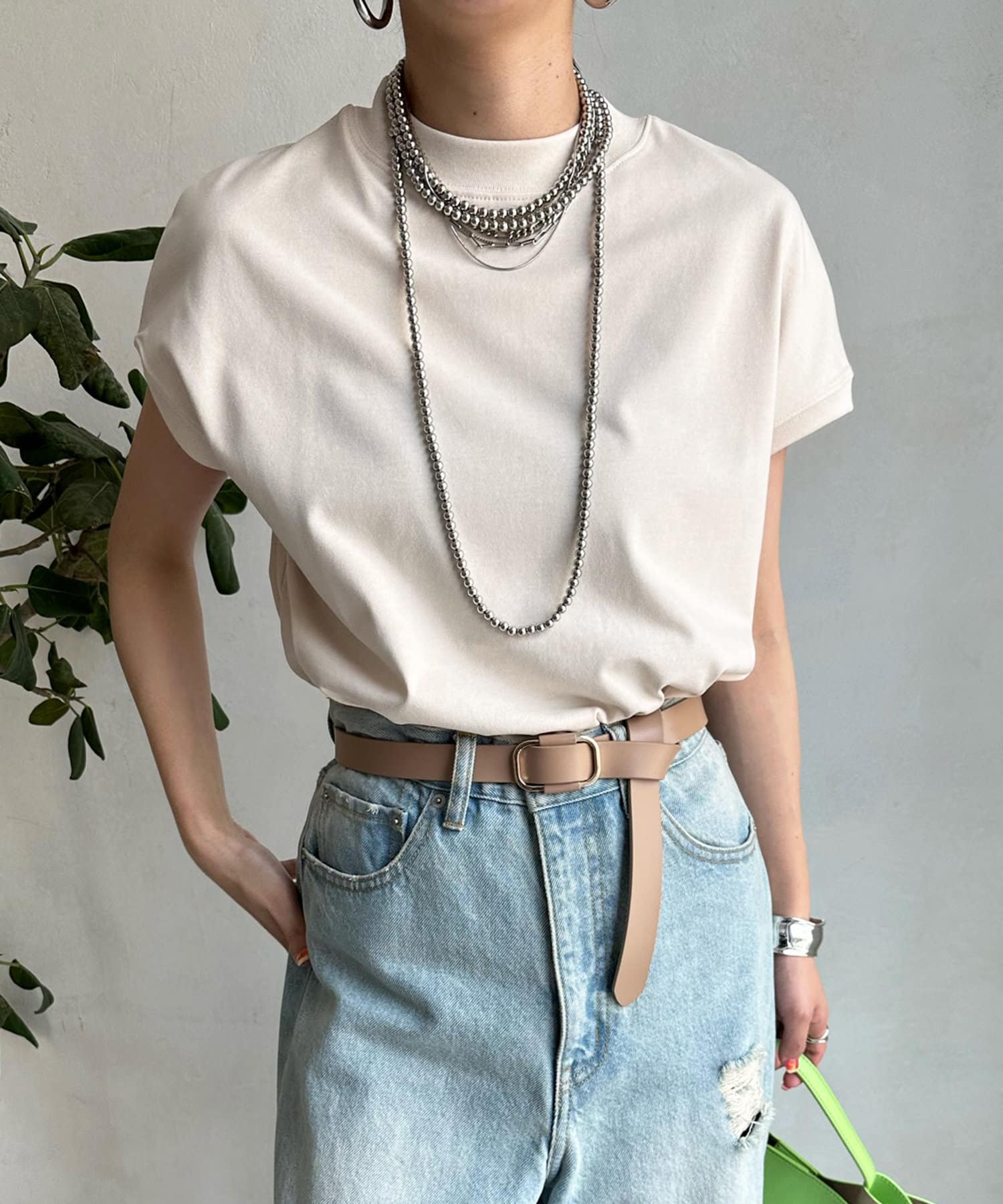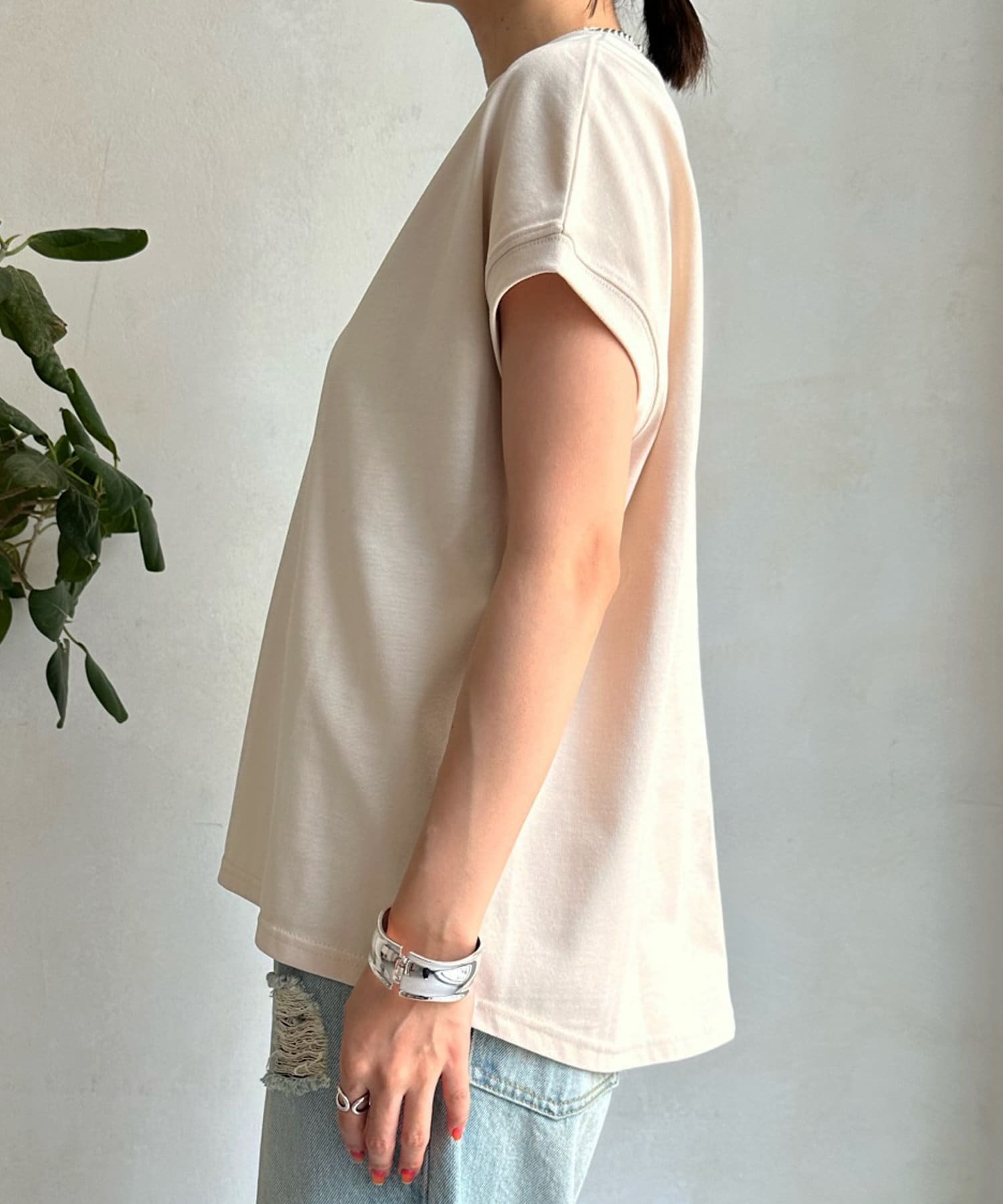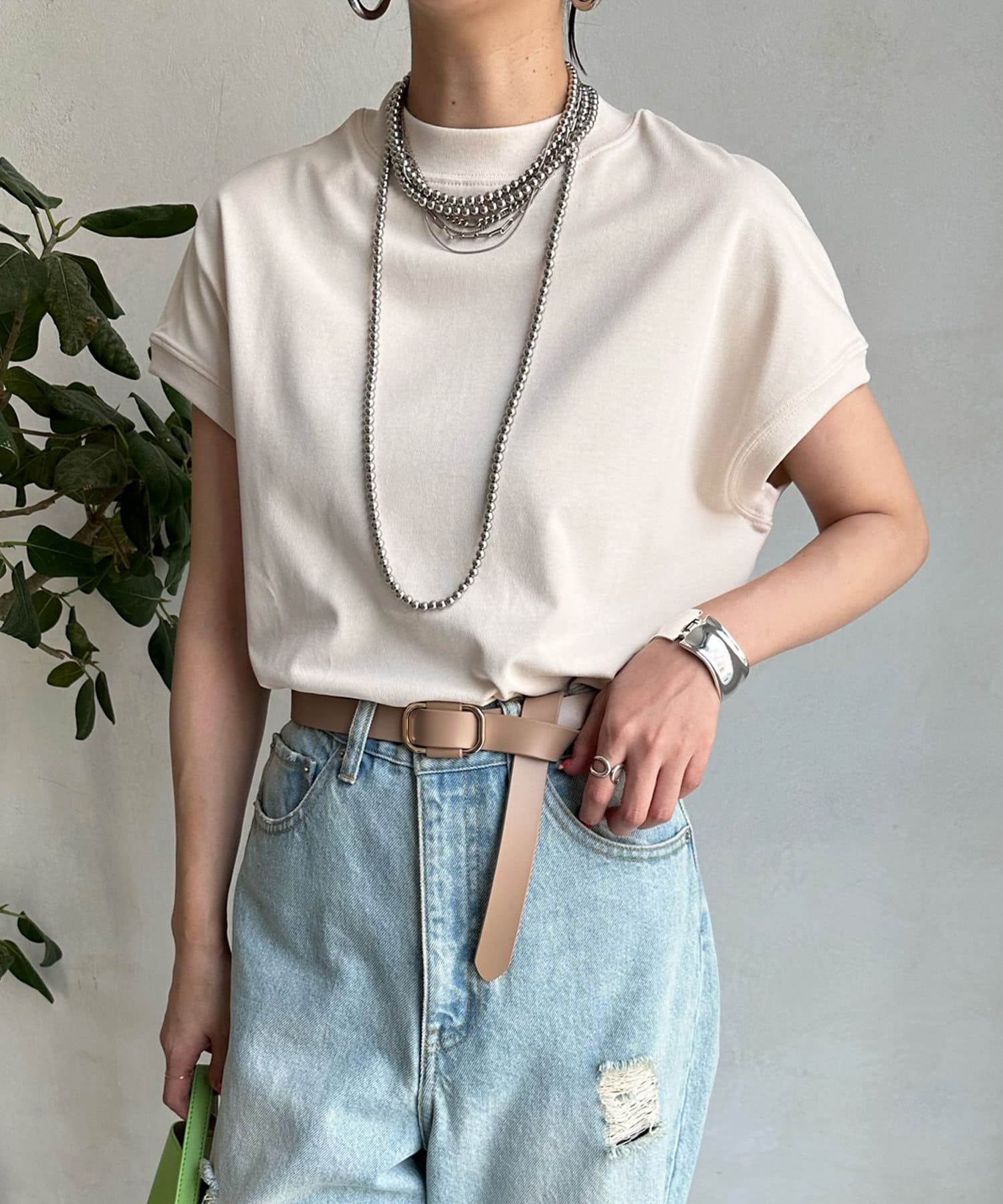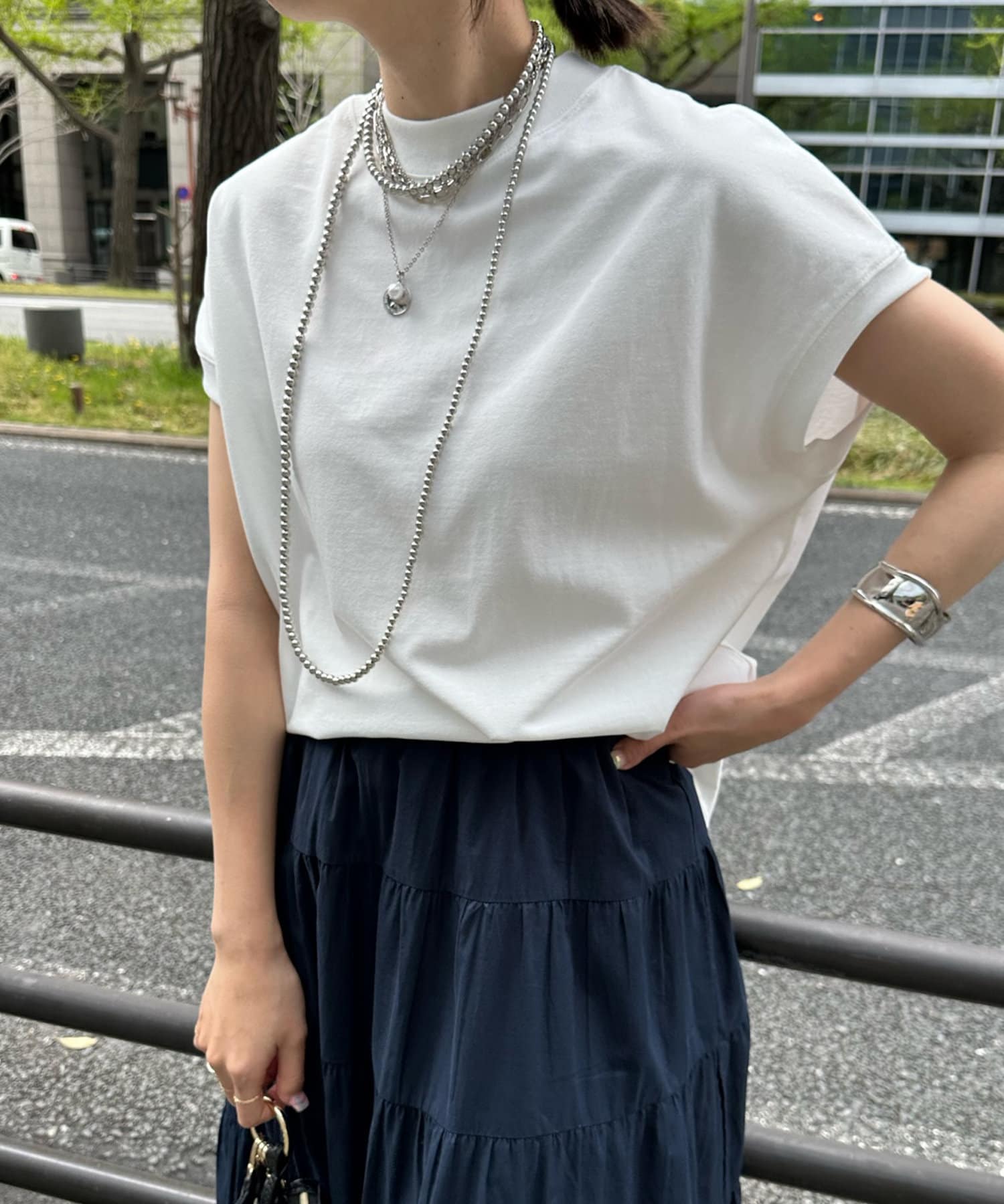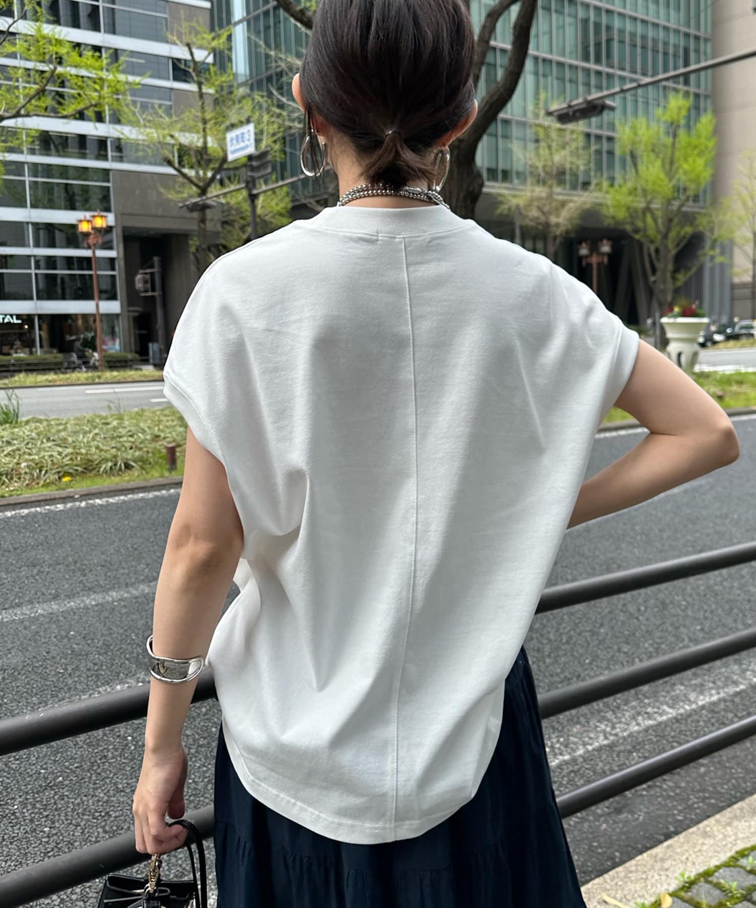 袖丈が二の腕をさり気なくカバーし、すっきりと見せてくれる1枚。