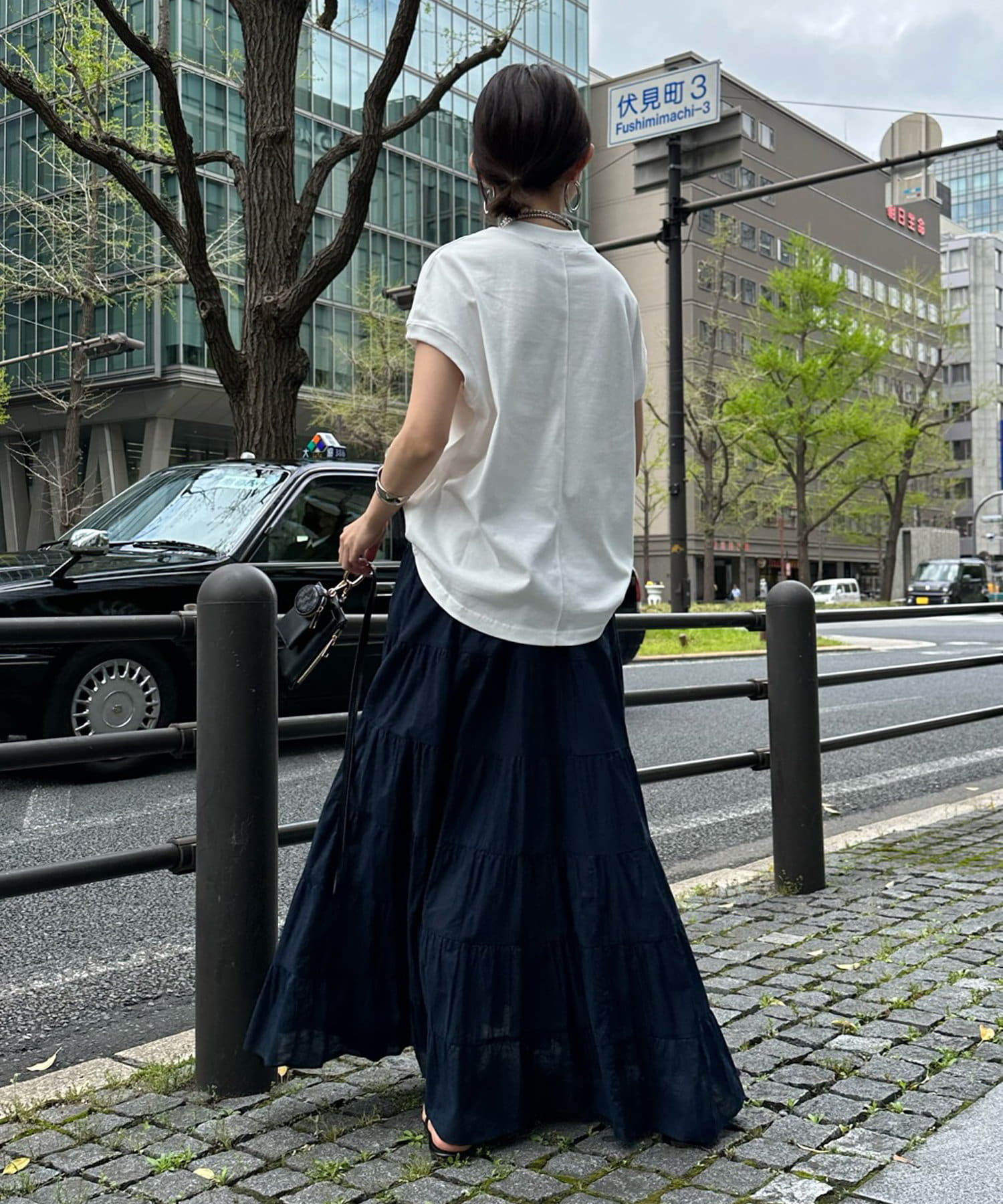 気になる腰回りもふんわりとカバーしてくれる、程よい丈感もうれしいポイントです。