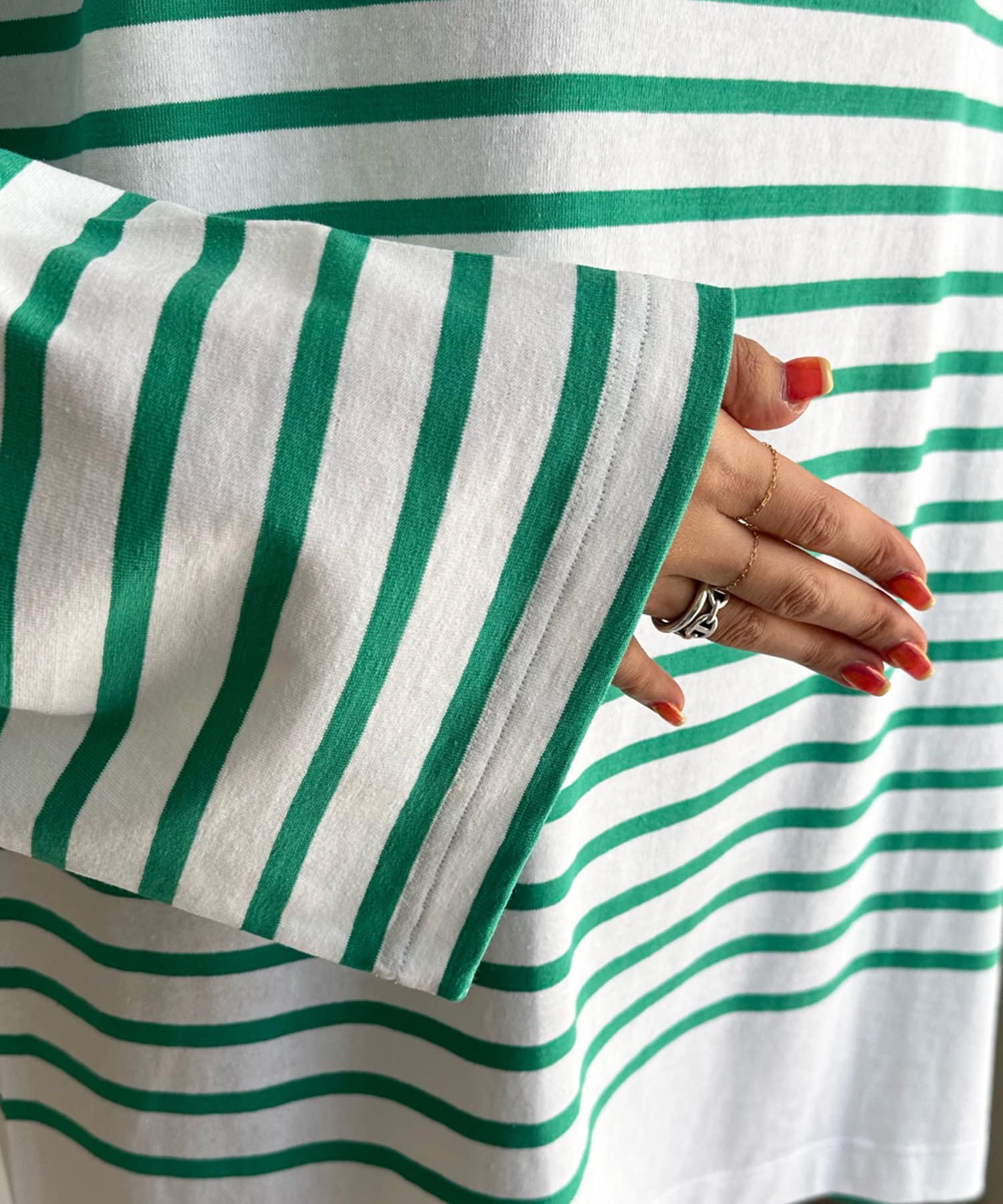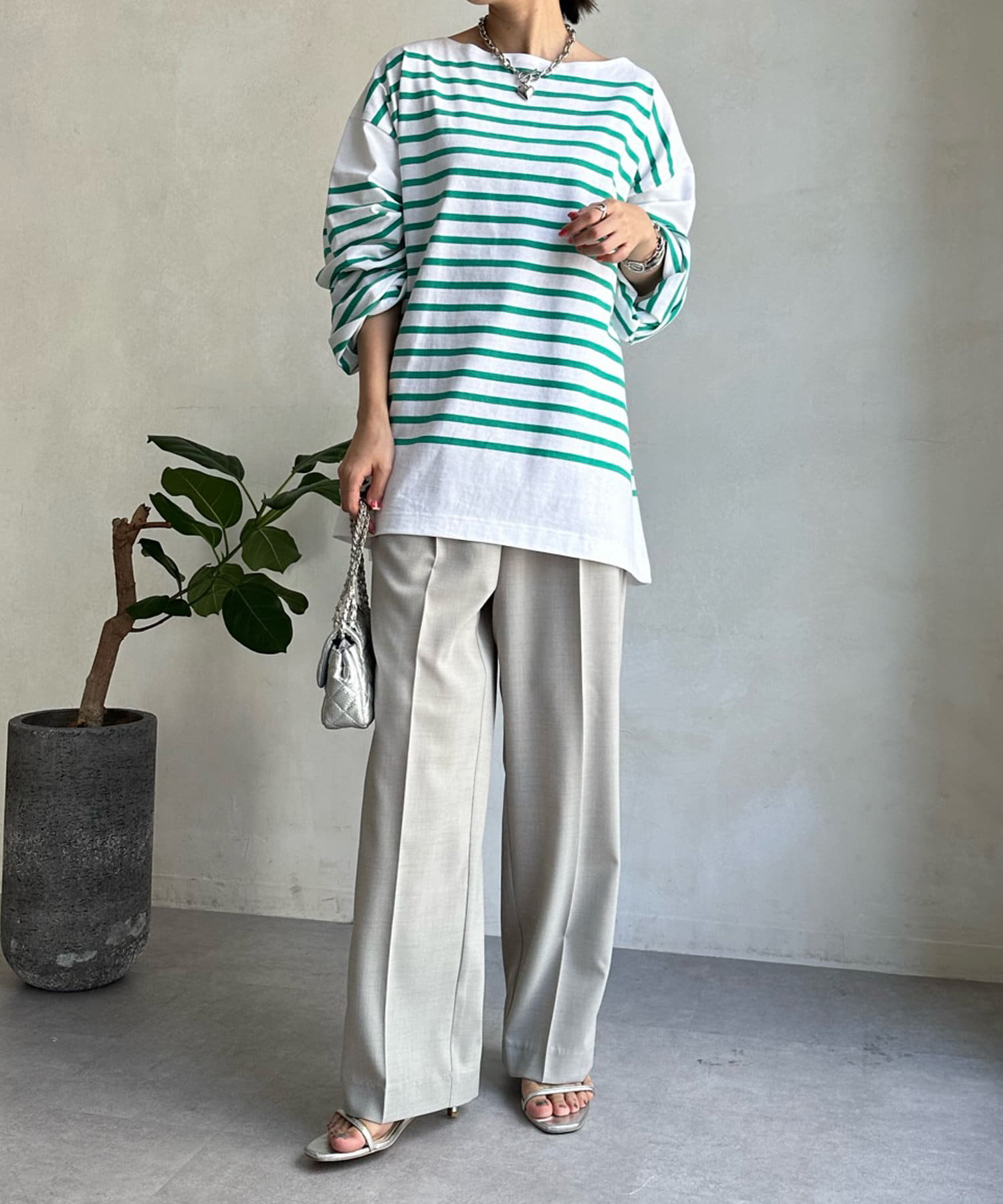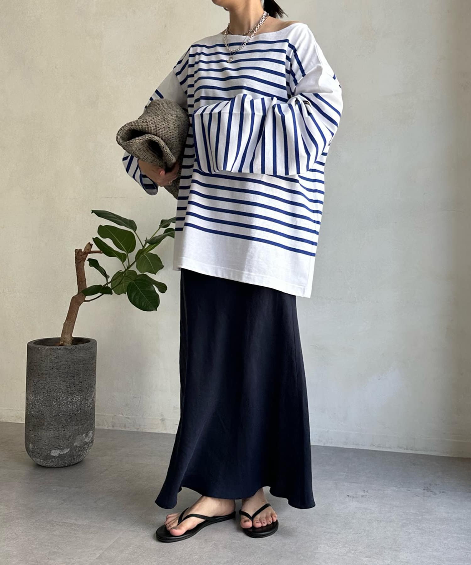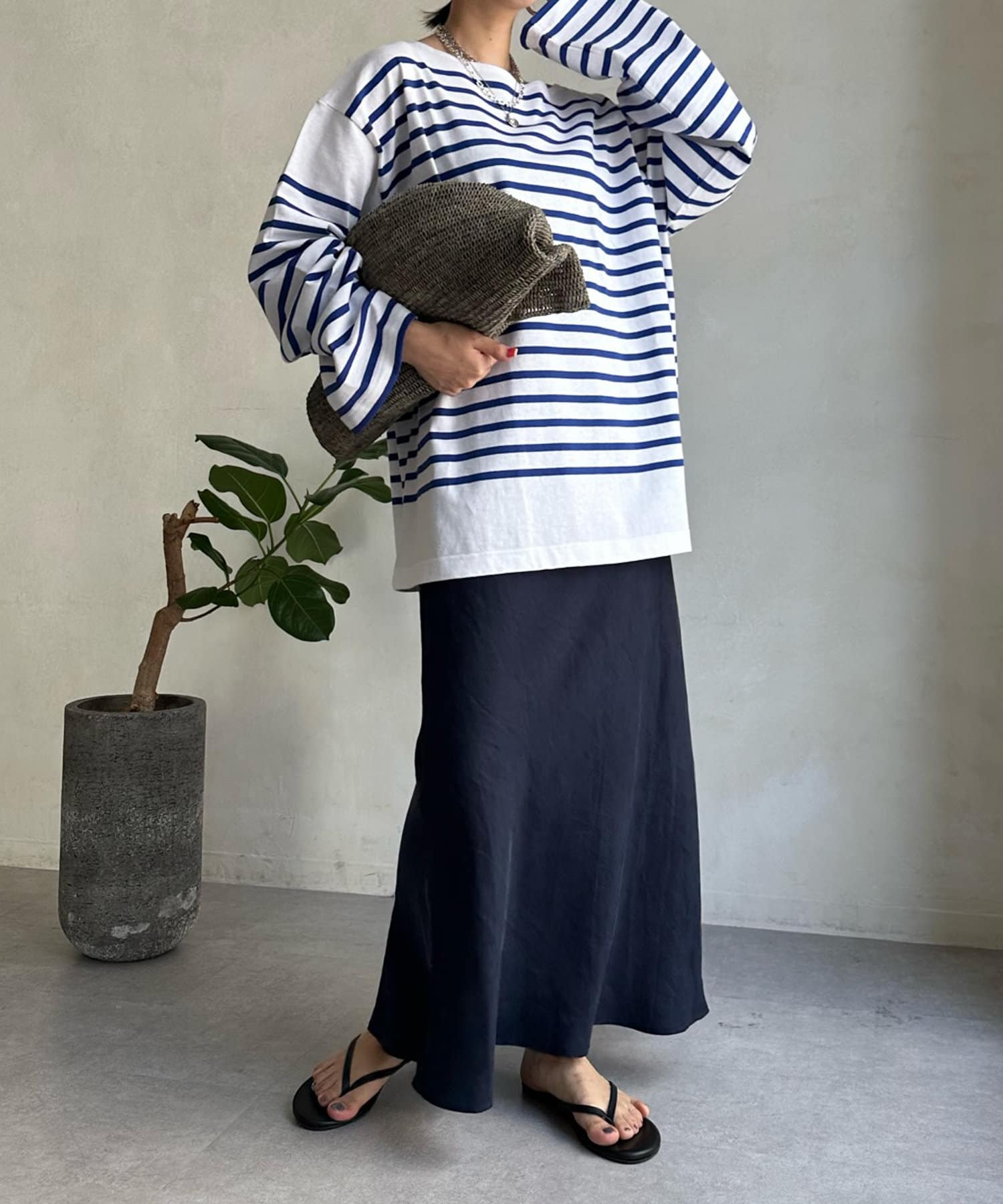定番に着こなせるボーダーアイテムは何枚持っていても万能に活躍してくれるアイテムです。