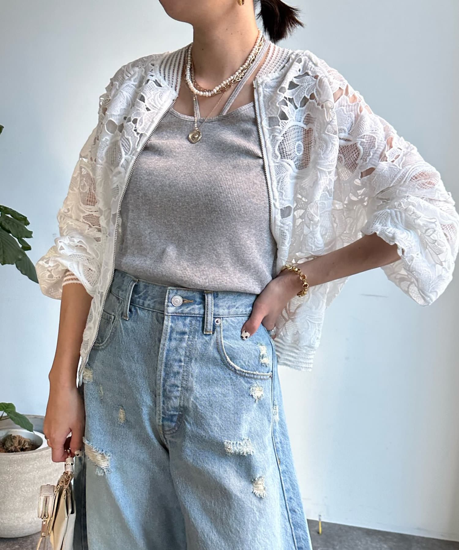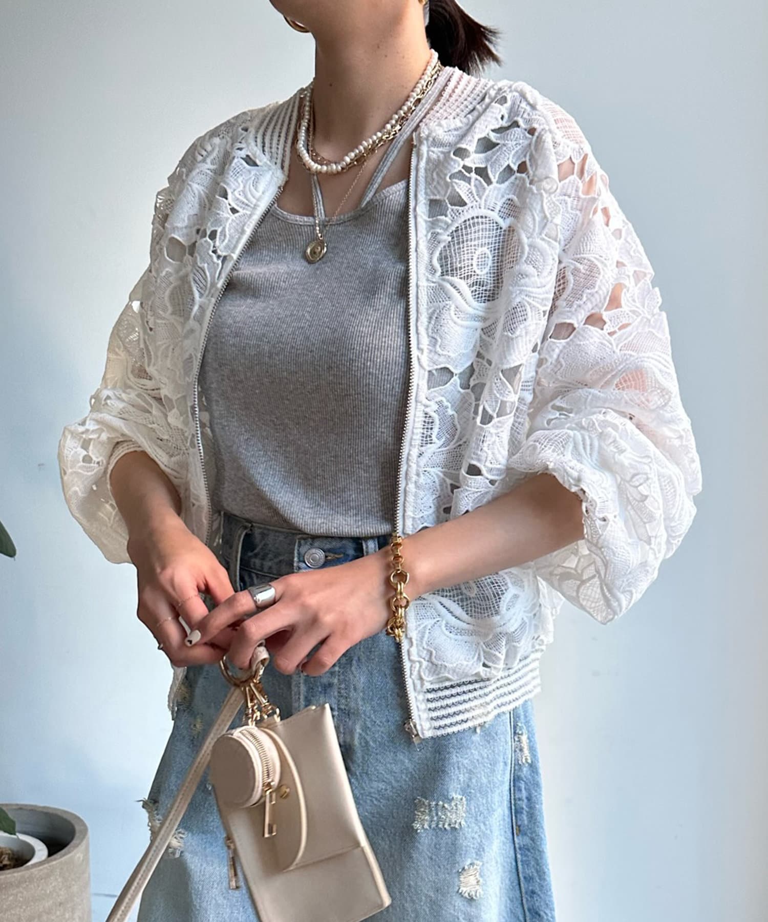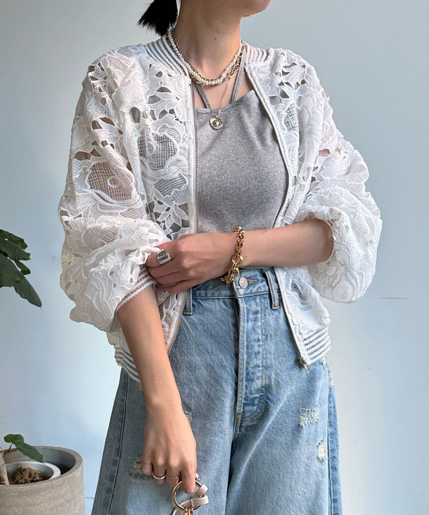 カジュアルなブルゾンディティールですが、レースデザインが綺麗めスタイルにも馴染むので、カジュアルなアイテムが苦手な方にも取り入れて頂きやすいアイテム。