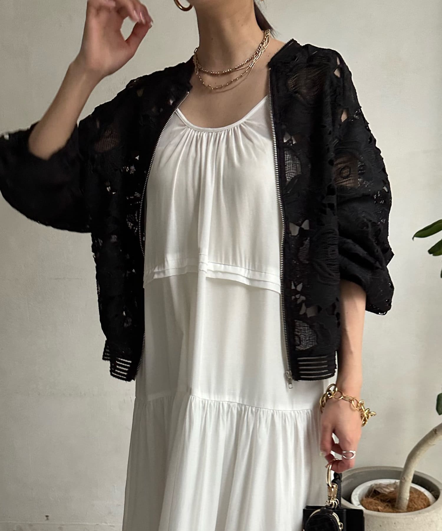 綺麗めにもカジュアルにもはまるレースブルゾン!