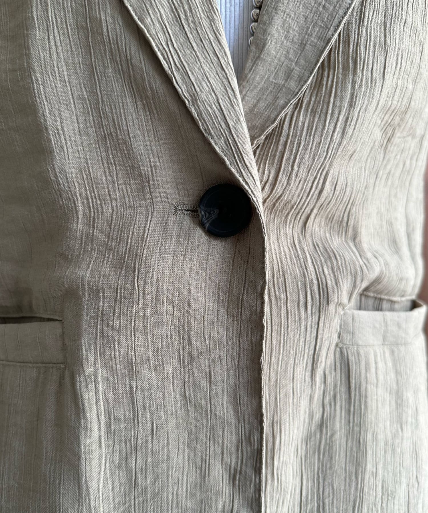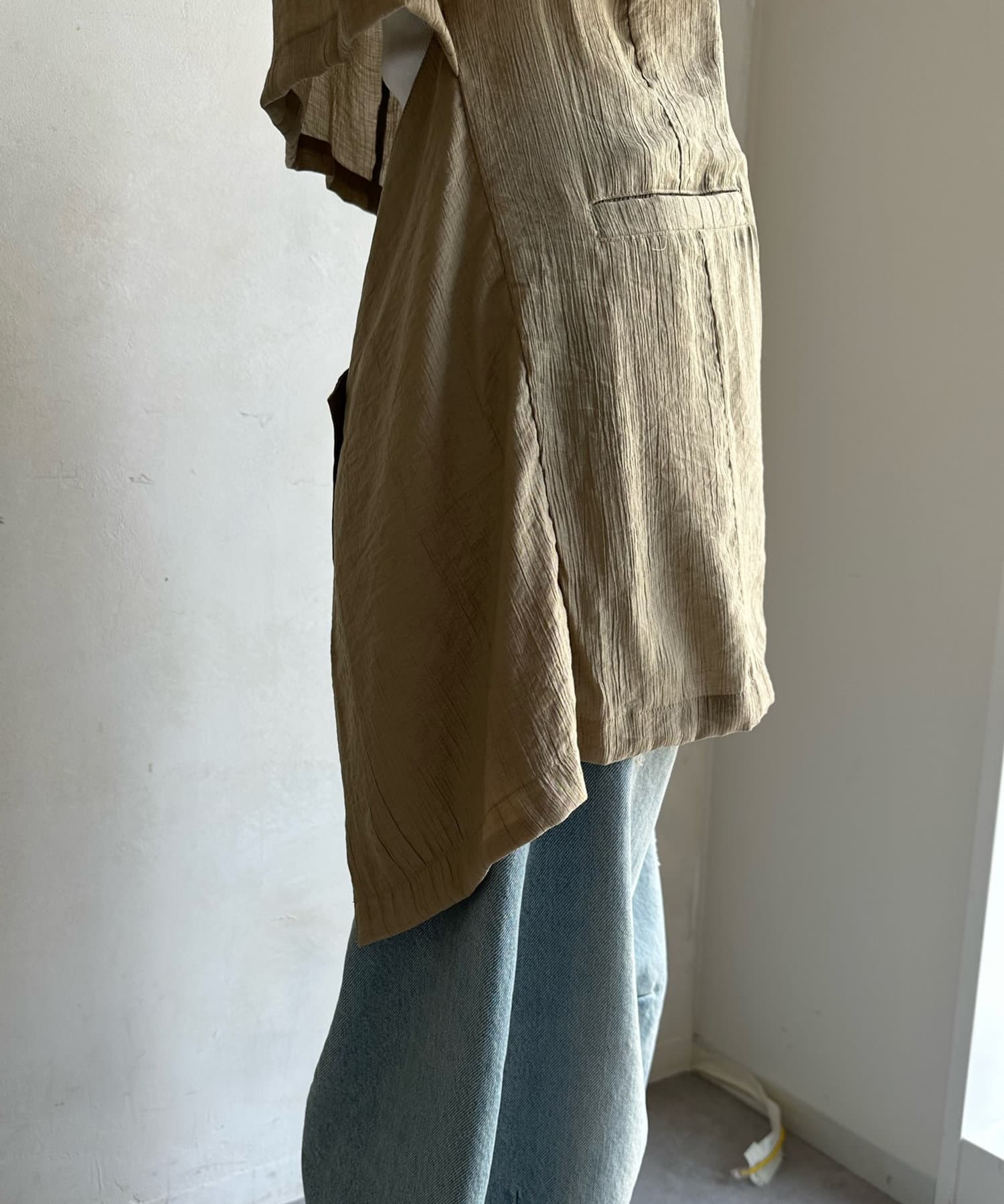 テーラードカラーで仕立てられ、薄手の表情のある生地感がスタイリングに上品な雰囲気を演出してくれます。