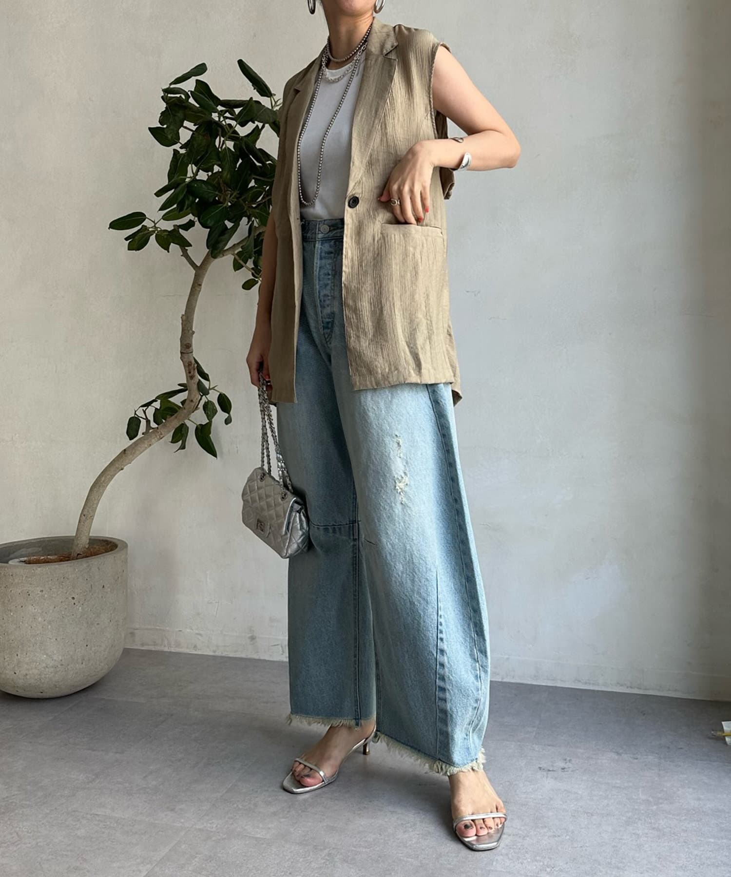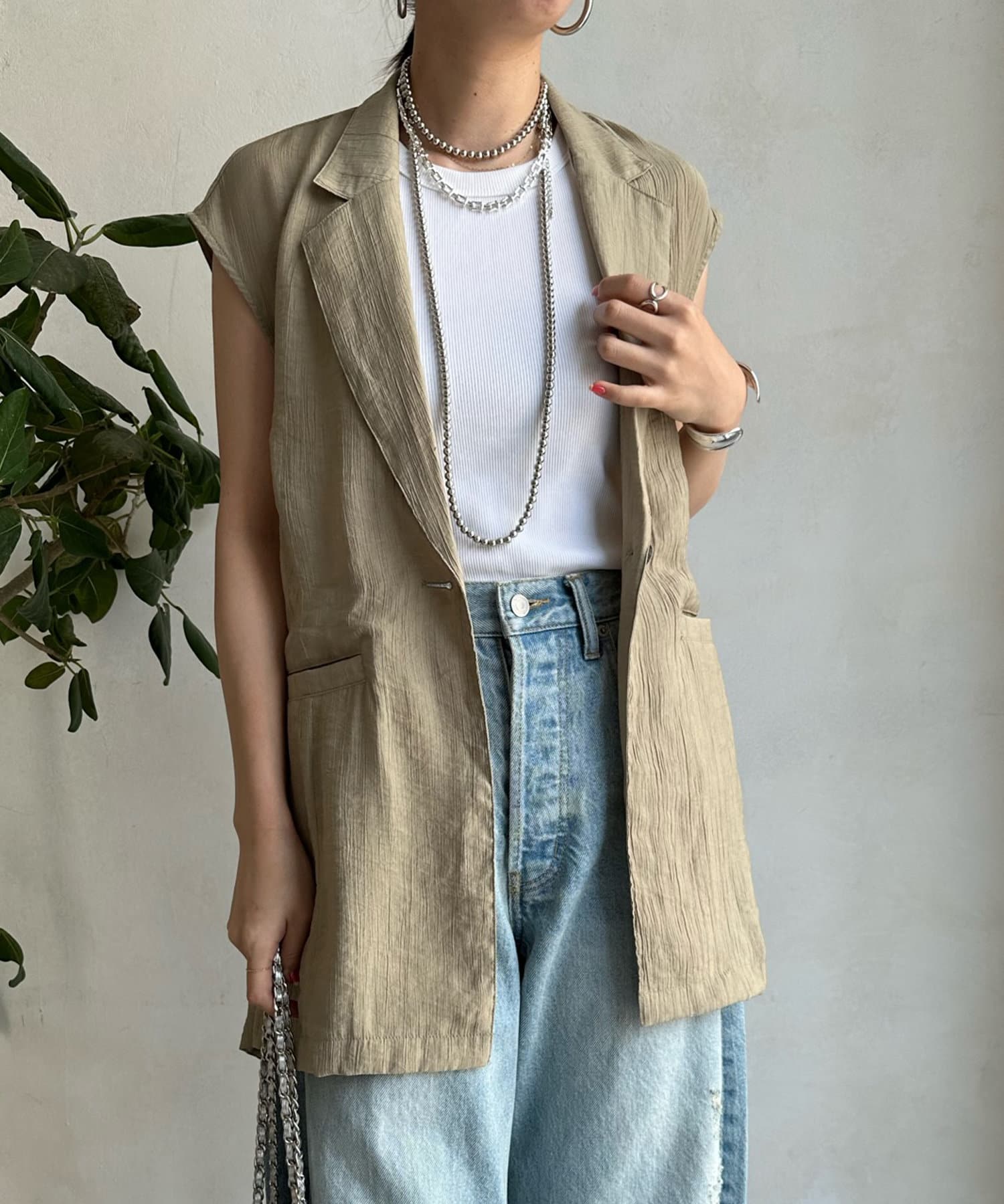デザイン性のある旬顔ベストでコーディネートをアップデート