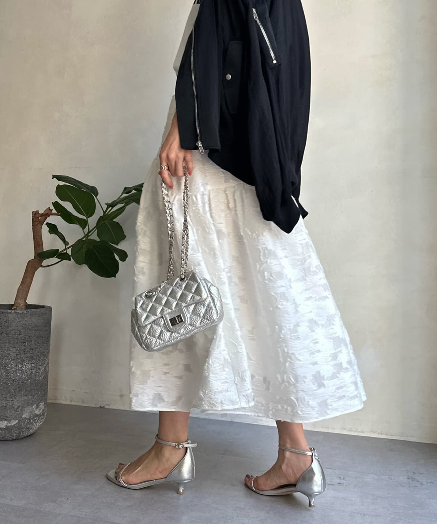表面感のあるジャガード素材で特別感ある1着に
