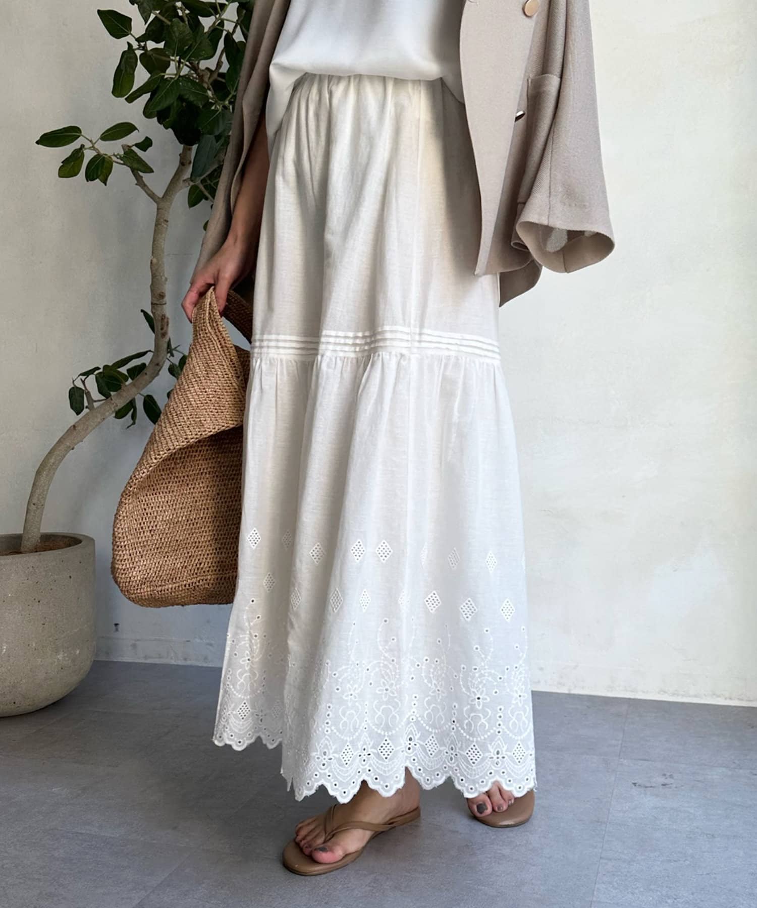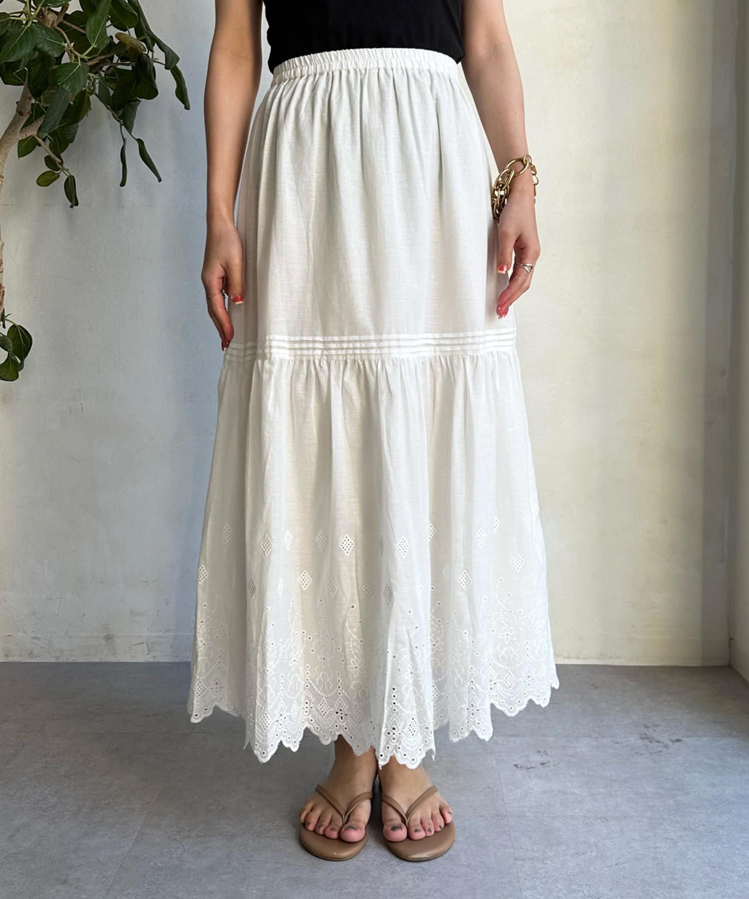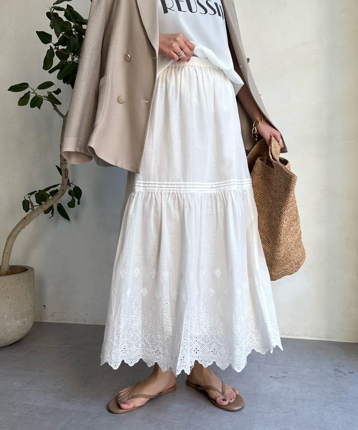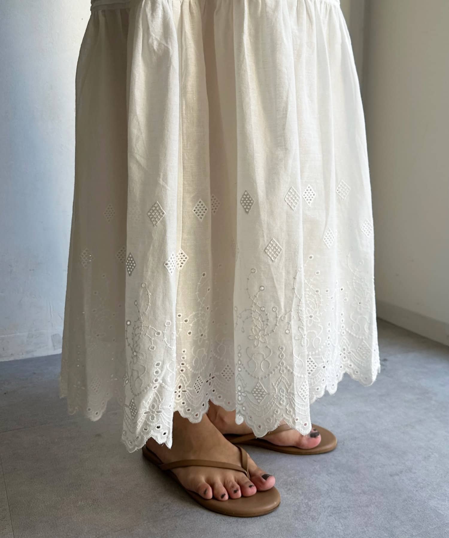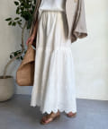 裾のスカラップレースで着映える、シーズンムード漂う爽やかな1着。