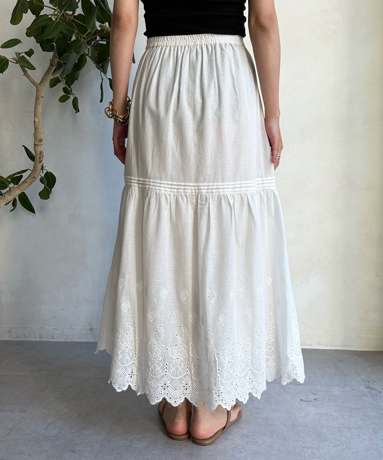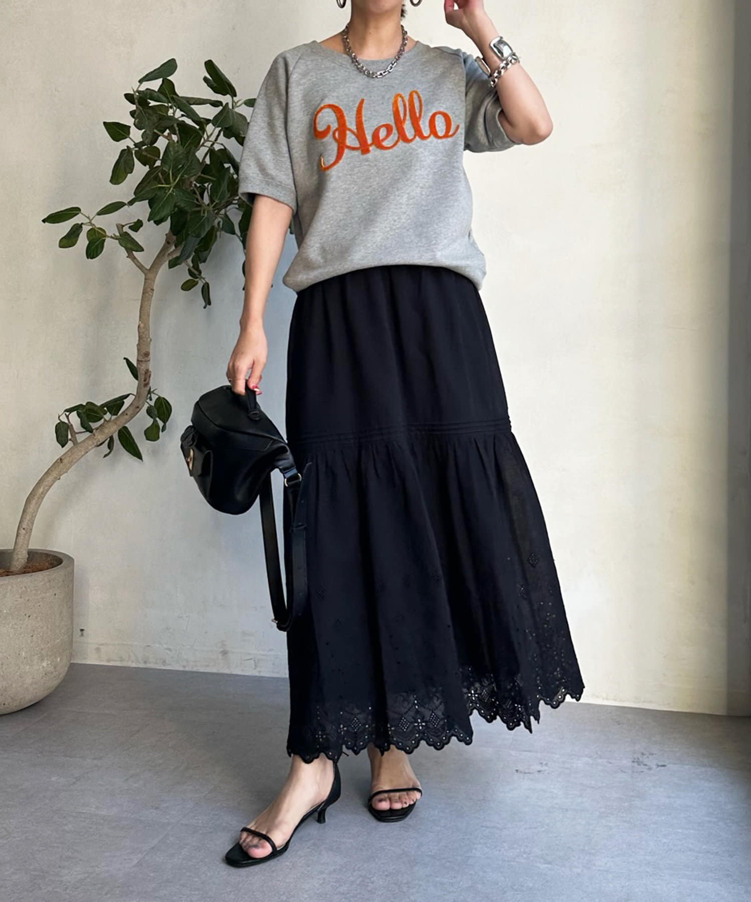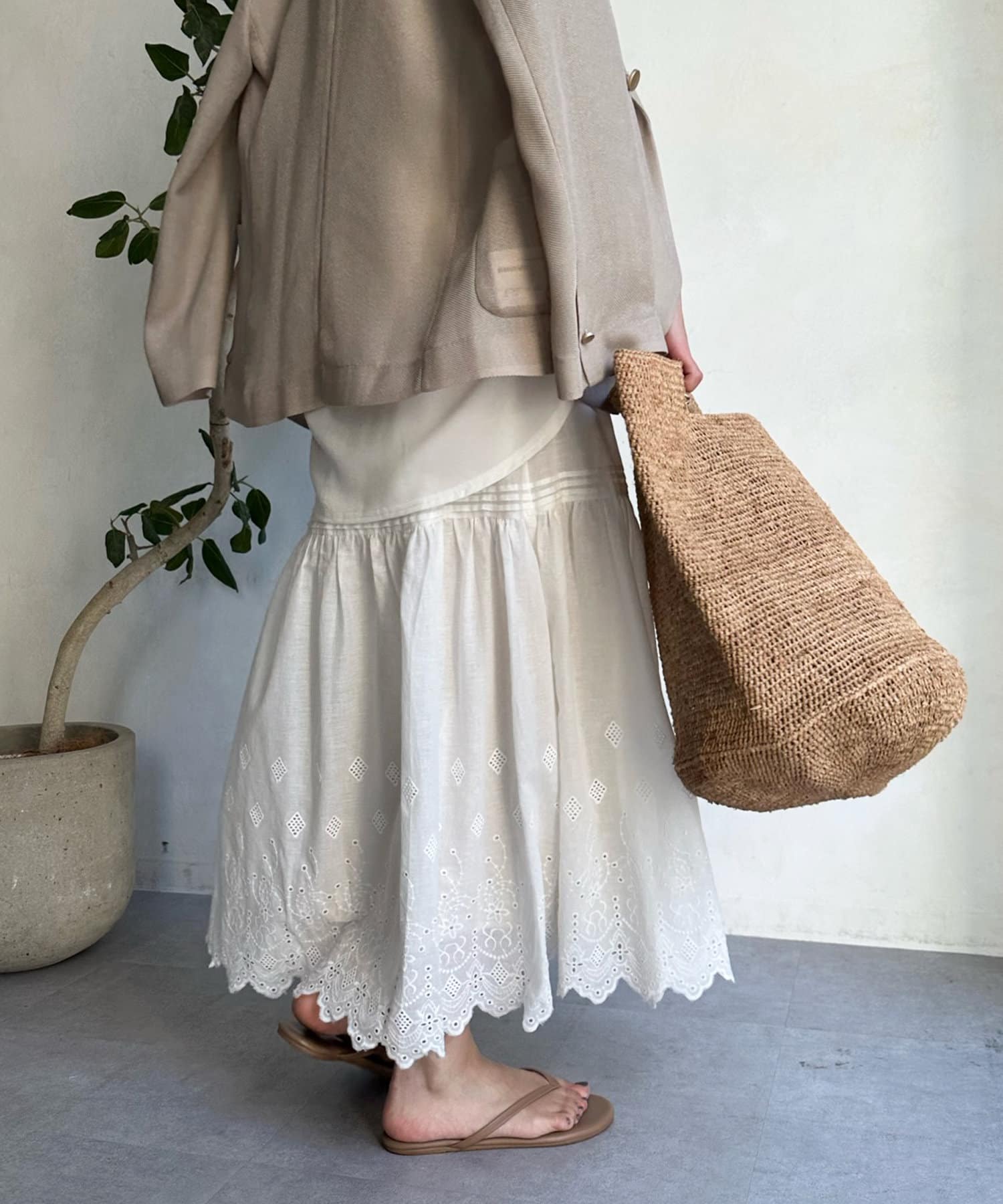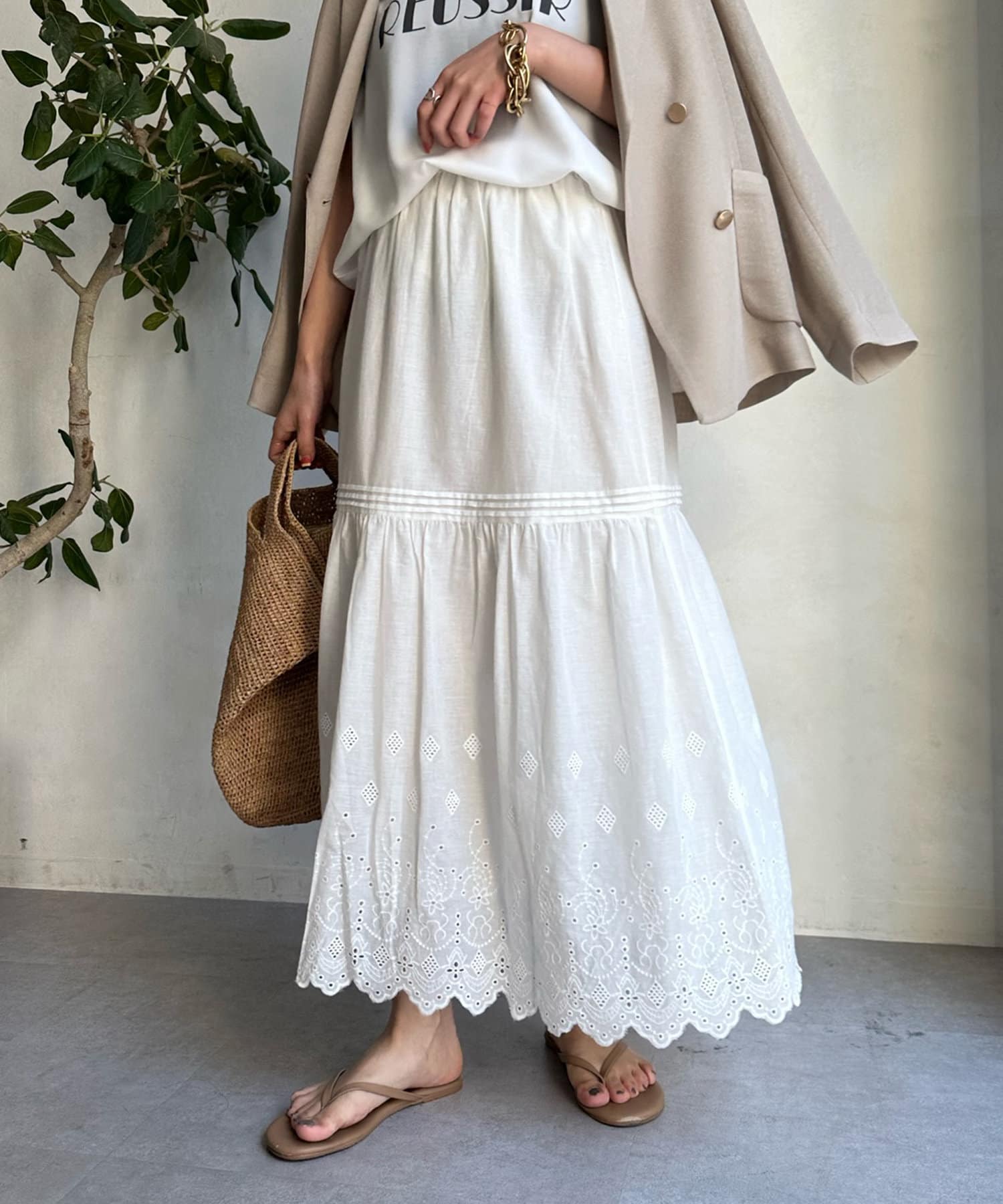 裾のスカラップレースで着映える、シーズンムード漂う爽やかな1着。