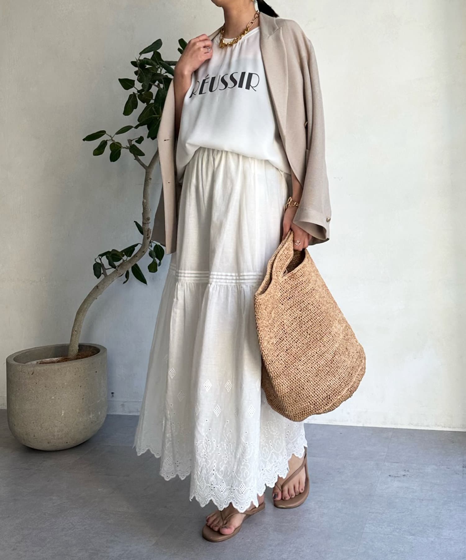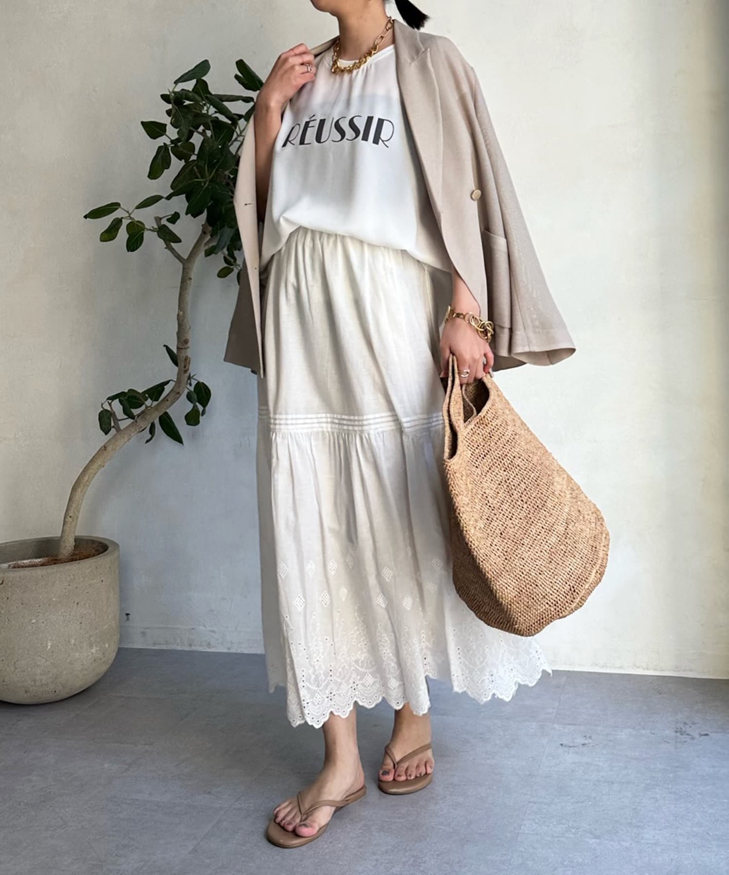 甘くなりすぎないようにスタイリングするのが、今年らしくておすすめですよ。