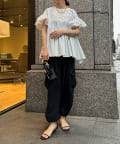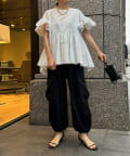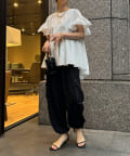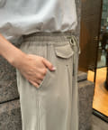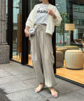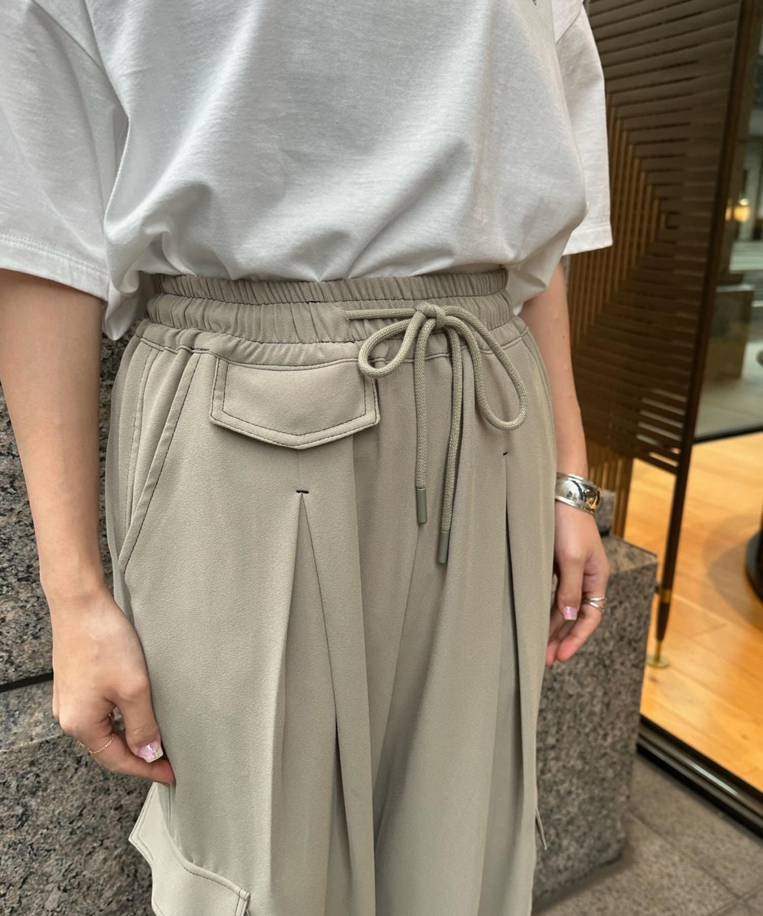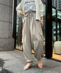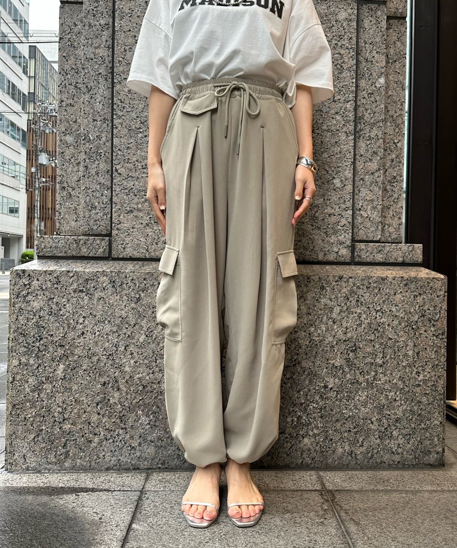 ウエストゴムと紐で調整可能で、太すぎない程良くルーズなシルエットながら、タックが入っているので脚のラインをすっきり見せてくれるのもおすすめポイント!