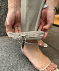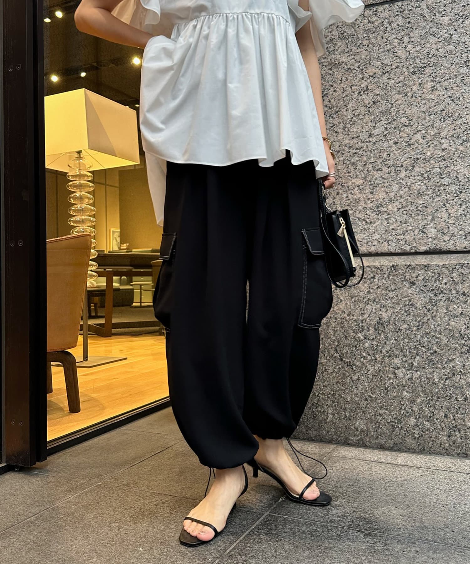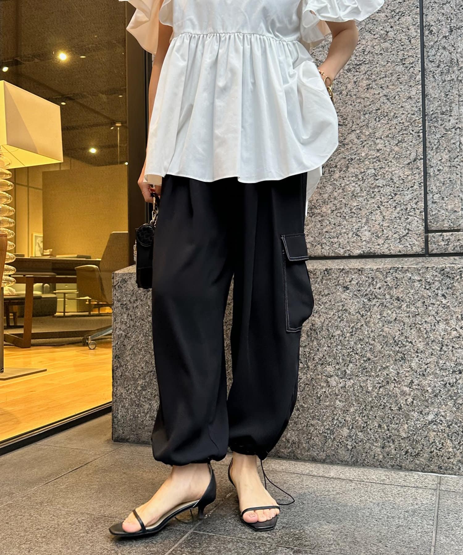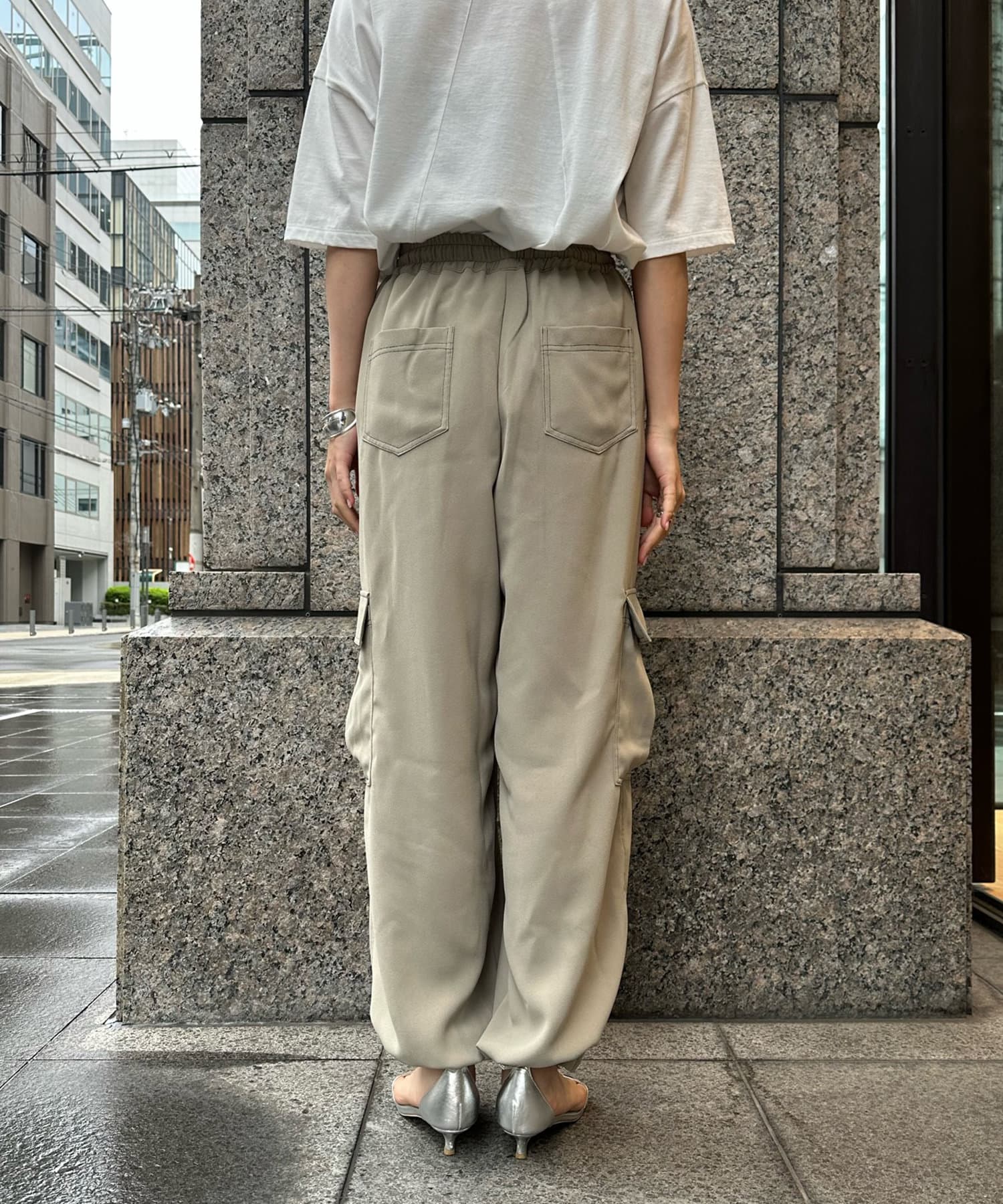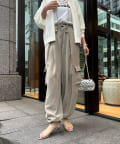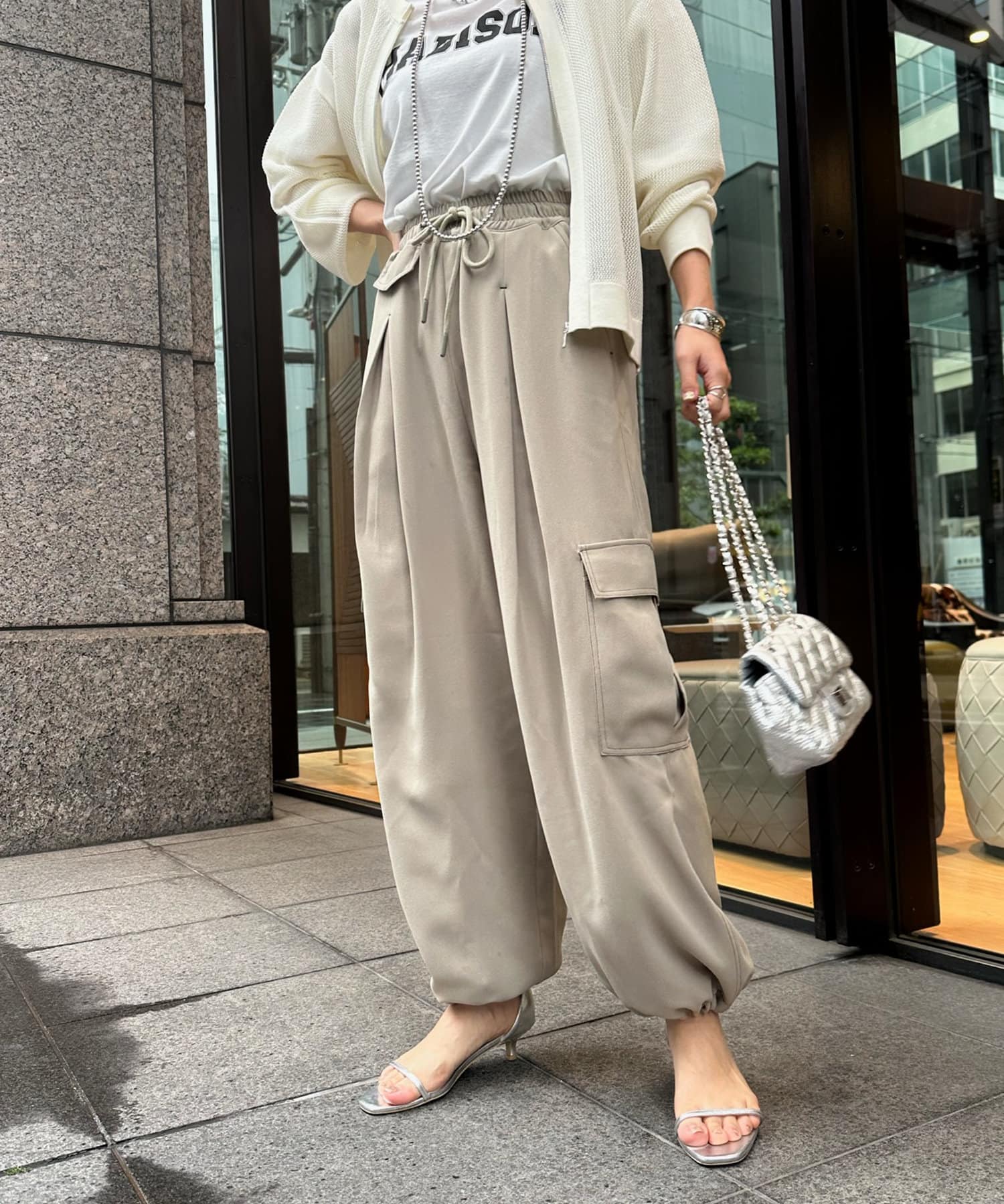 程よい光沢感が、大人なきれいめカジュアルコーデにもぴったりで、裾は絞っても絞らなくても履けるので2通りのスタイルが楽しめます。