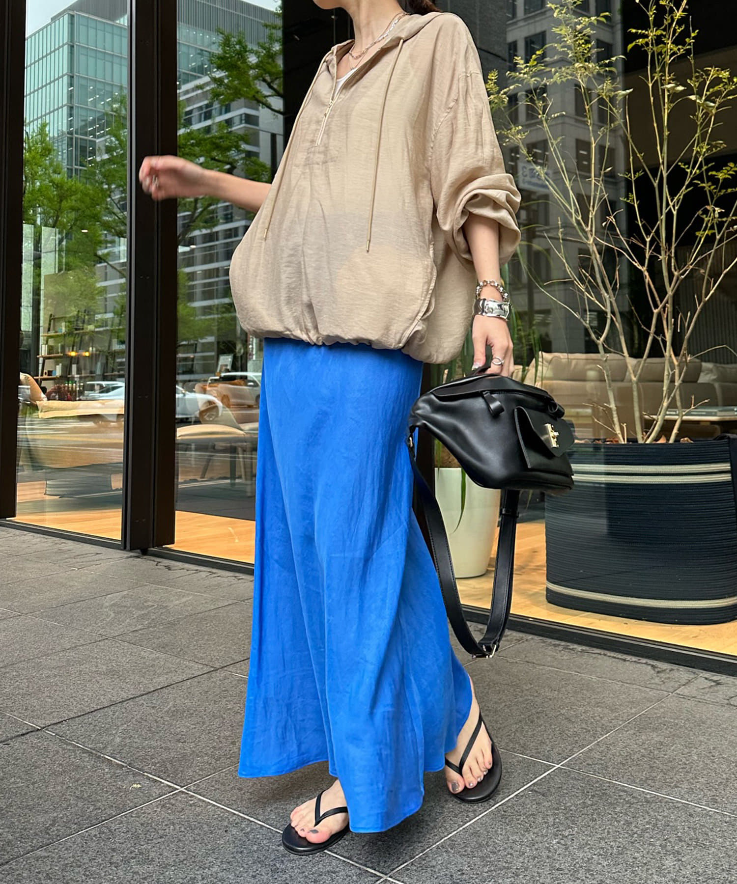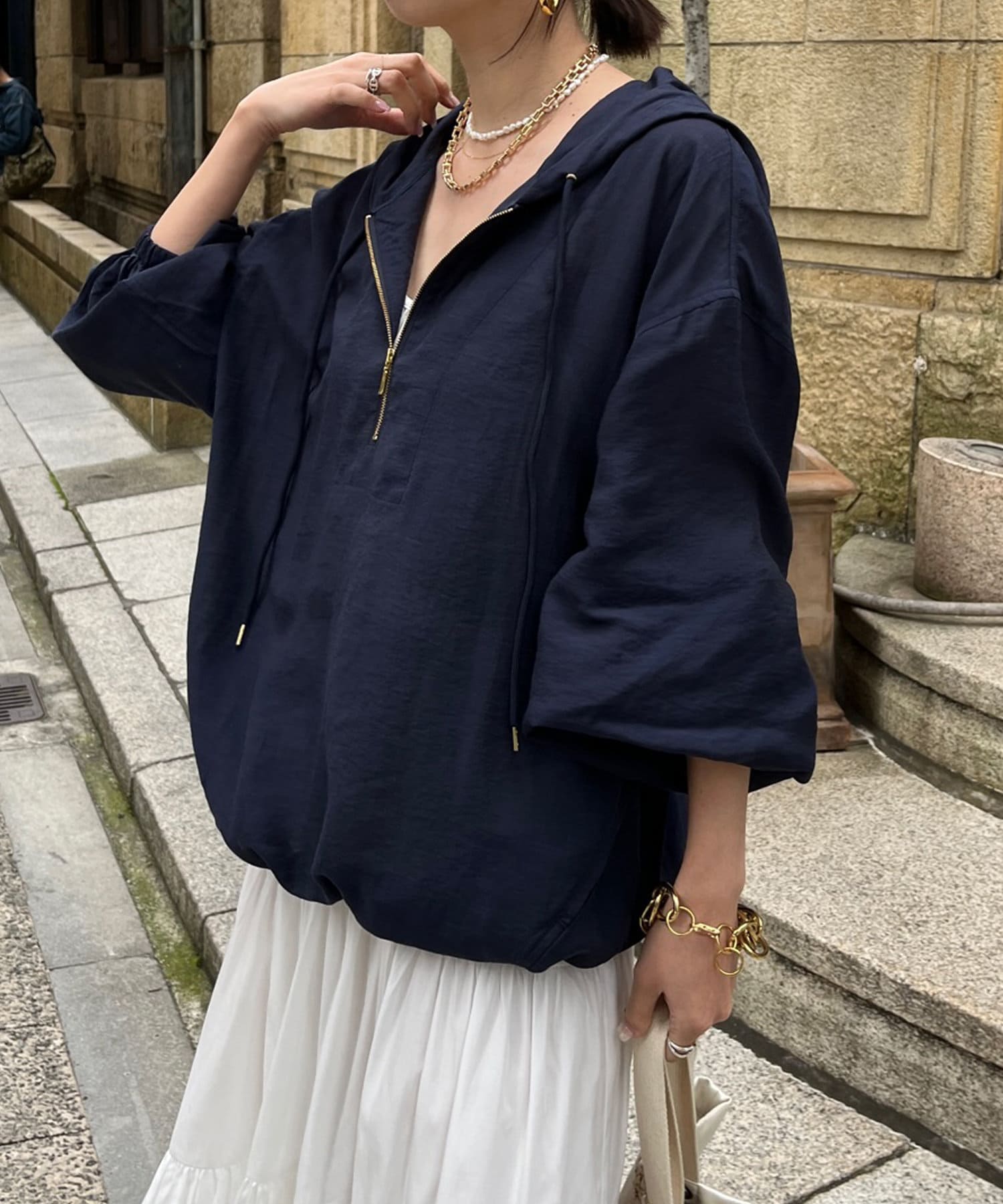 裾はドロスト仕様の為、きゅっと締めて丸みのあるシルエットへと変化を付けることも出来ますよ◎