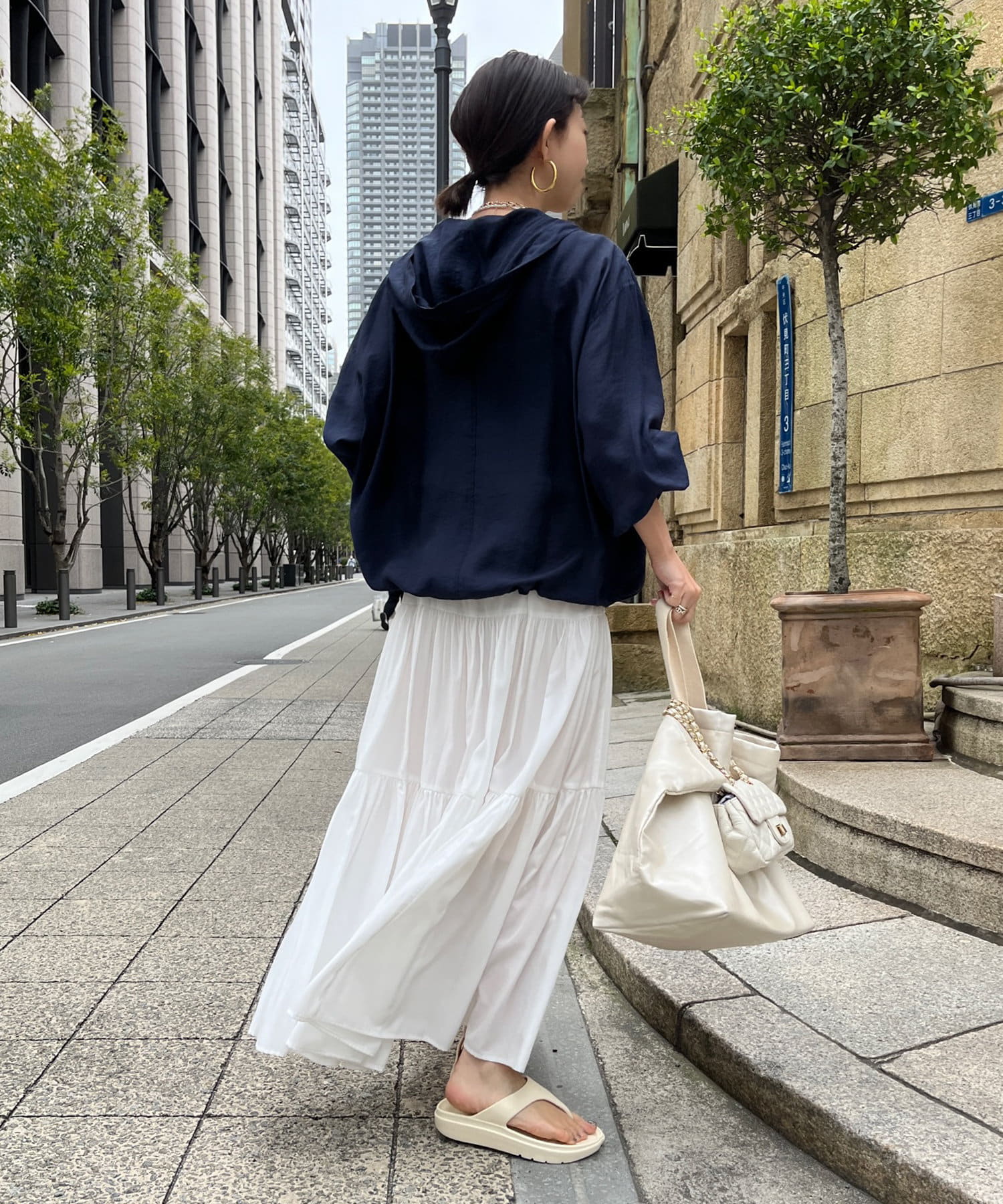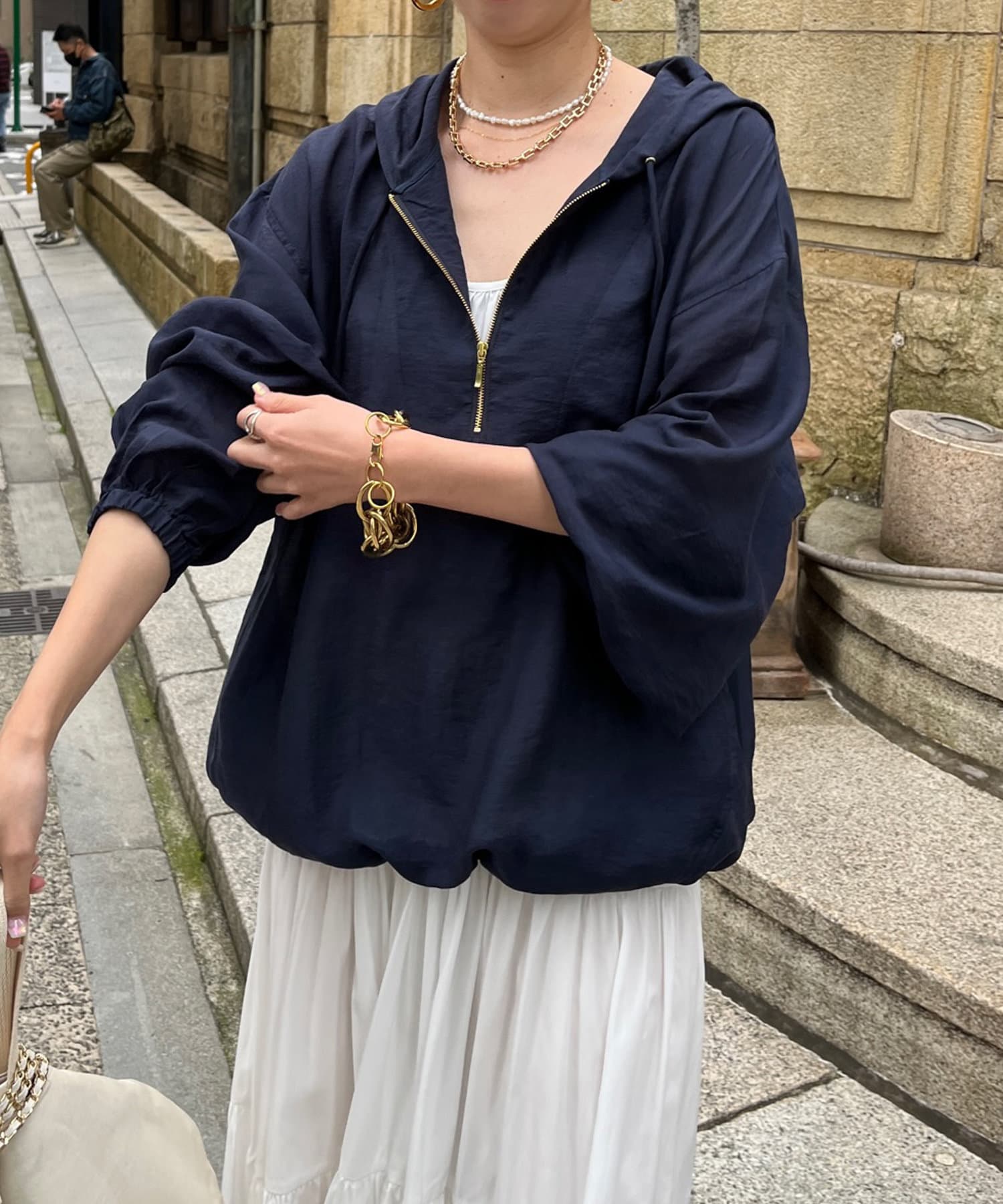 アノラックパーカーのアウトドアな要素を残しつつ、きれいめなアイテムともマッチするトレンドライクな1着に。