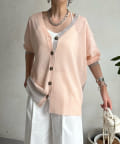 DOUDOU(ドゥドゥ) 【WEB限定】シアーラメバイカラーニットカーディガン