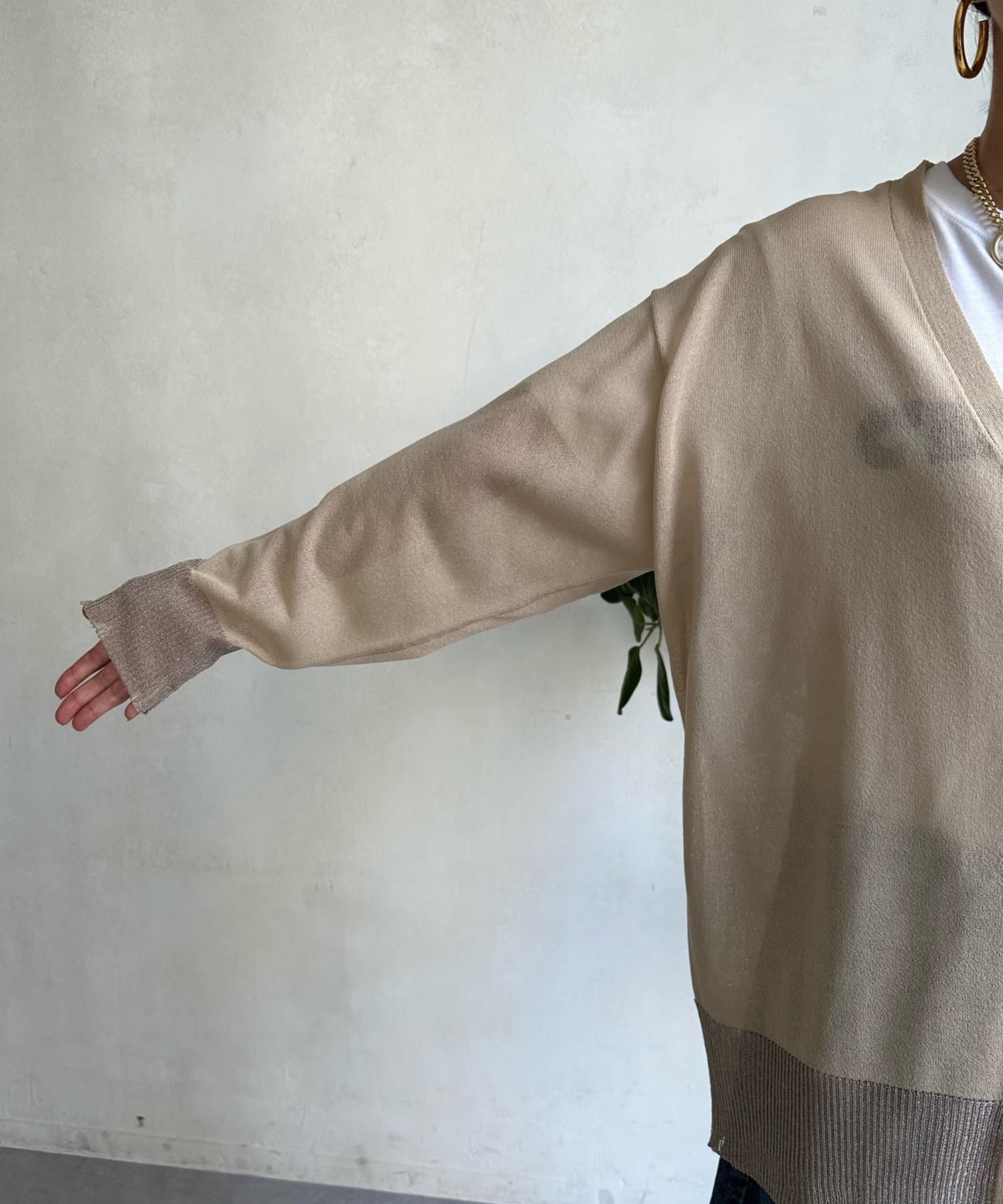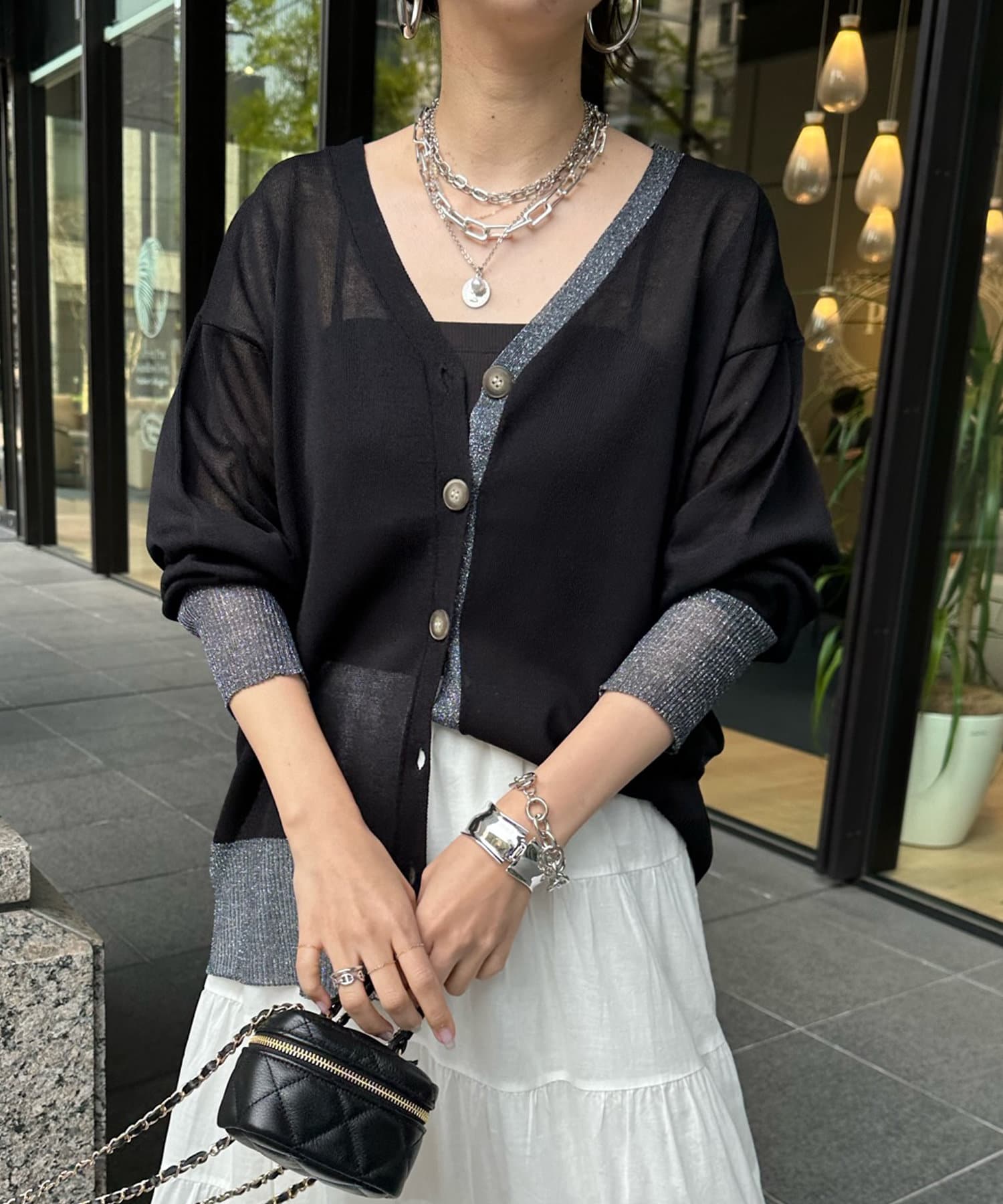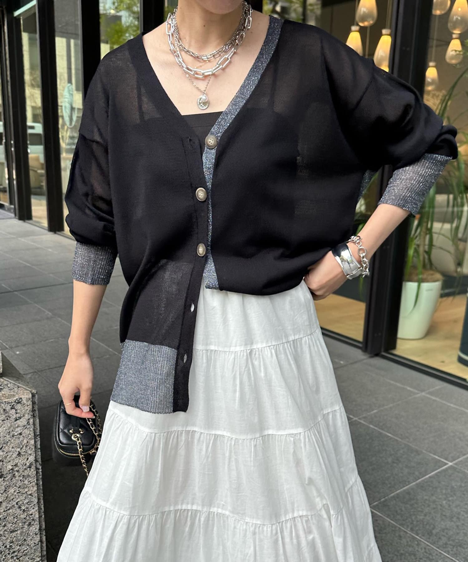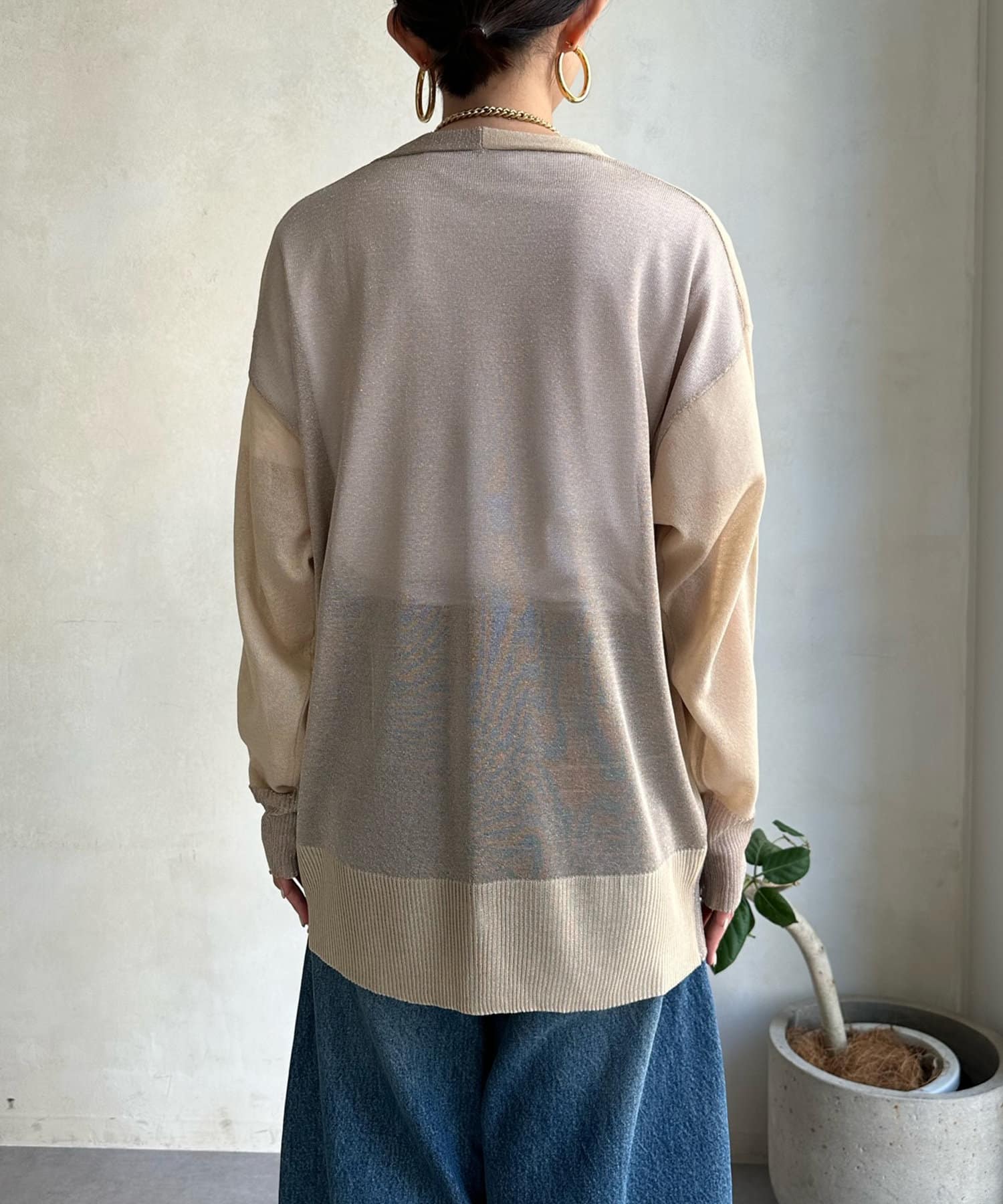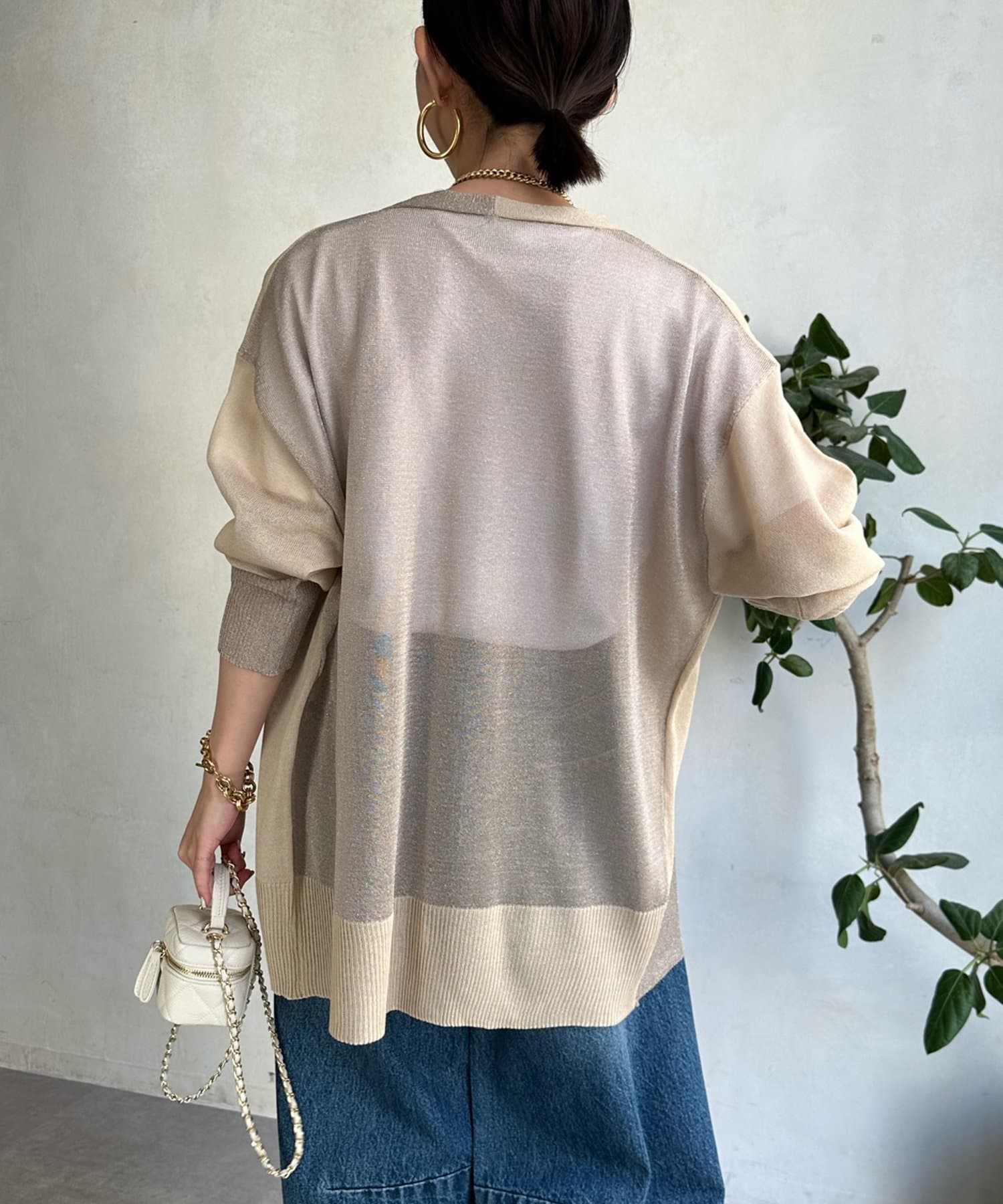 抜け感たっぷりのシアー×ラメカーディガン