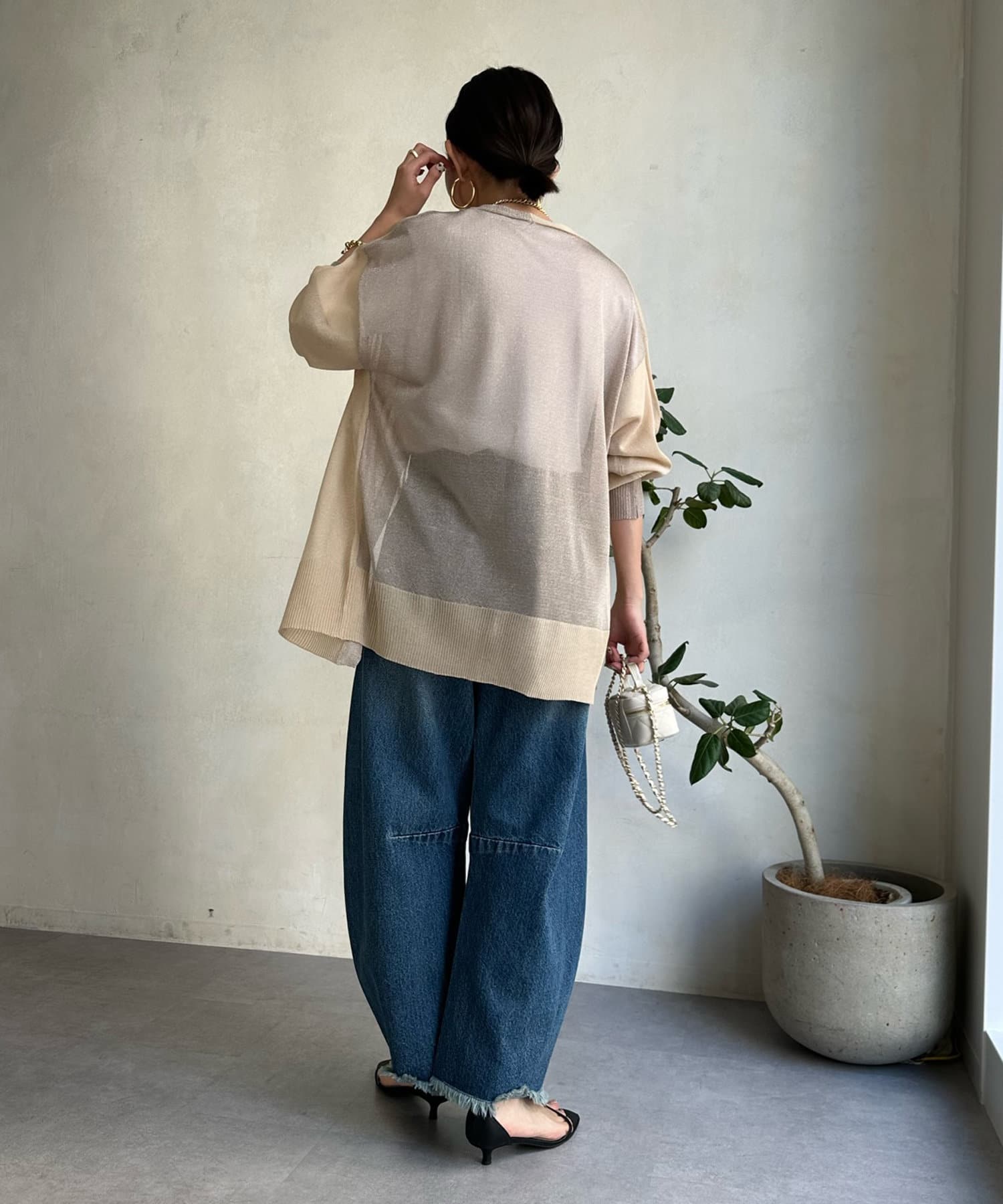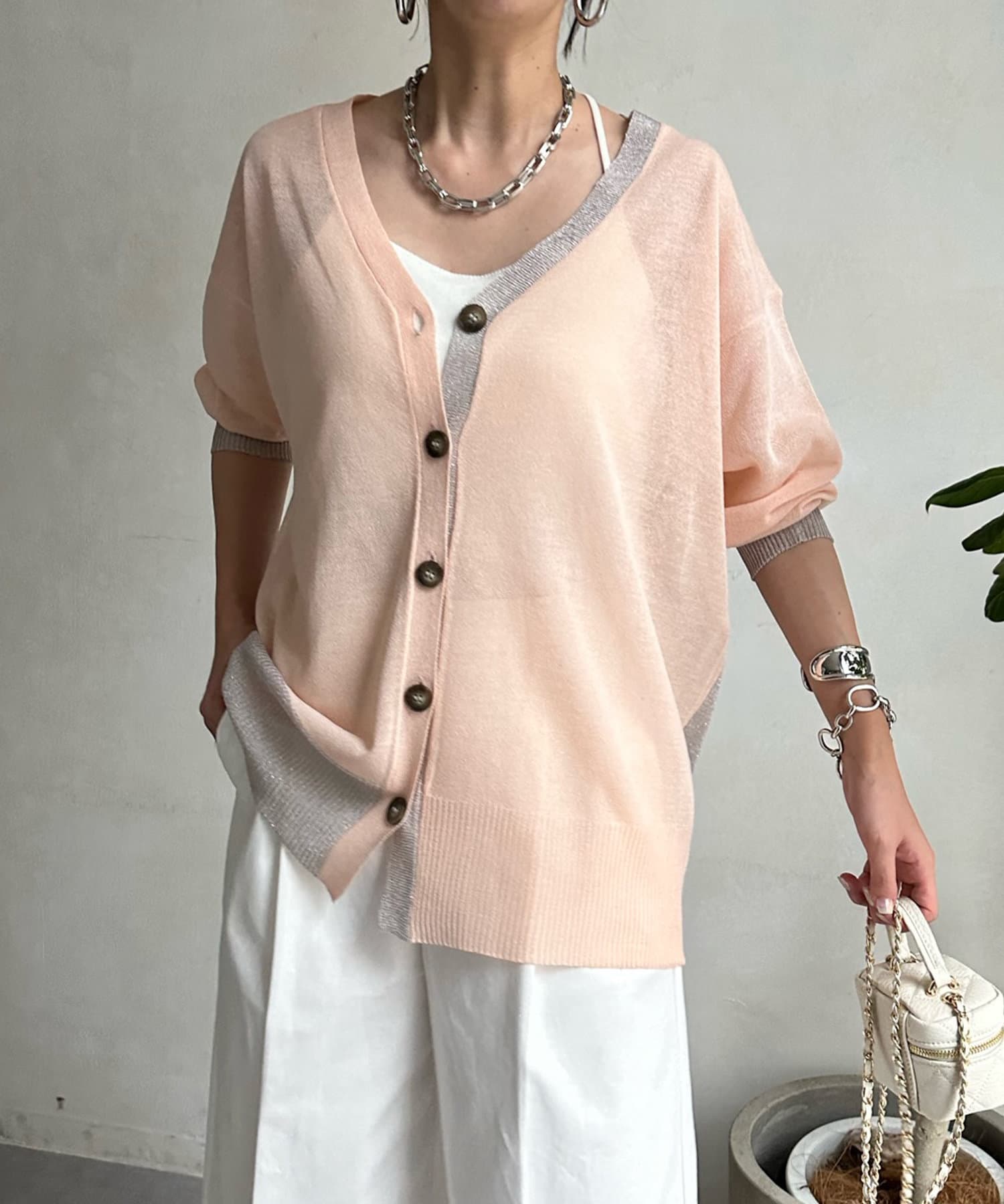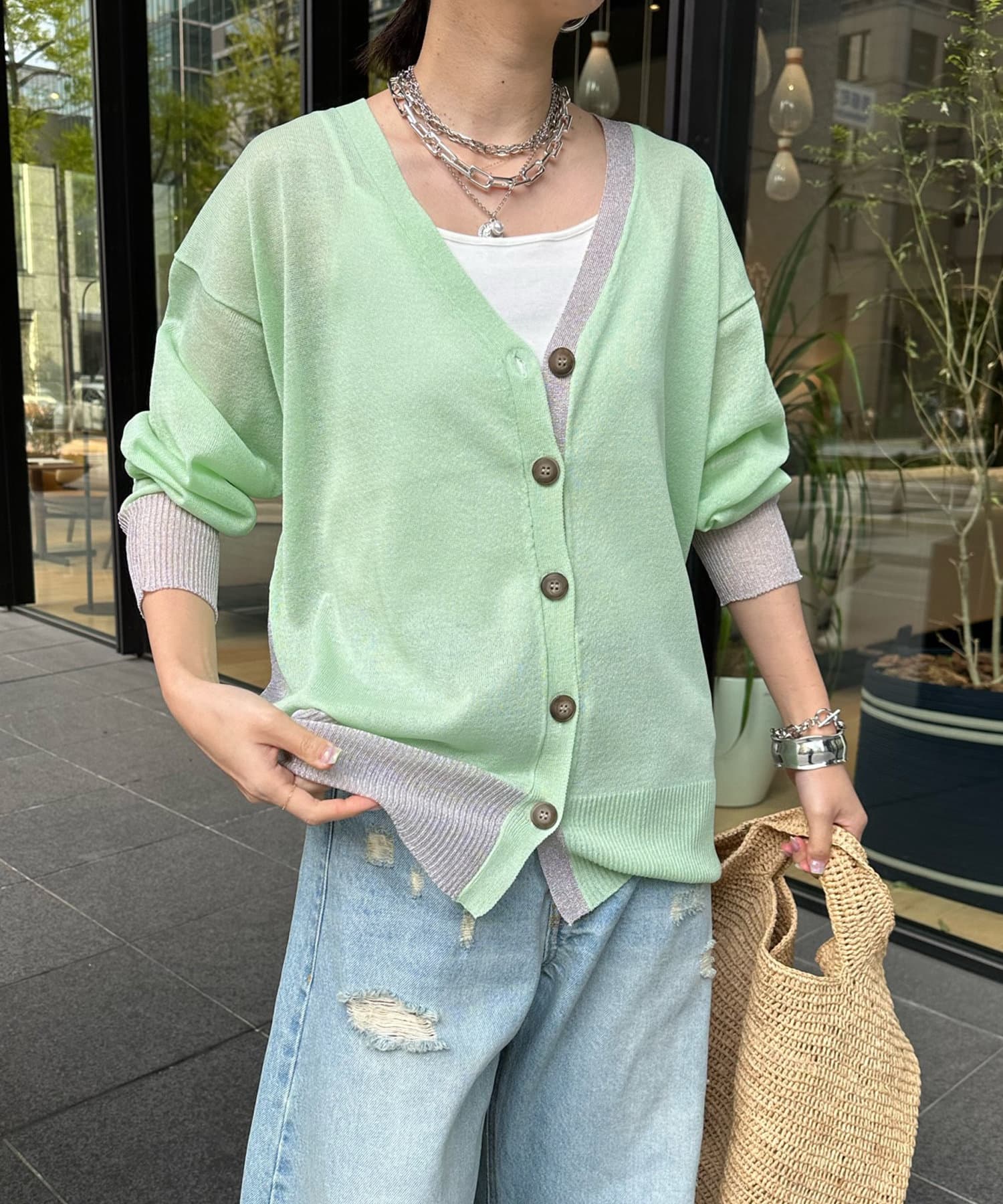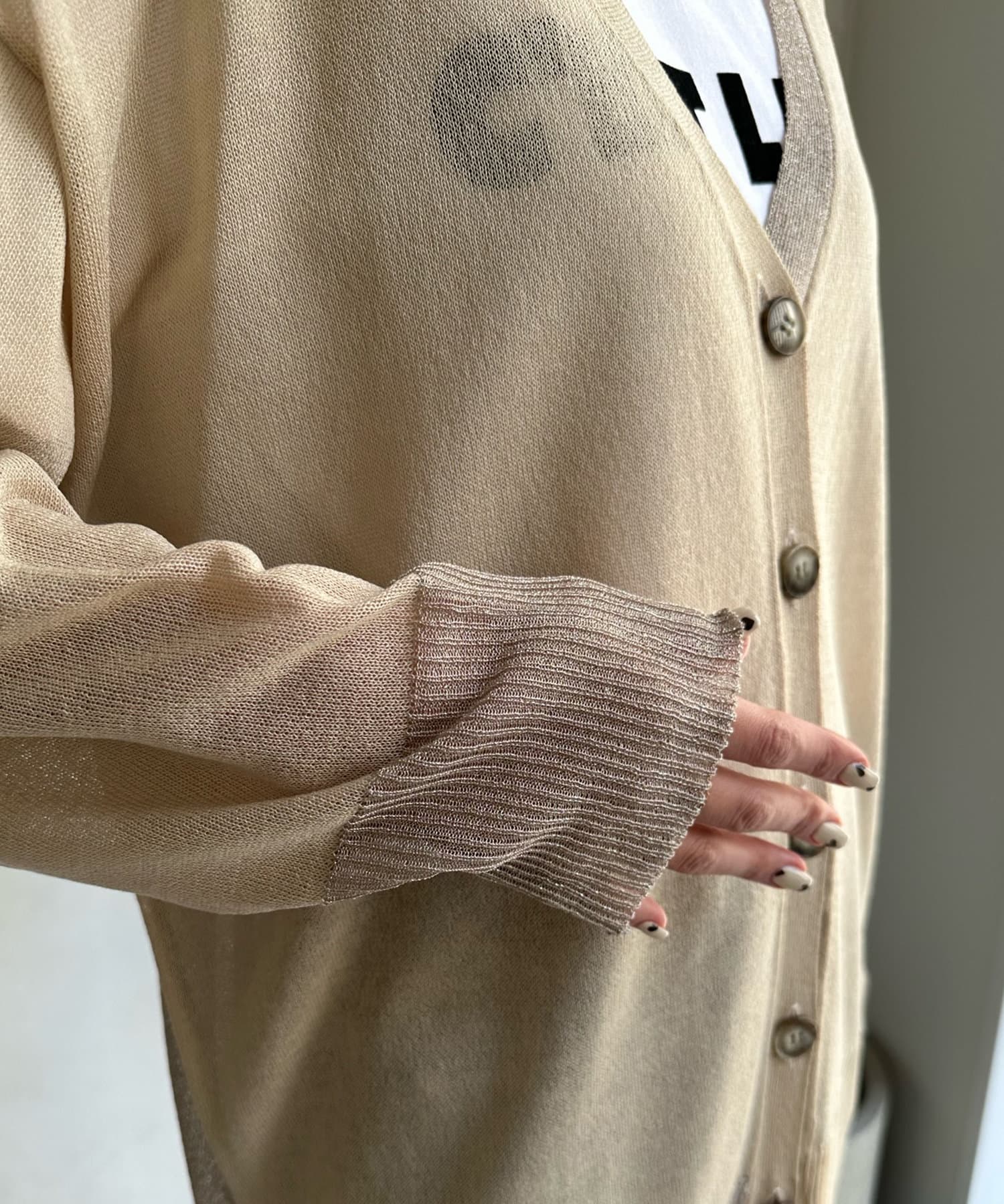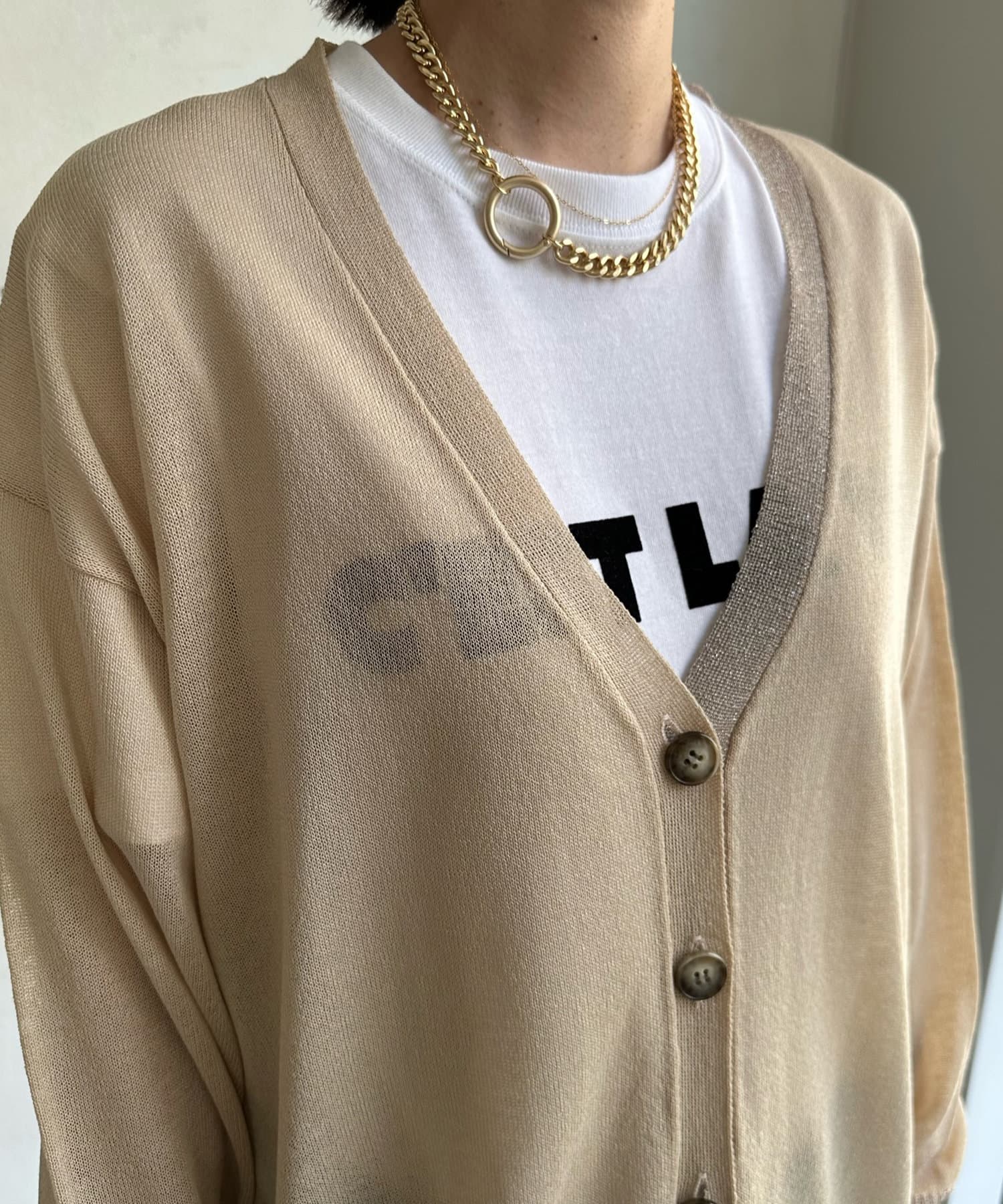抜け感たっぷりのシアー×ラメカーディガン