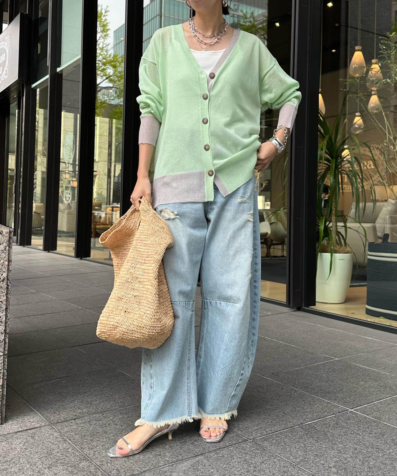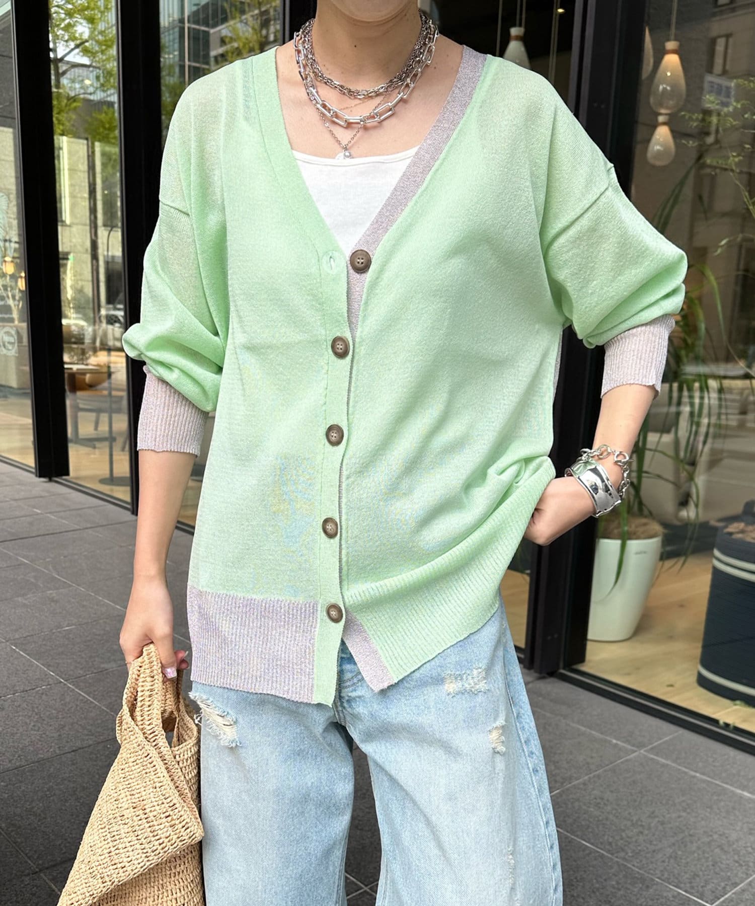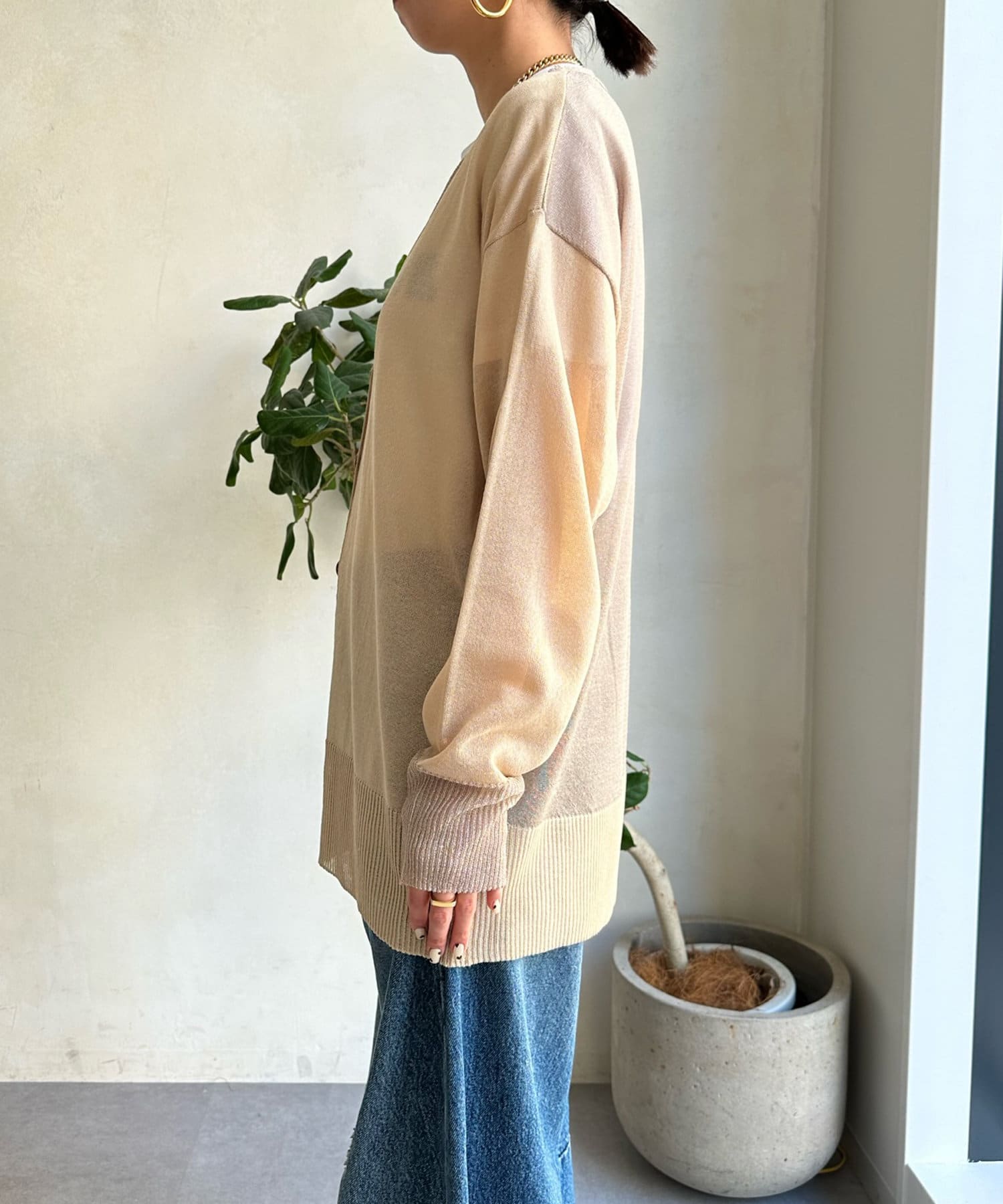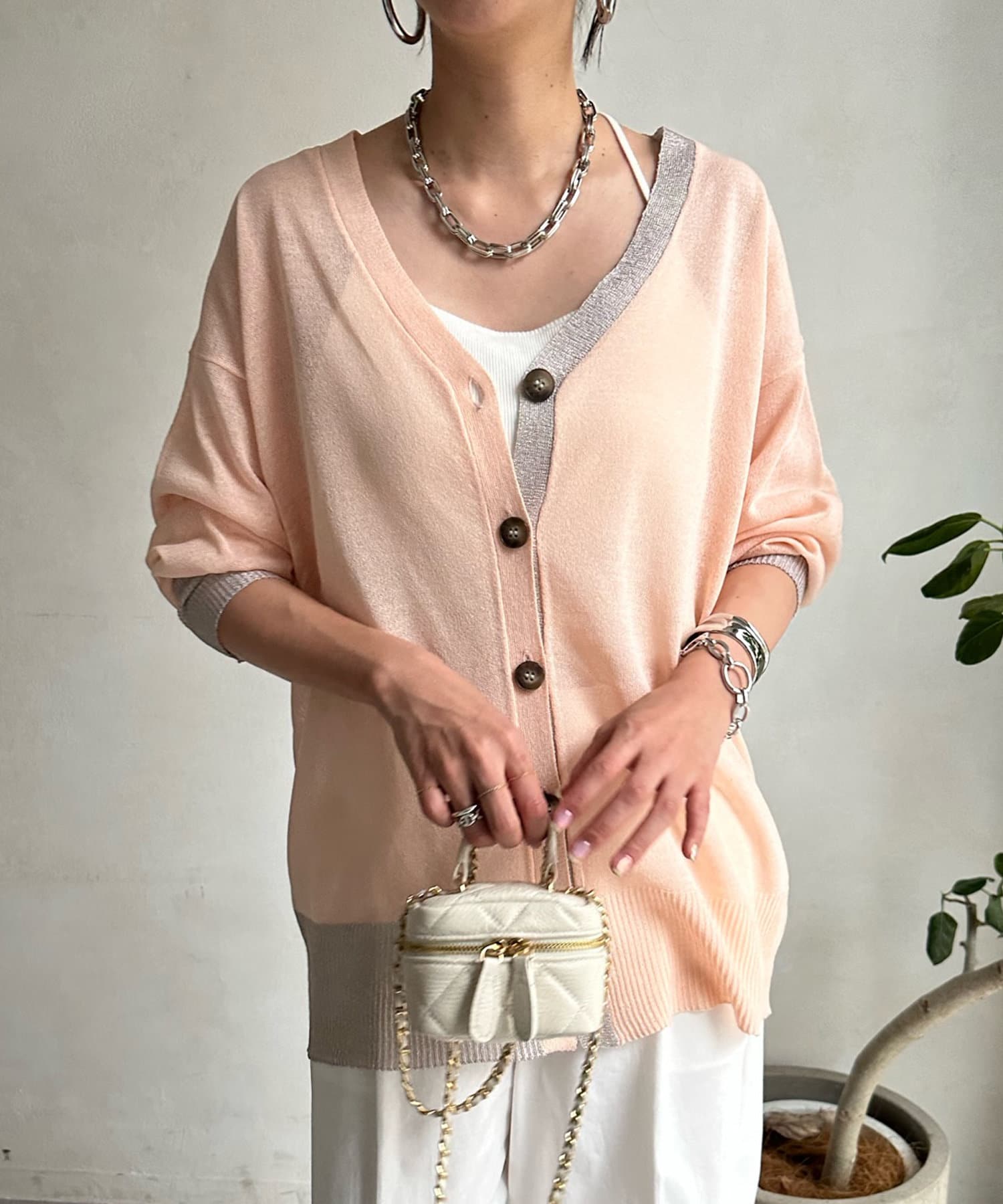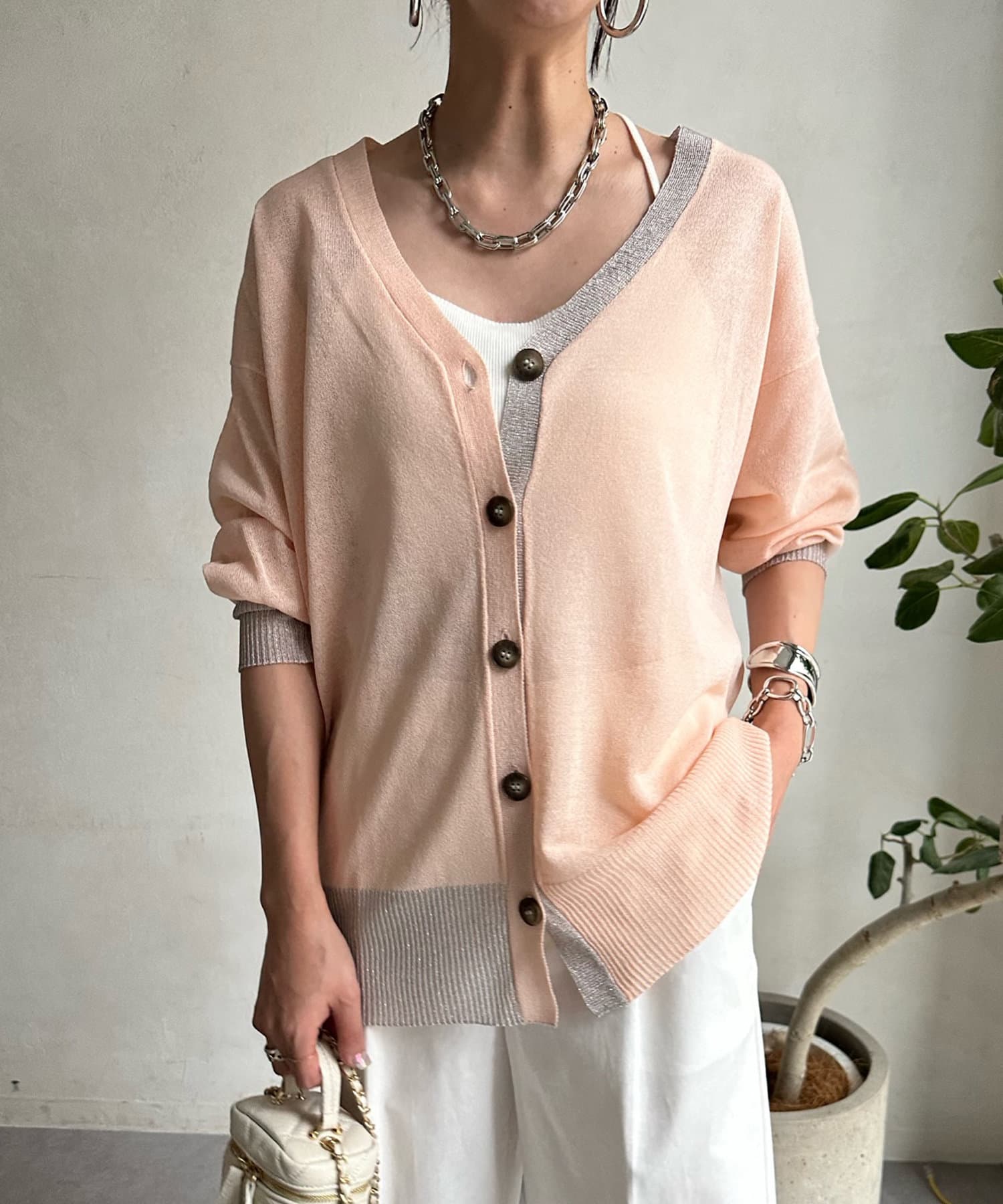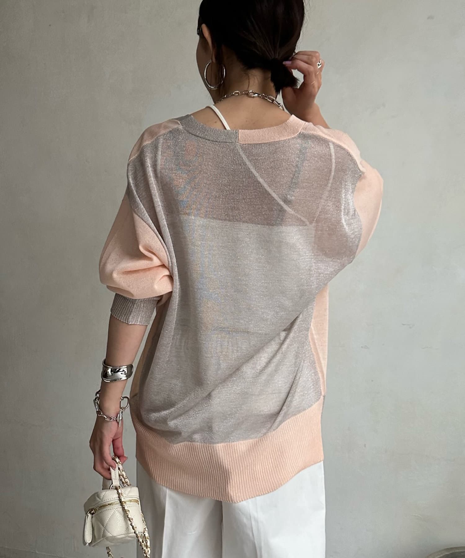 抜け感たっぷりのシアー×ラメカーディガン