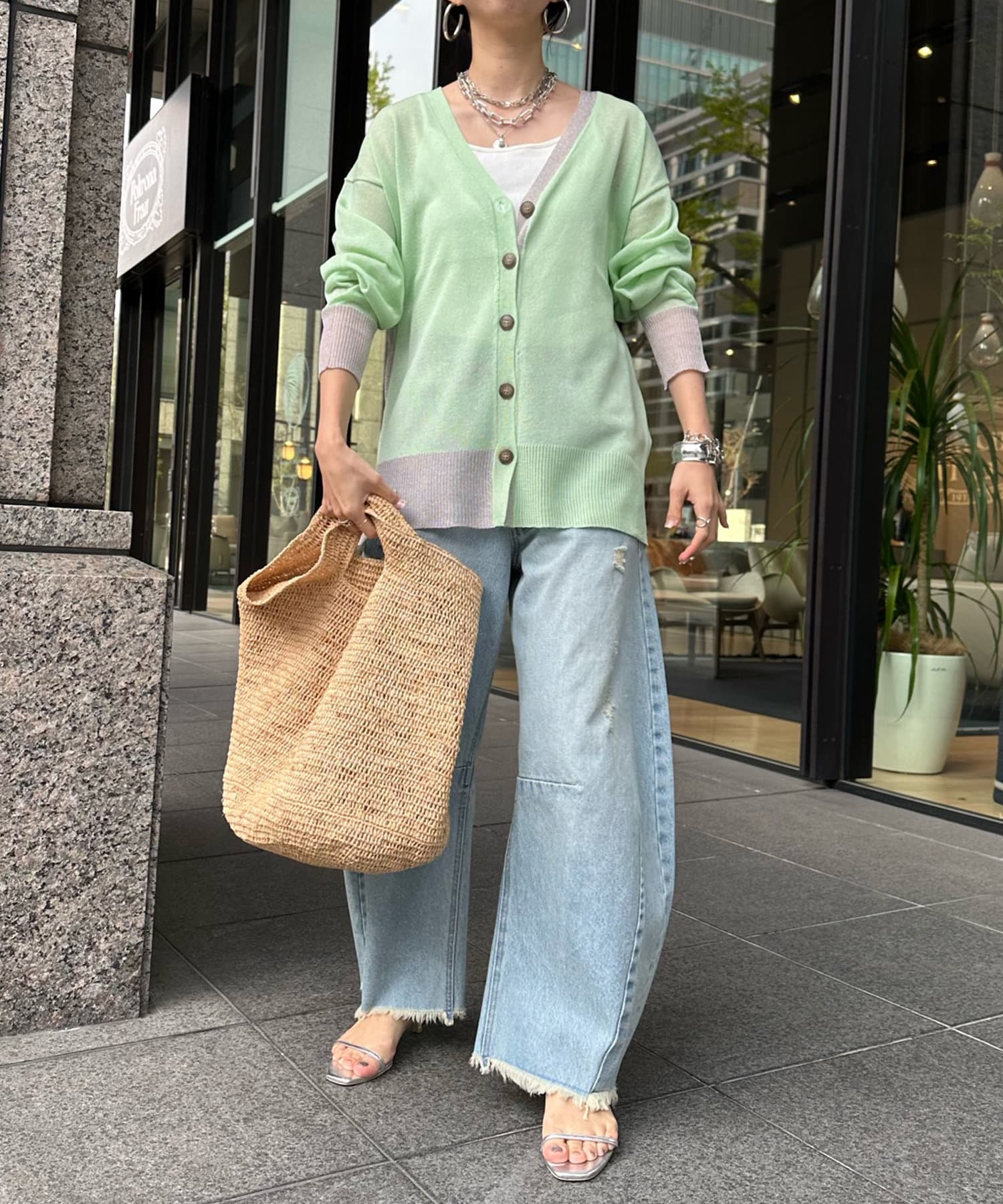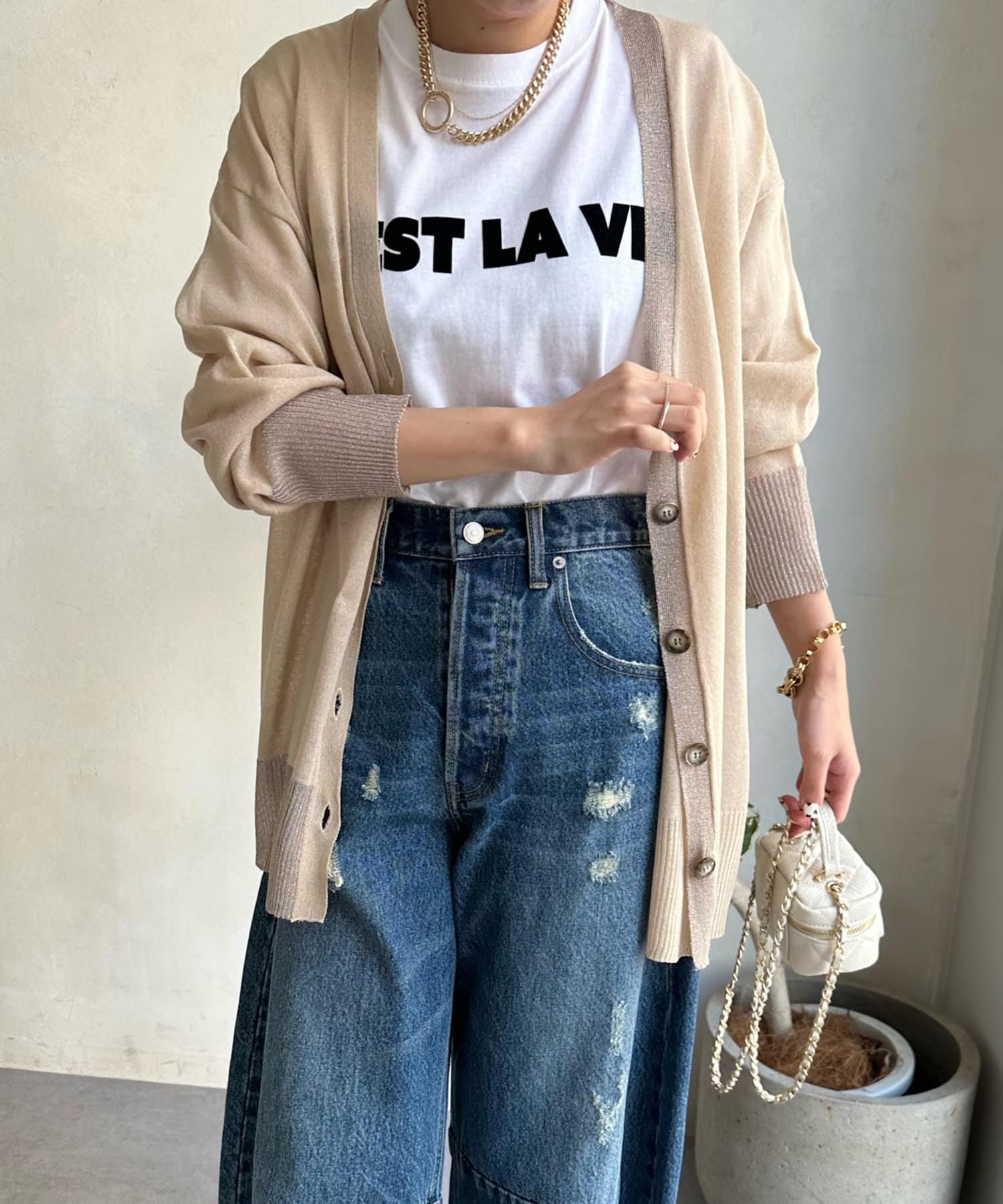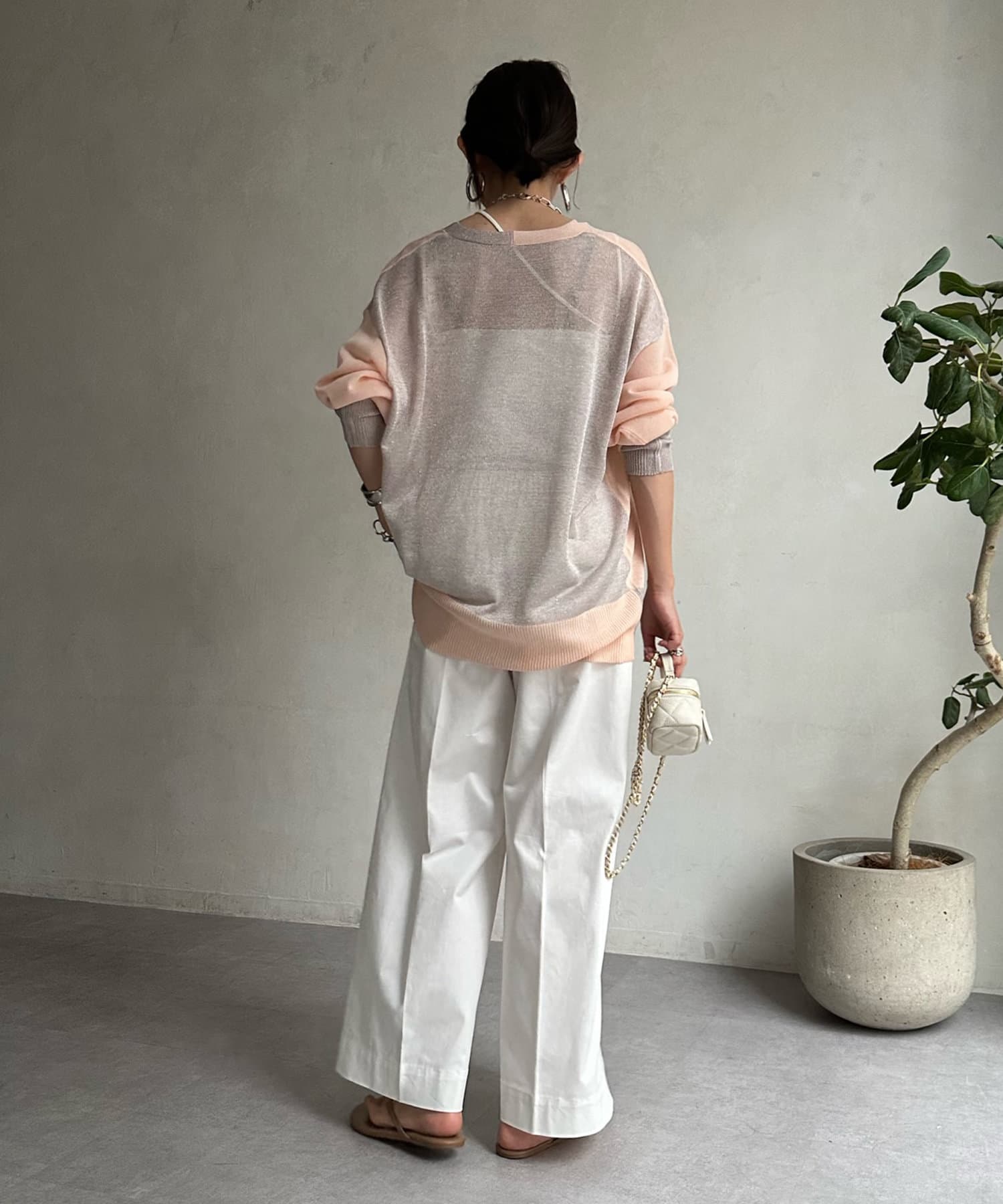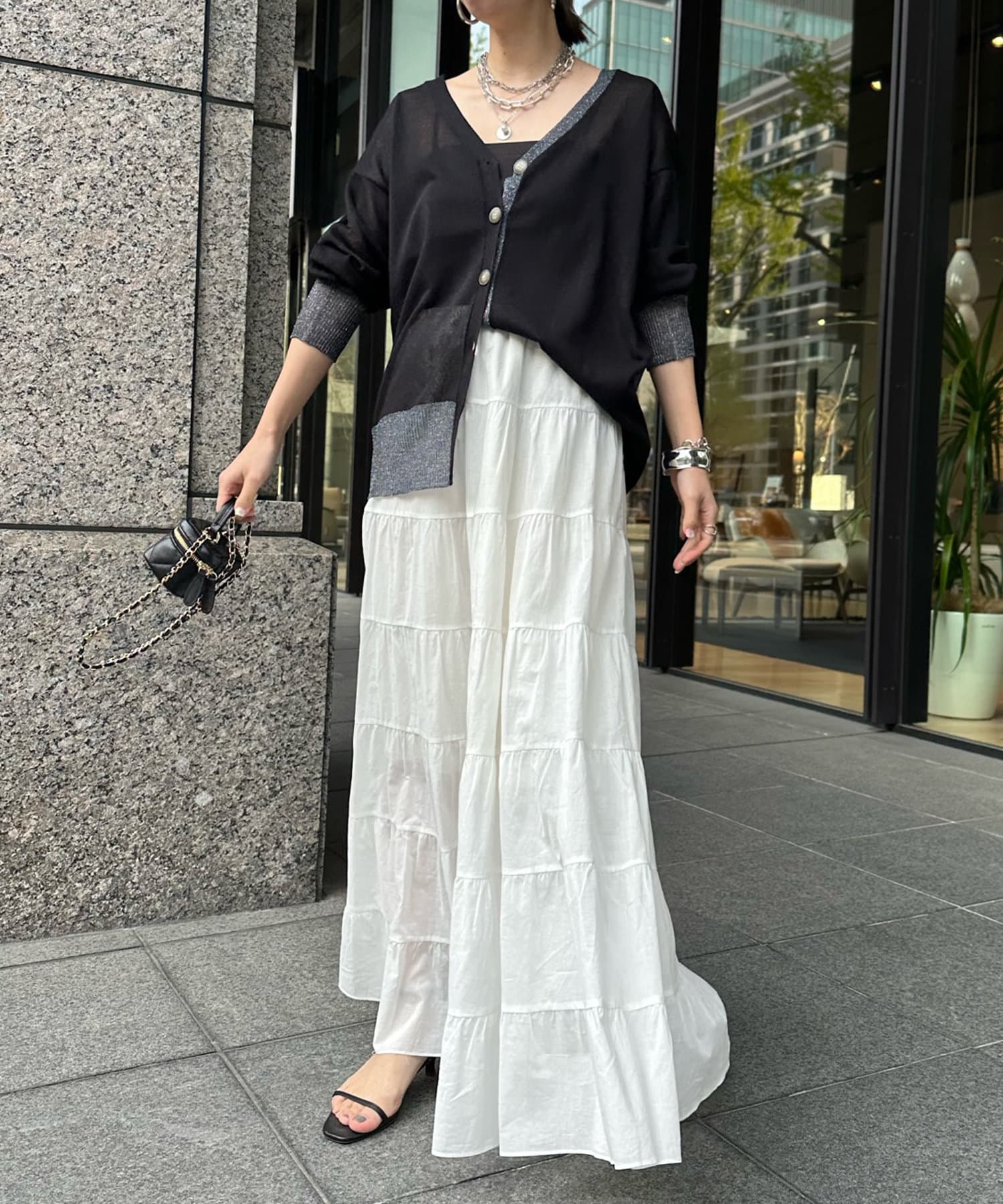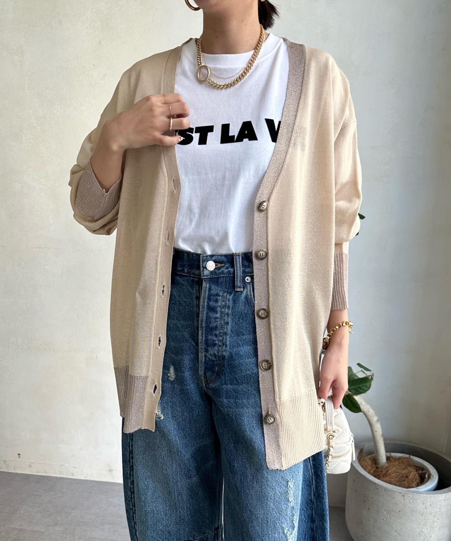 抜け感たっぷりのシアー×ラメカーディガン