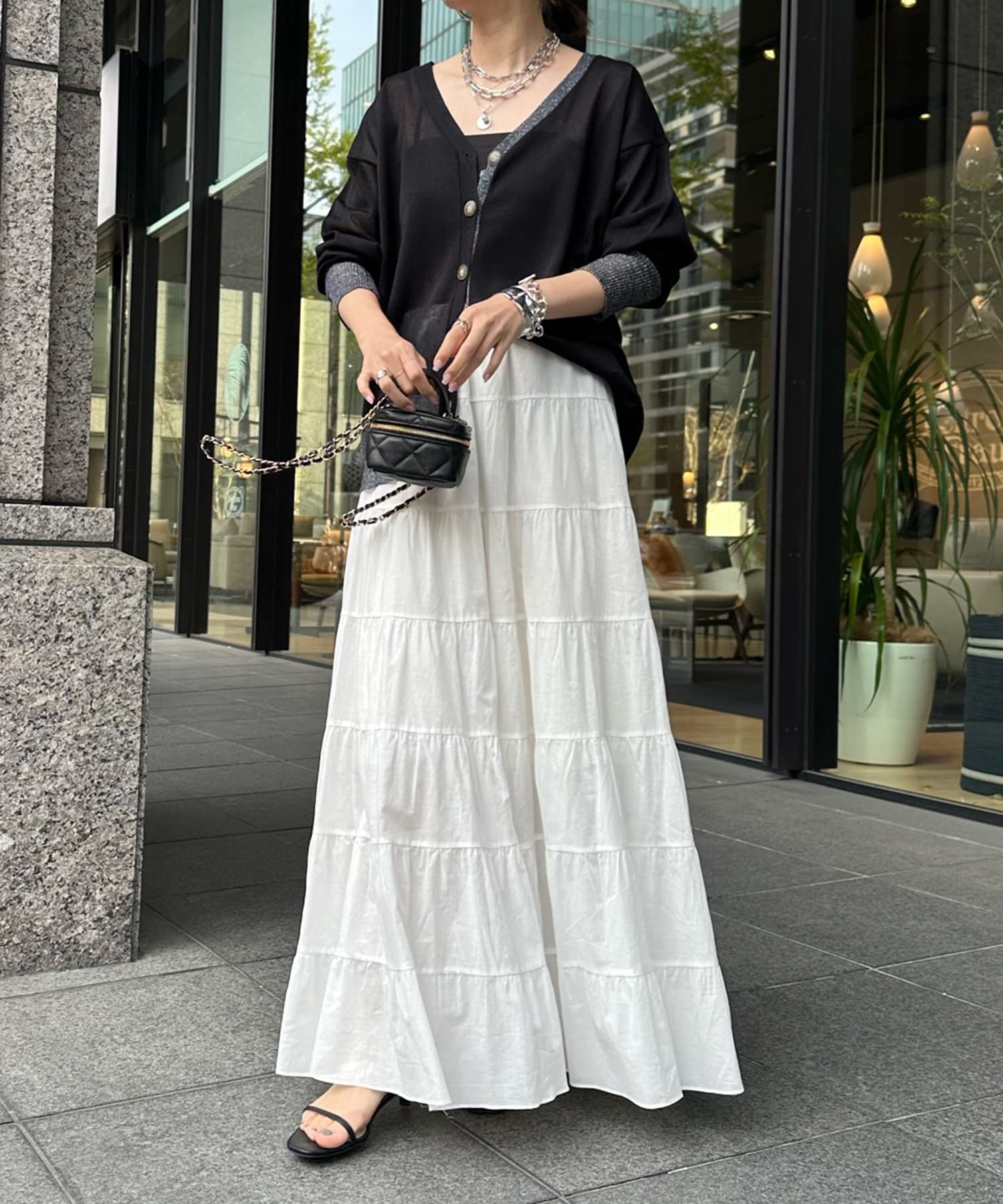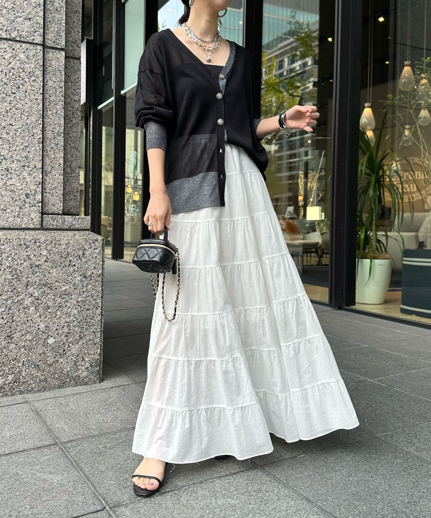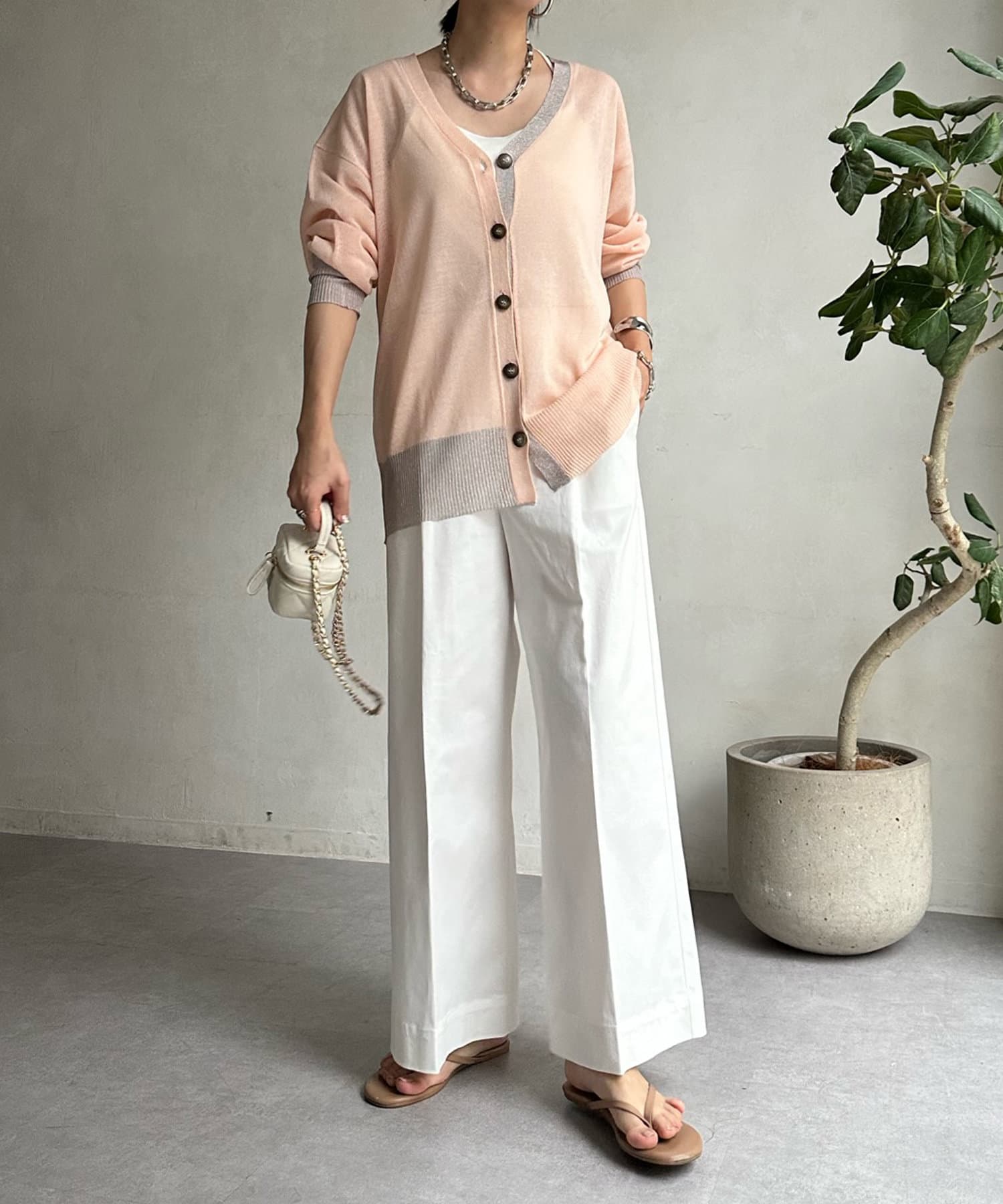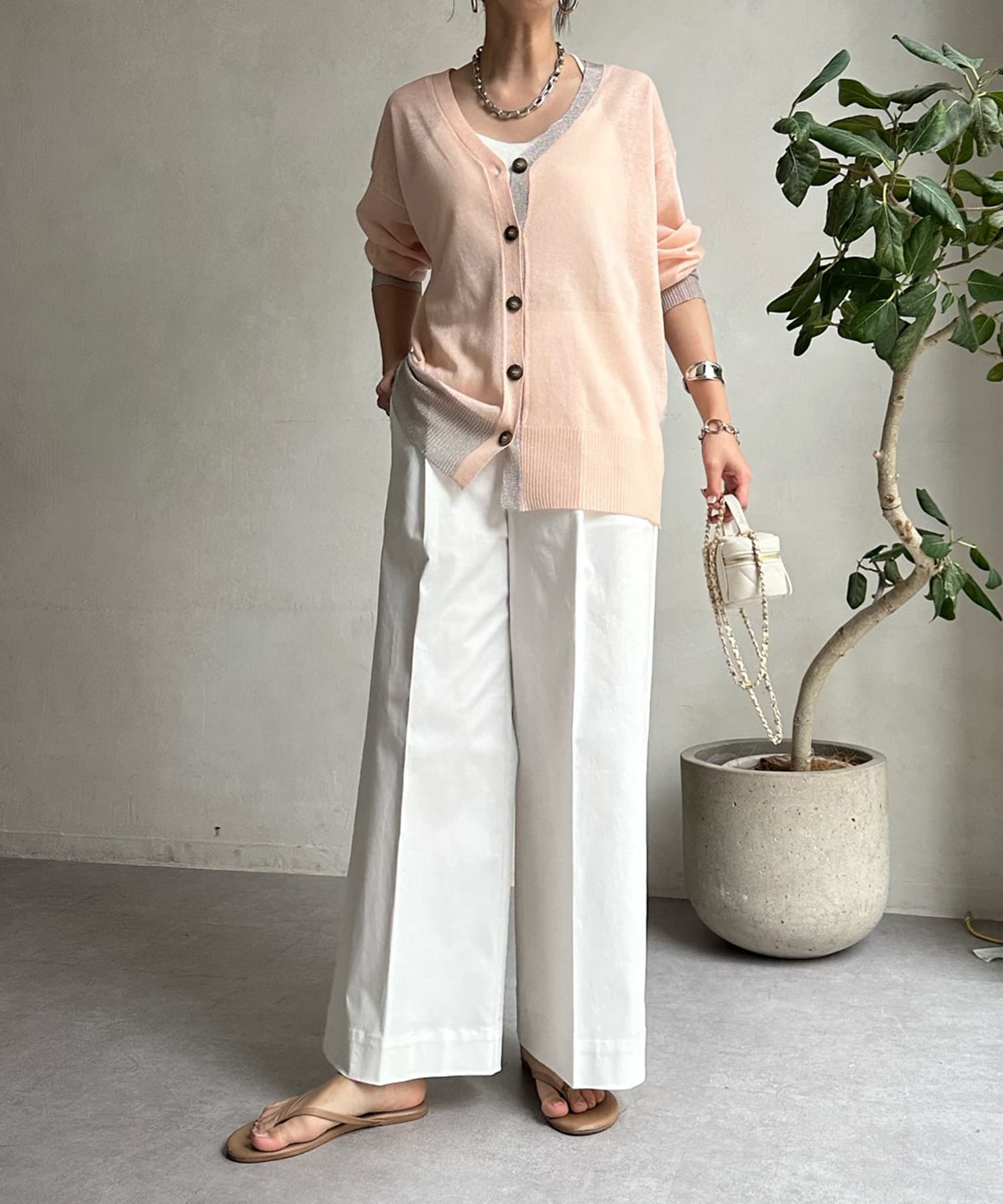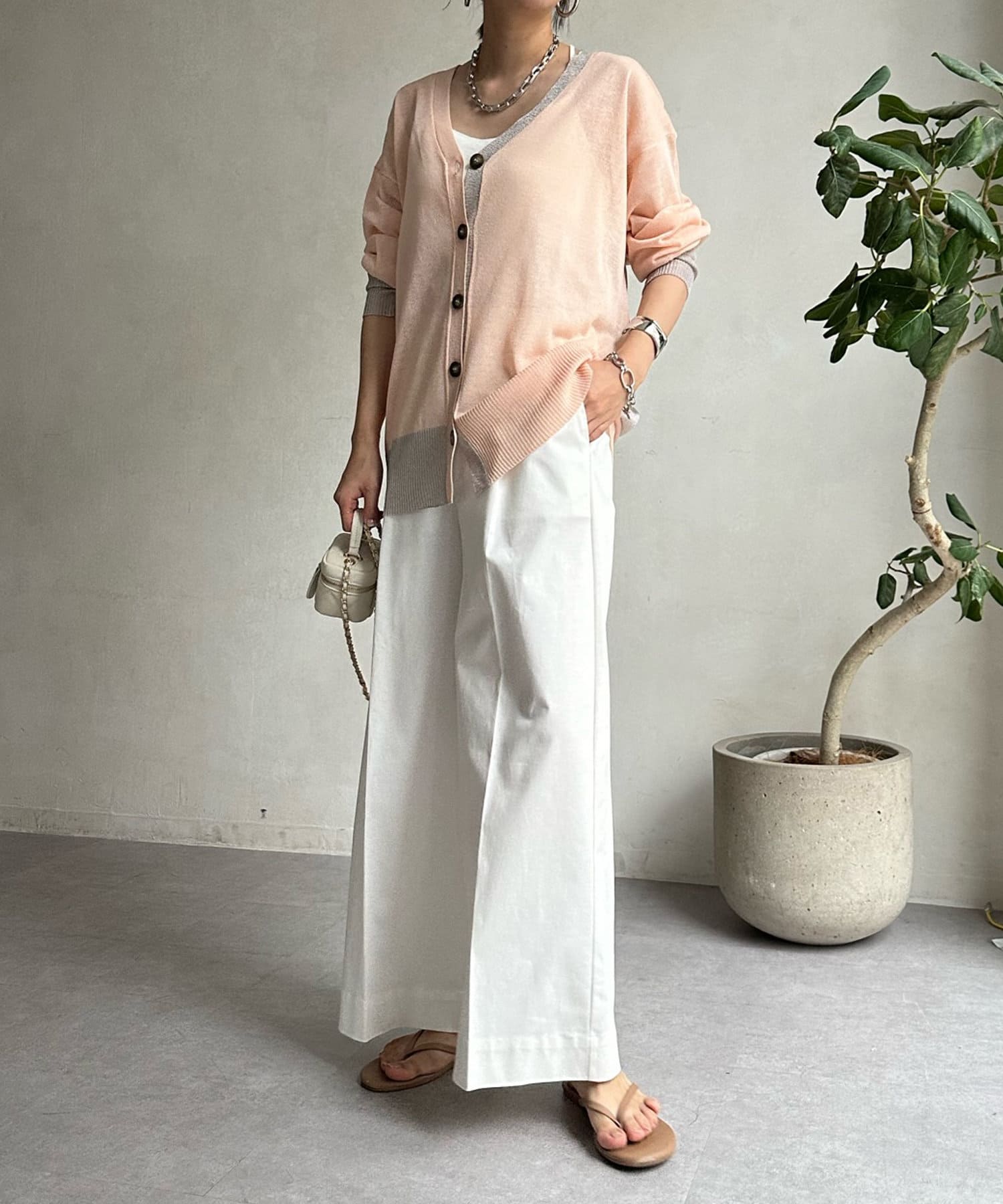 抜け感たっぷりのシアー×ラメカーディガン