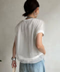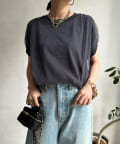 さらっとした薄手で涼しく着られる素材感に、気になる二の腕を自然とカバーしてくれるお袖がうれしい1枚です。