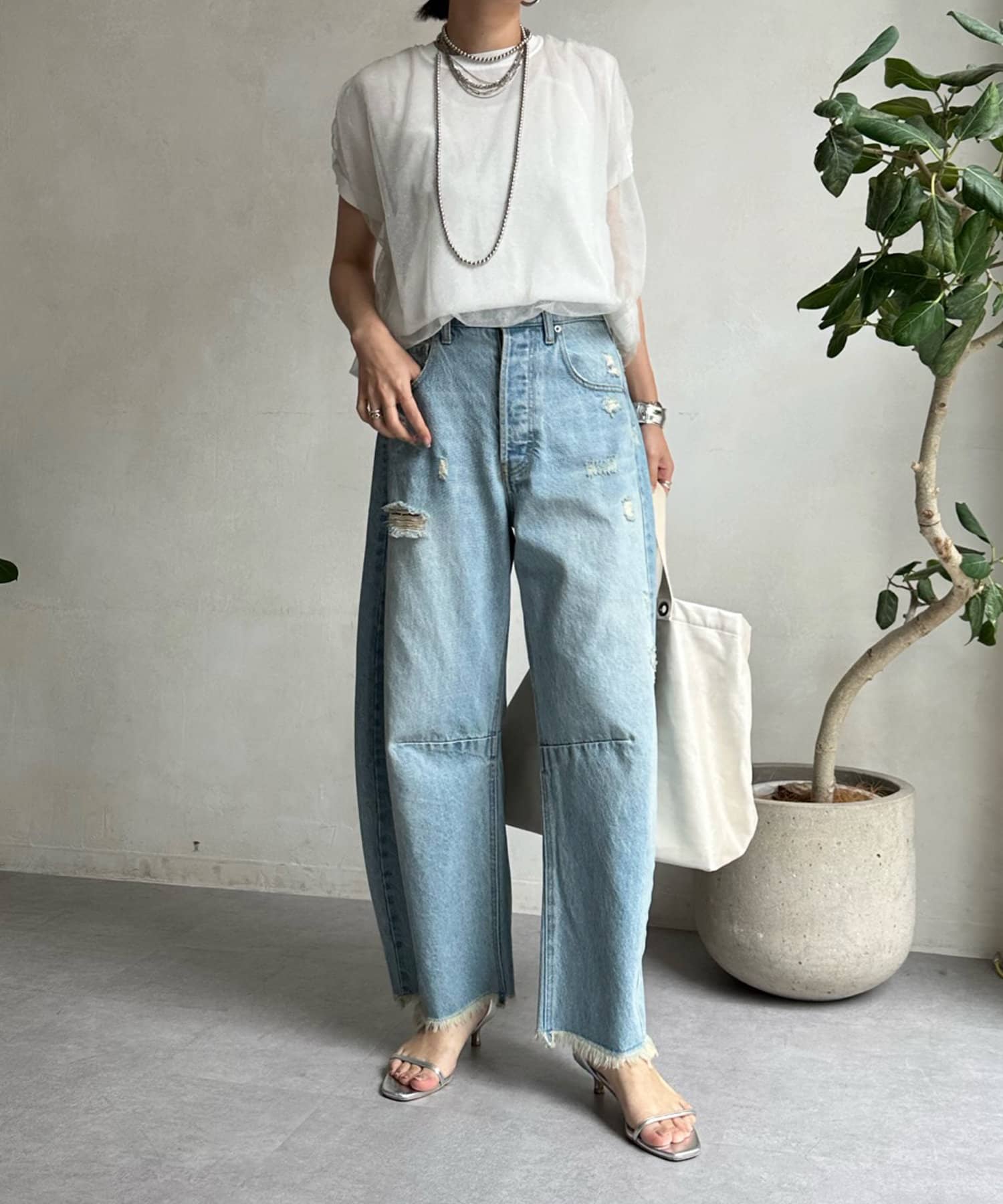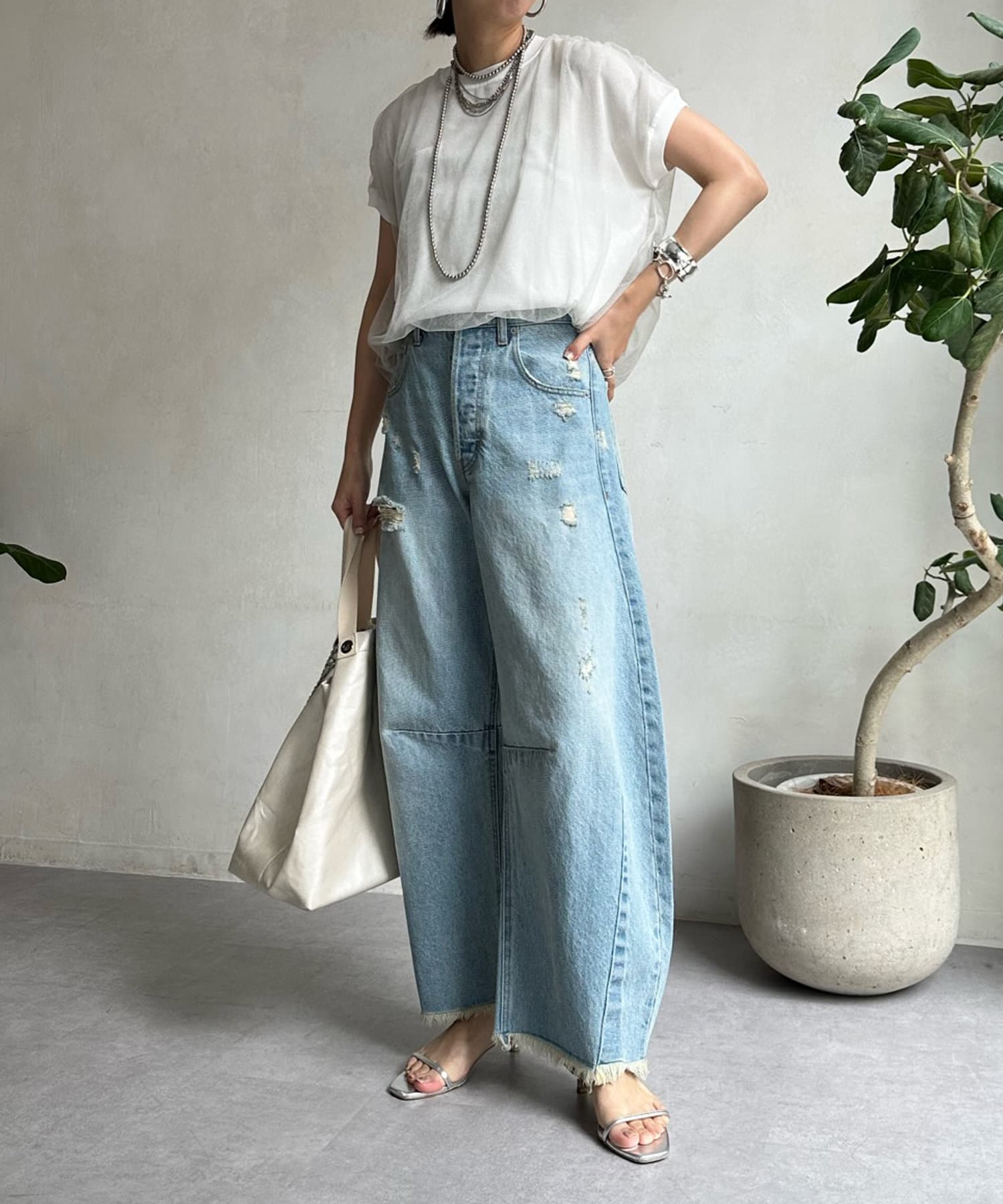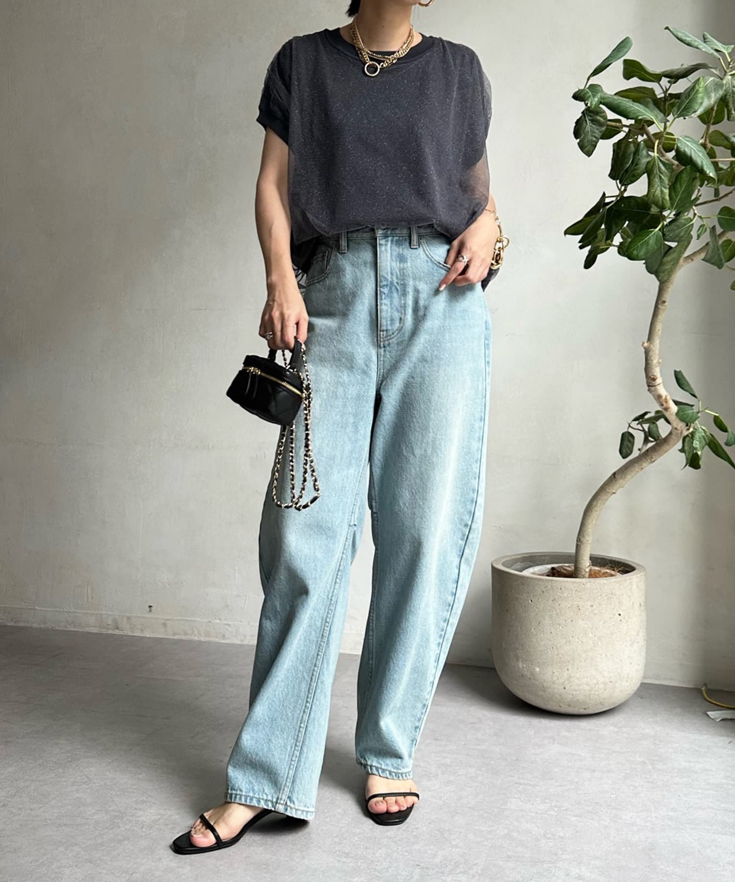 カジュアルなアイテムと合わせてもカジュアルになりすぎないので、大人な印象にに仕上がりますよ。