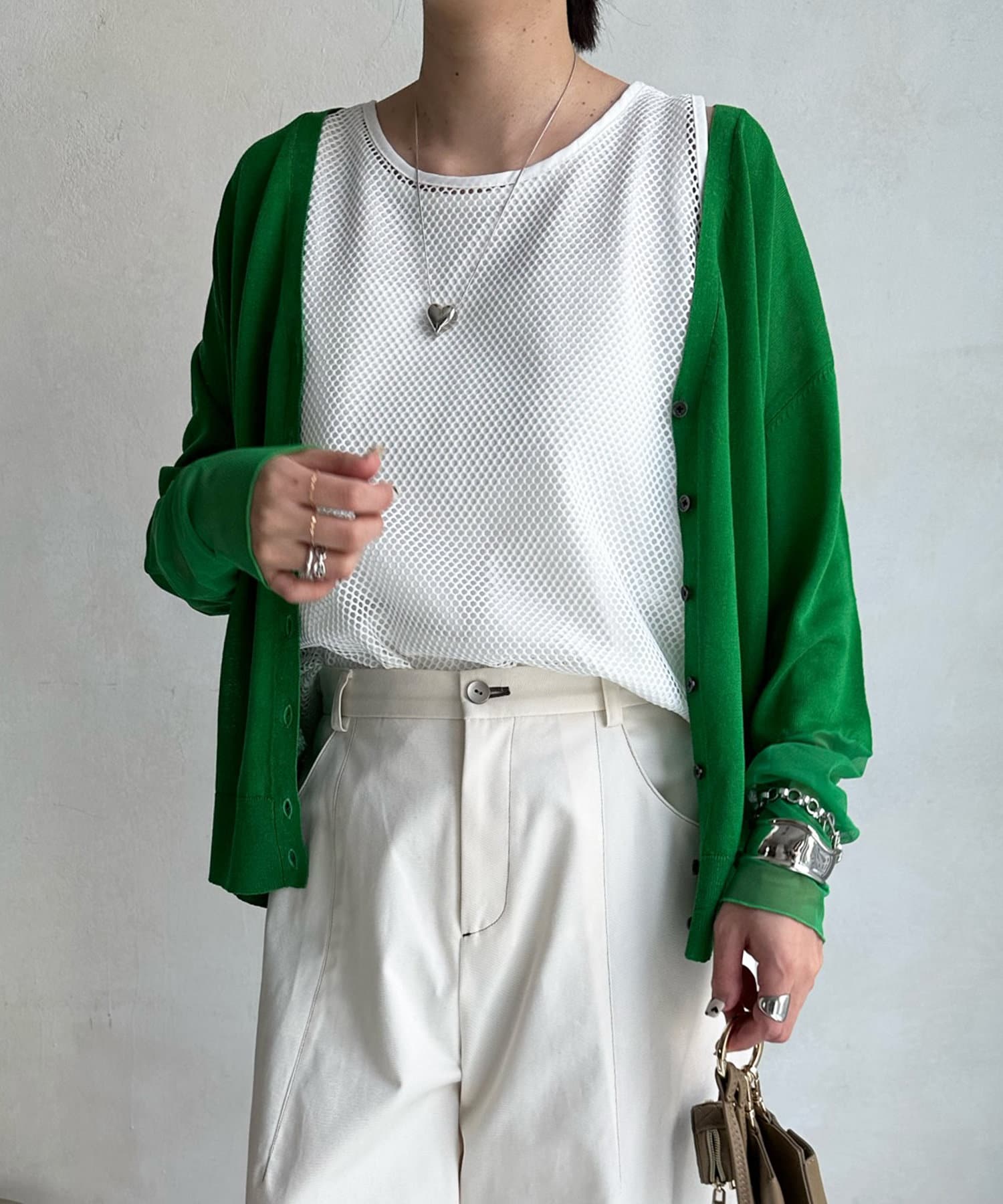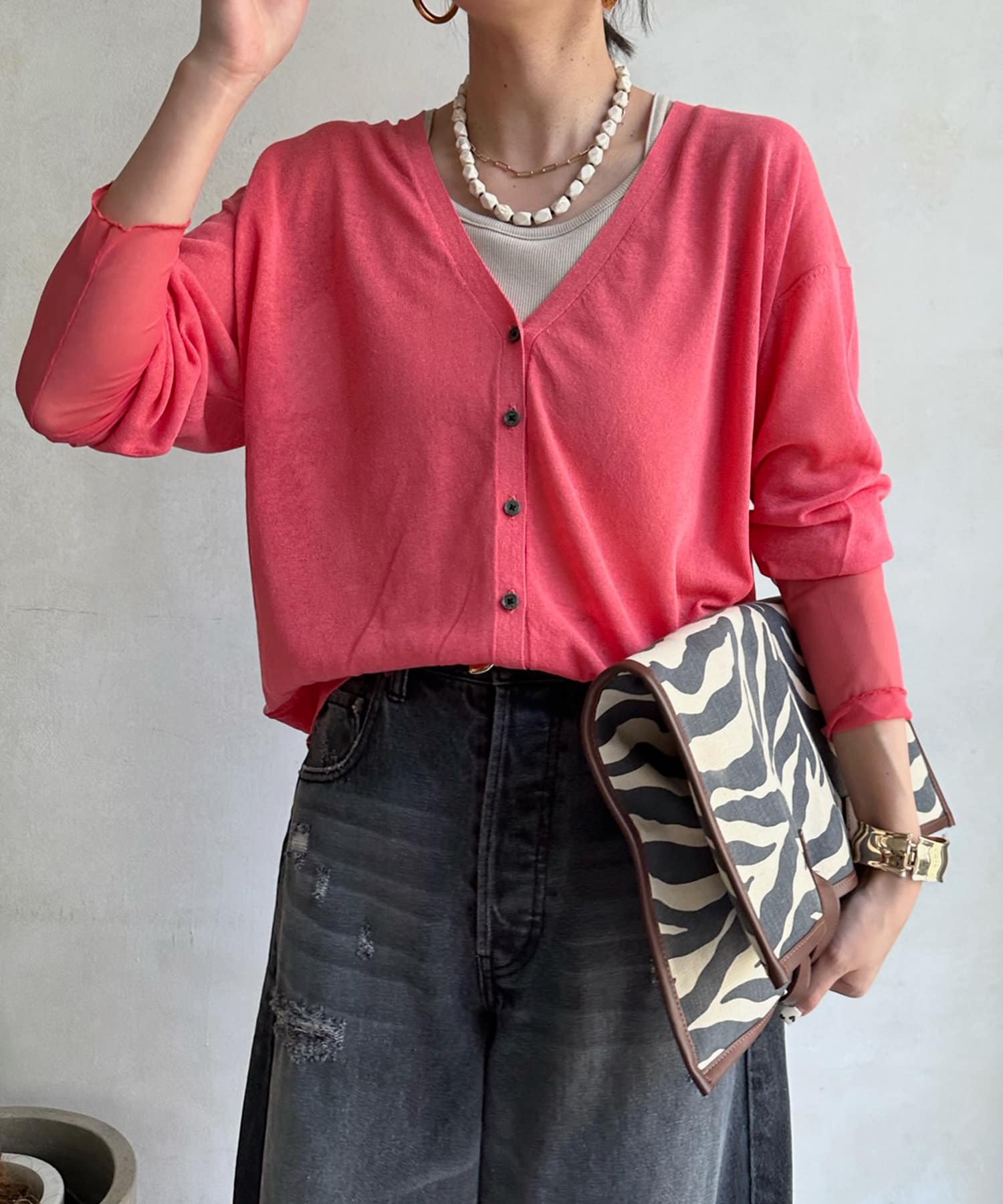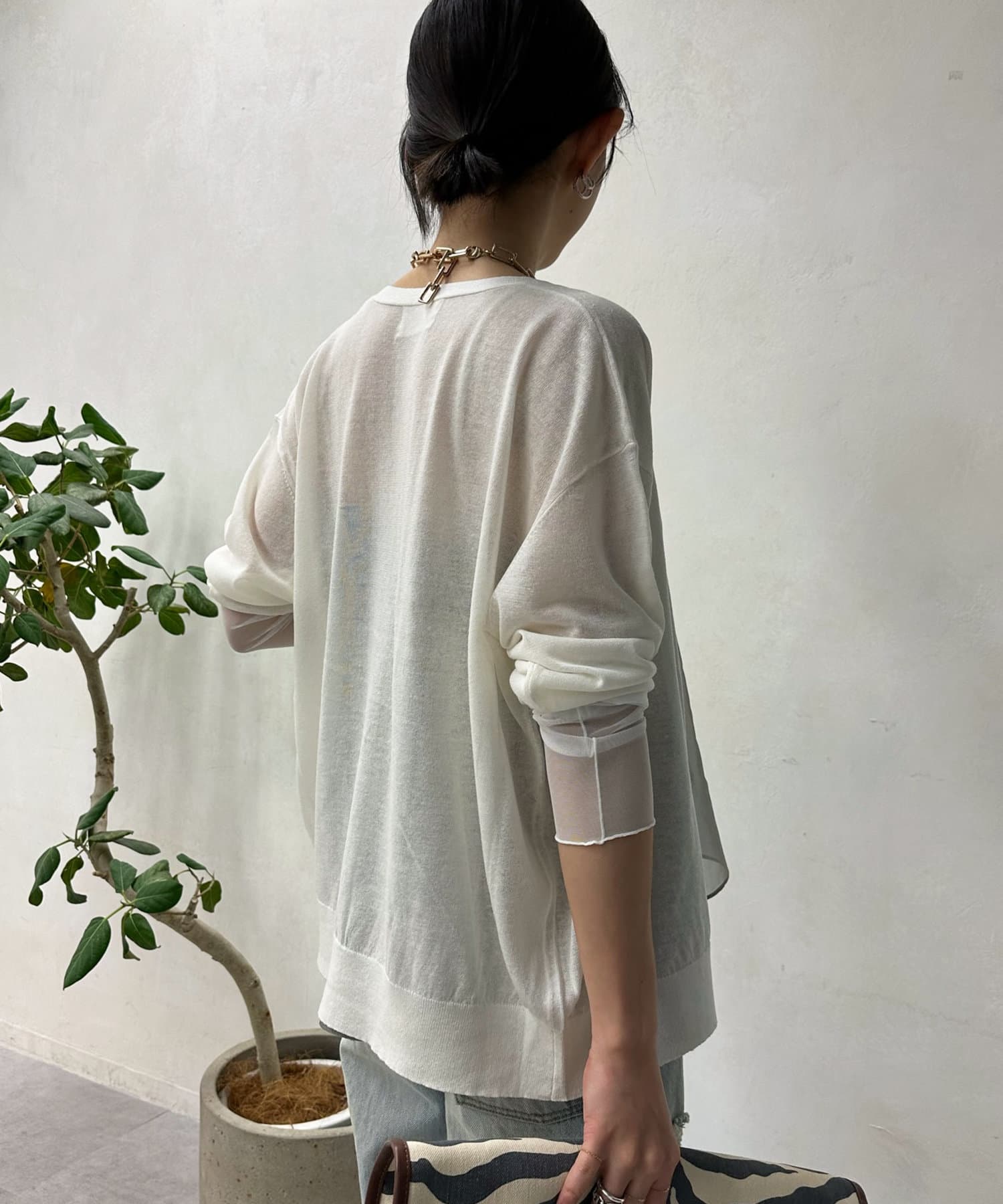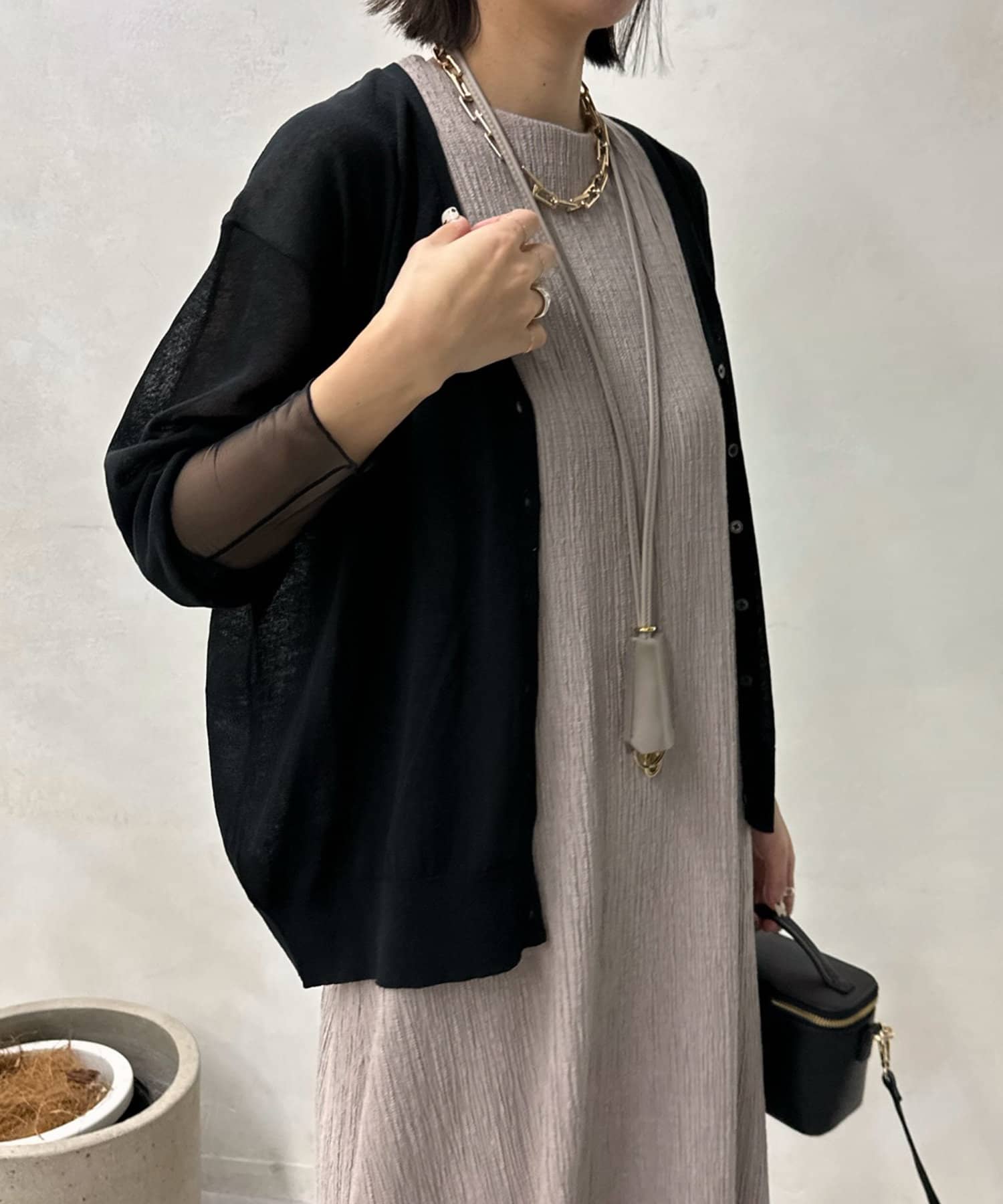ボトムを選ばないデザインで、汎用性が高く1枚着としてはもちろん、羽織りとしてレイヤードスタイルも楽しんでいただけますよ!」