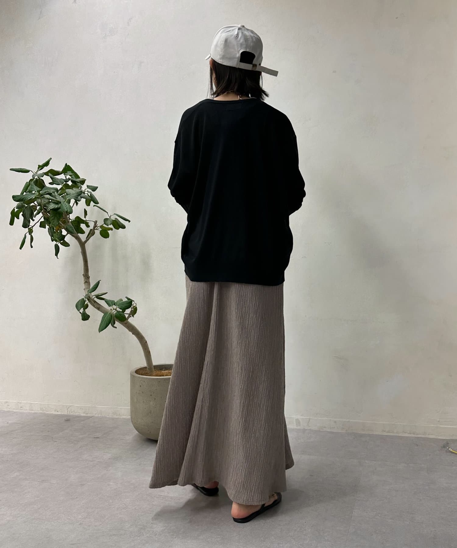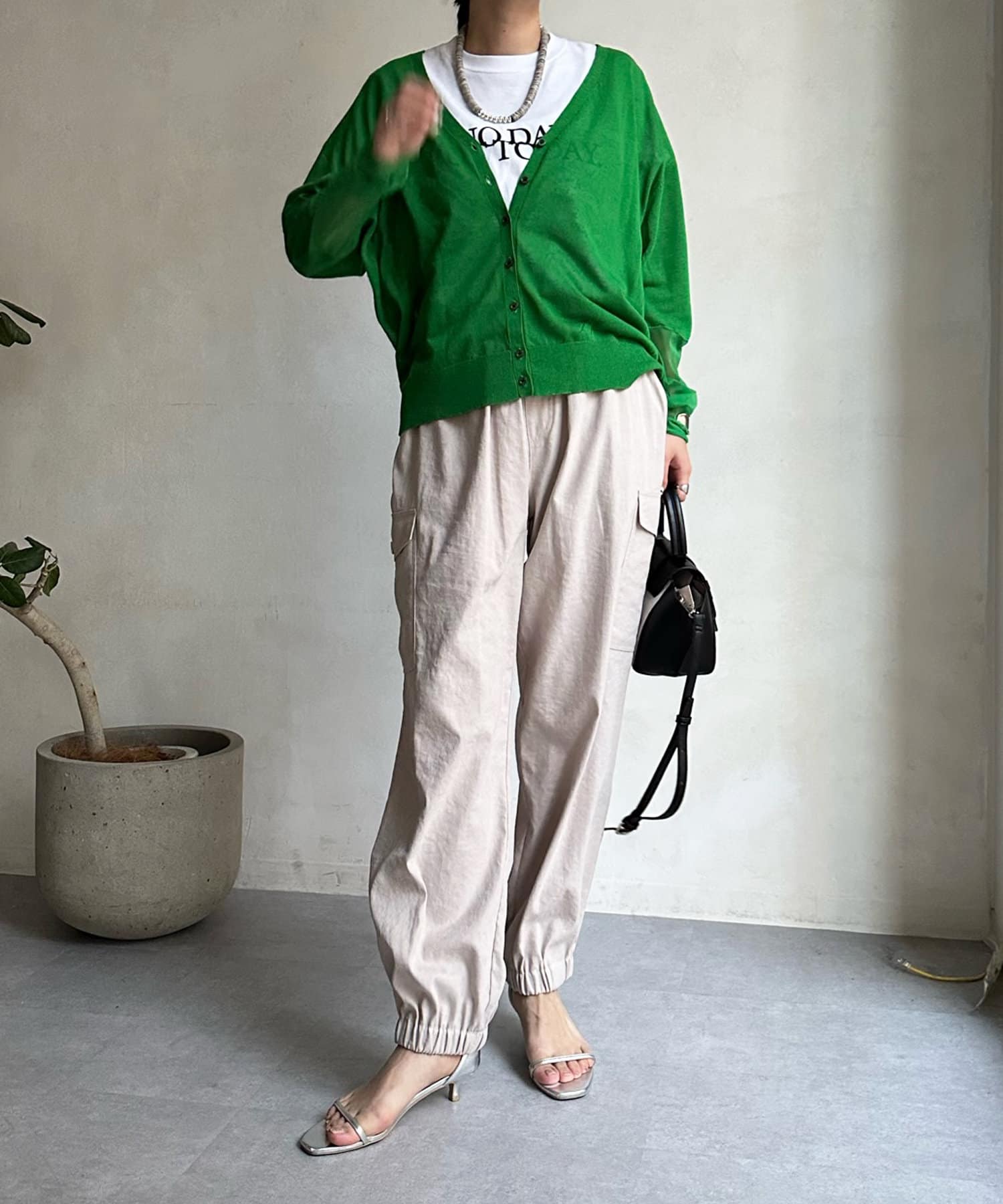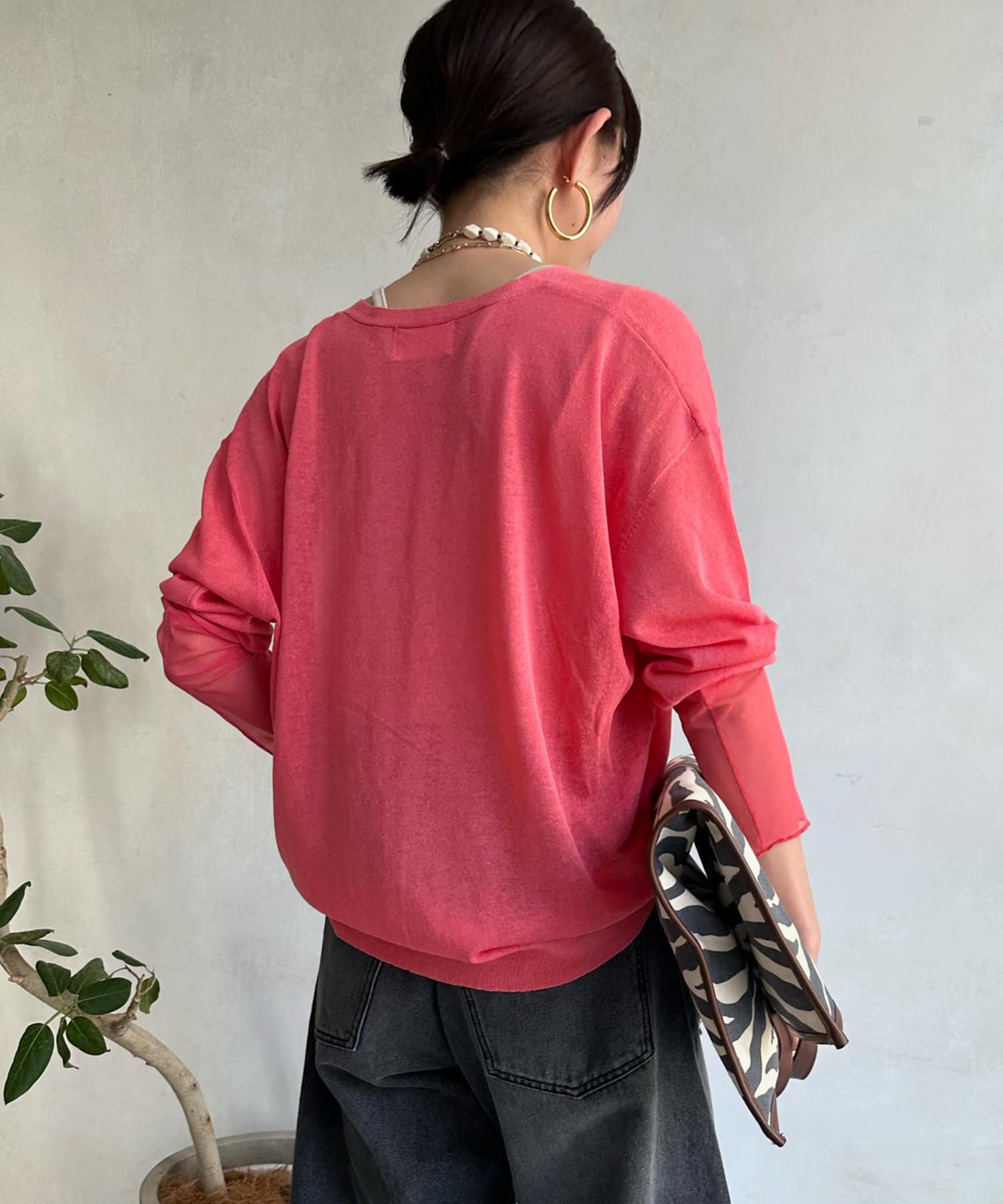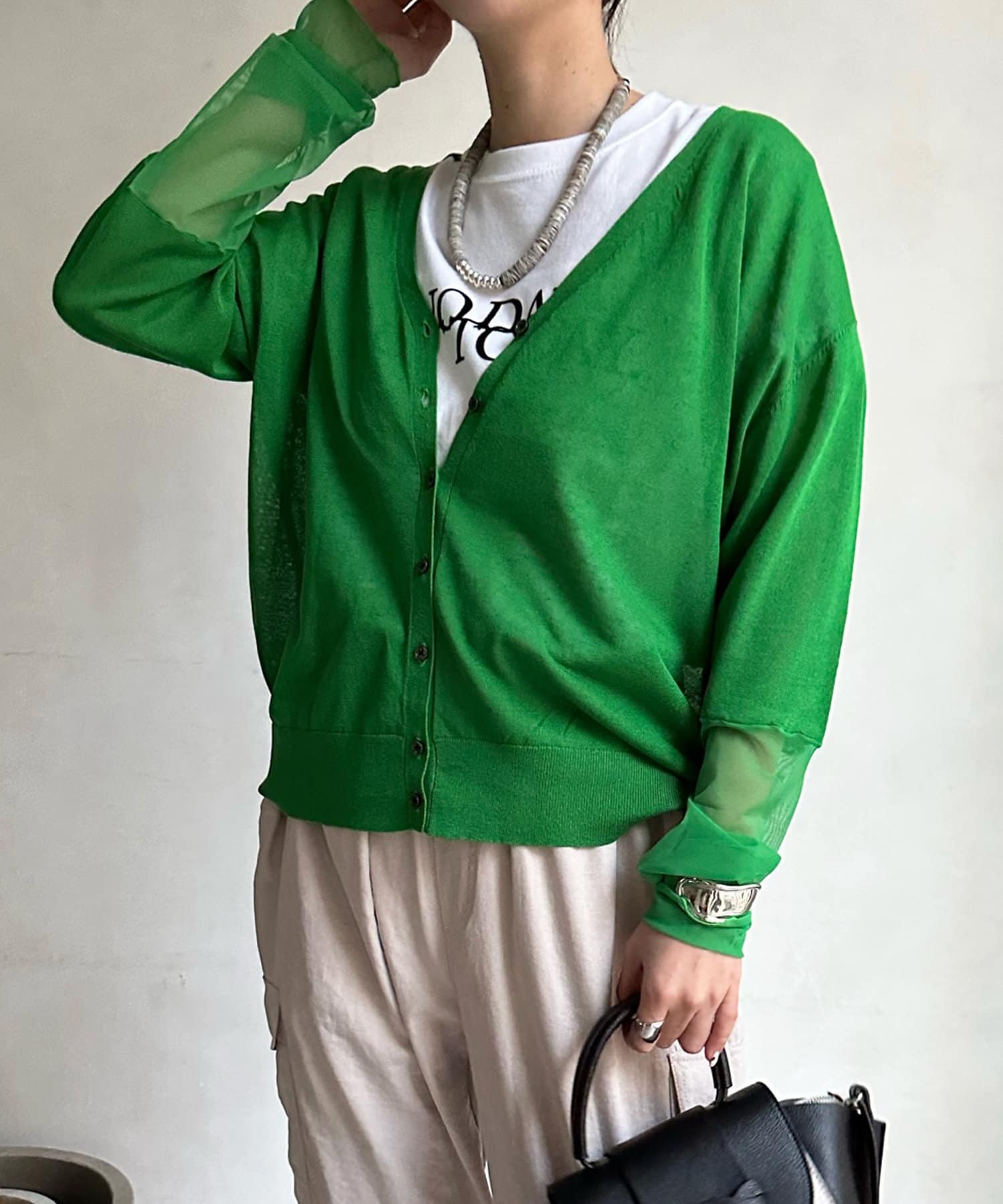 ボトムを選ばないデザインで、汎用性が高く1枚着としてはもちろん、羽織りとしてレイヤードスタイルも楽しんでいただけますよ!」