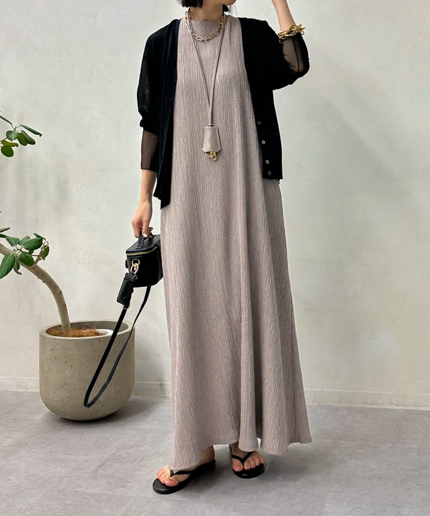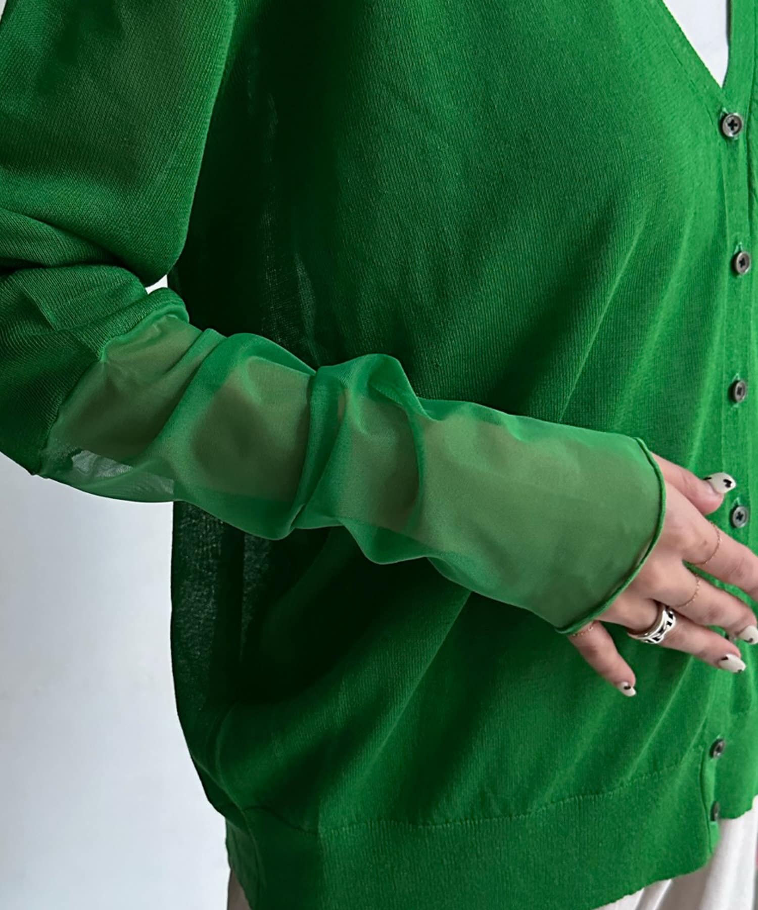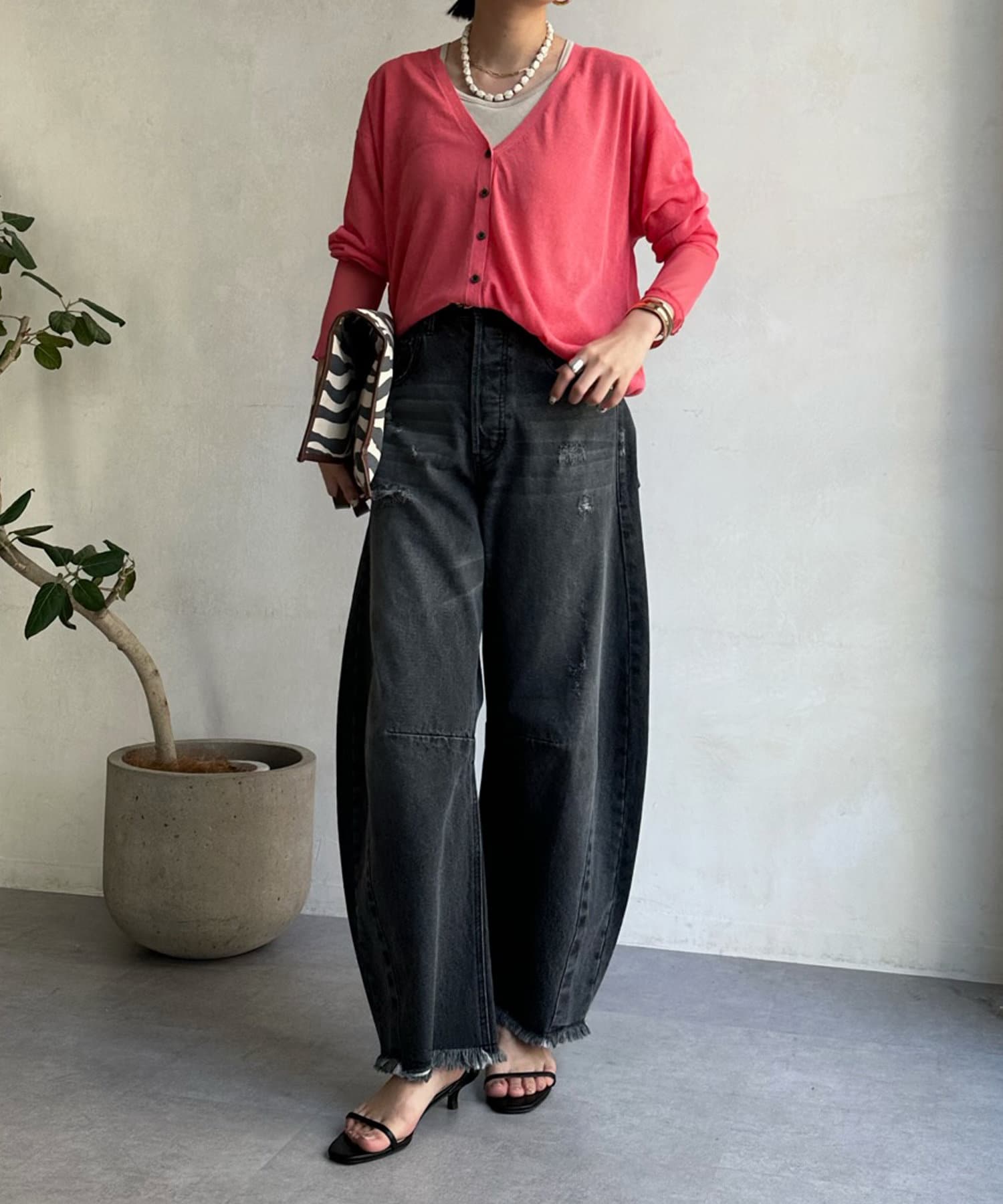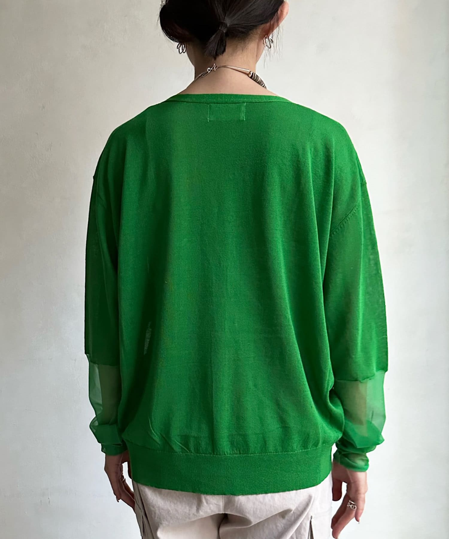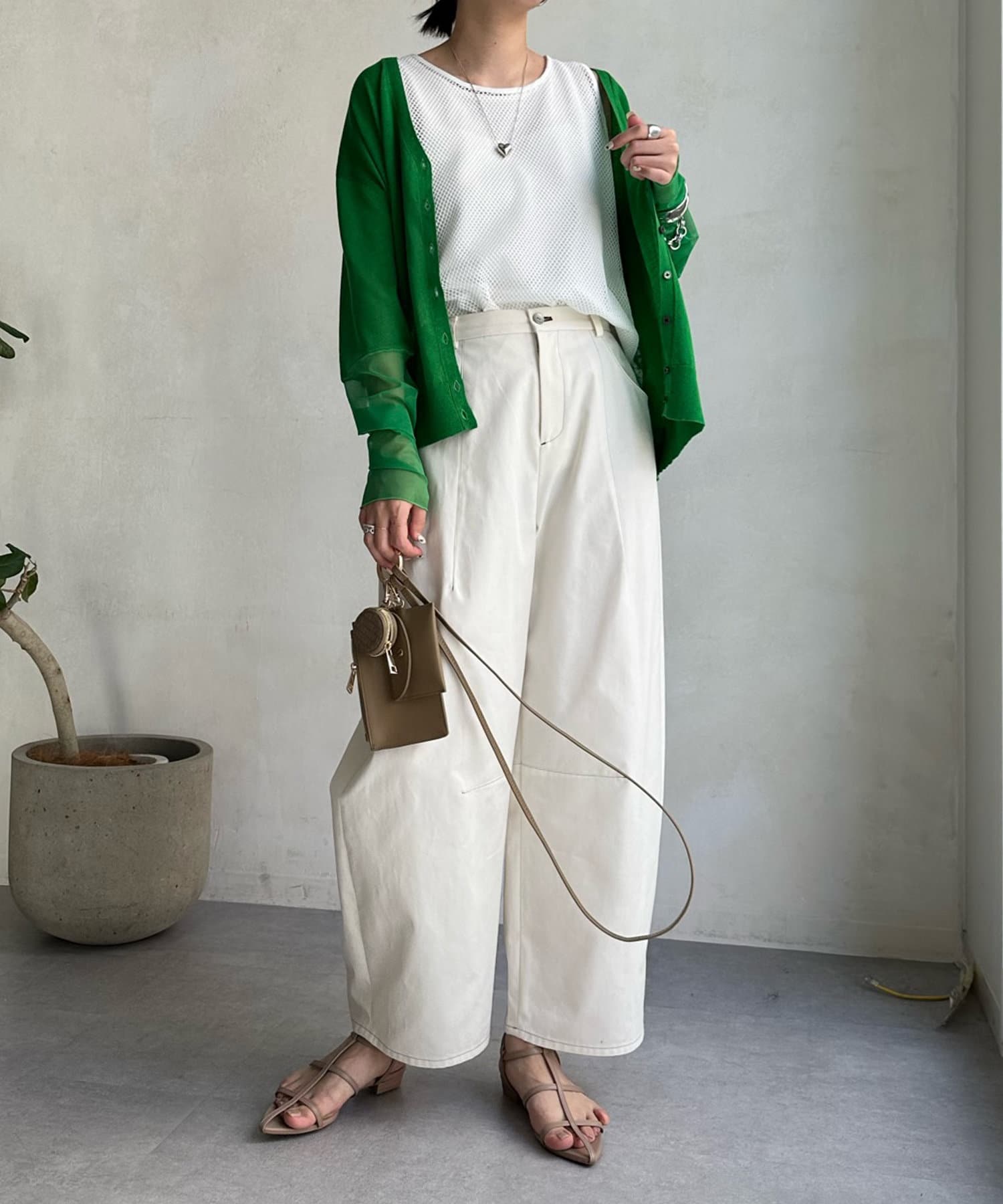 ボトムを選ばないデザインで、汎用性が高く1枚着としてはもちろん、羽織りとしてレイヤードスタイルも楽しんでいただけますよ!」