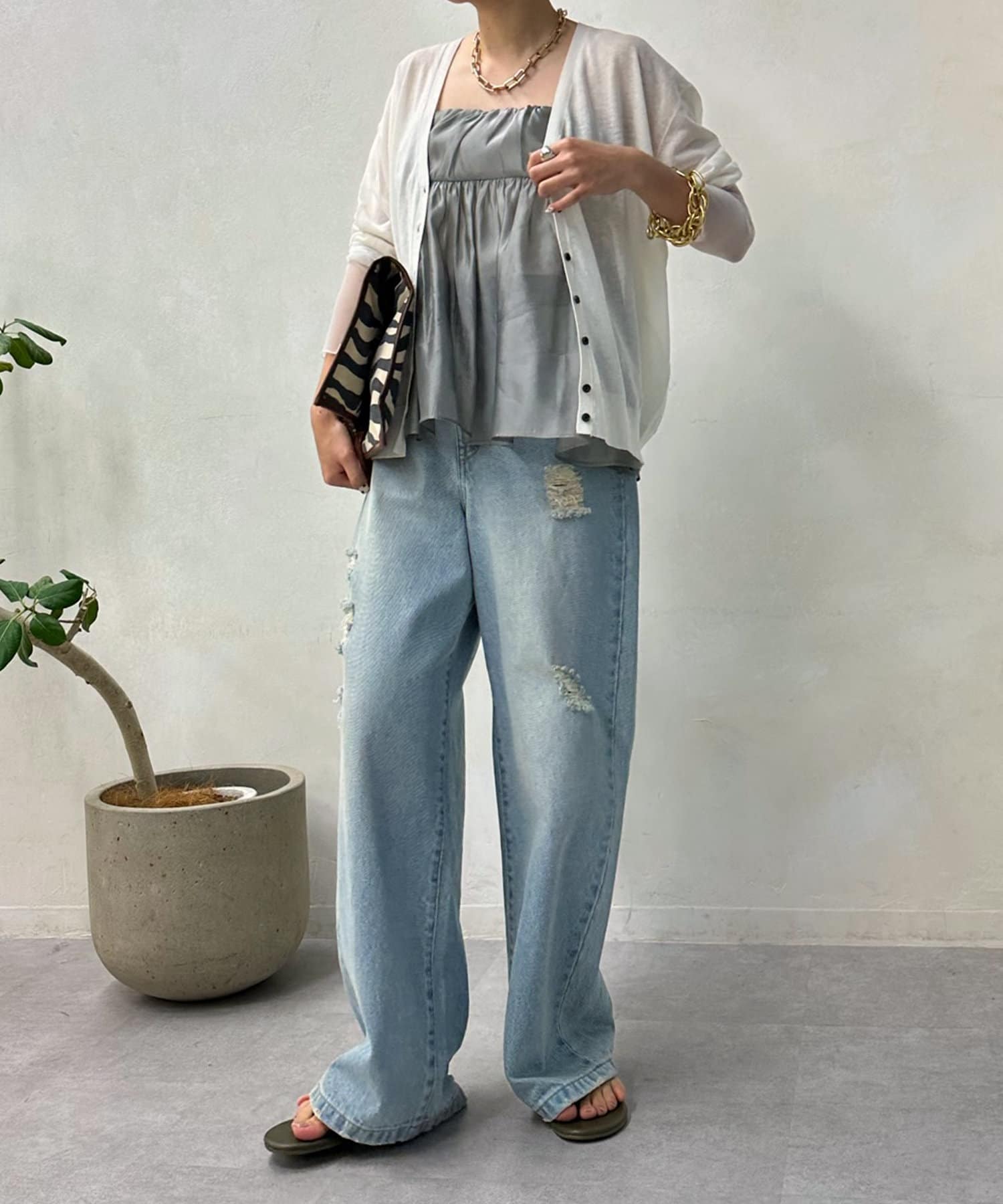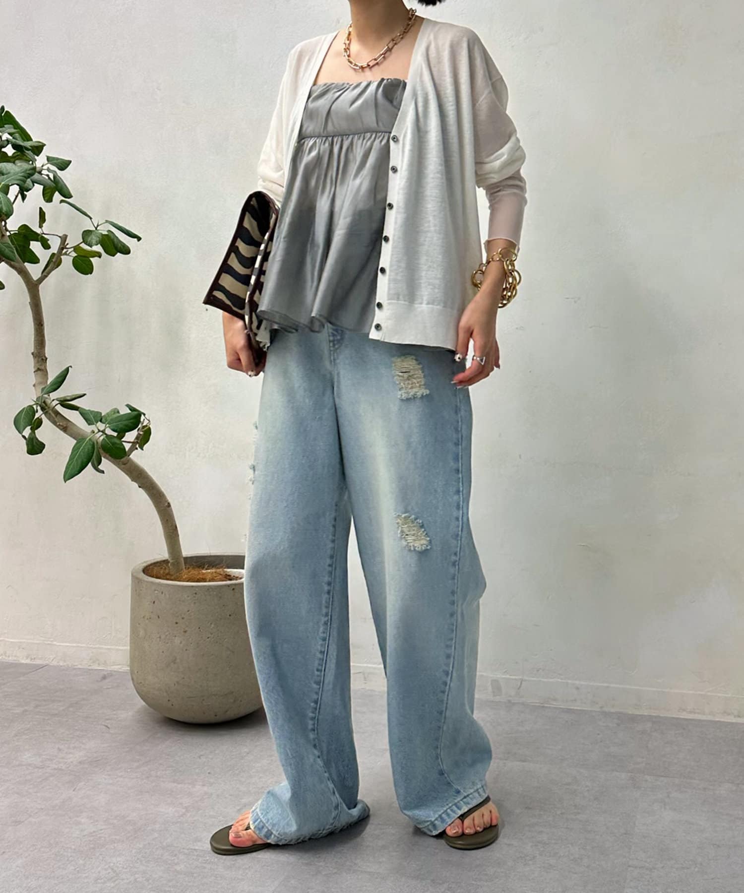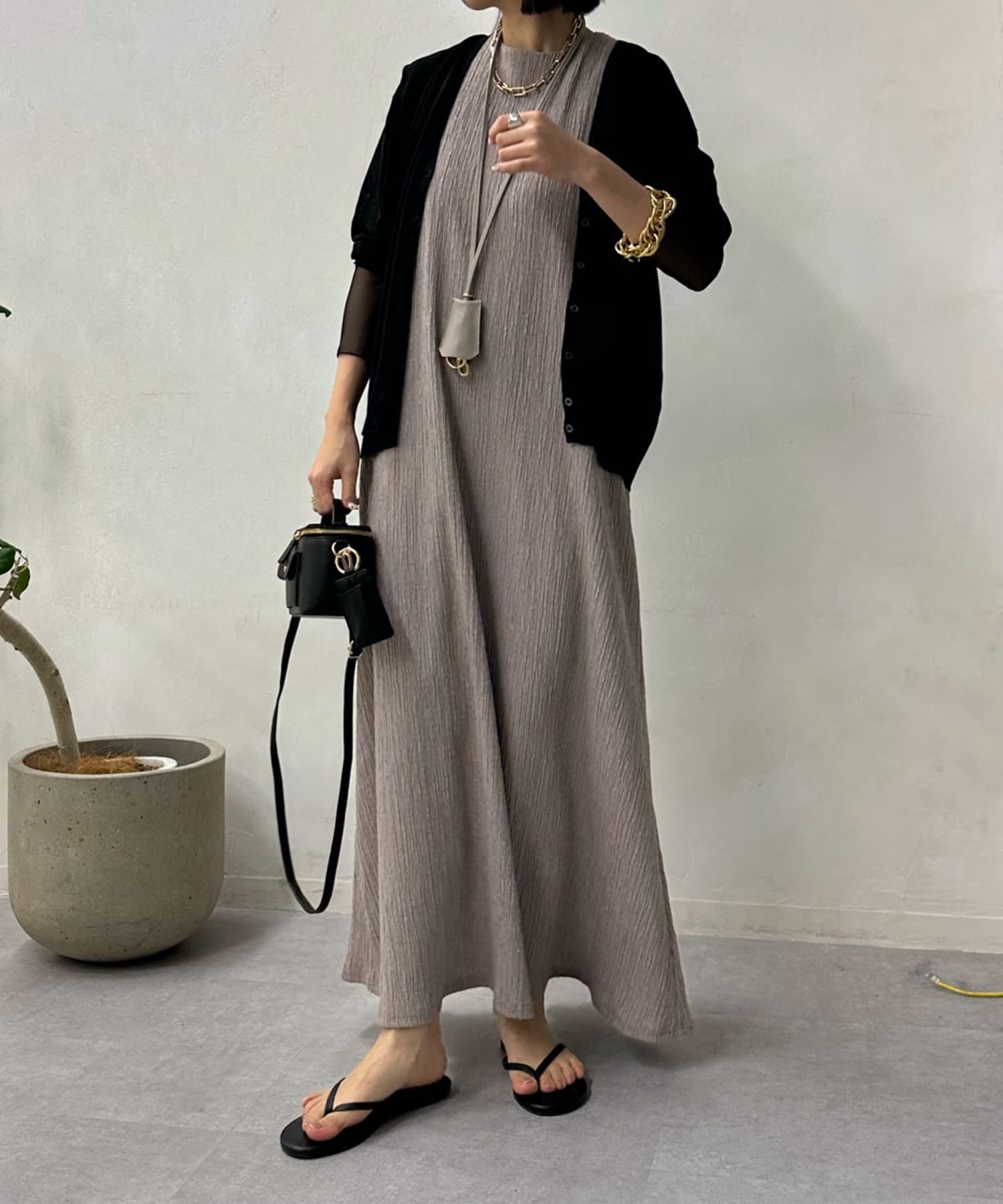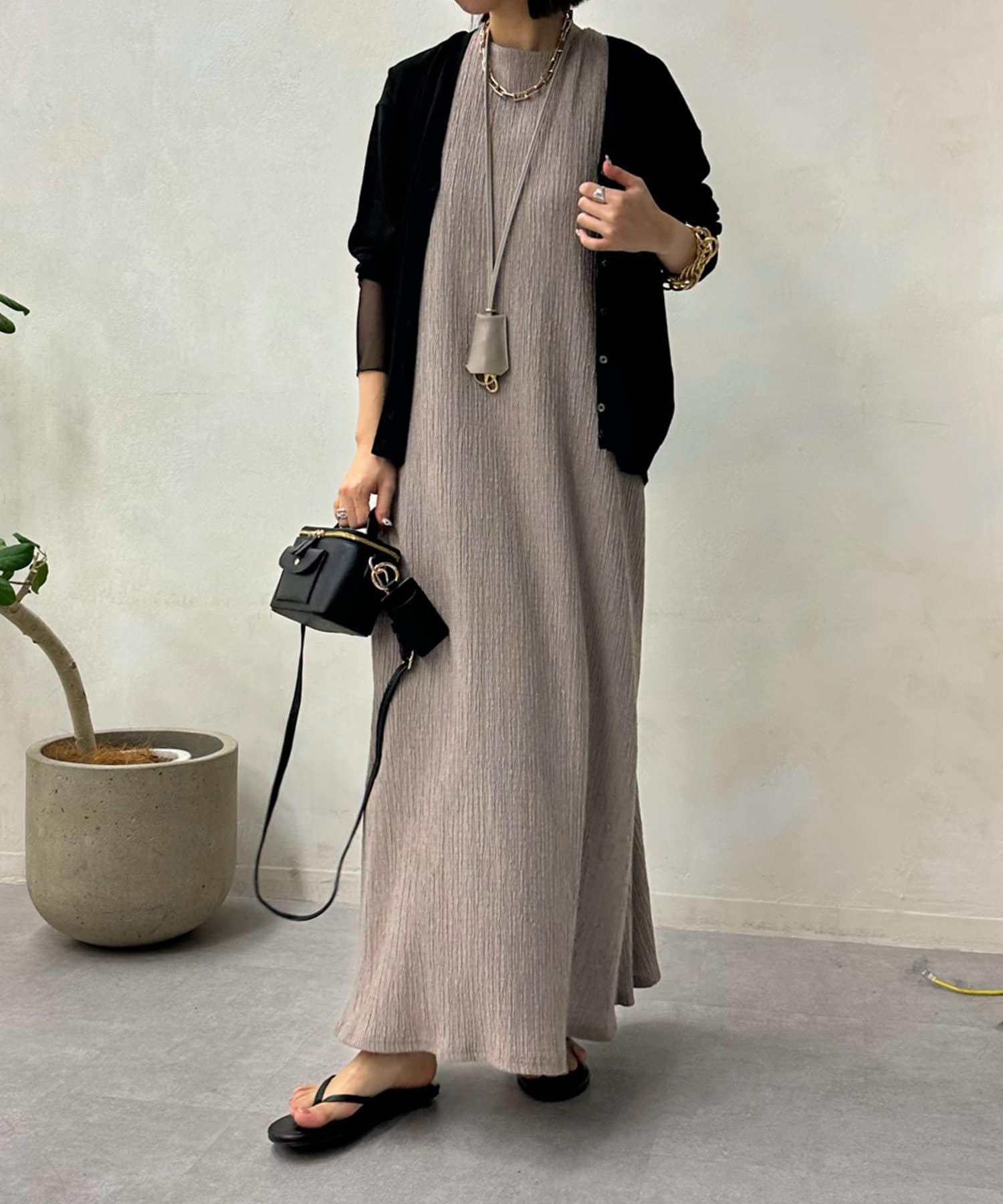ボトムを選ばないデザインで、汎用性が高く1枚着としてはもちろん、羽織りとしてレイヤードスタイルも楽しんでいただけますよ!」
