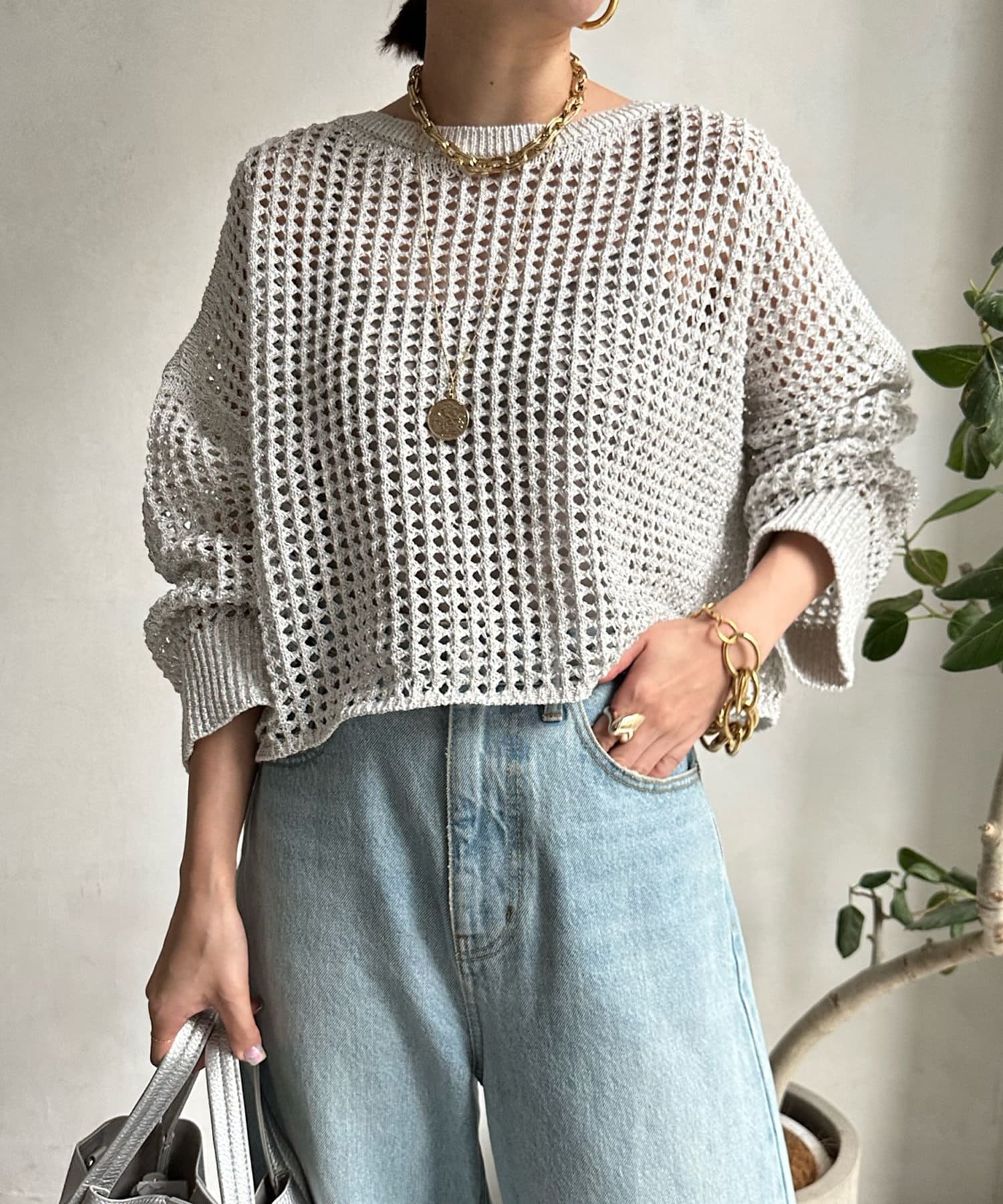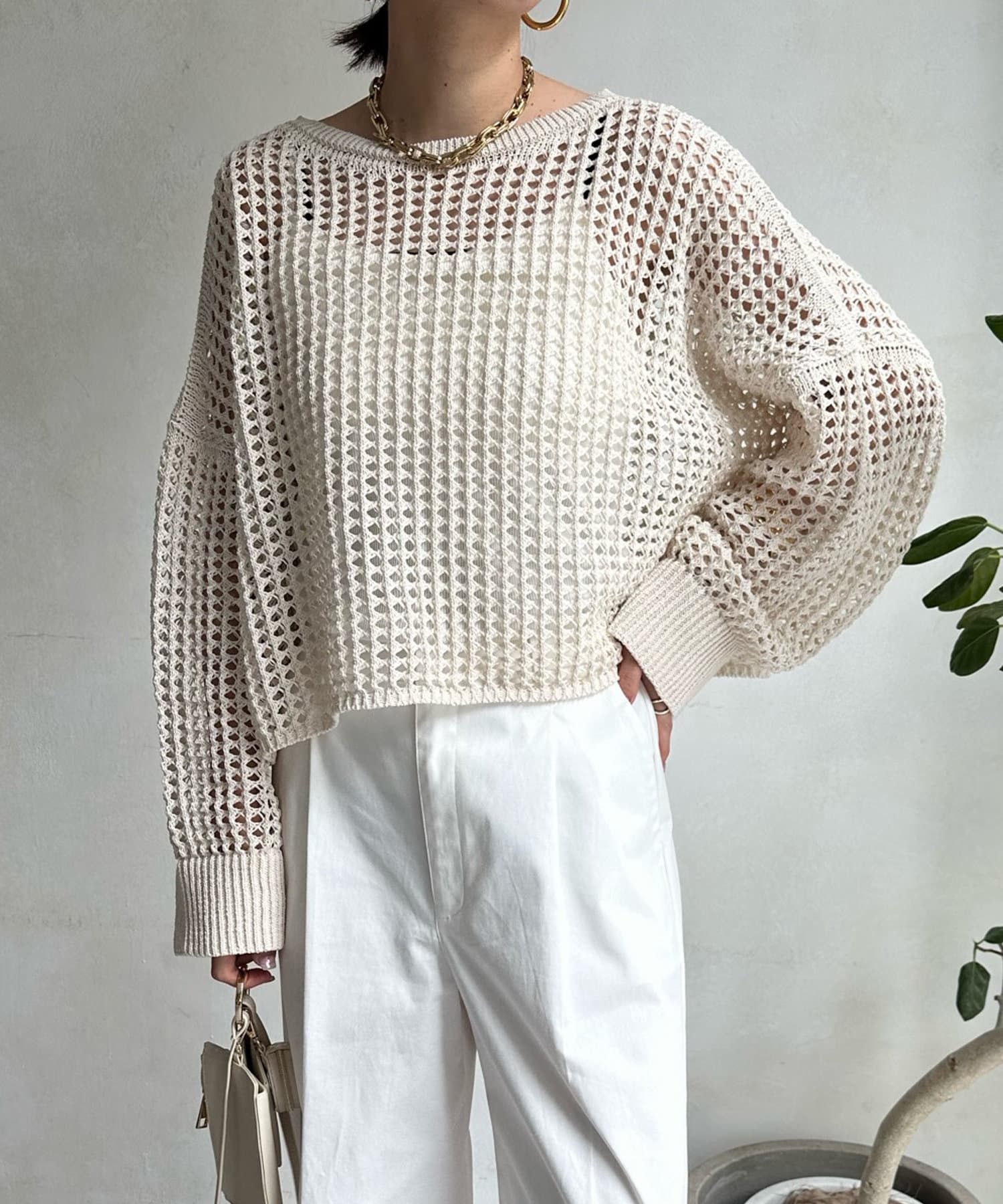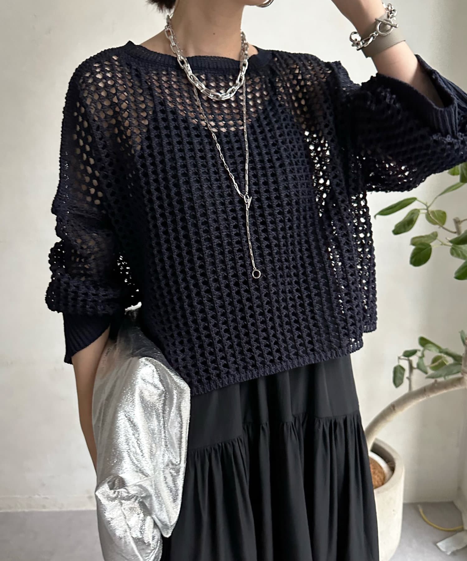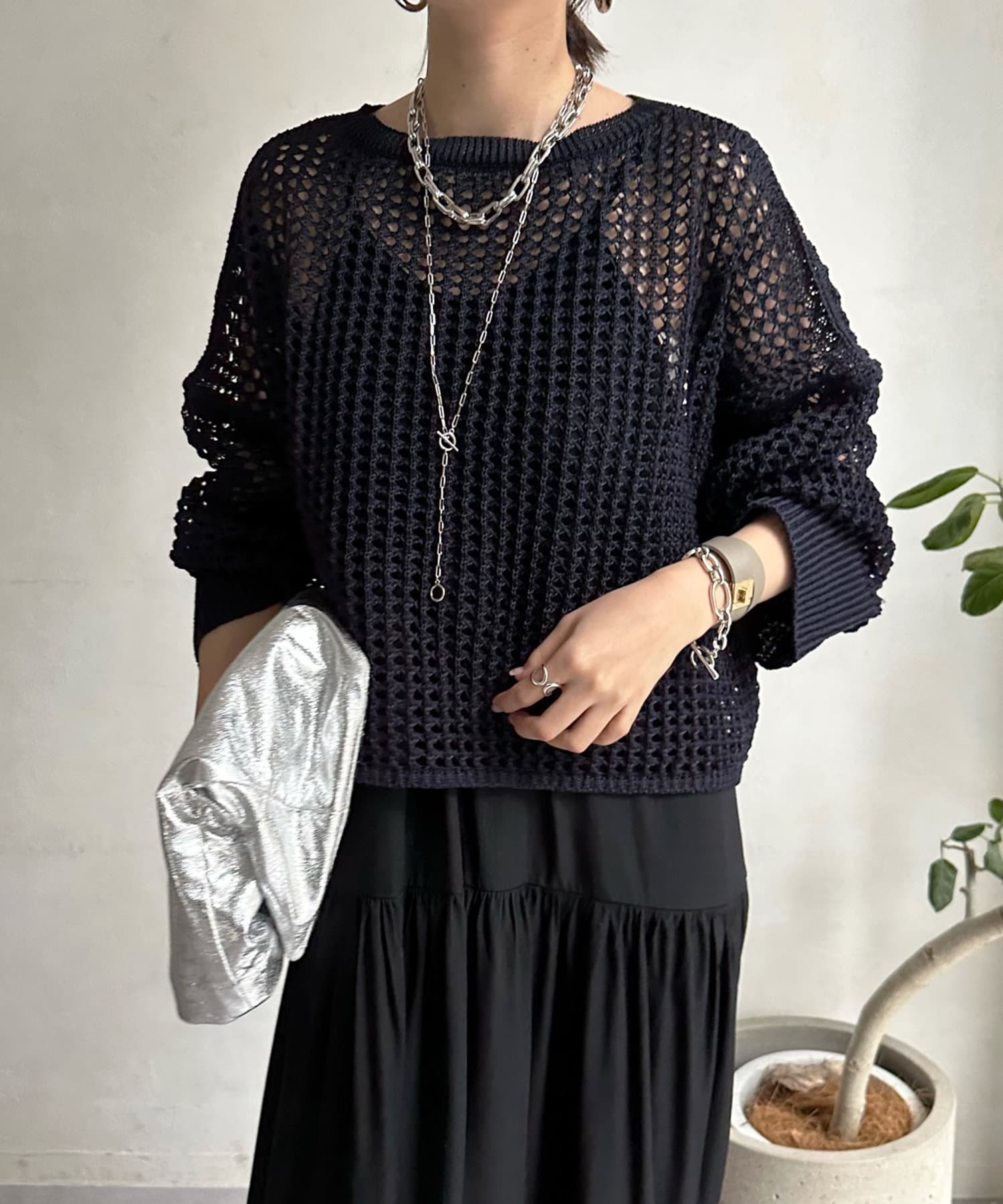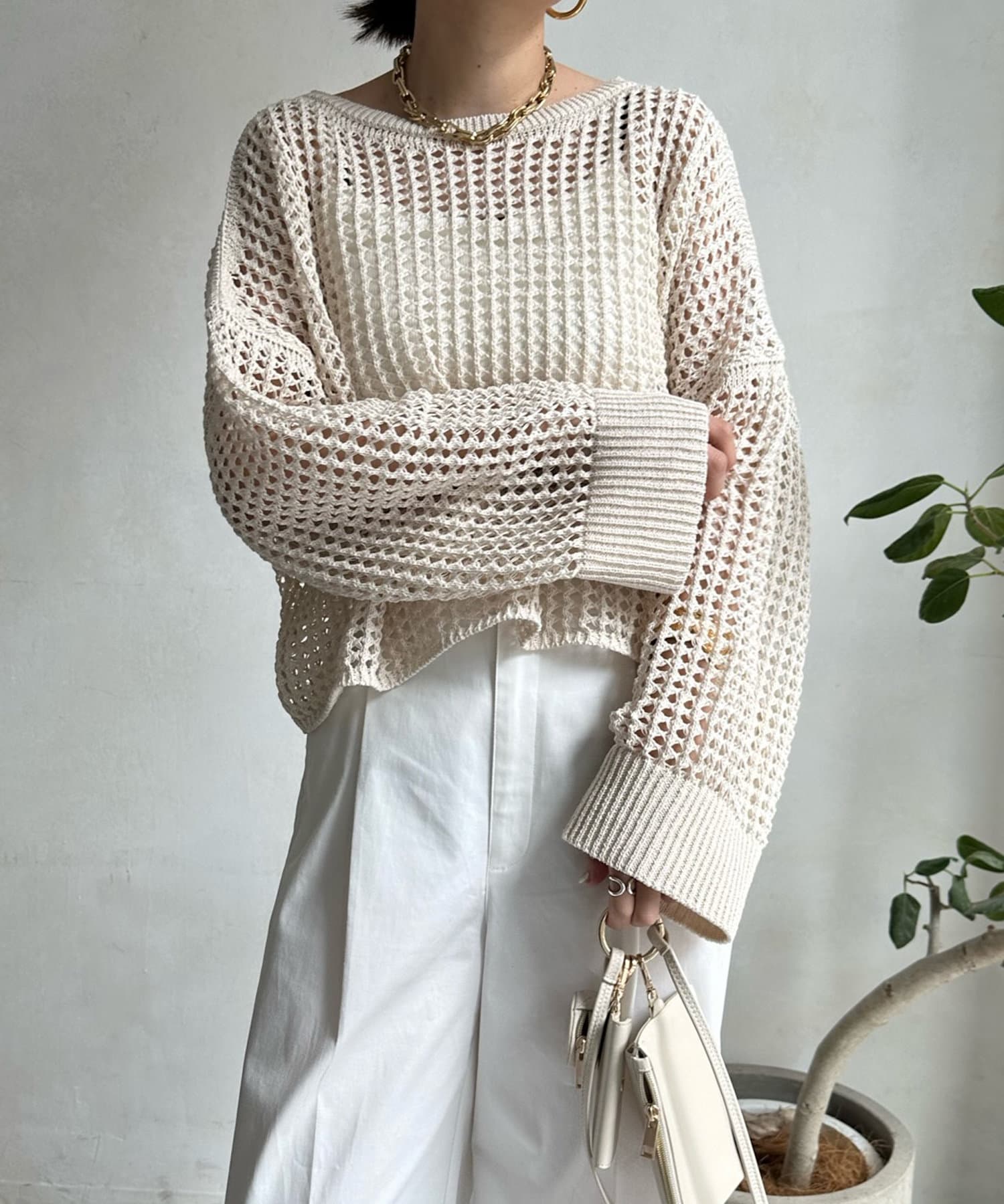粗めの編地はキャミやタンクをインナーに合わせるだけで、真夏まで着回していただけます。