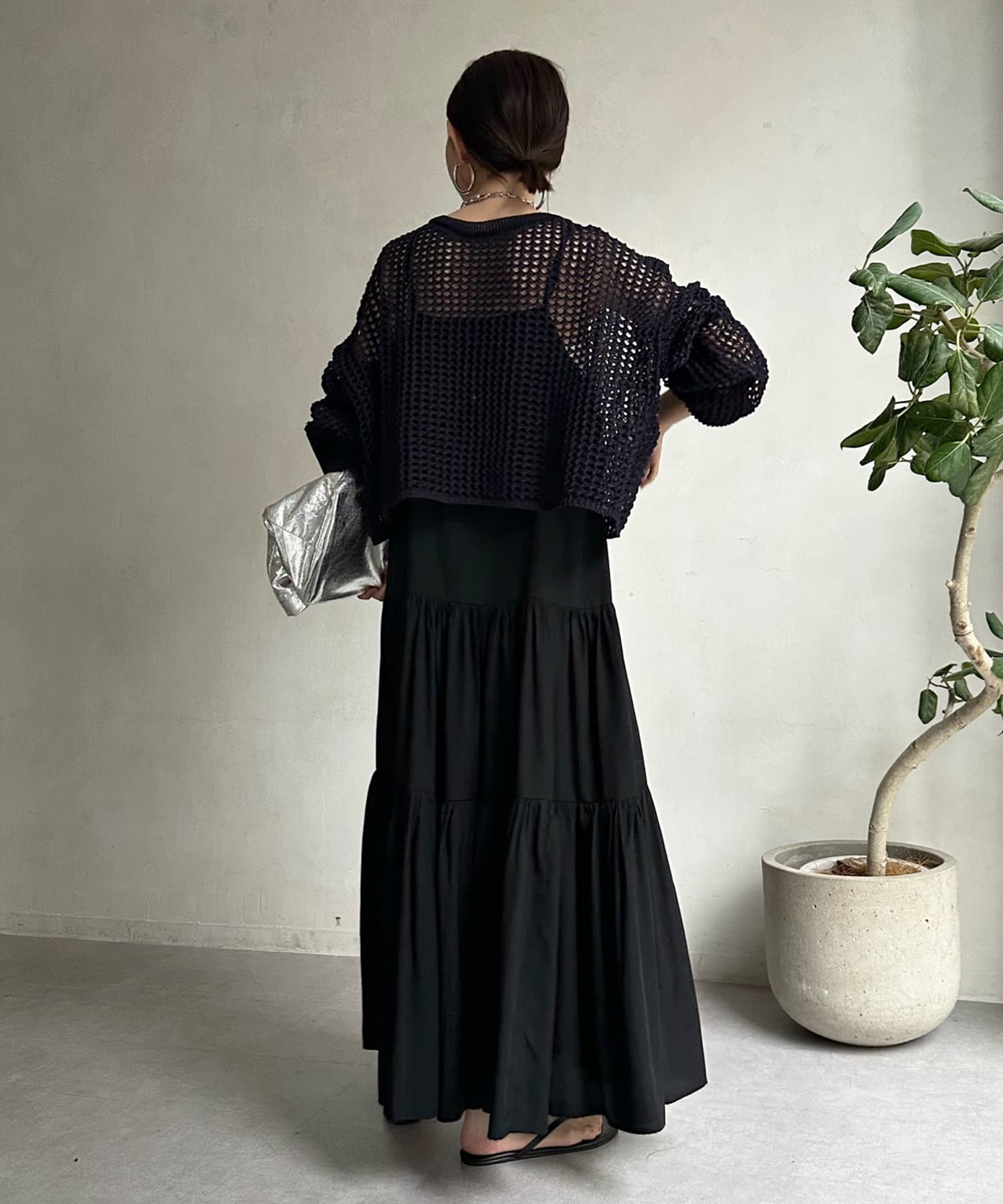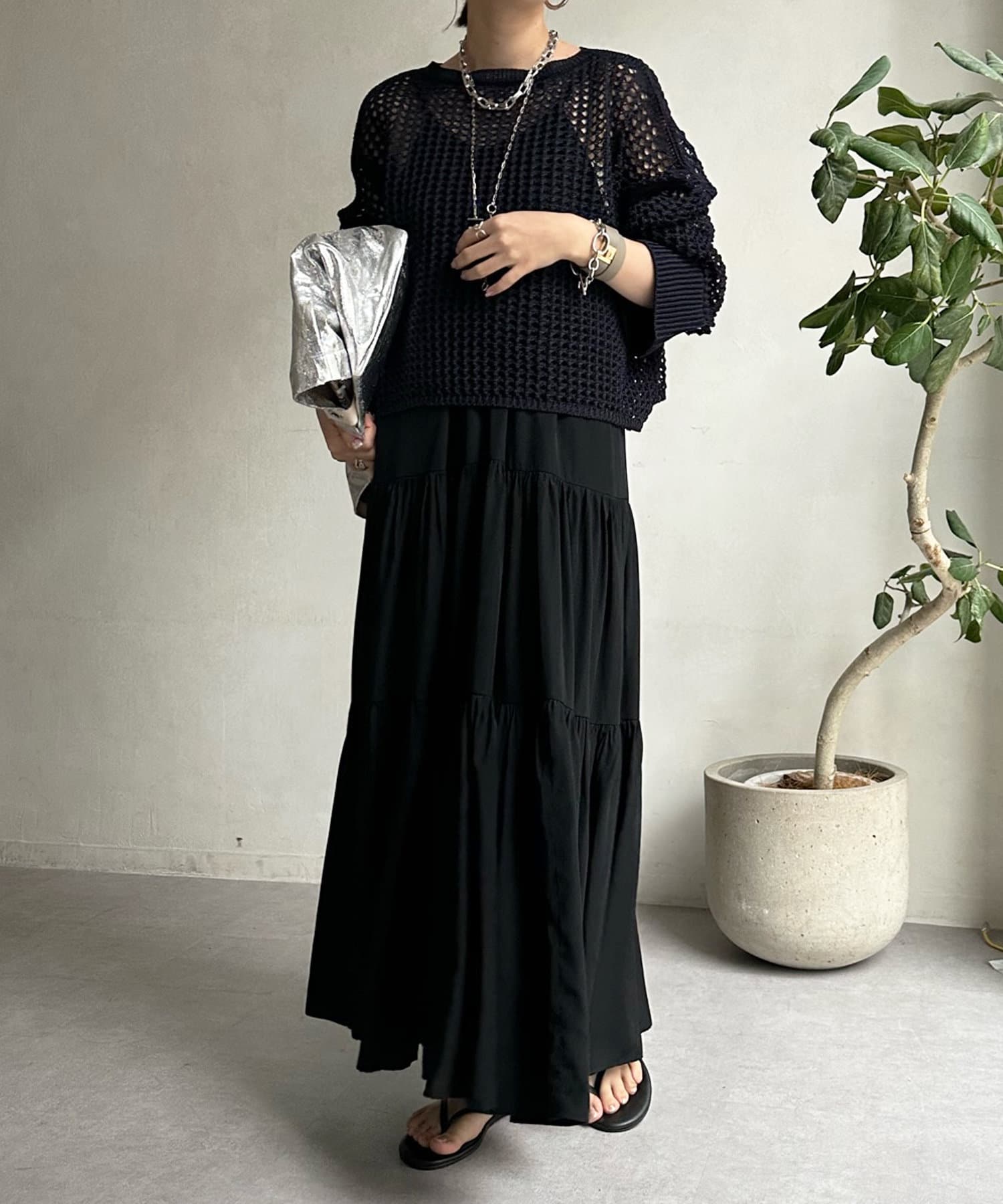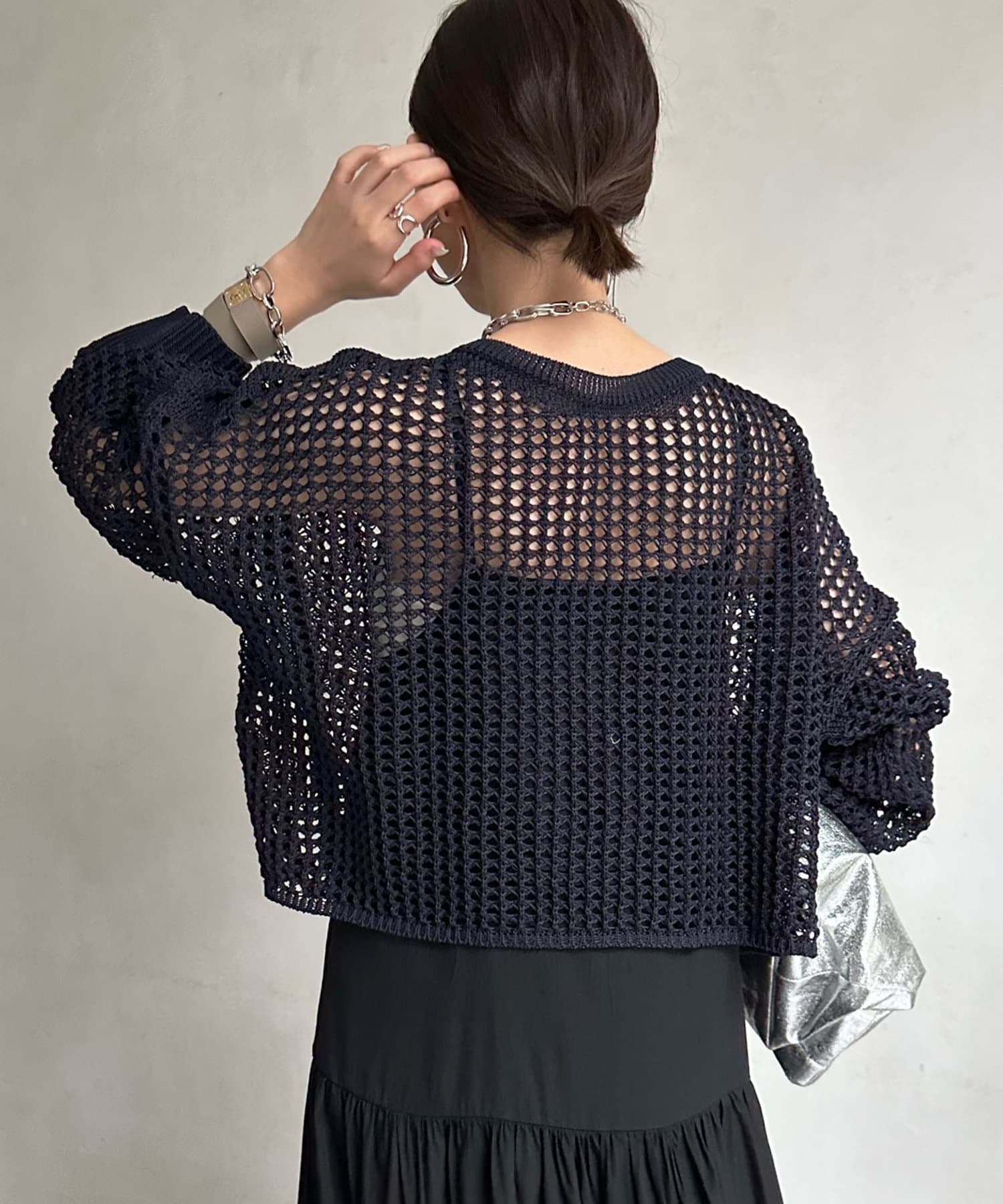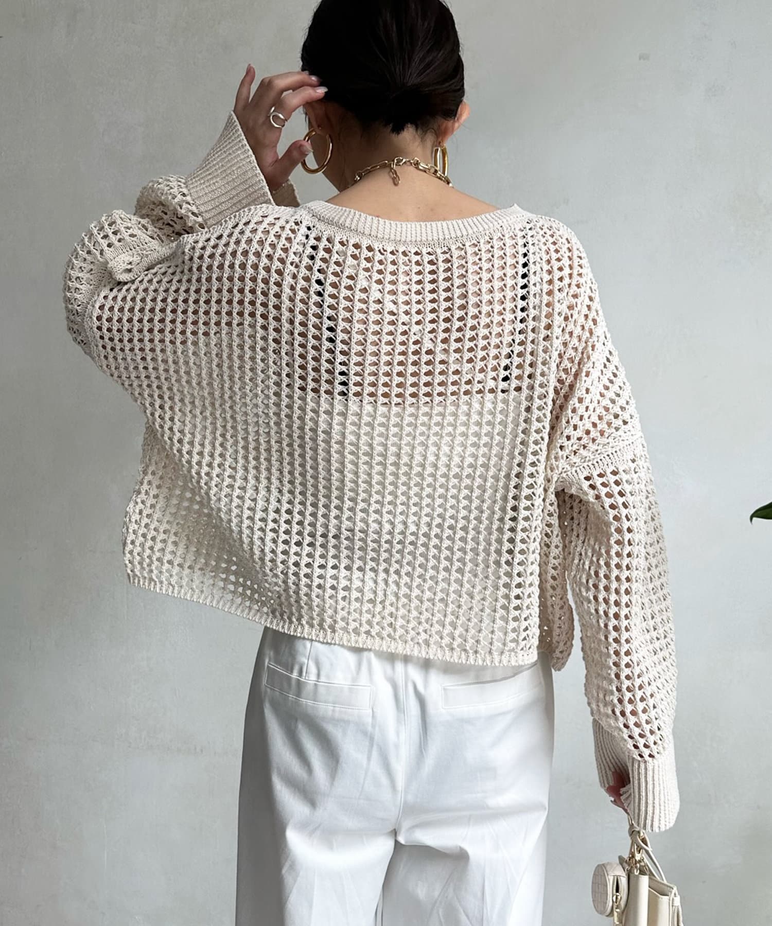 粗めの編地はキャミやタンクをインナーに合わせるだけで、真夏まで着回していただけます。