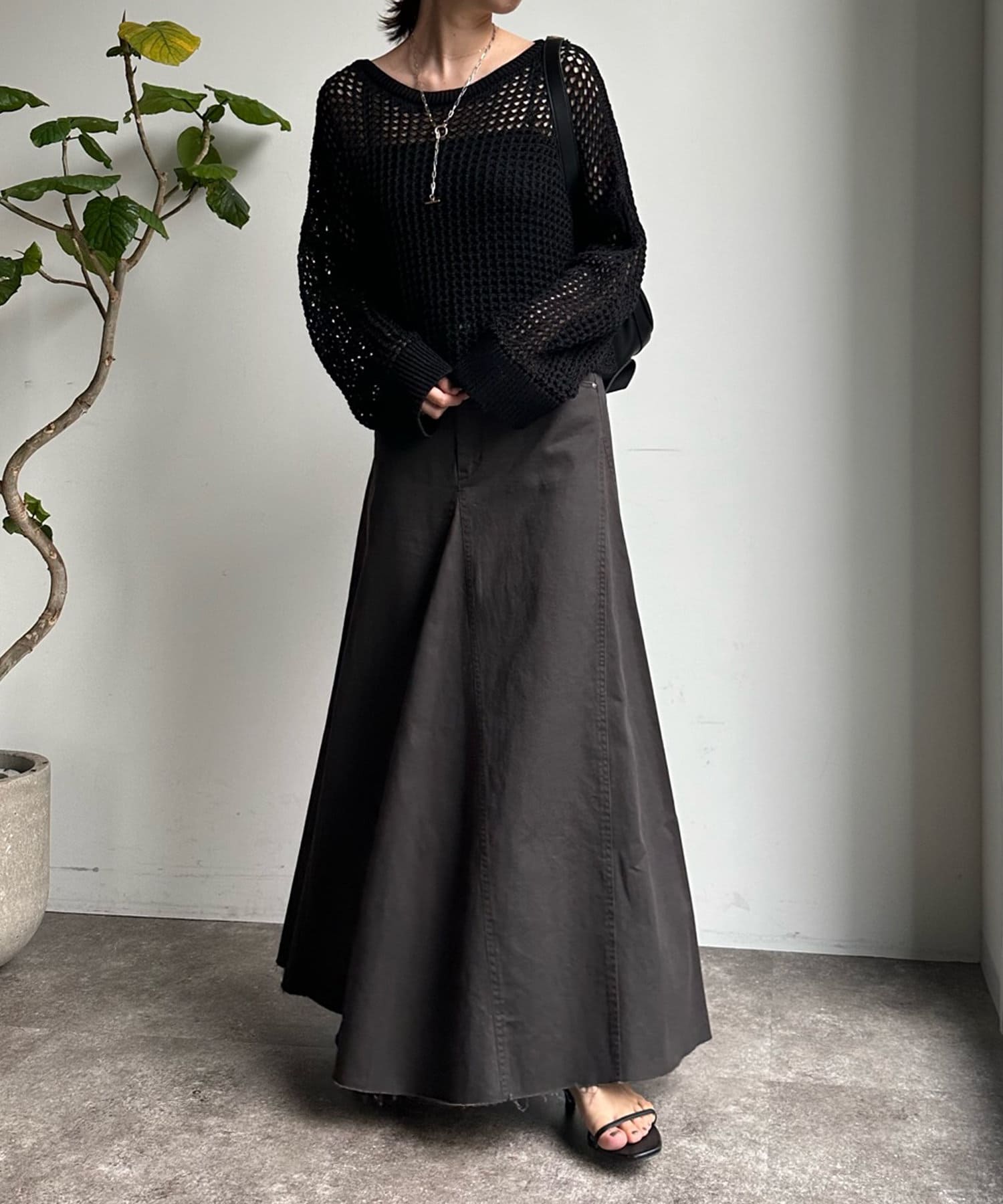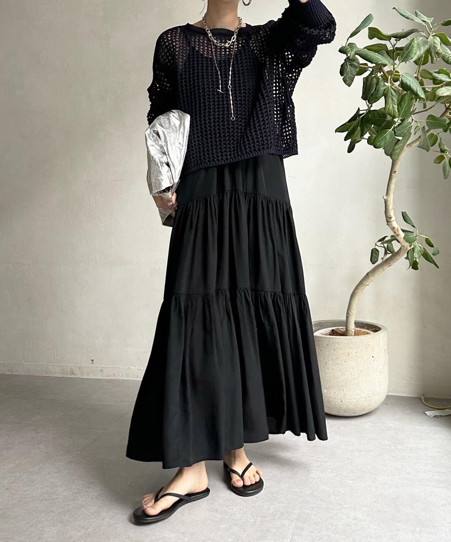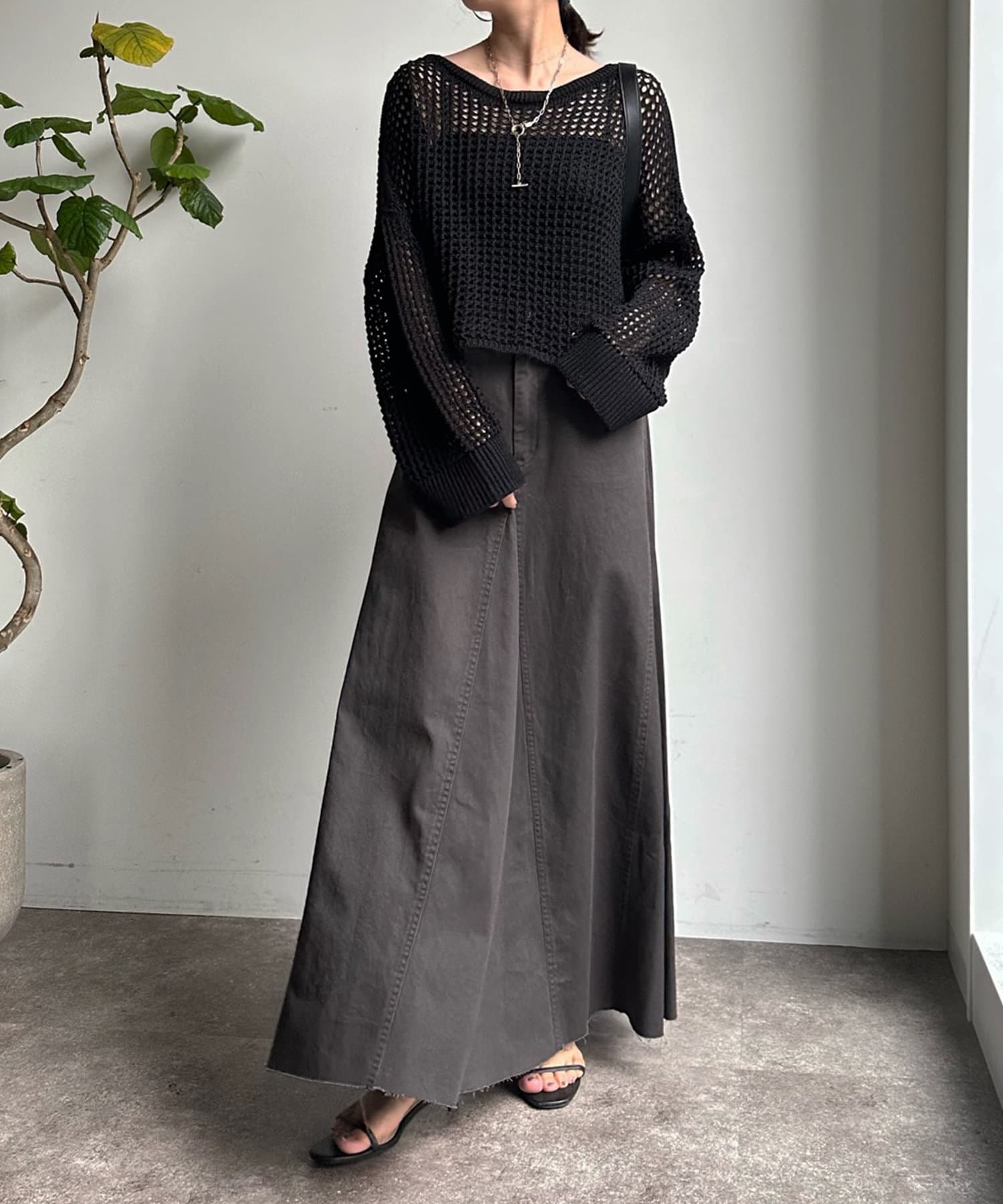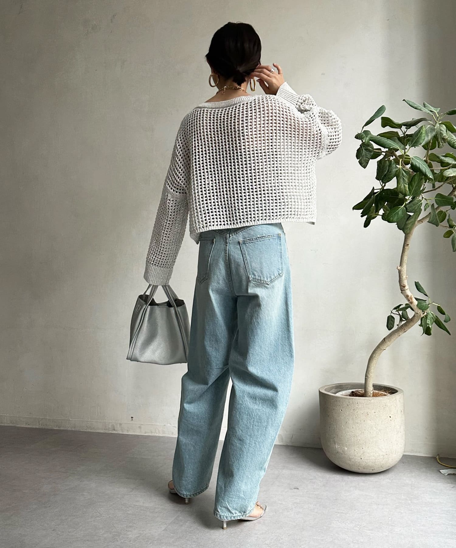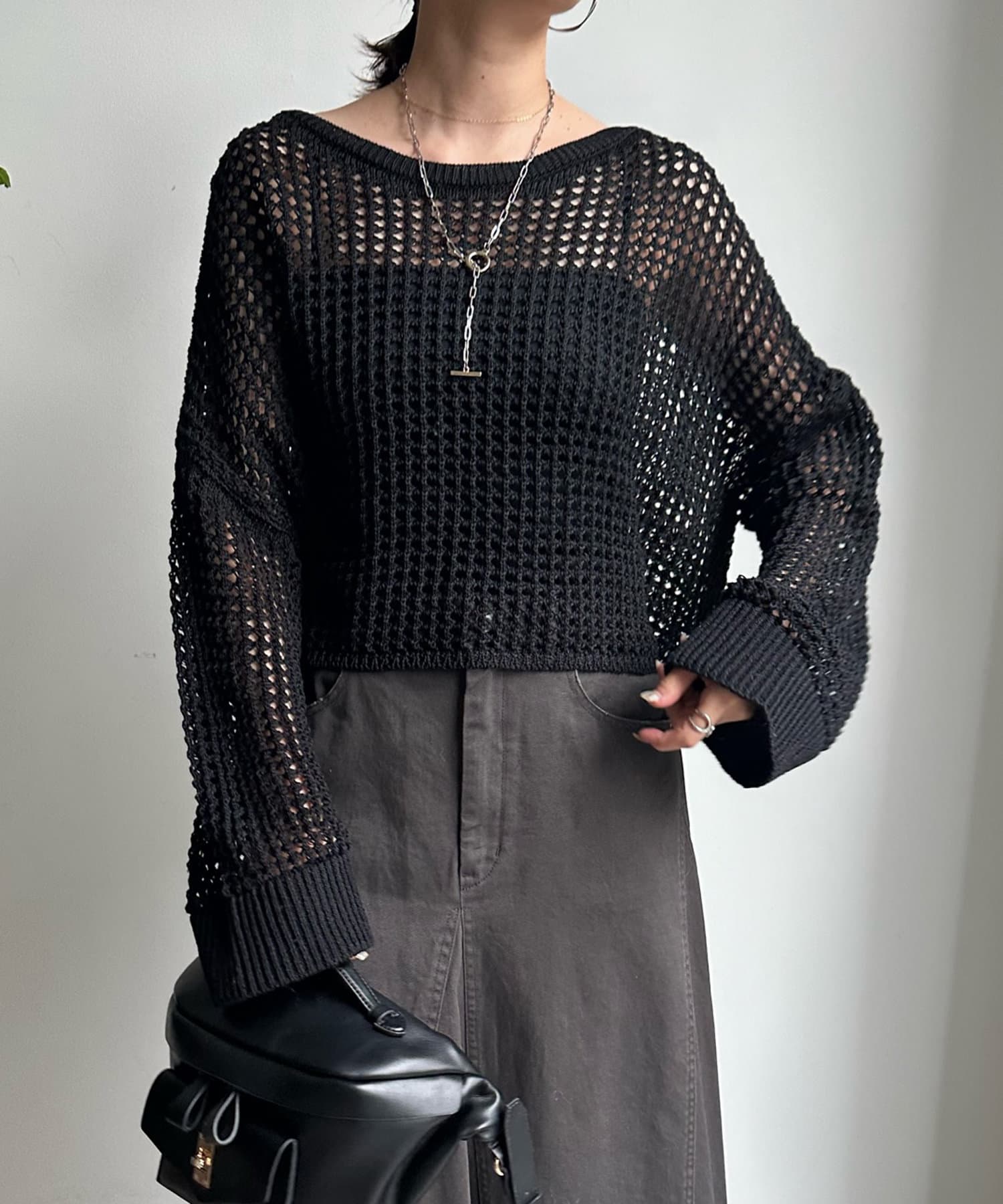粗めの編地はキャミやタンクをインナーに合わせるだけで、真夏まで着回していただけます。