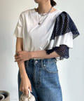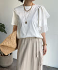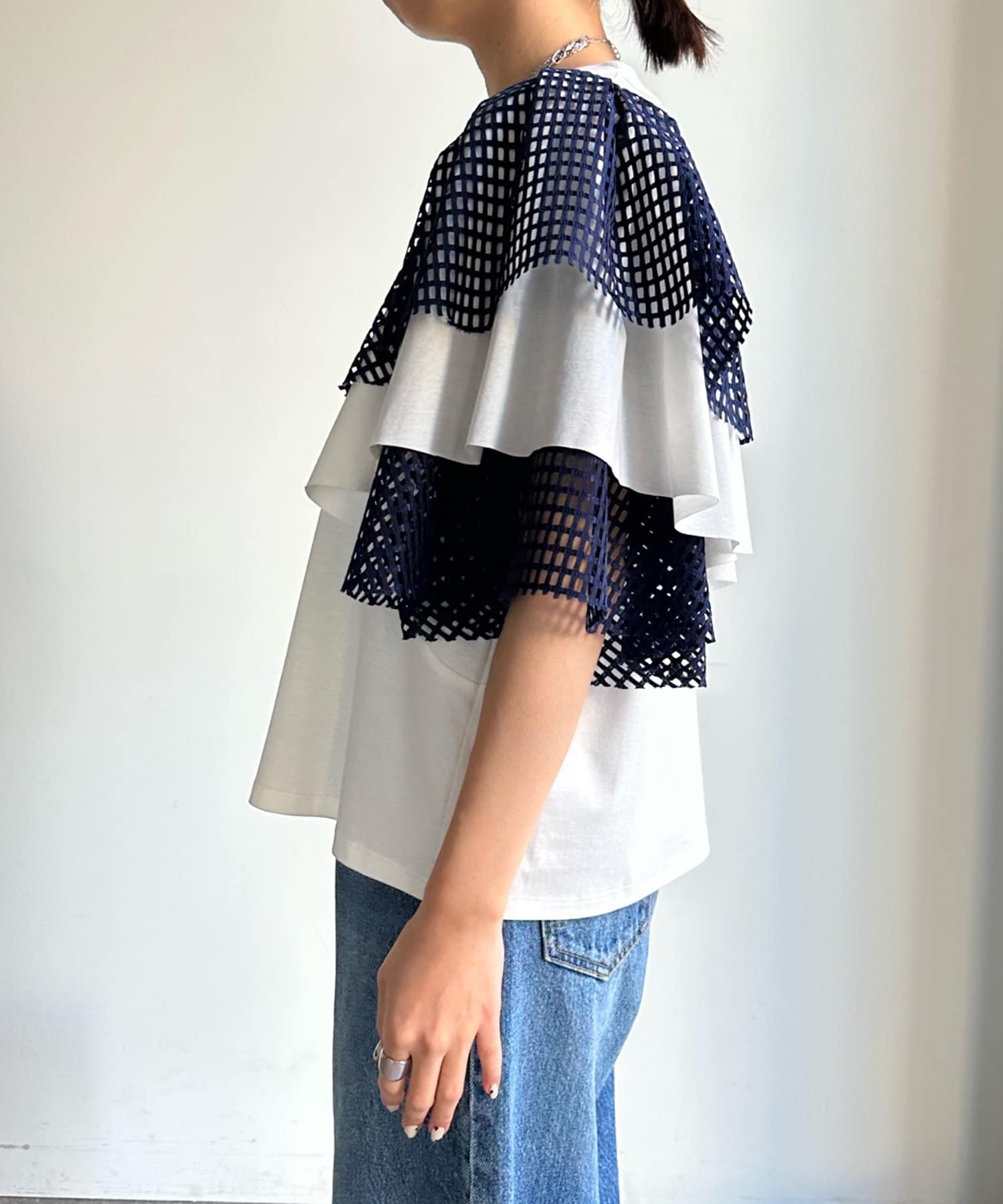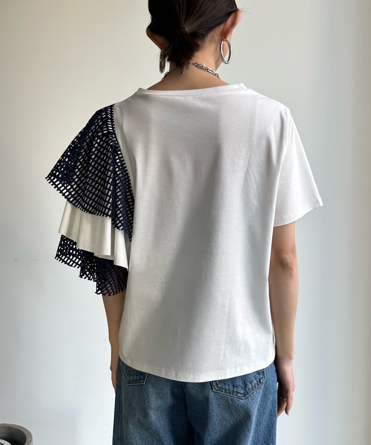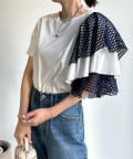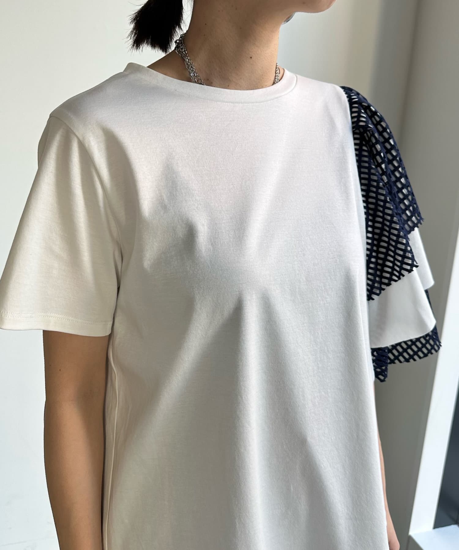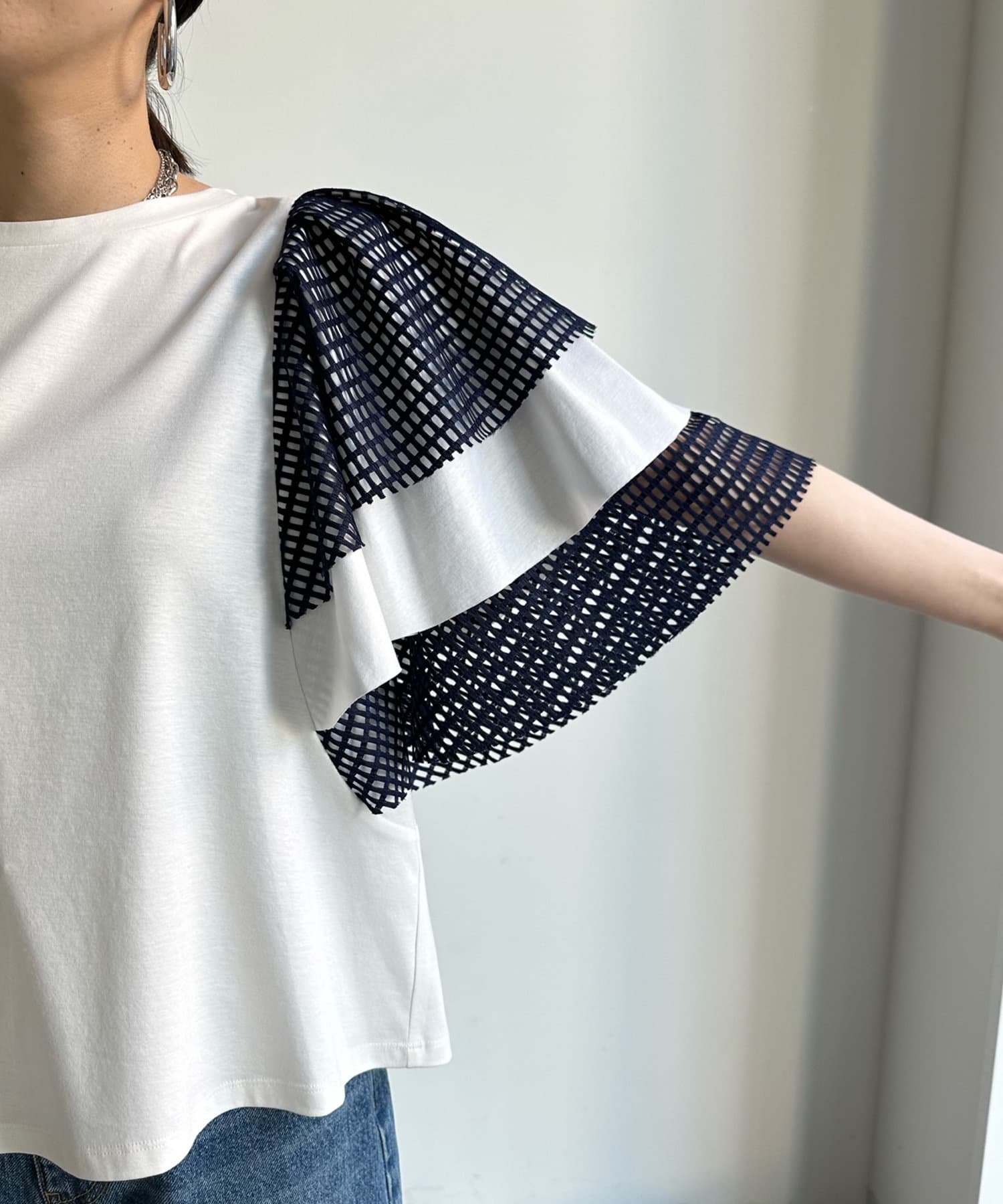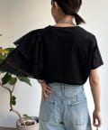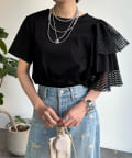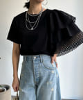 TOP > DOUDOU > レディース > トップス > Tシャツ/カットソー > 【WEB限定】メッシュアシメフリルトップス