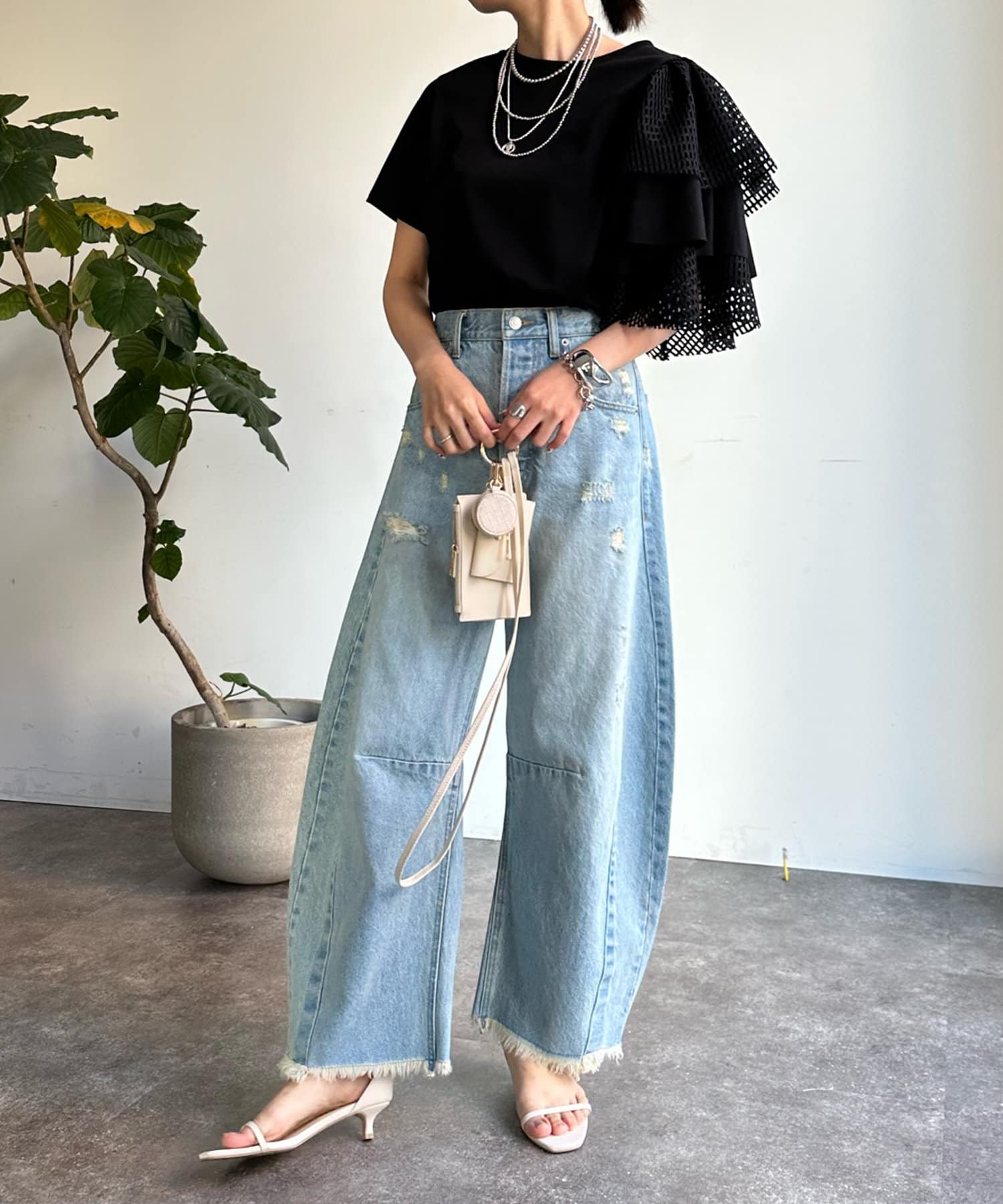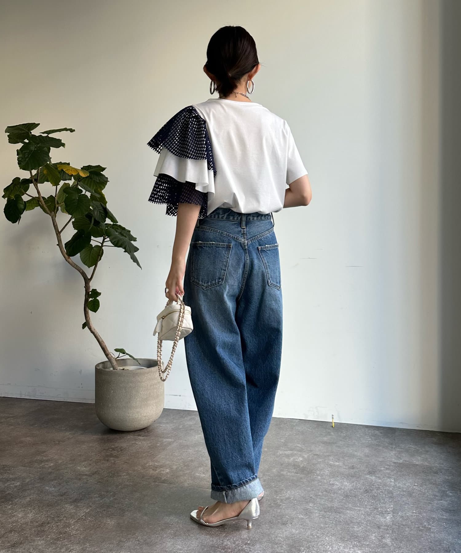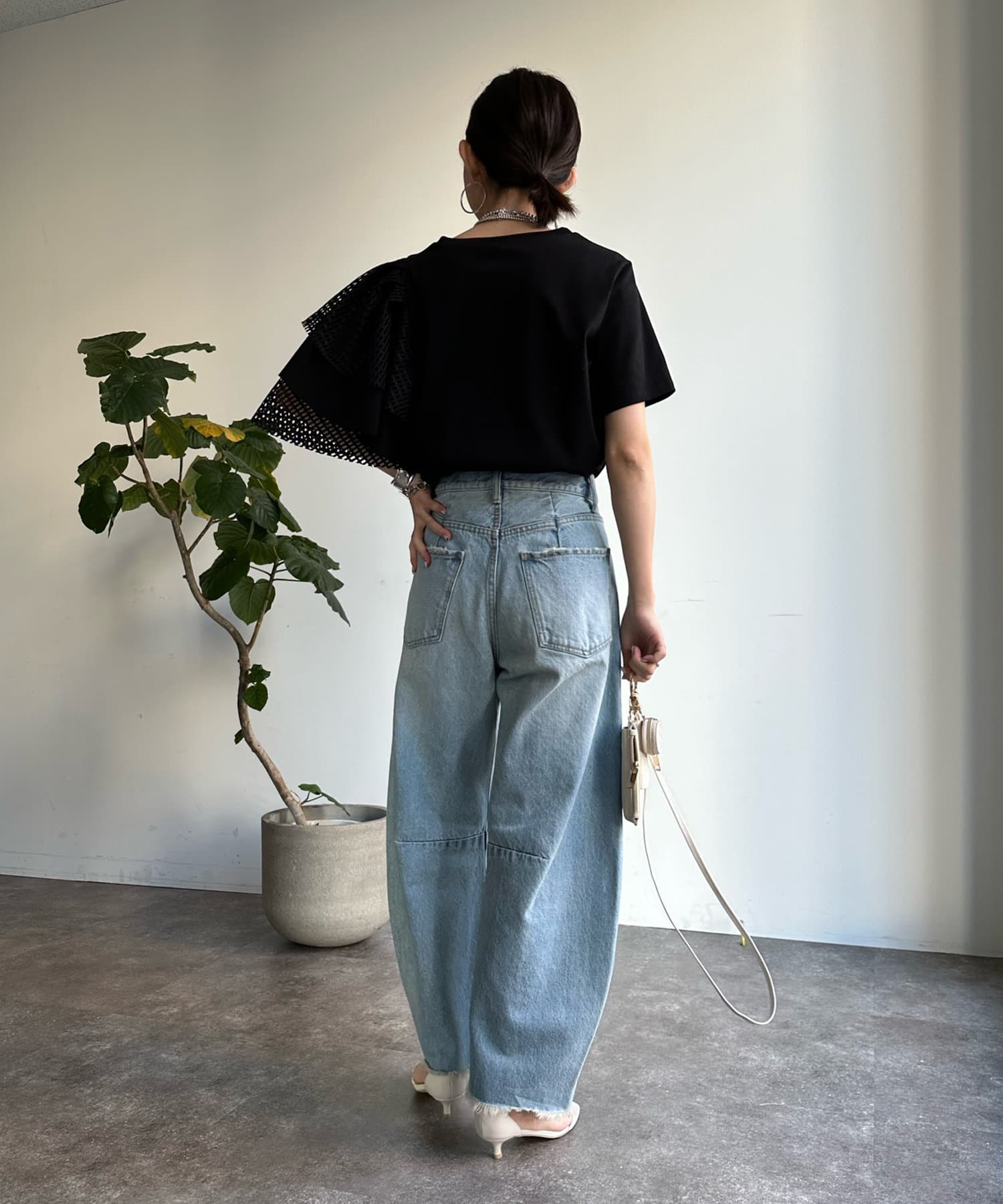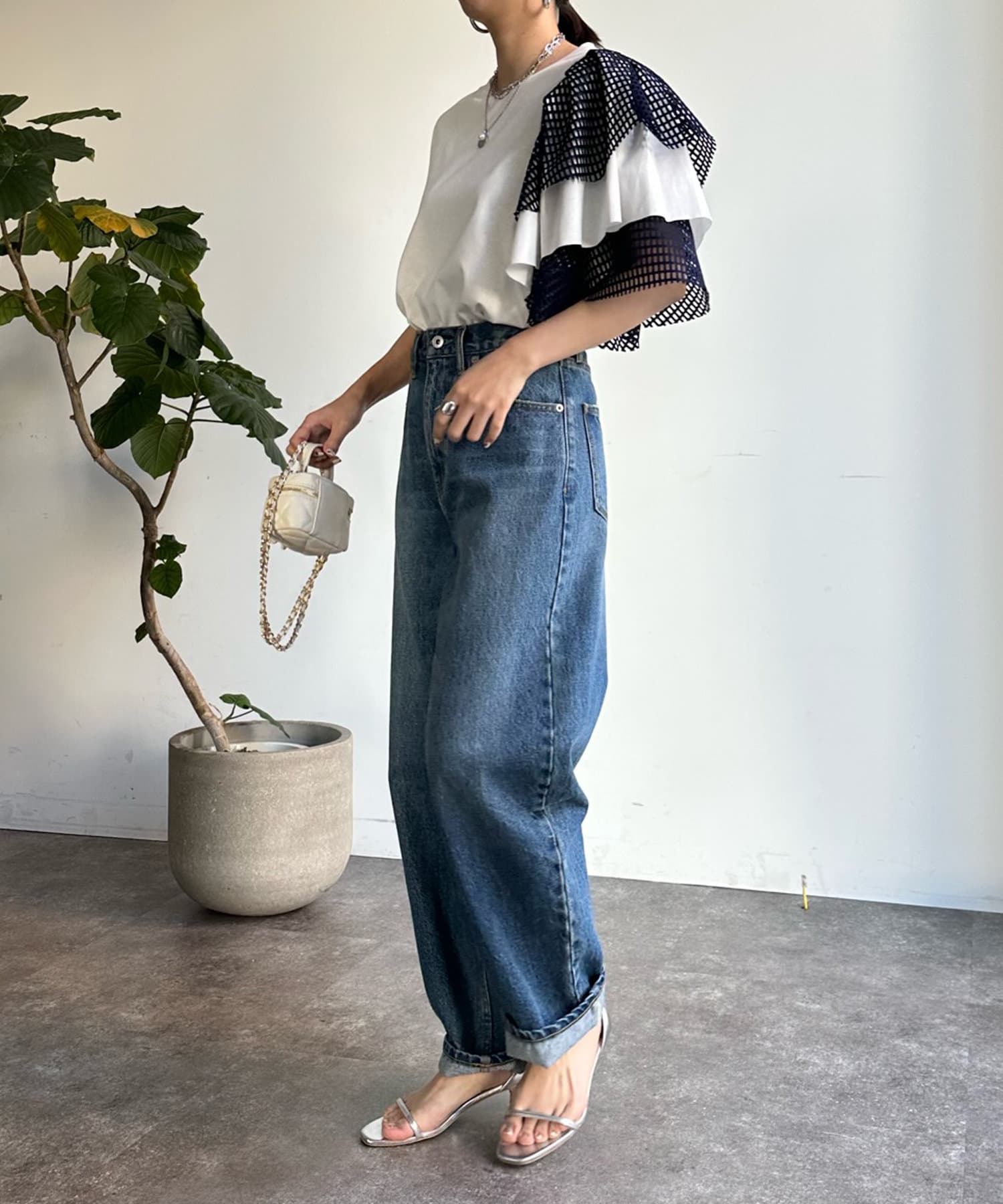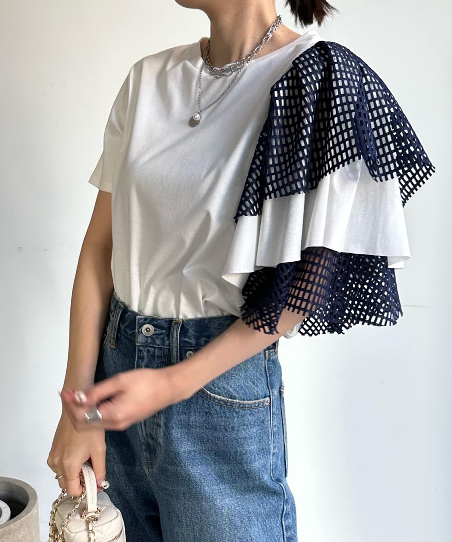 また、ボリュームのあるメッシュデザインが二の腕をさり気なくカバーしてくれるので気軽に着用して頂けますよ◎