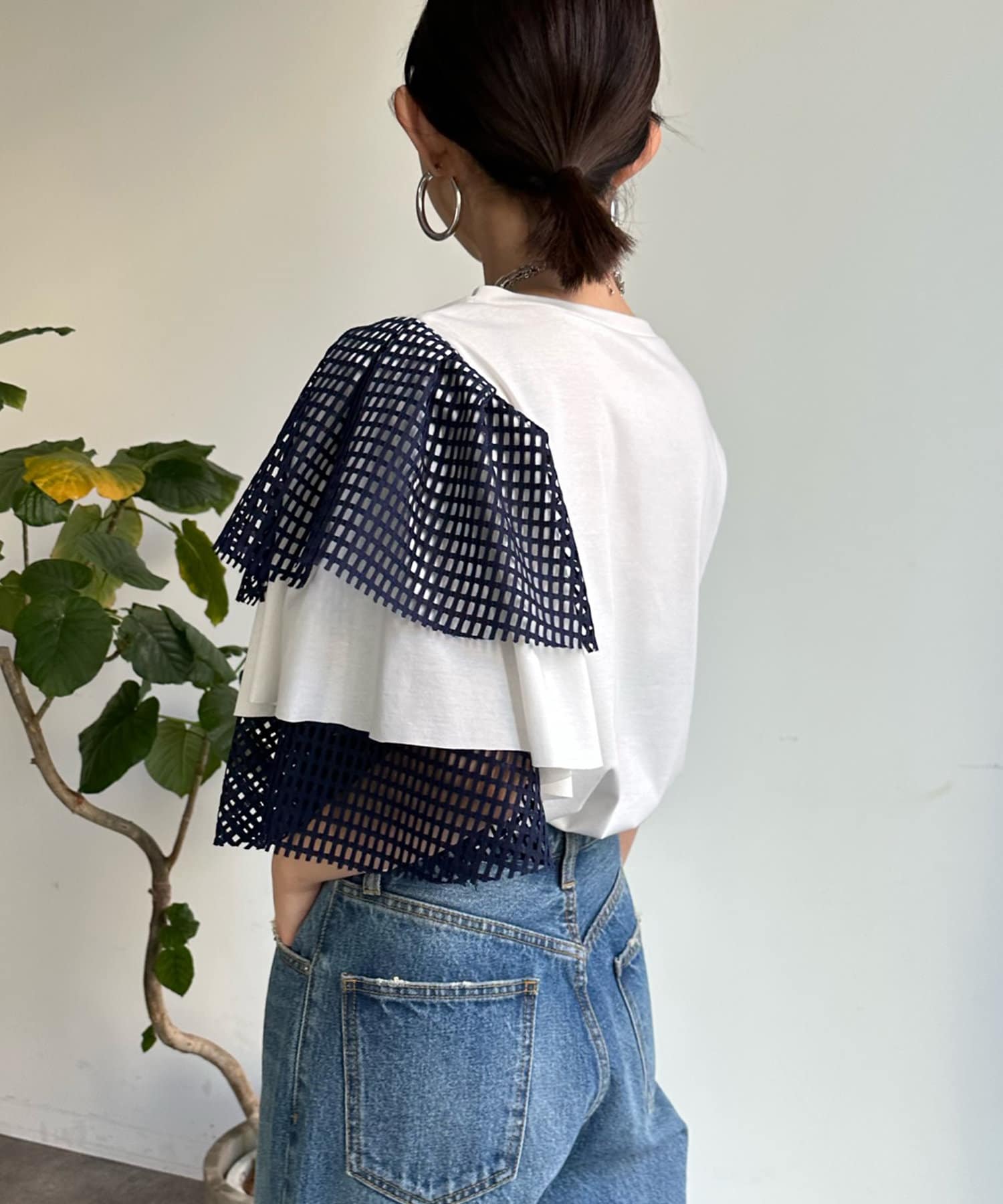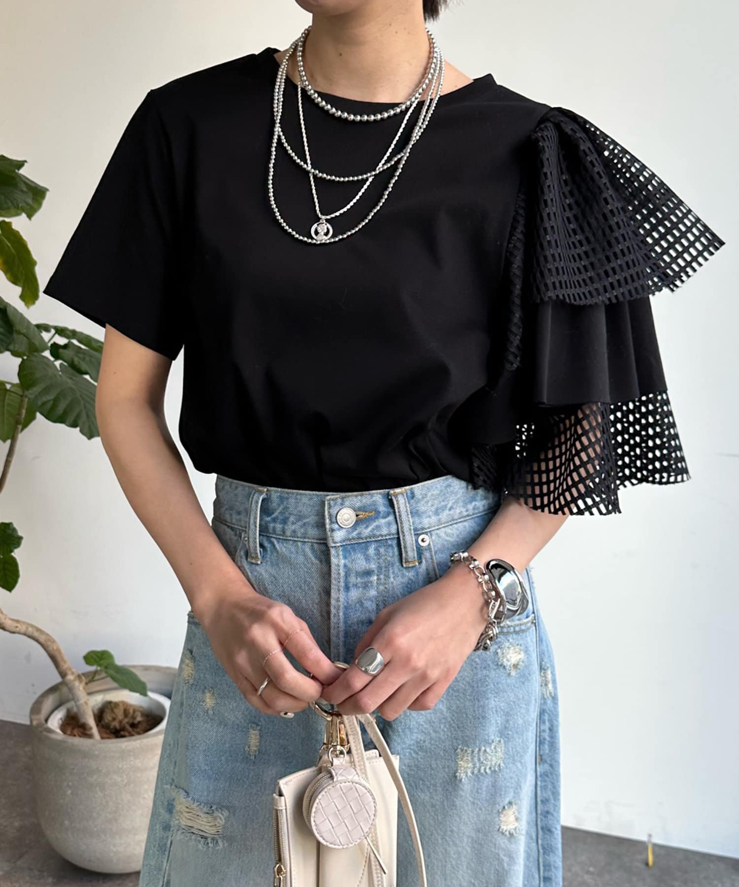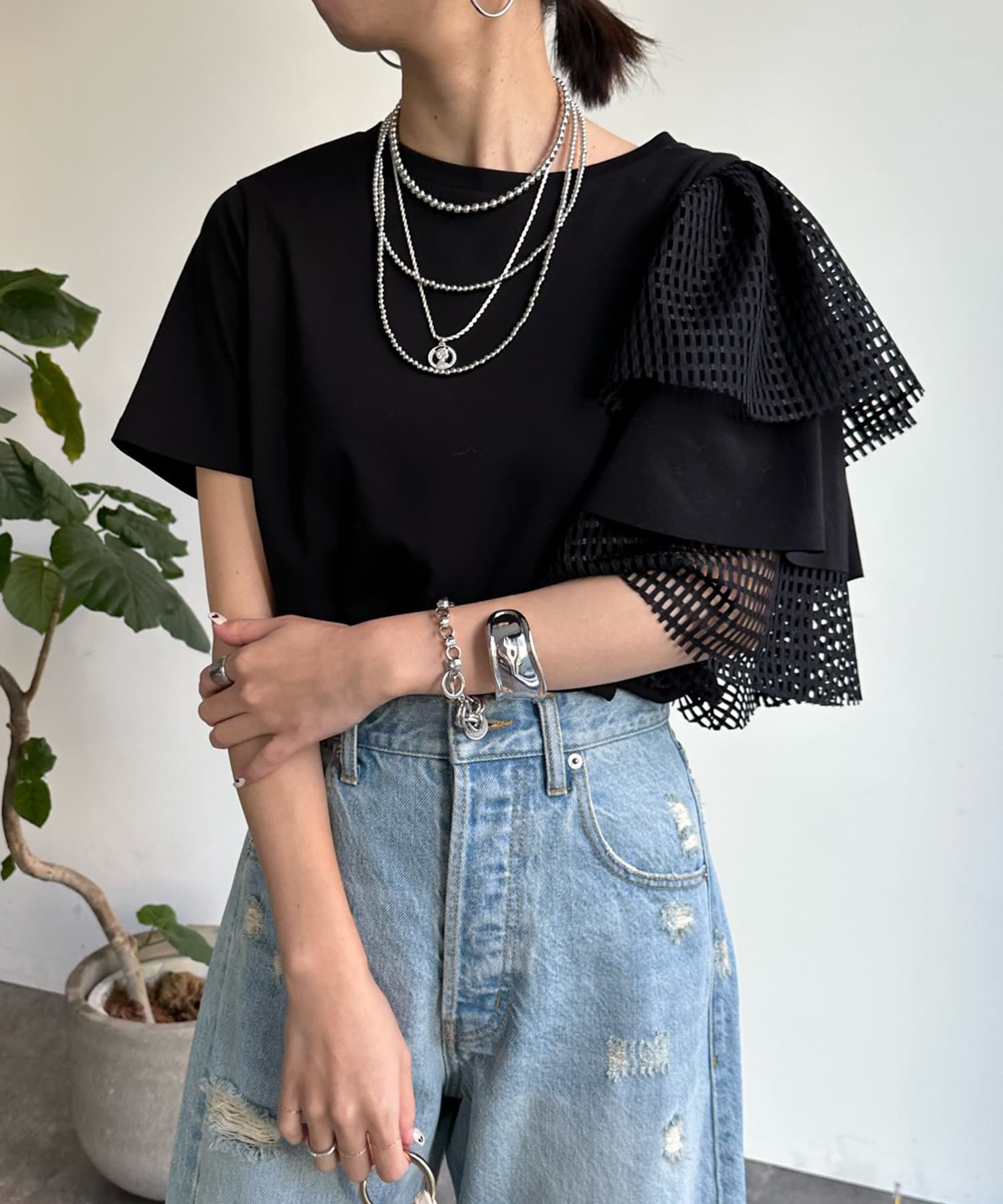 【WEB限定】メッシュアシメフリルトップス