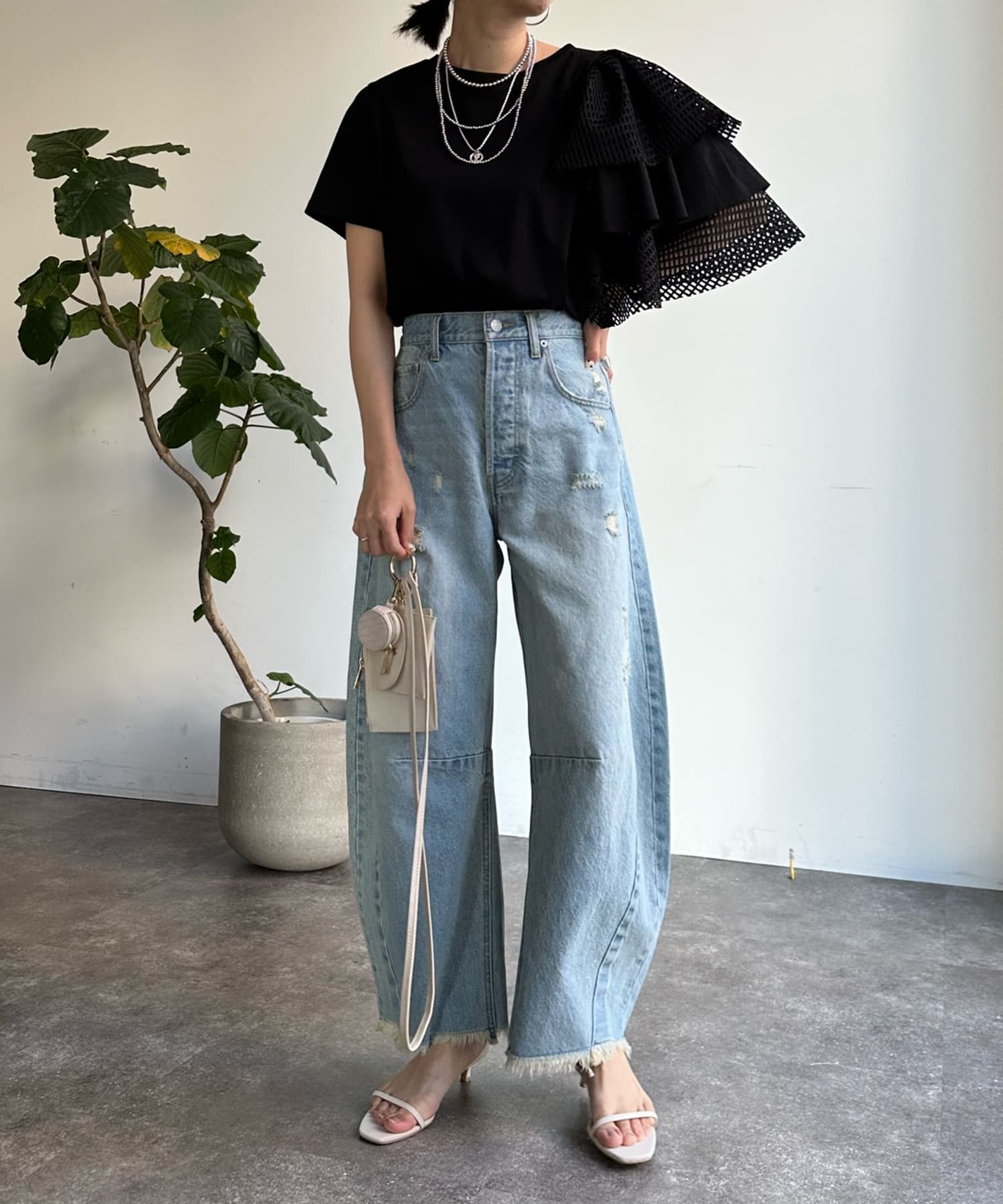 DOUDOU(ドゥドゥ) 【WEB限定】メッシュアシメフリルトップス