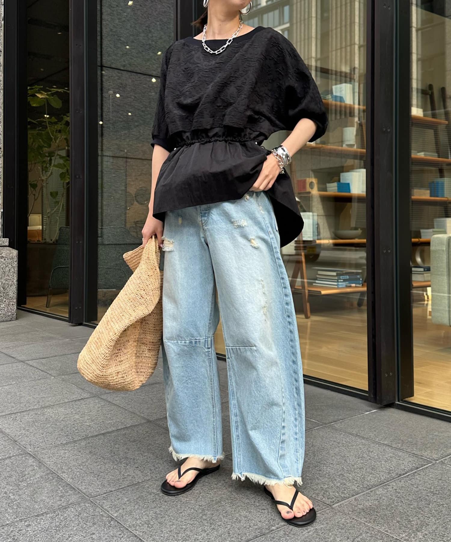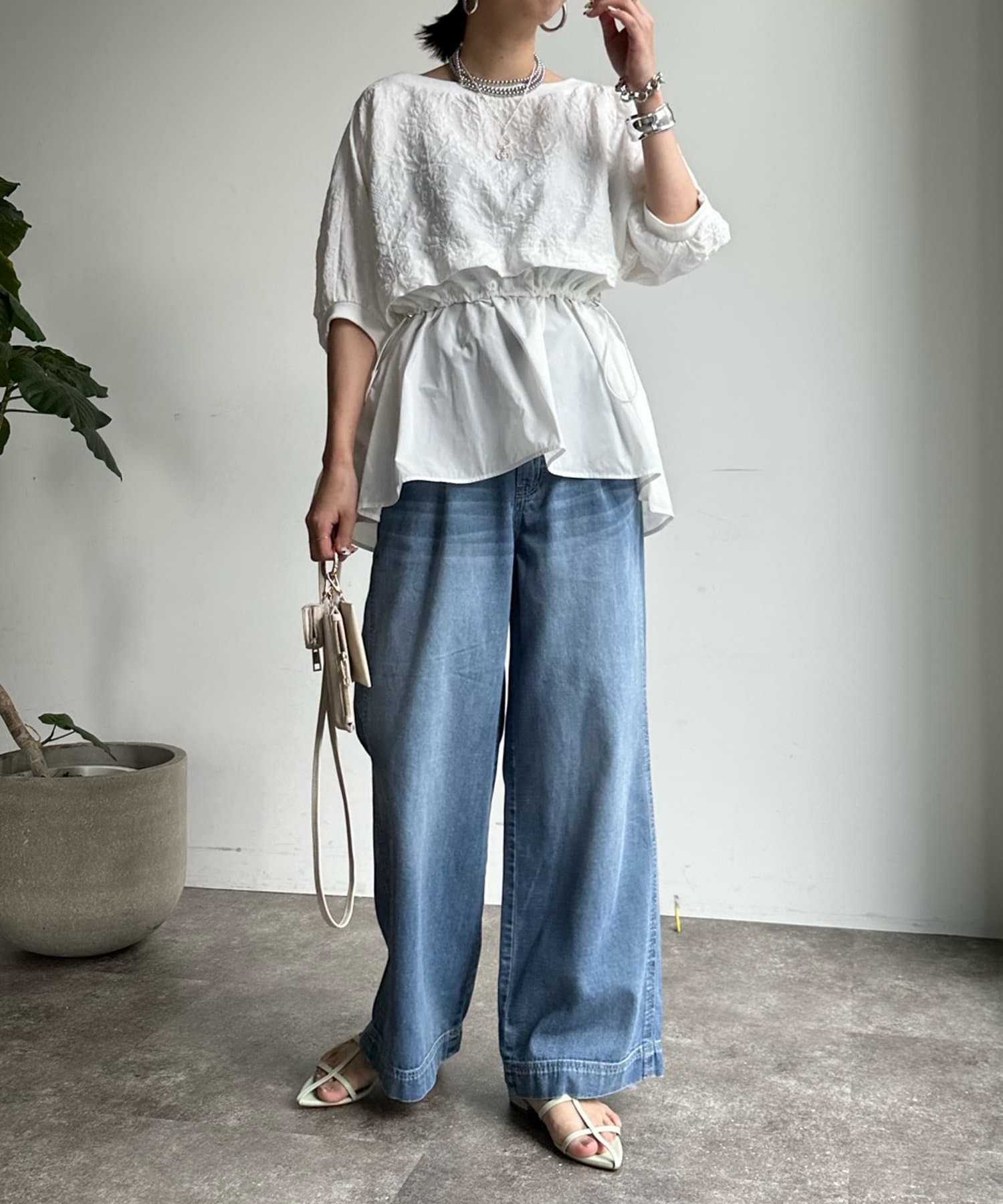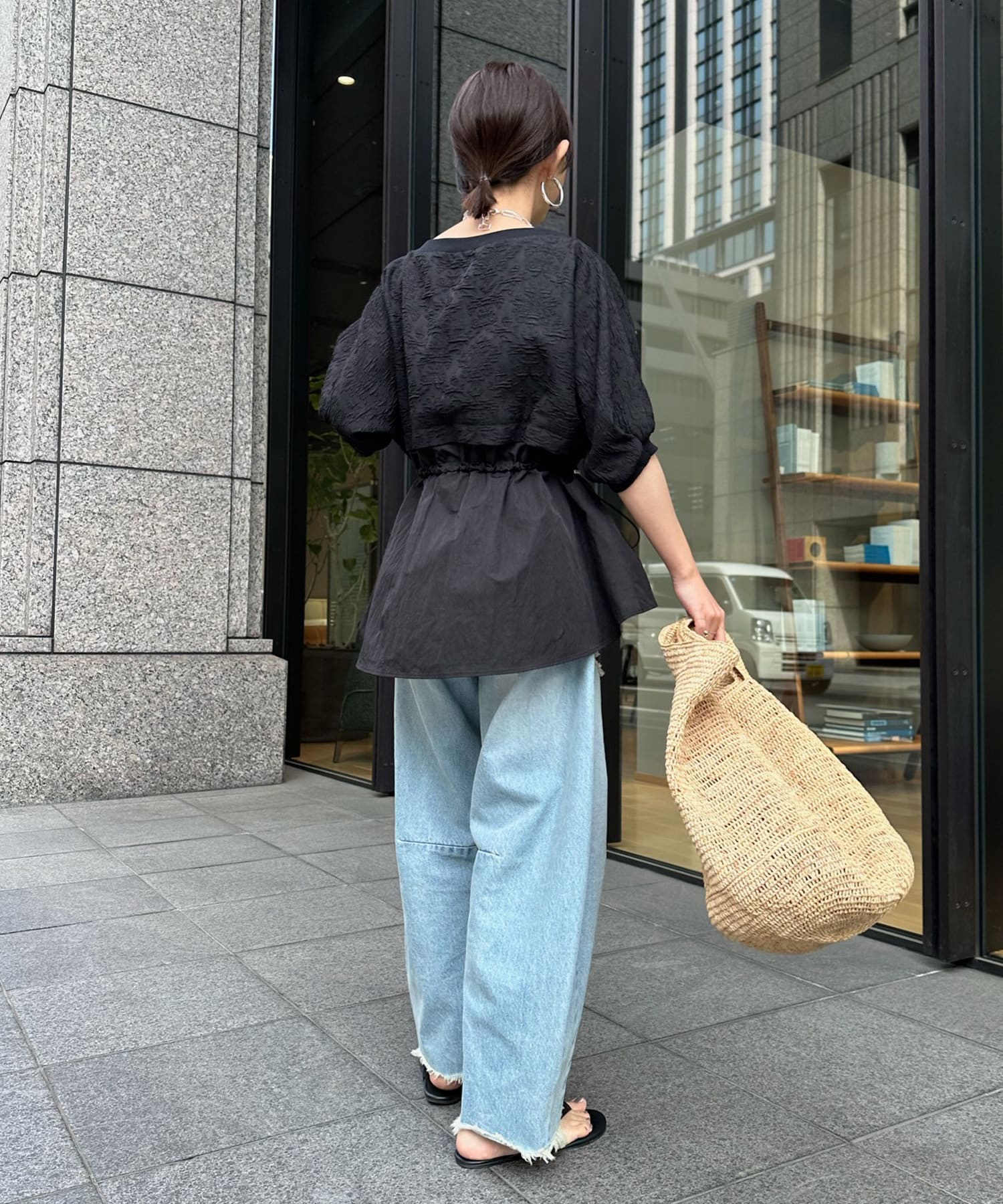ドロストコードが抜け感を出しつつ、シルエットにメリハリをプラスしていただけるのもポイントです。