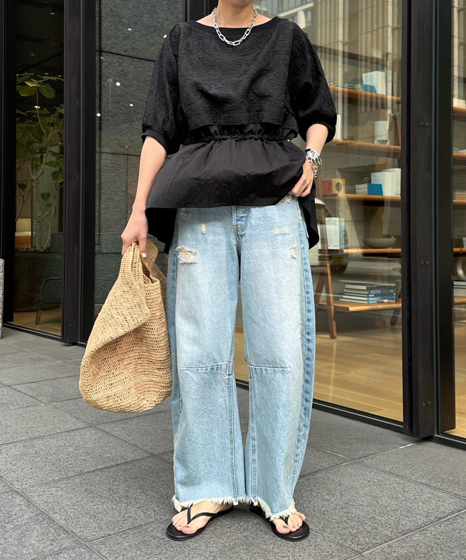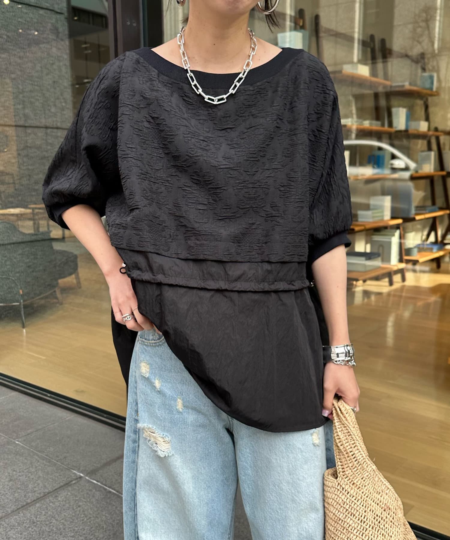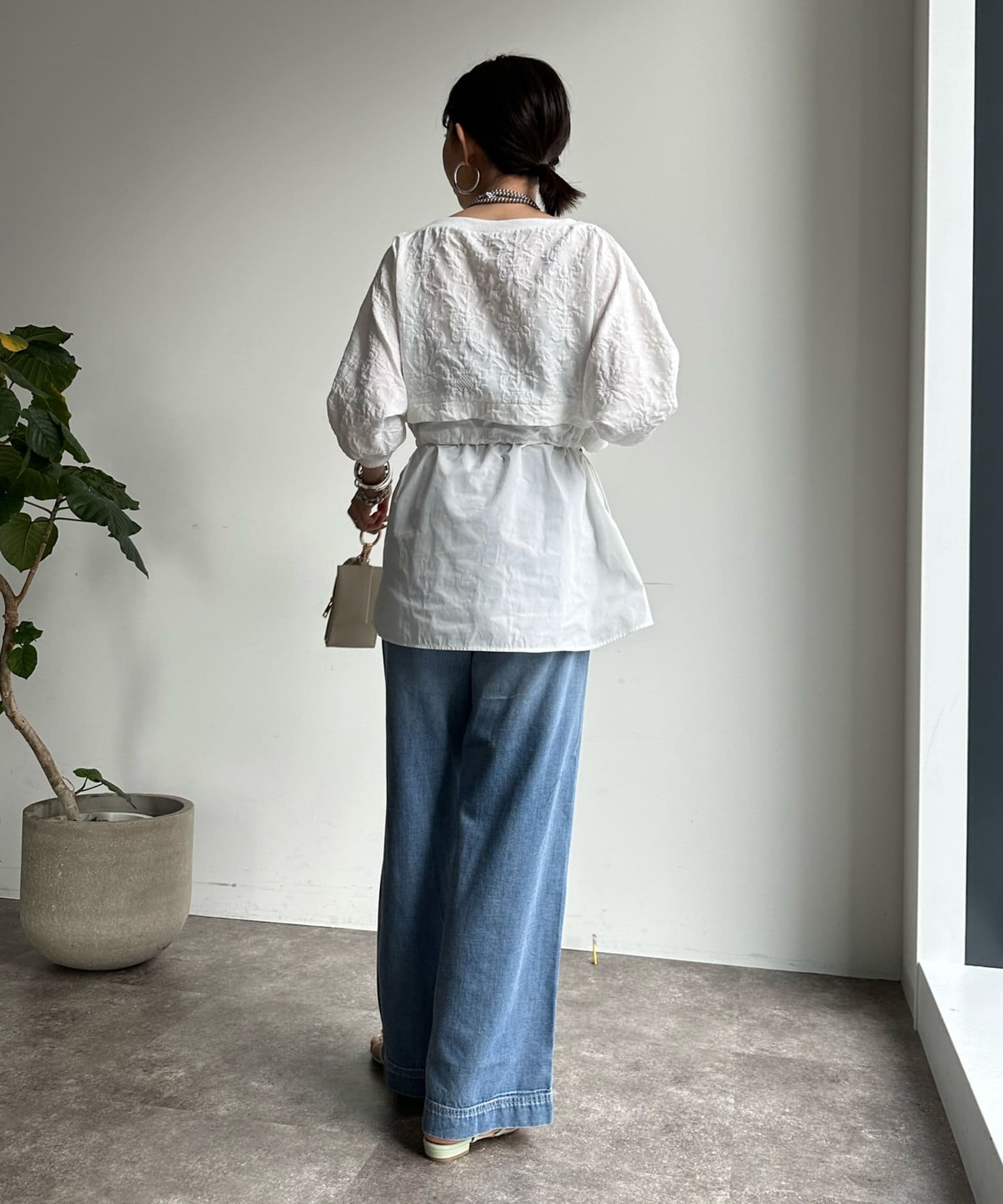 ドロストコードが抜け感を出しつつ、シルエットにメリハリをプラスしていただけるのもポイントです。
