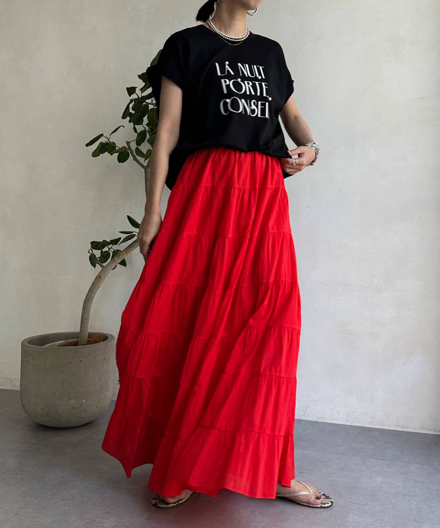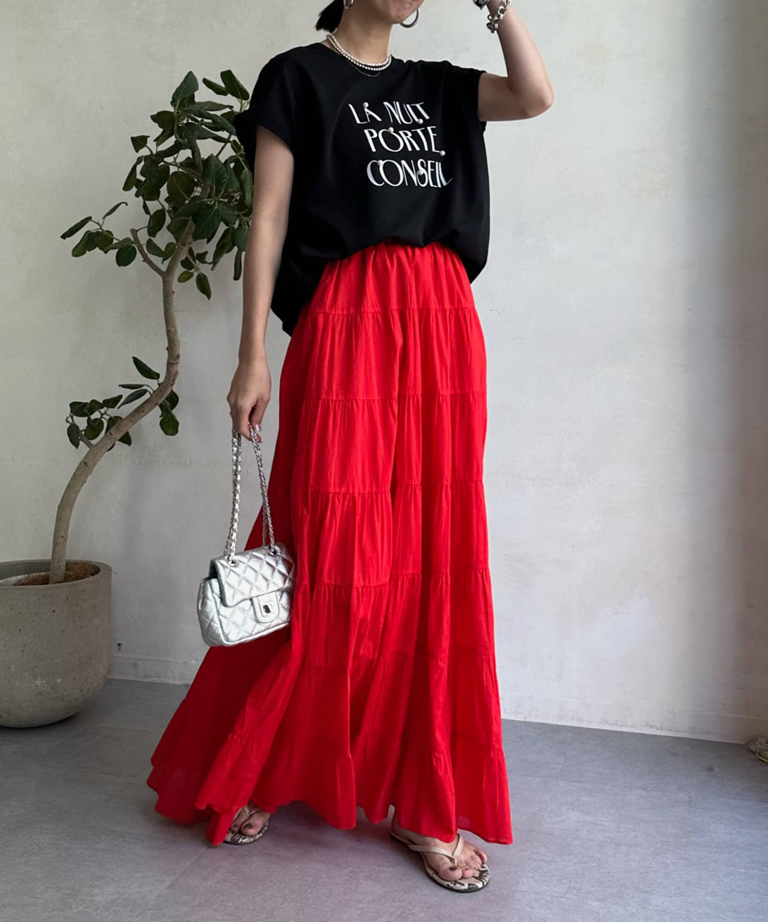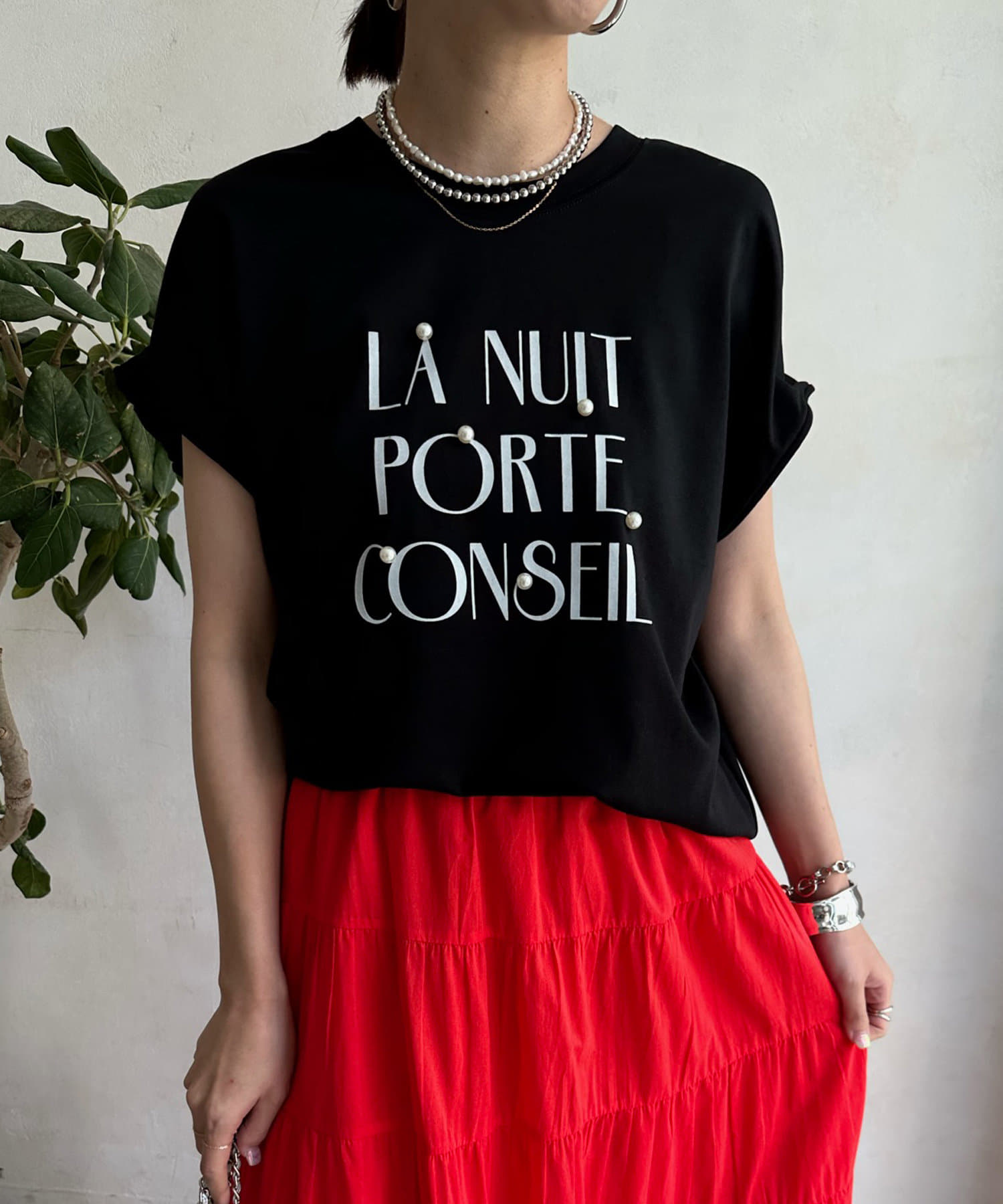 綺麗めコーデにもはまるロゴTEE!
