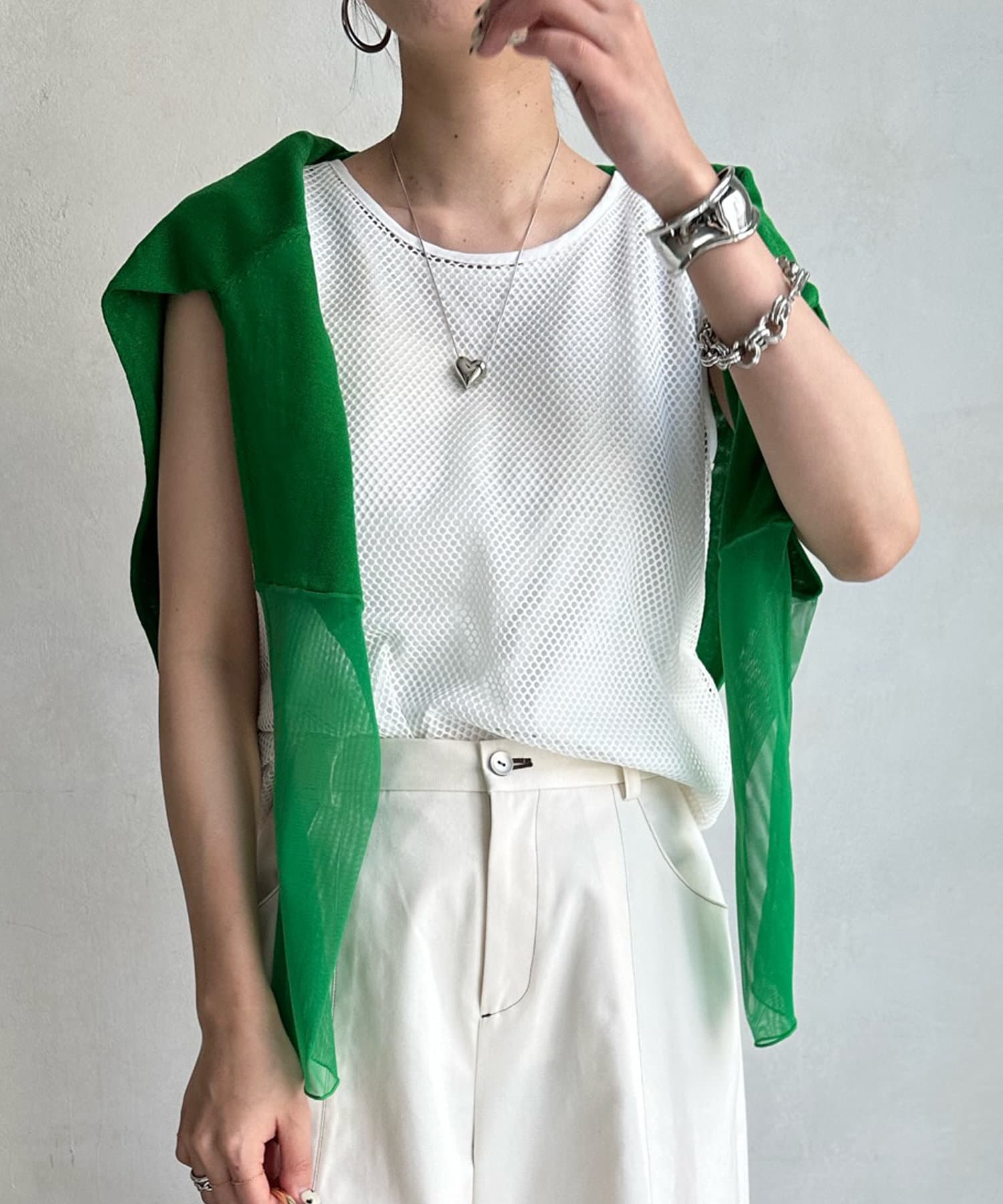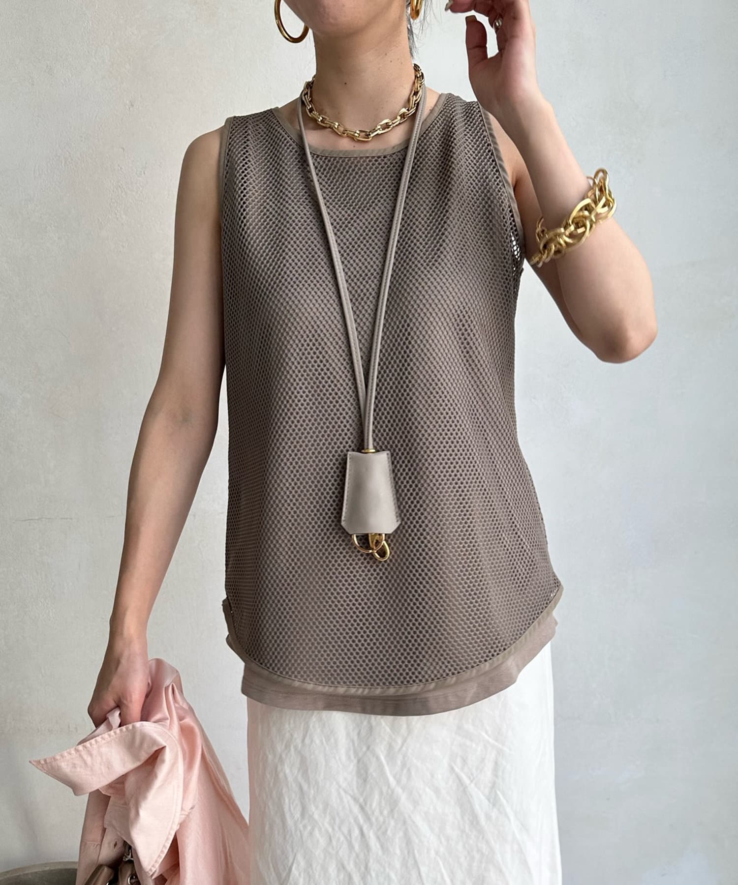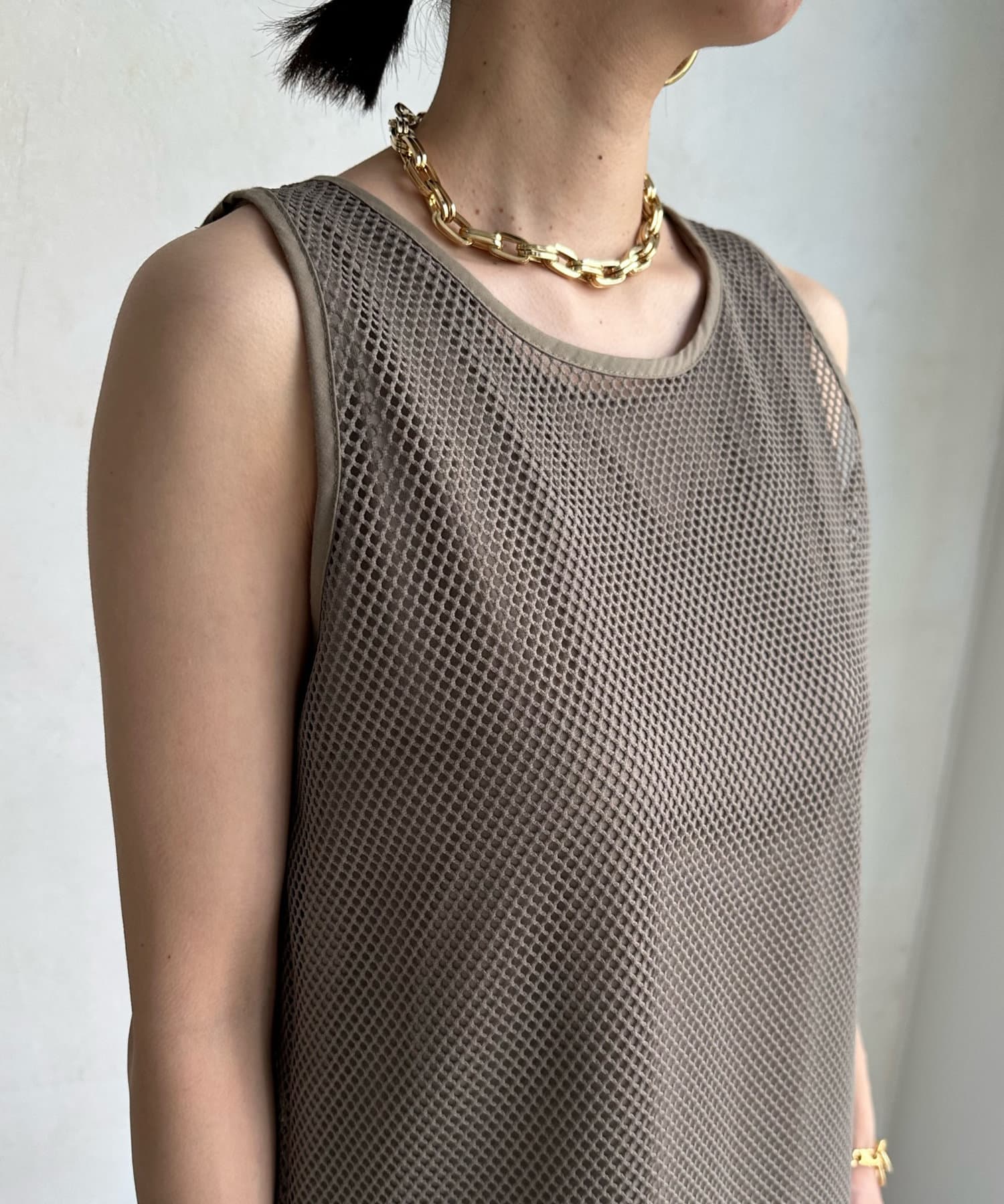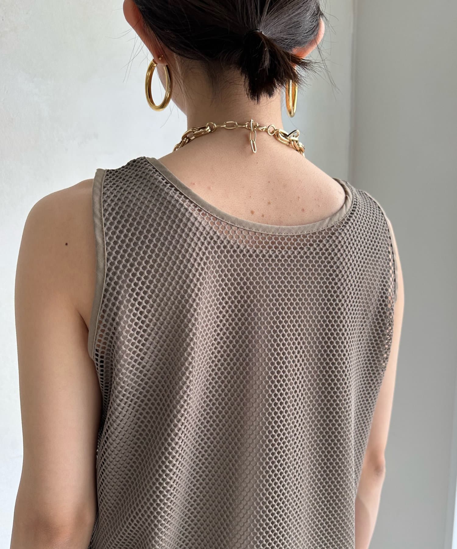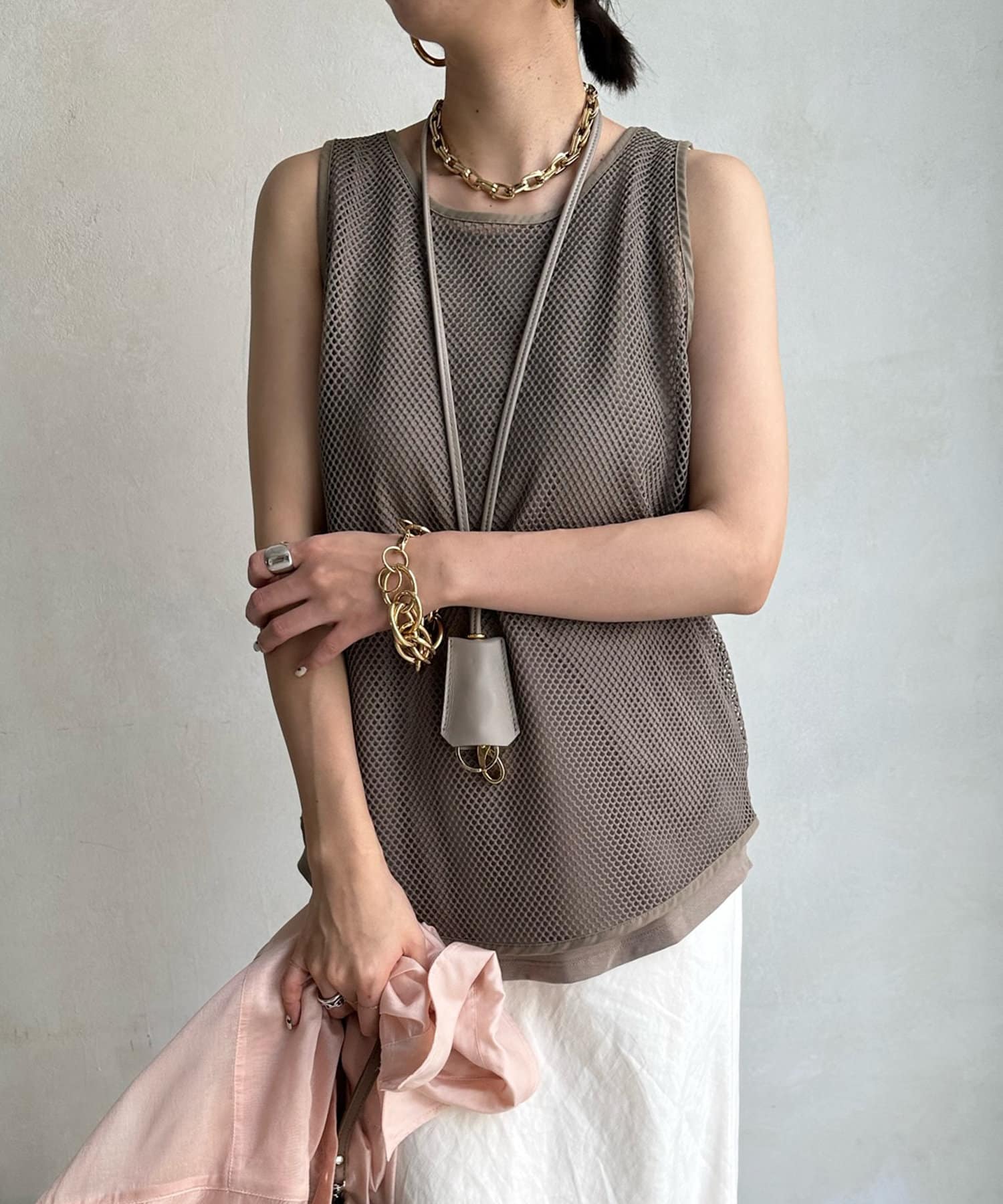 1枚で簡単におしゃれなレイヤードが完成する夏取り入れたいメッシュタンク。