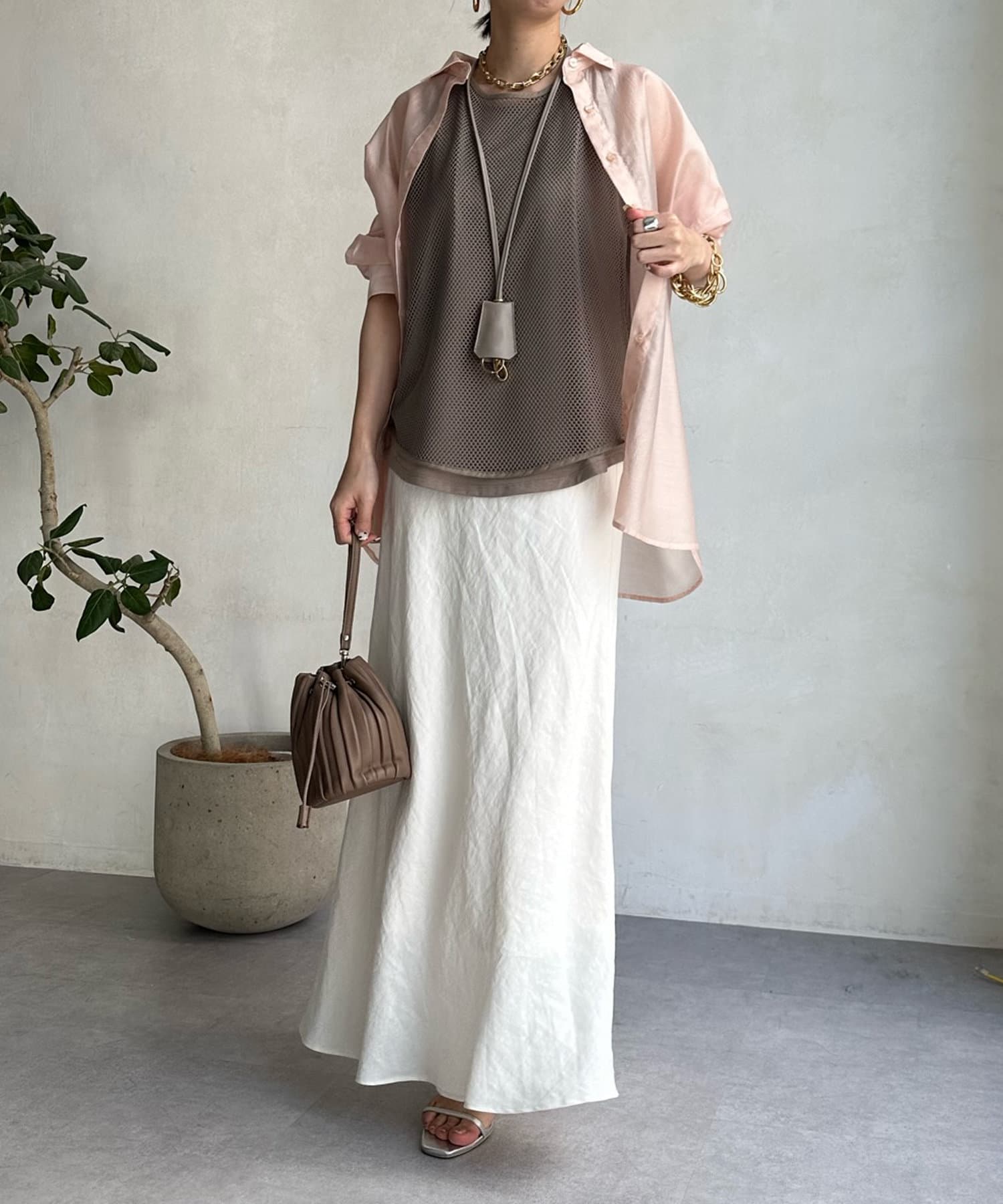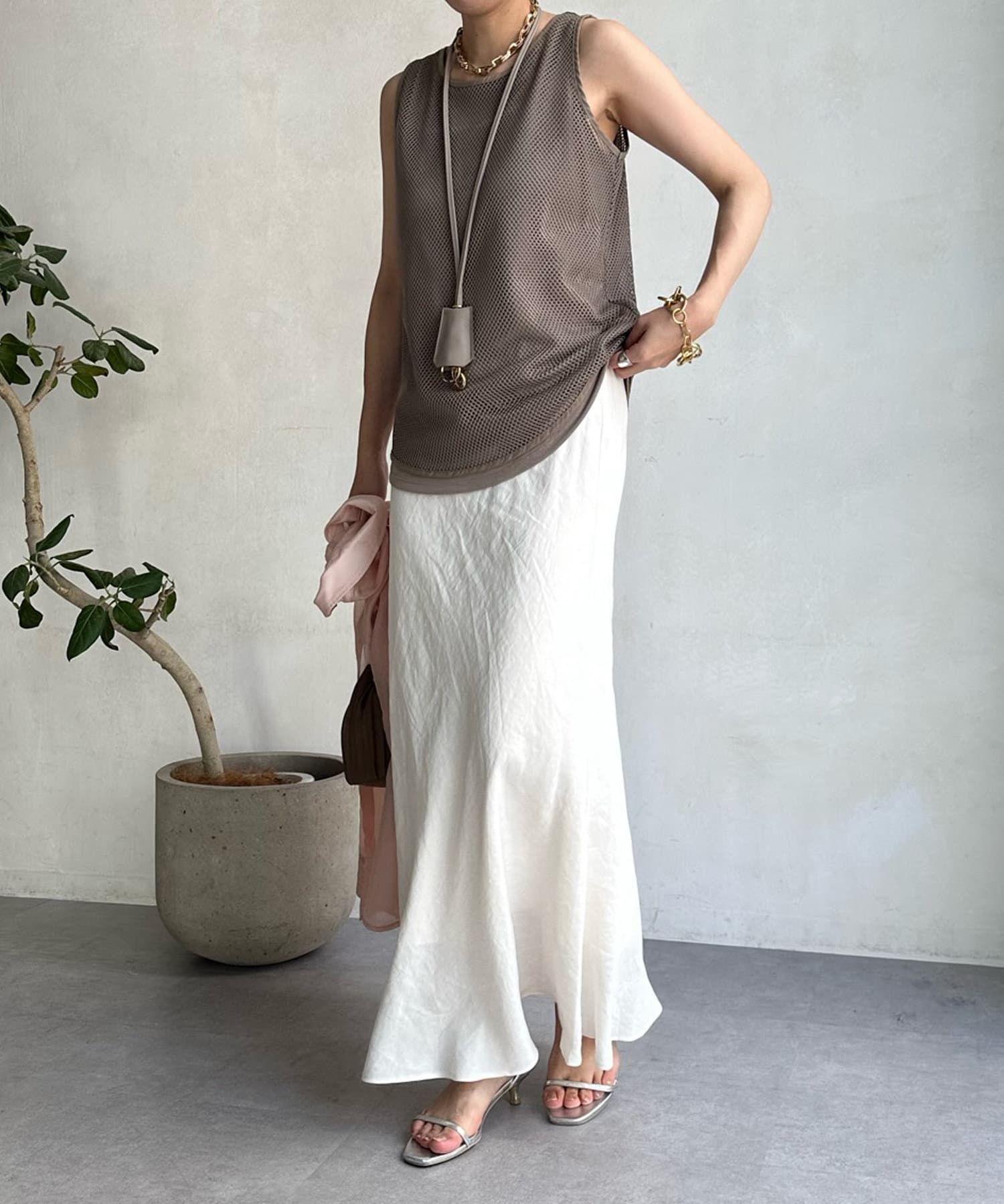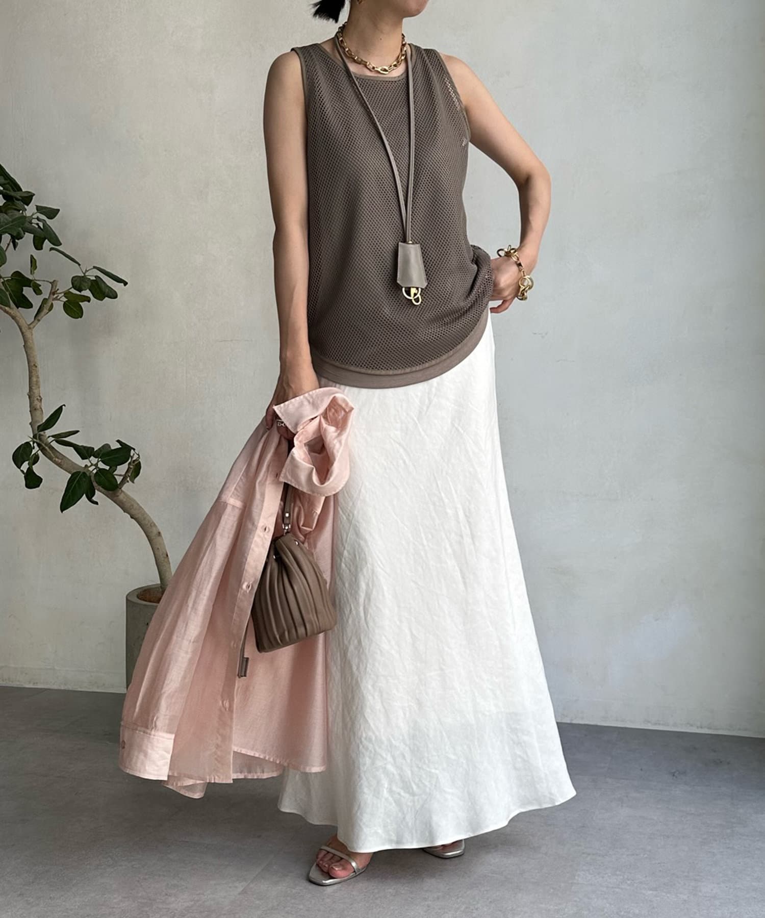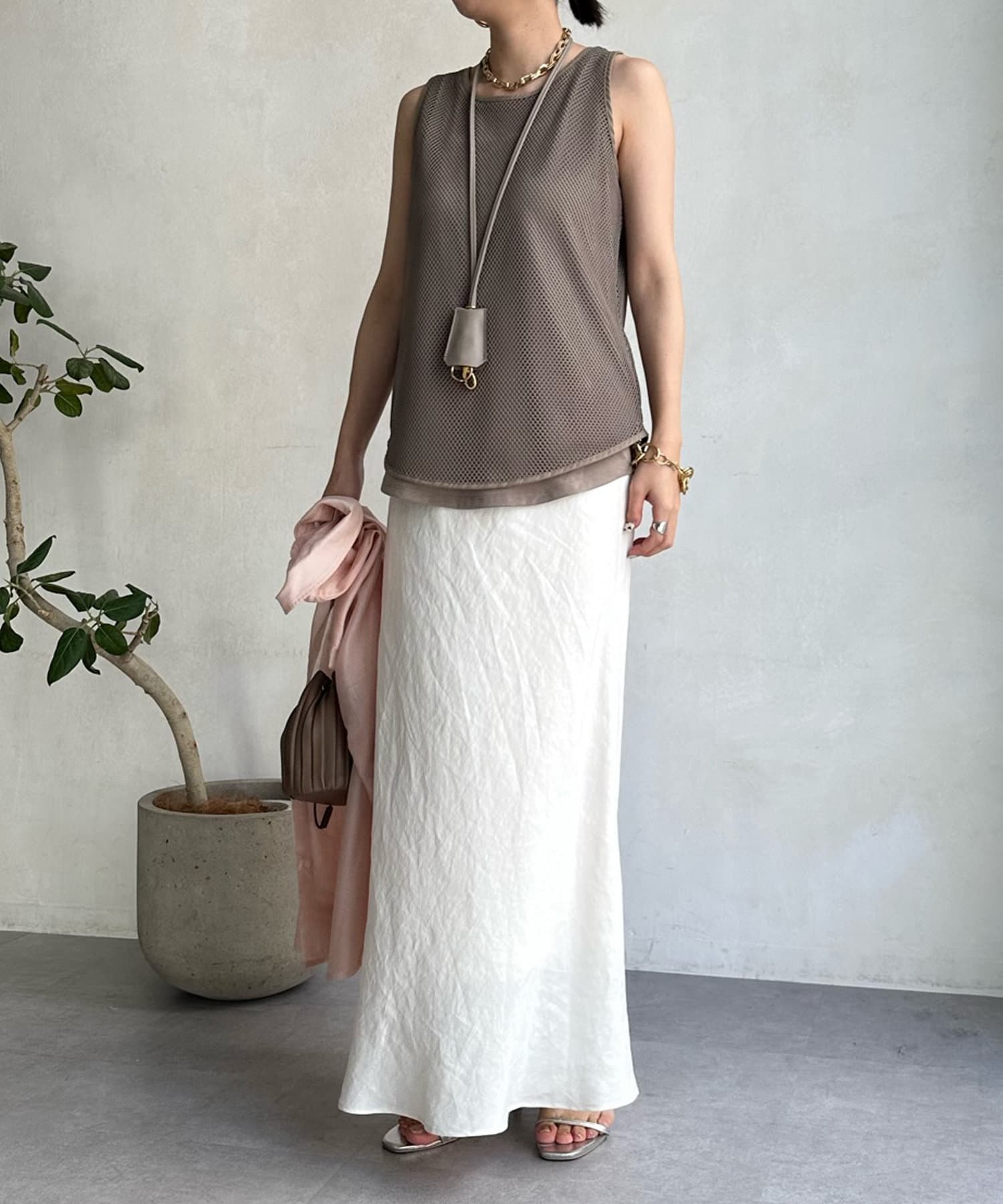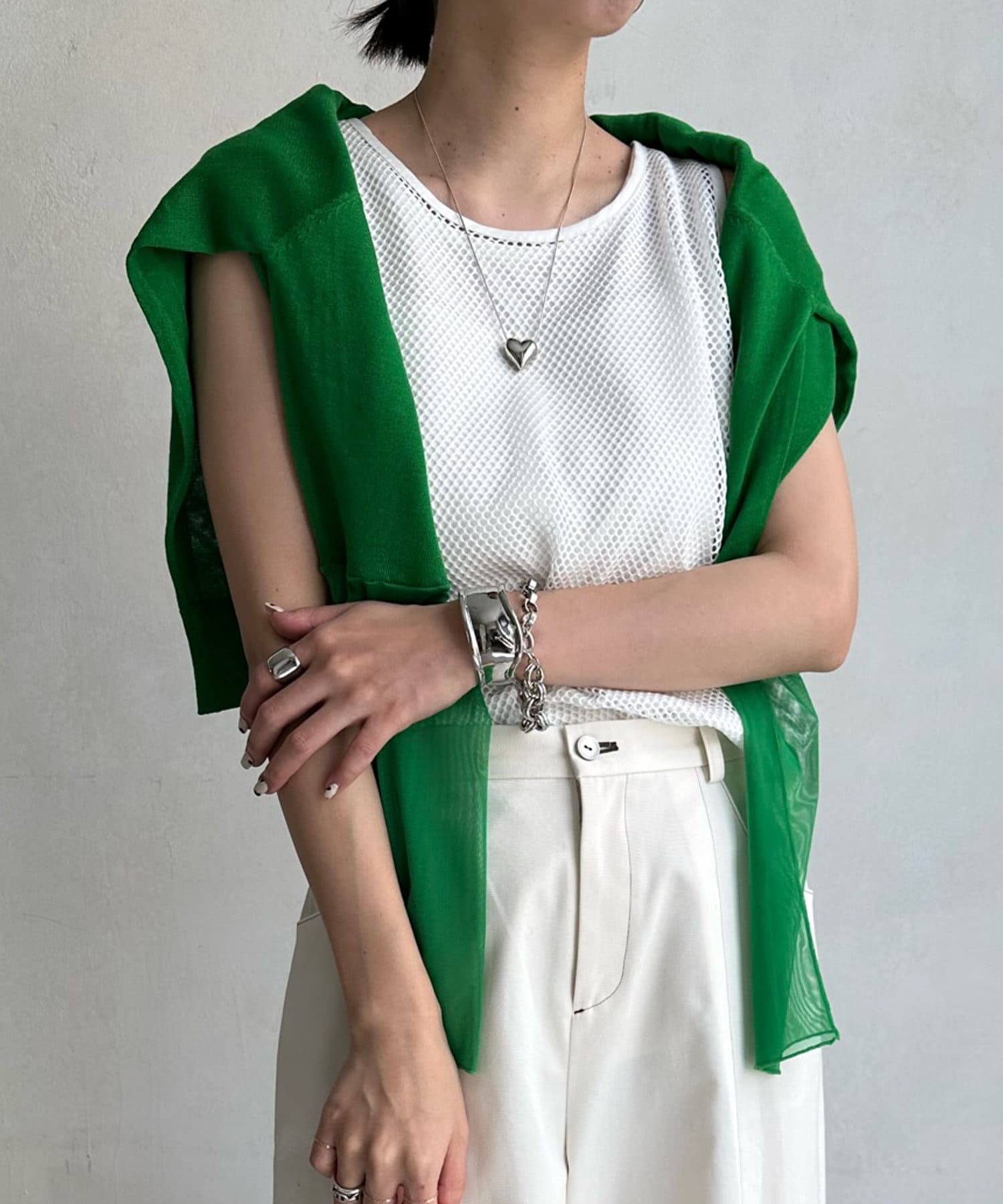 1枚で簡単におしゃれなレイヤードが完成する夏取り入れたいメッシュタンク。