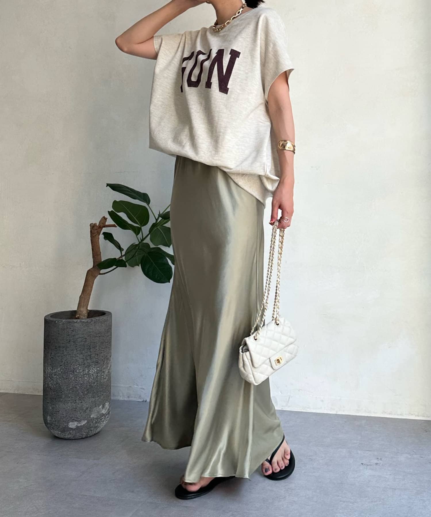 パンツスタイルでカジュアルに、スカート合わせで少し甘め要素とミックスするのも素敵ですよ。