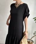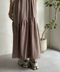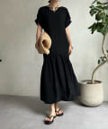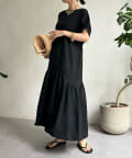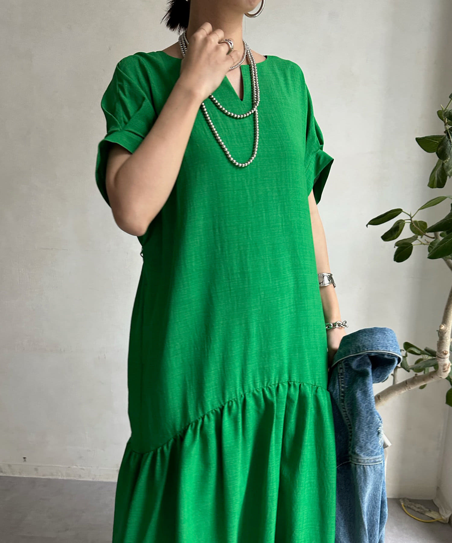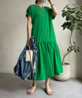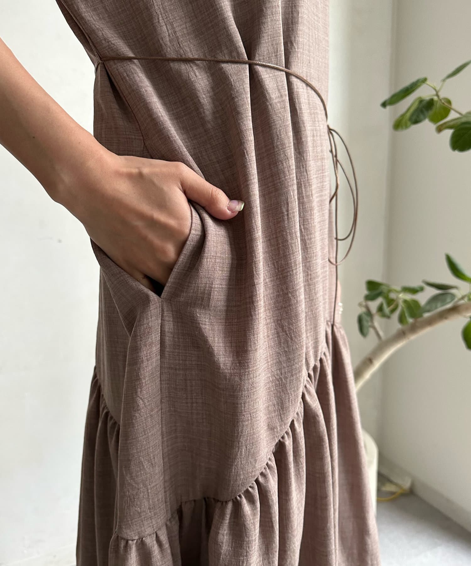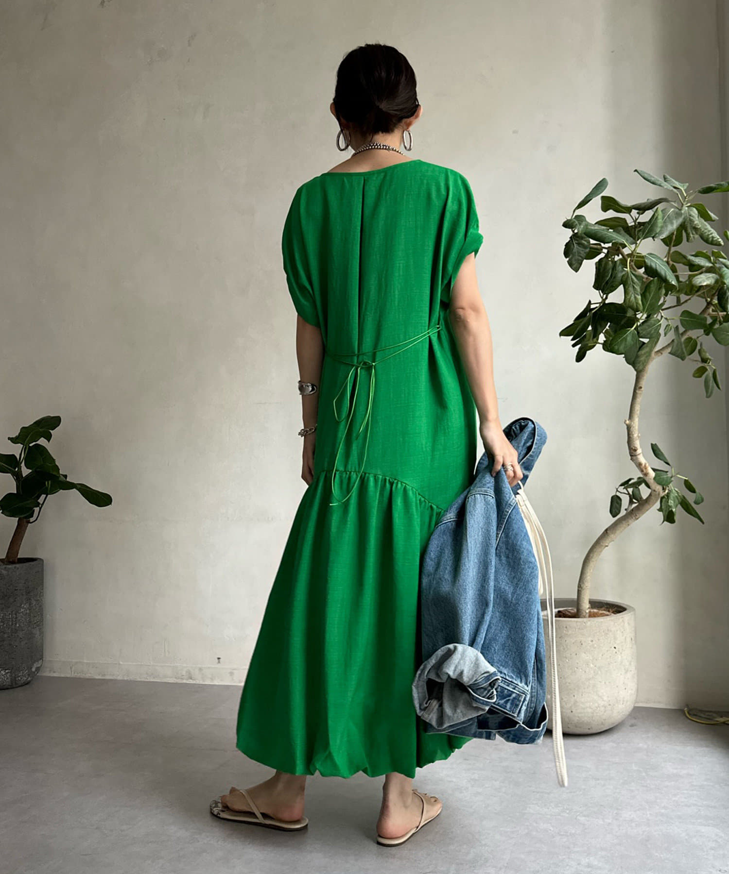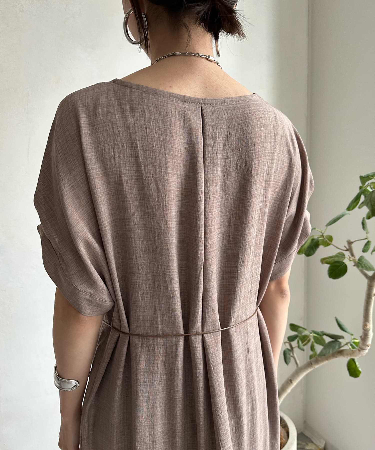 ウエストに付いている紐でワンピースのシルエットを変えてお楽しみいただけます!ボディーラインを拾わずノンストレスで軽い着心地なので夏も快適に過ごせますよ◎