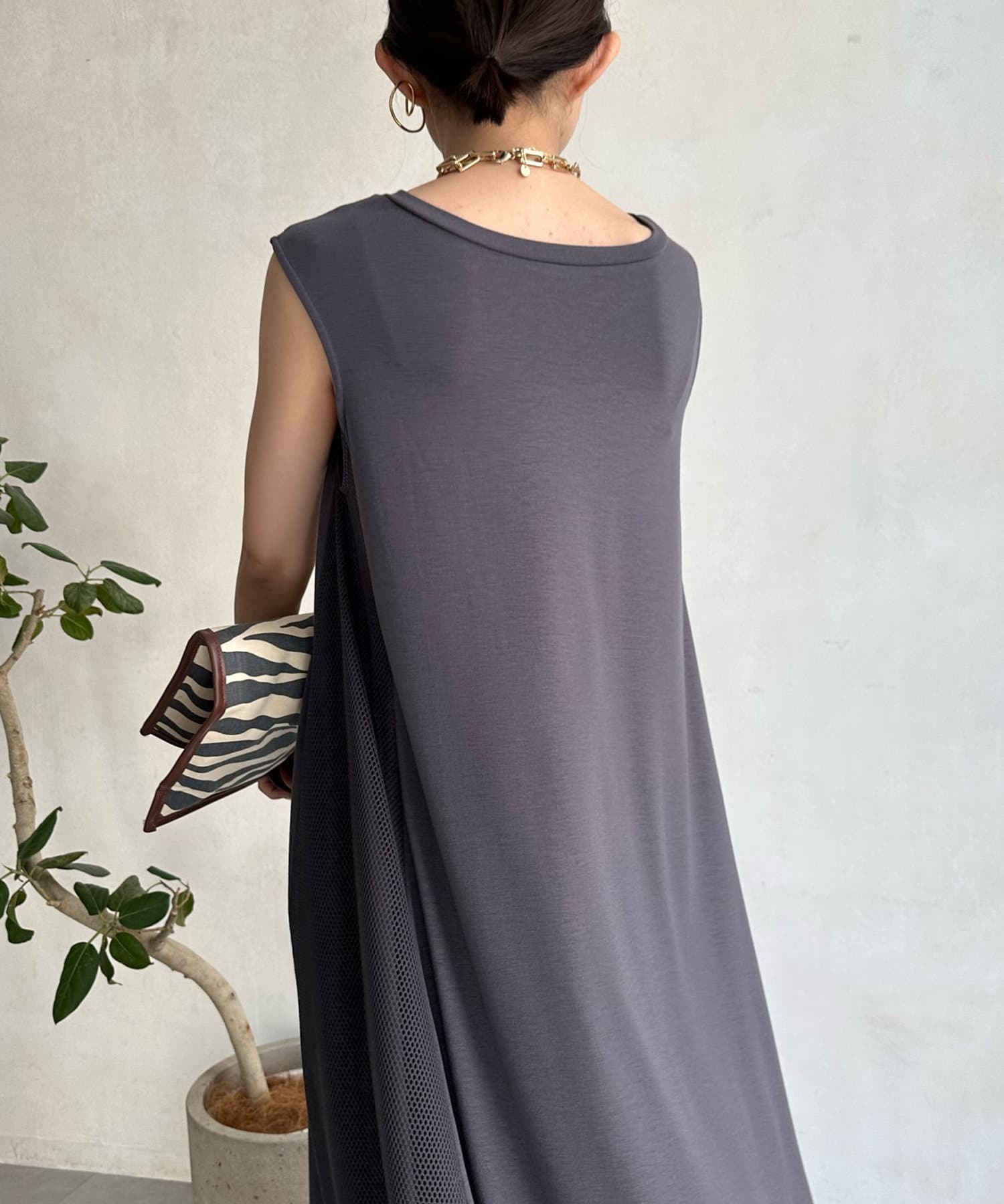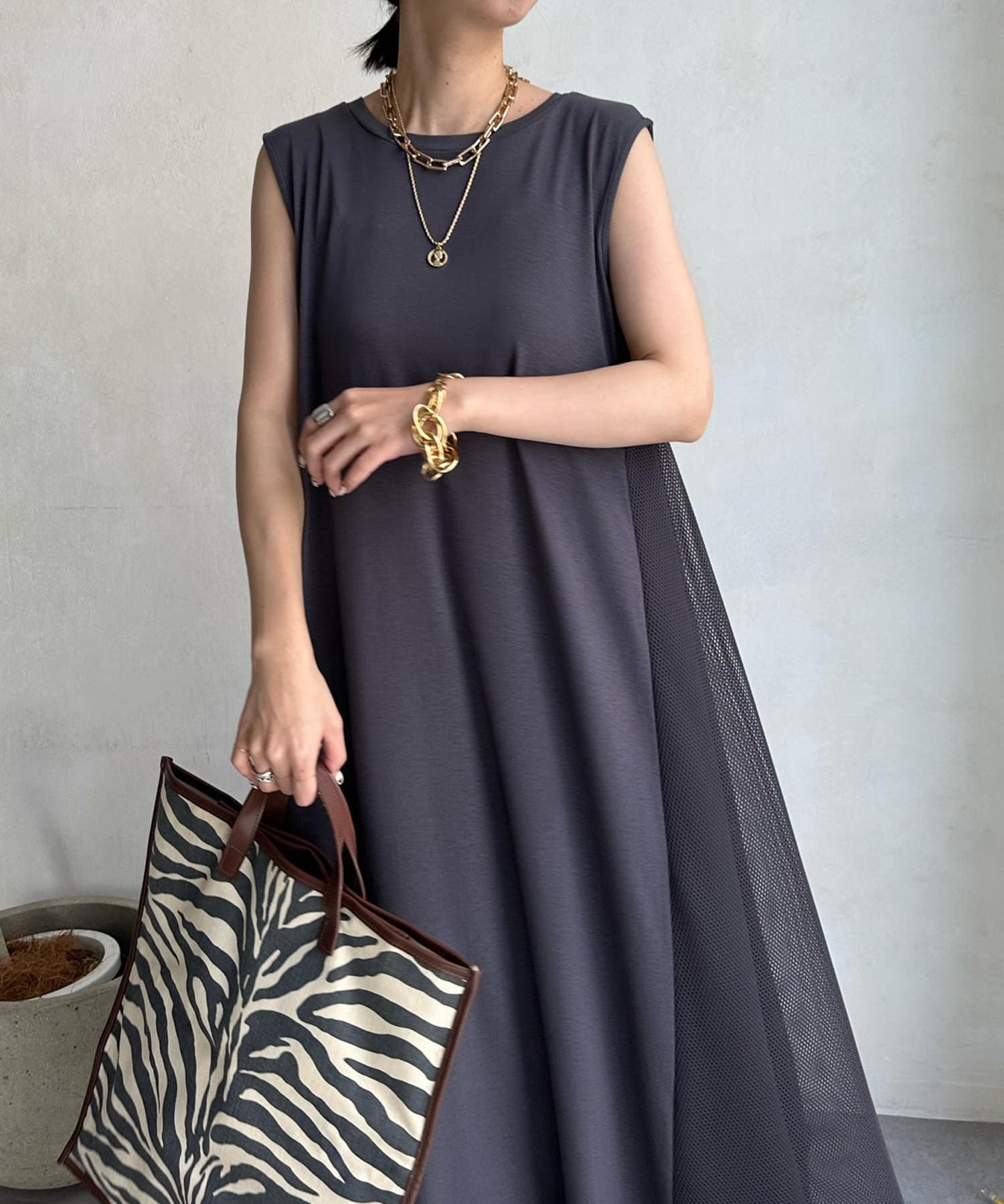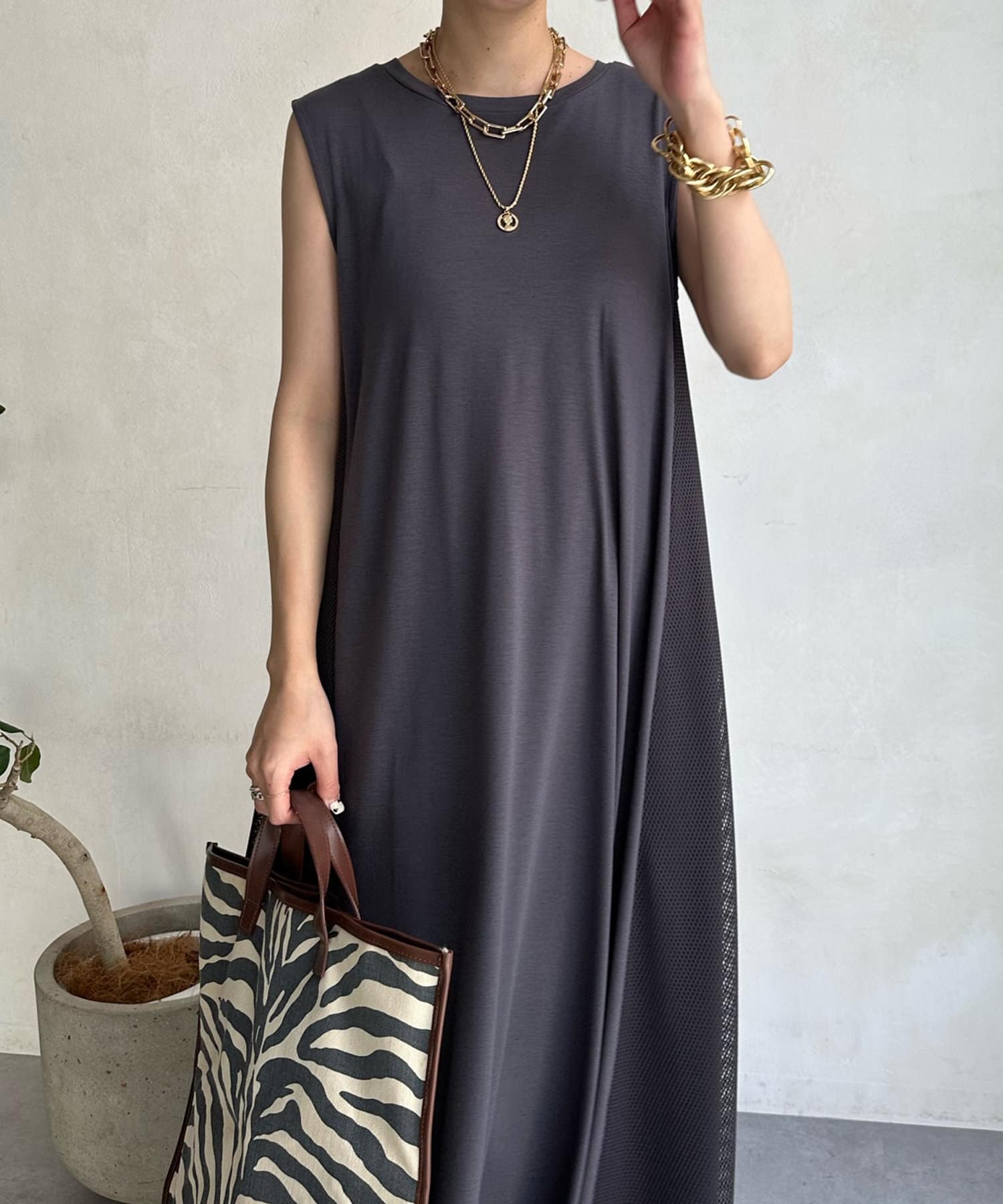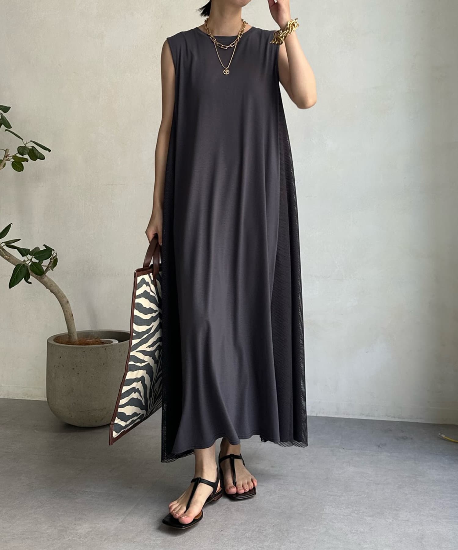 メッシュデザインと落ち感のあるシルエットがポイントのワンピースが登場。