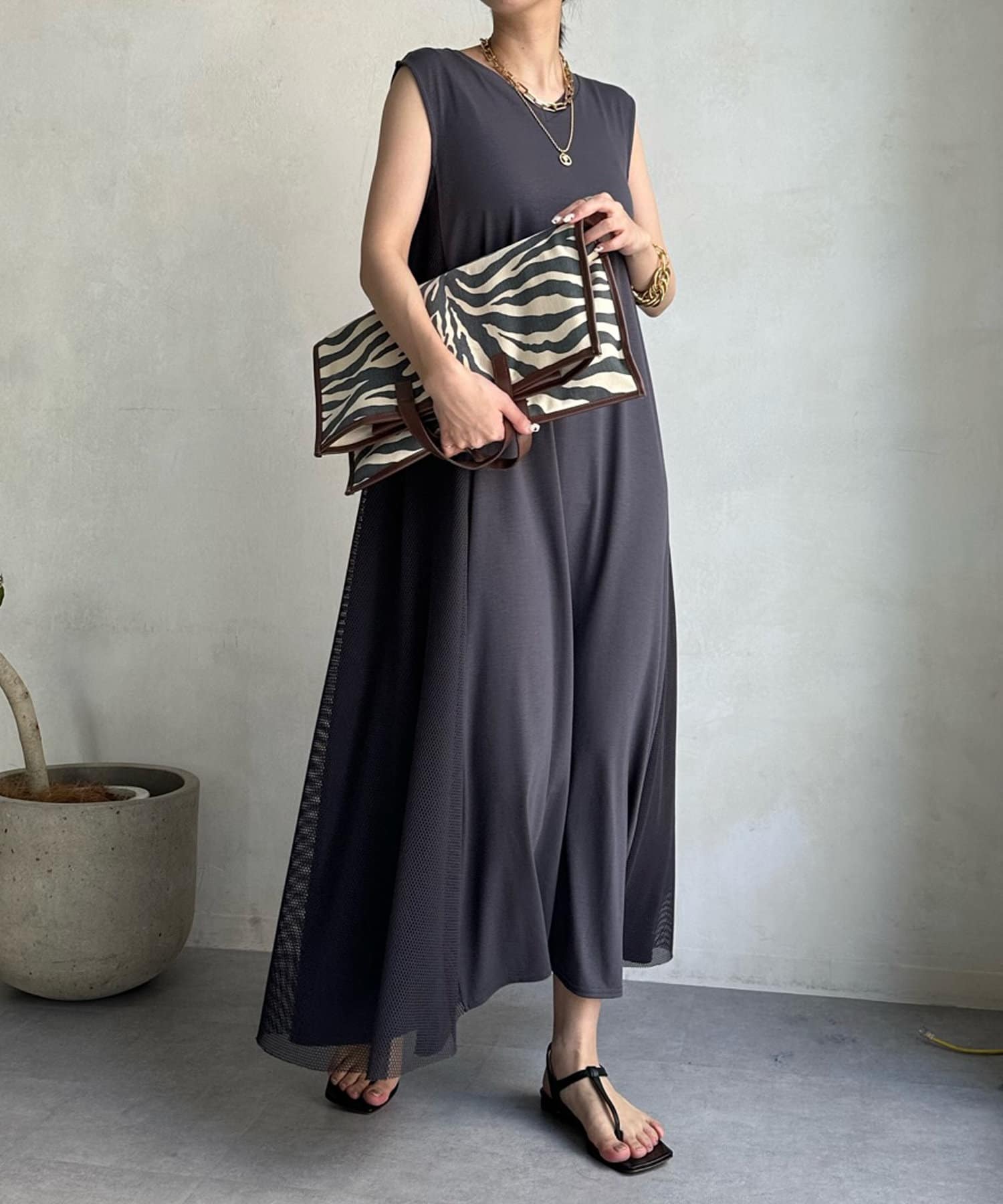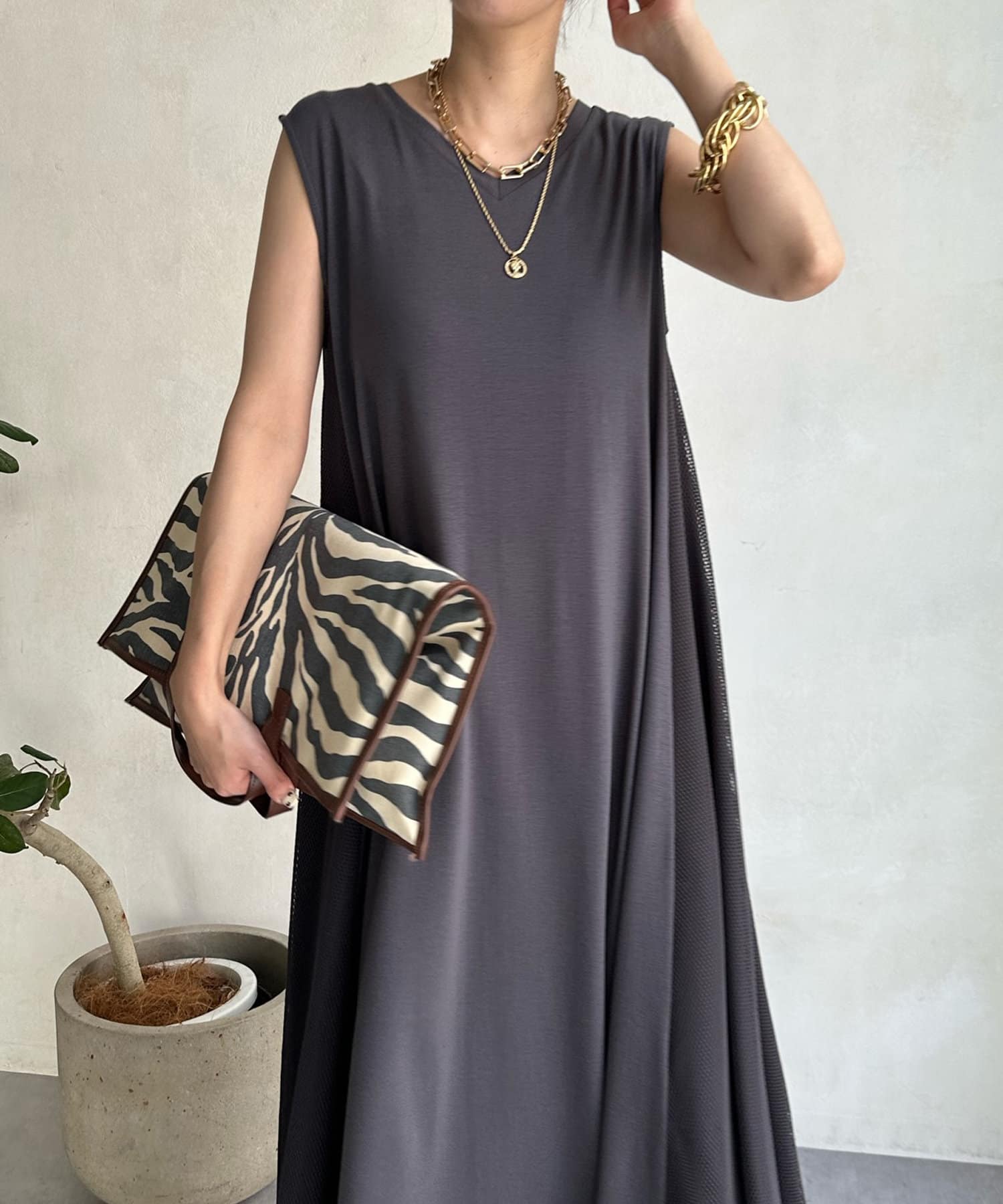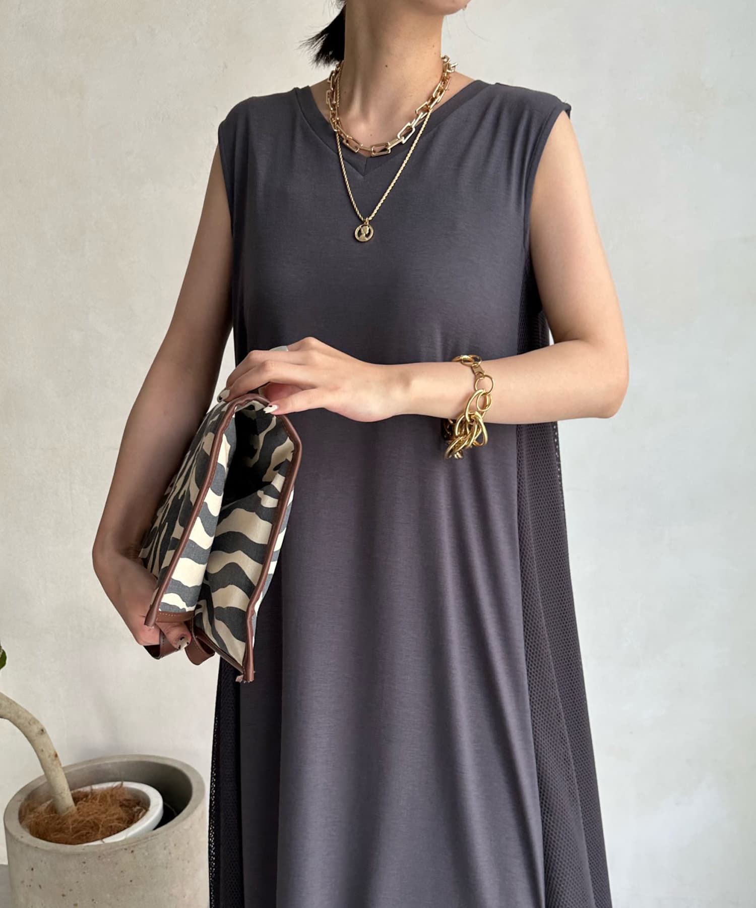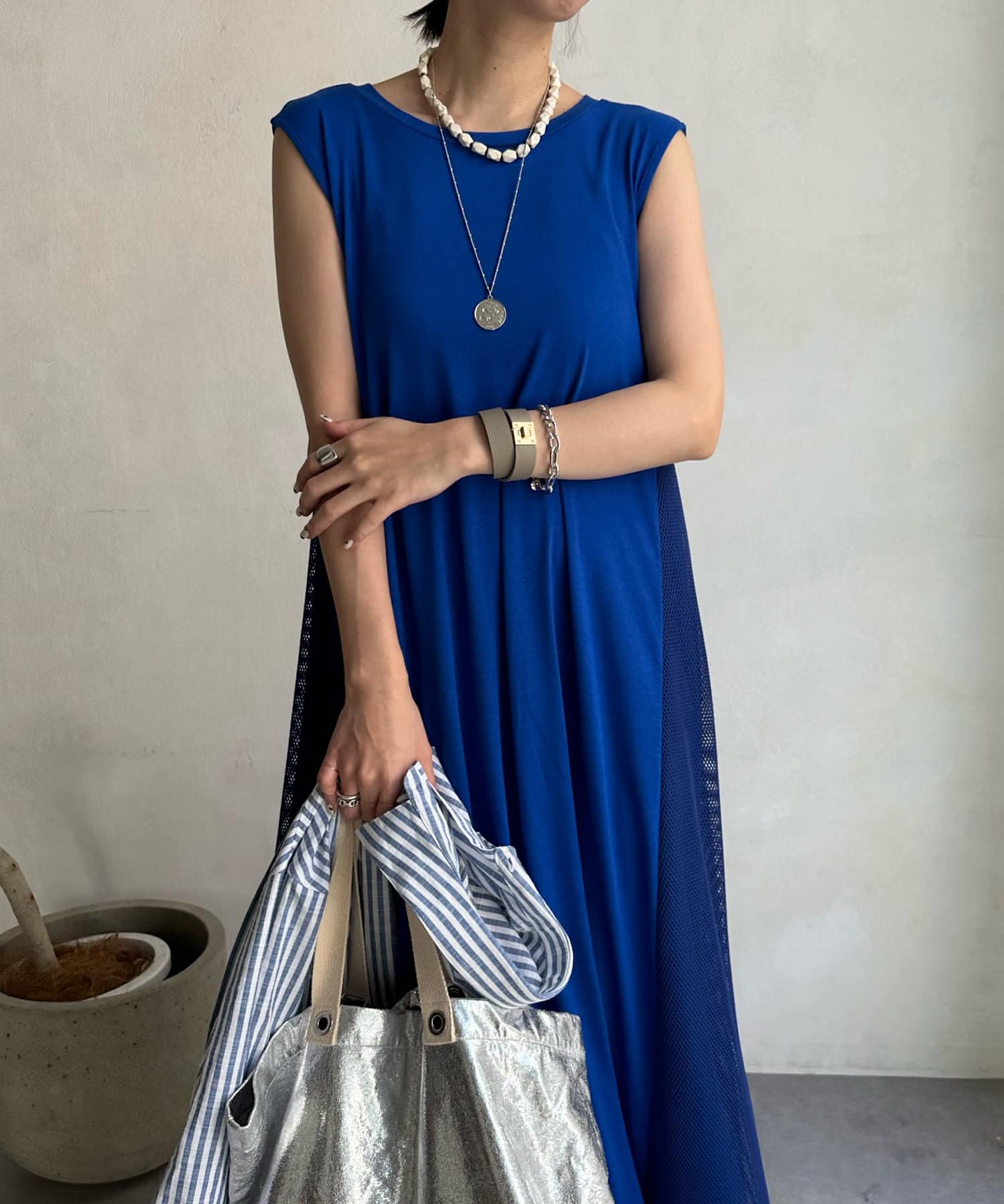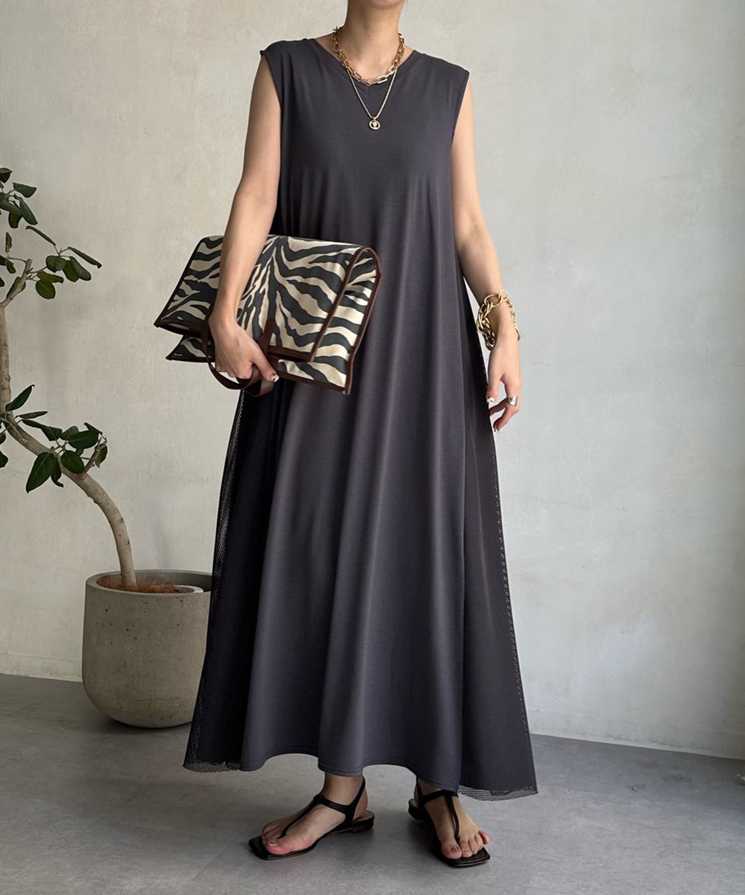 メッシュデザインと落ち感のあるシルエットがポイントのワンピースが登場。