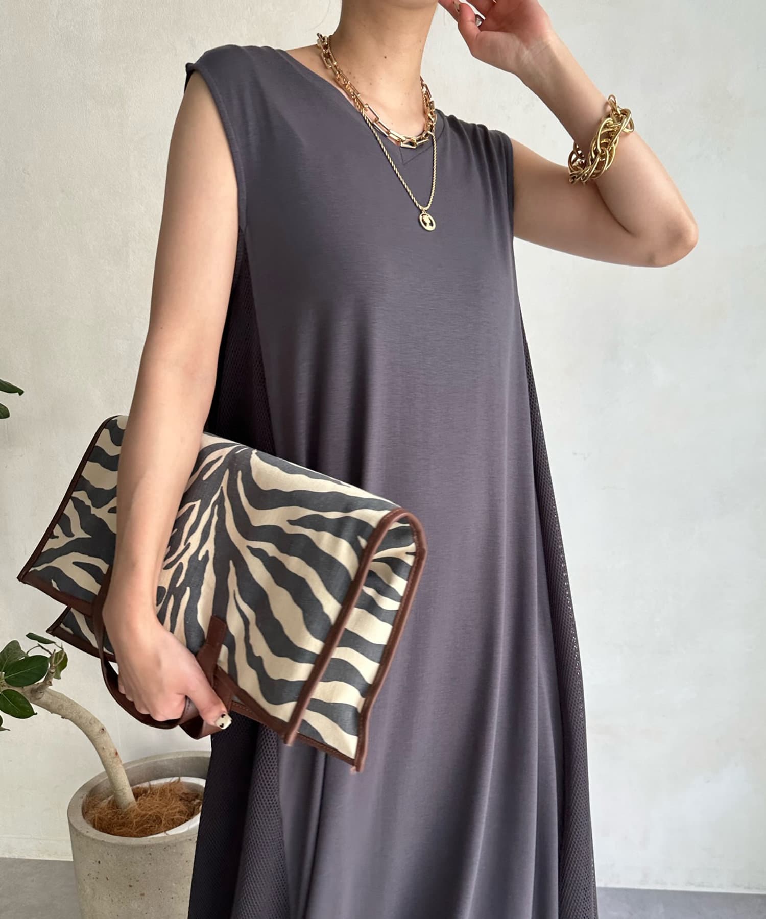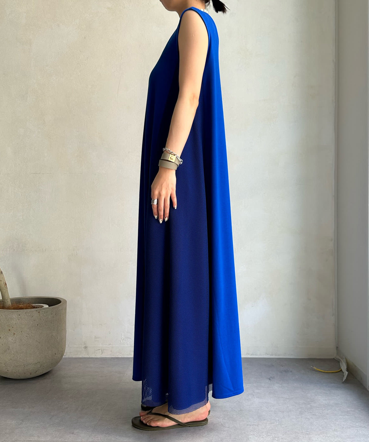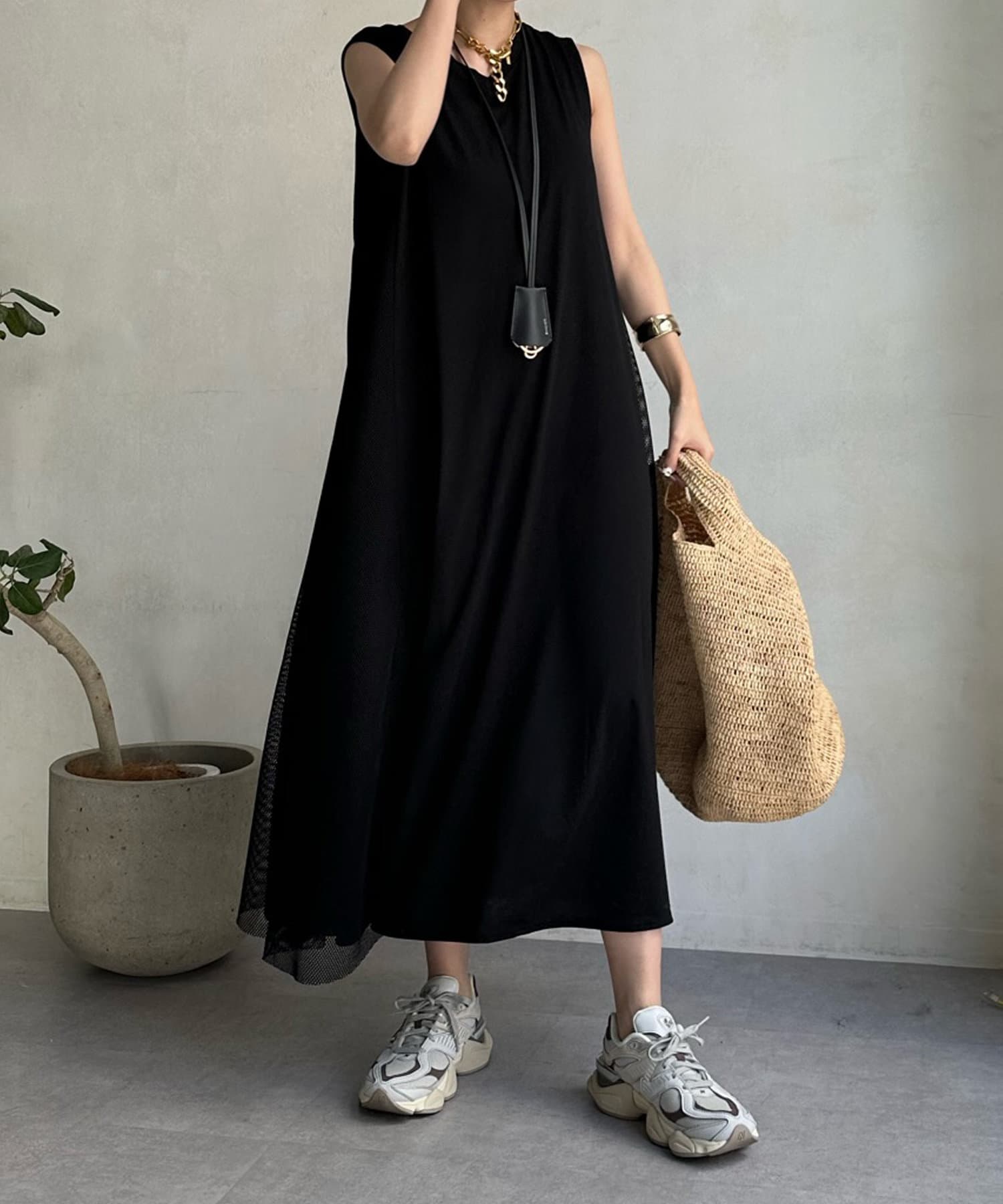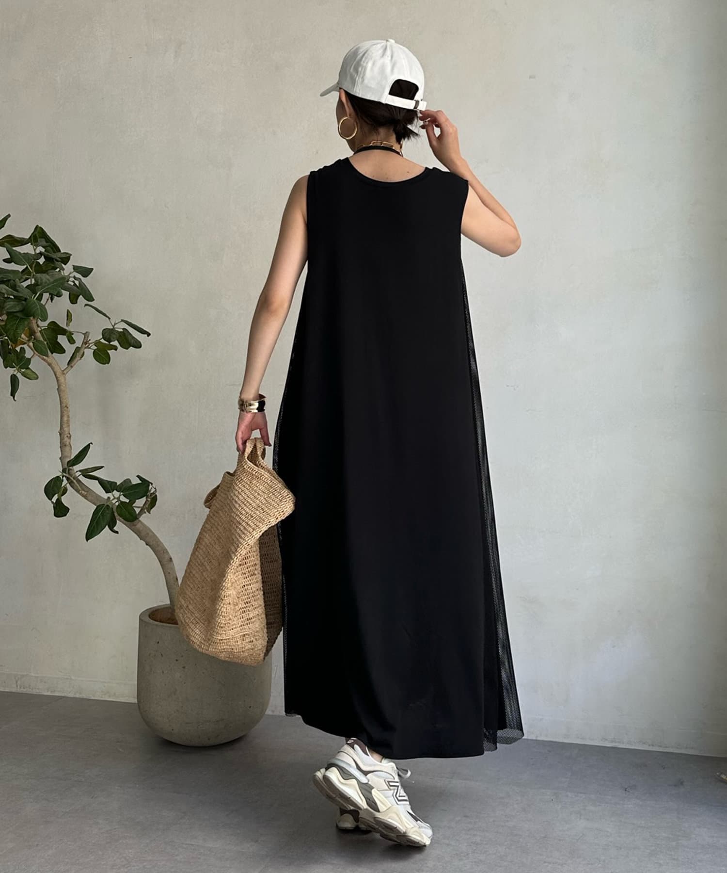 メッシュデザインと落ち感のあるシルエットがポイントのワンピースが登場。