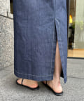 広がりすぎず、すっきりとしたシルエットながら、ウエスト部分に開きがあるデザインとバックスリットがコーデに抜け感をプラス。