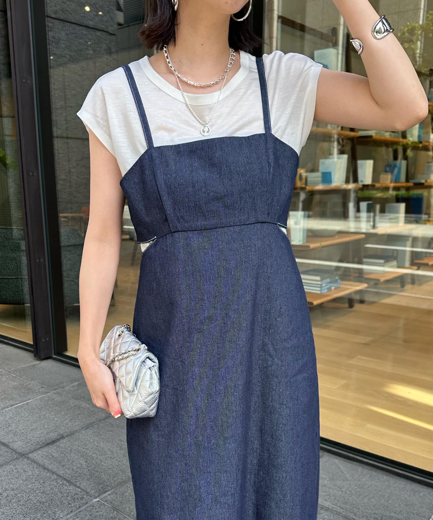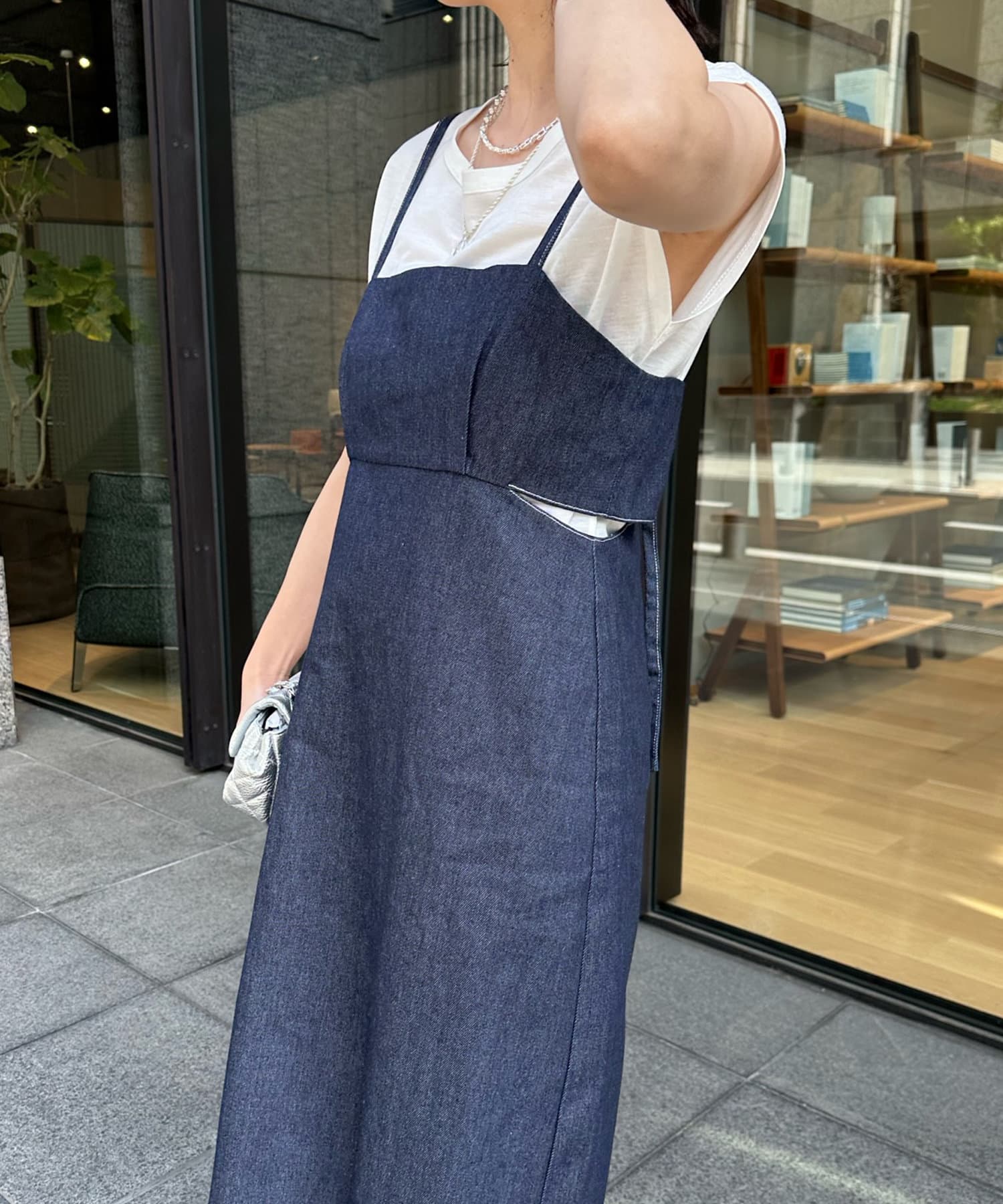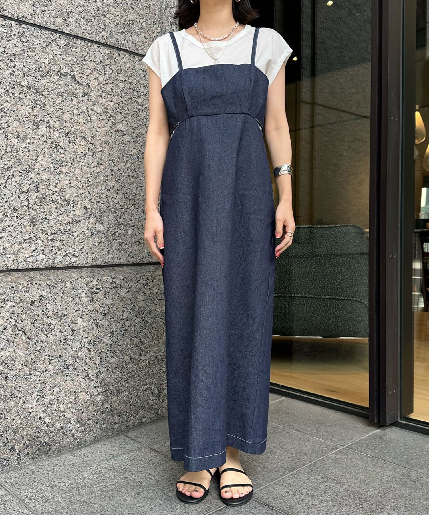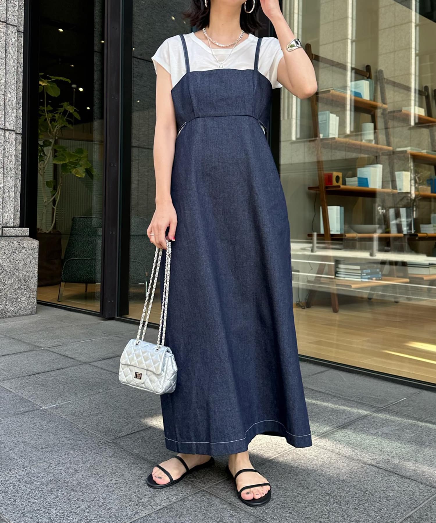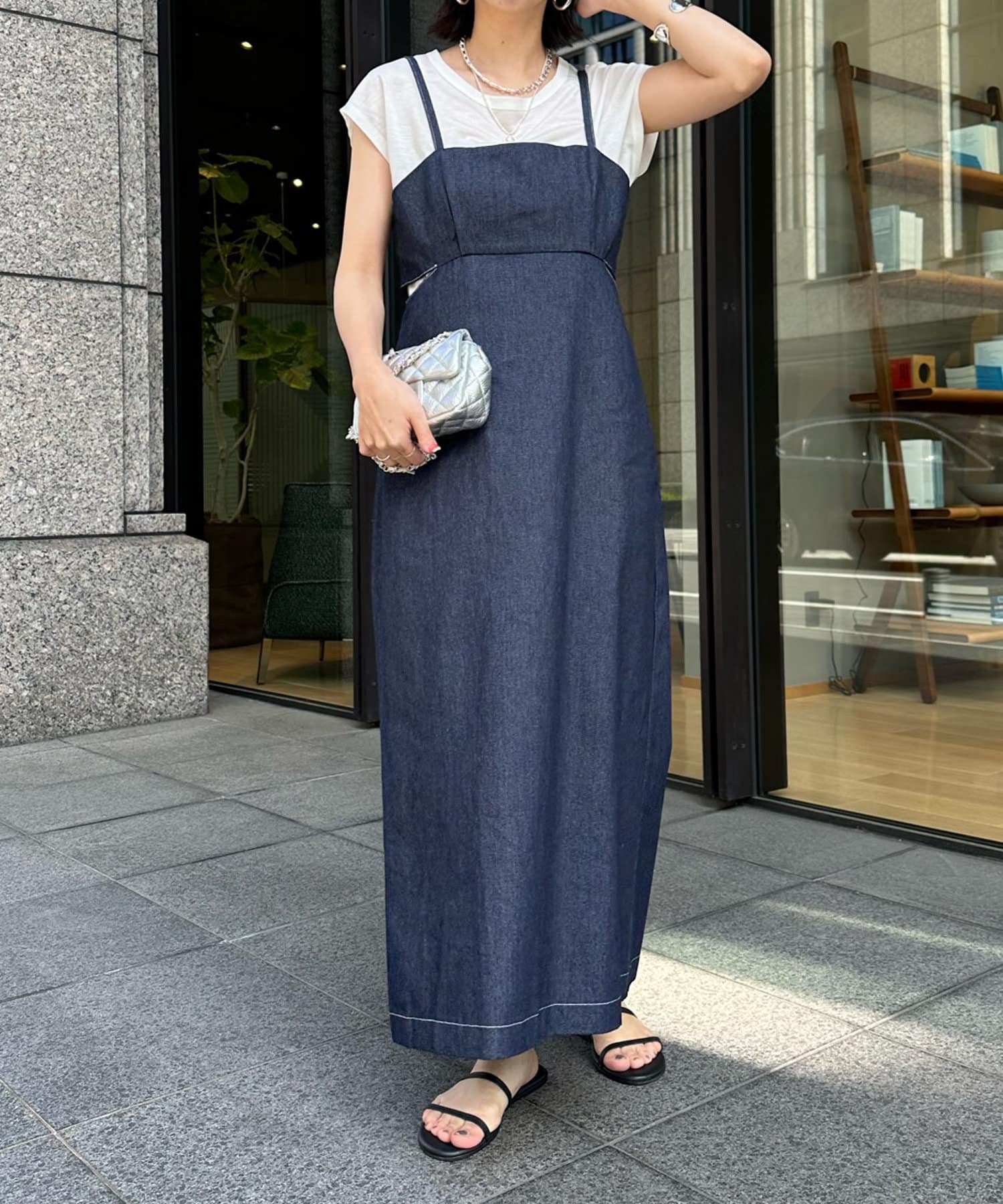 夏コーディネートの主役にぴったりのデニムキャミワンピ。