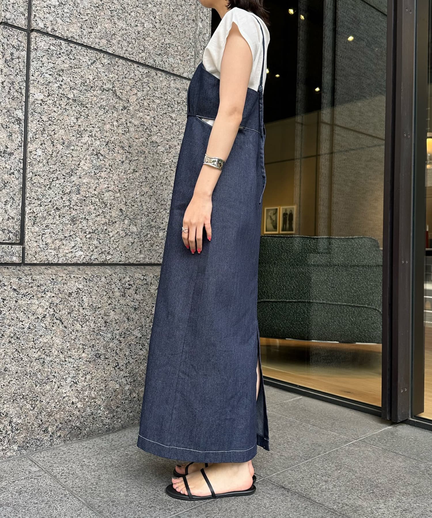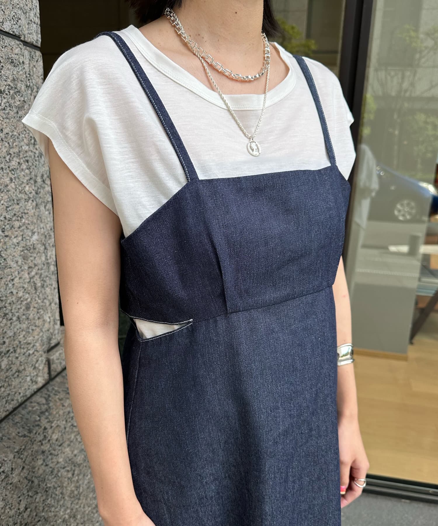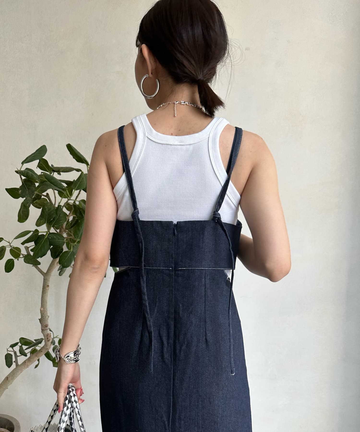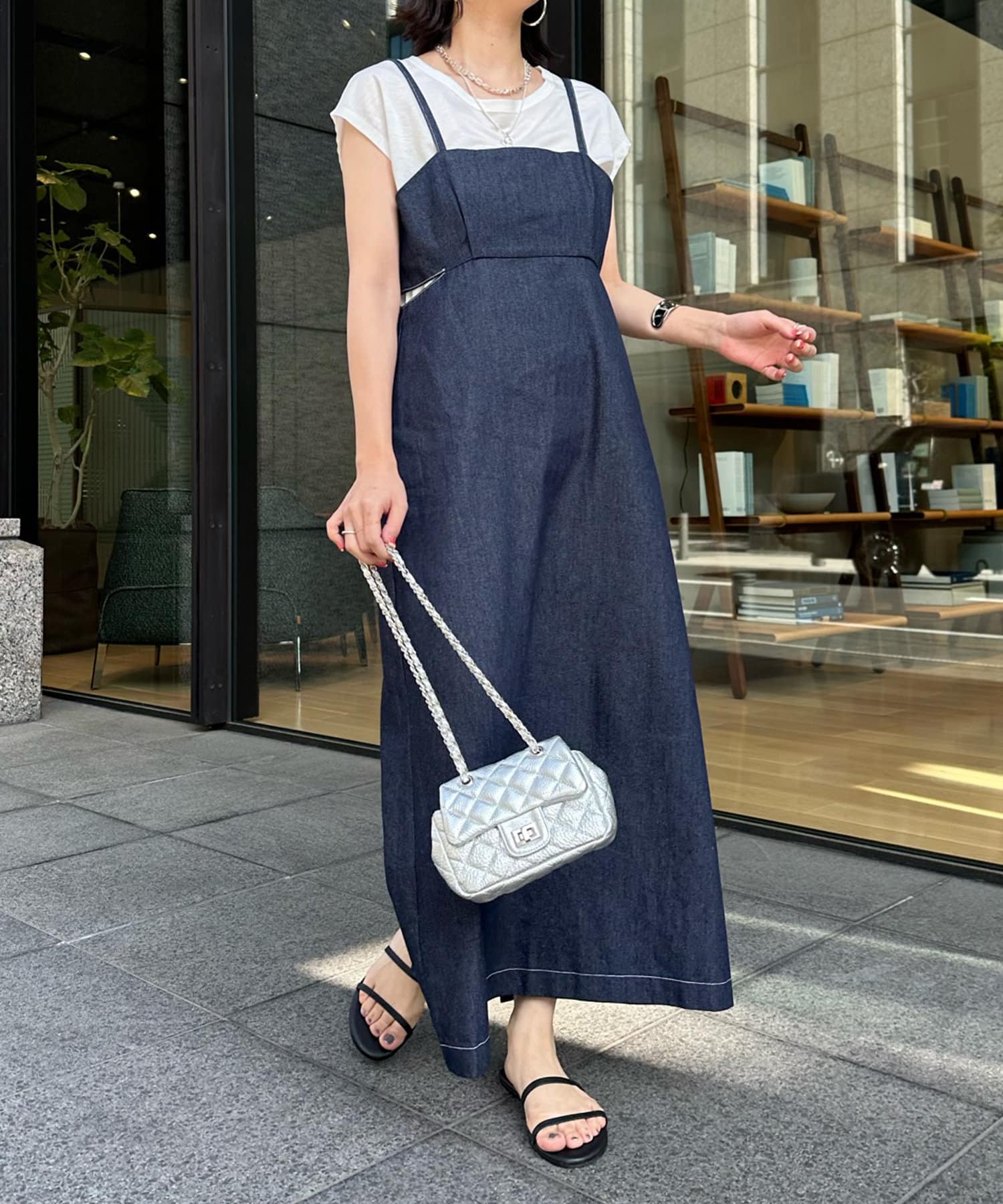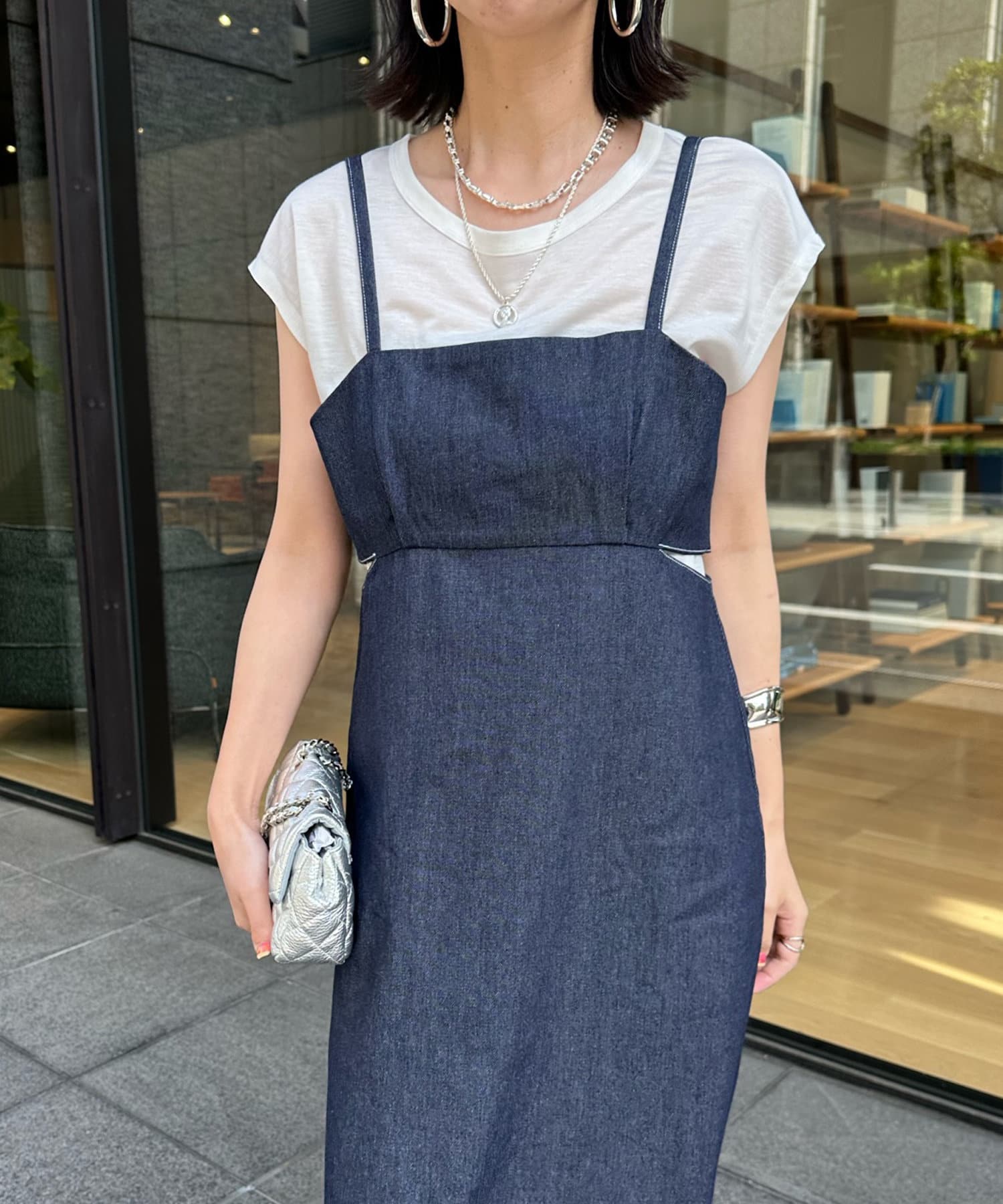 夏コーディネートの主役にぴったりのデニムキャミワンピ。