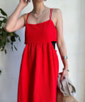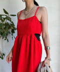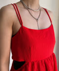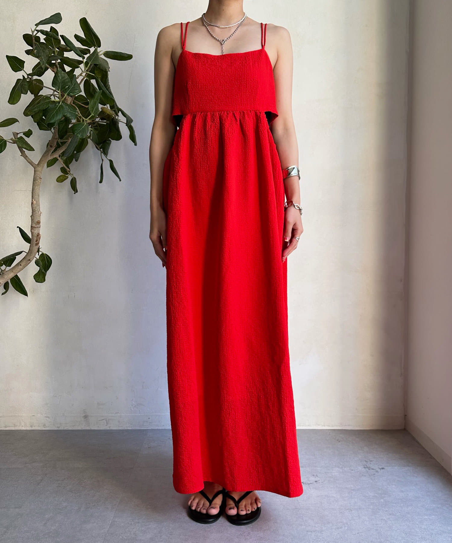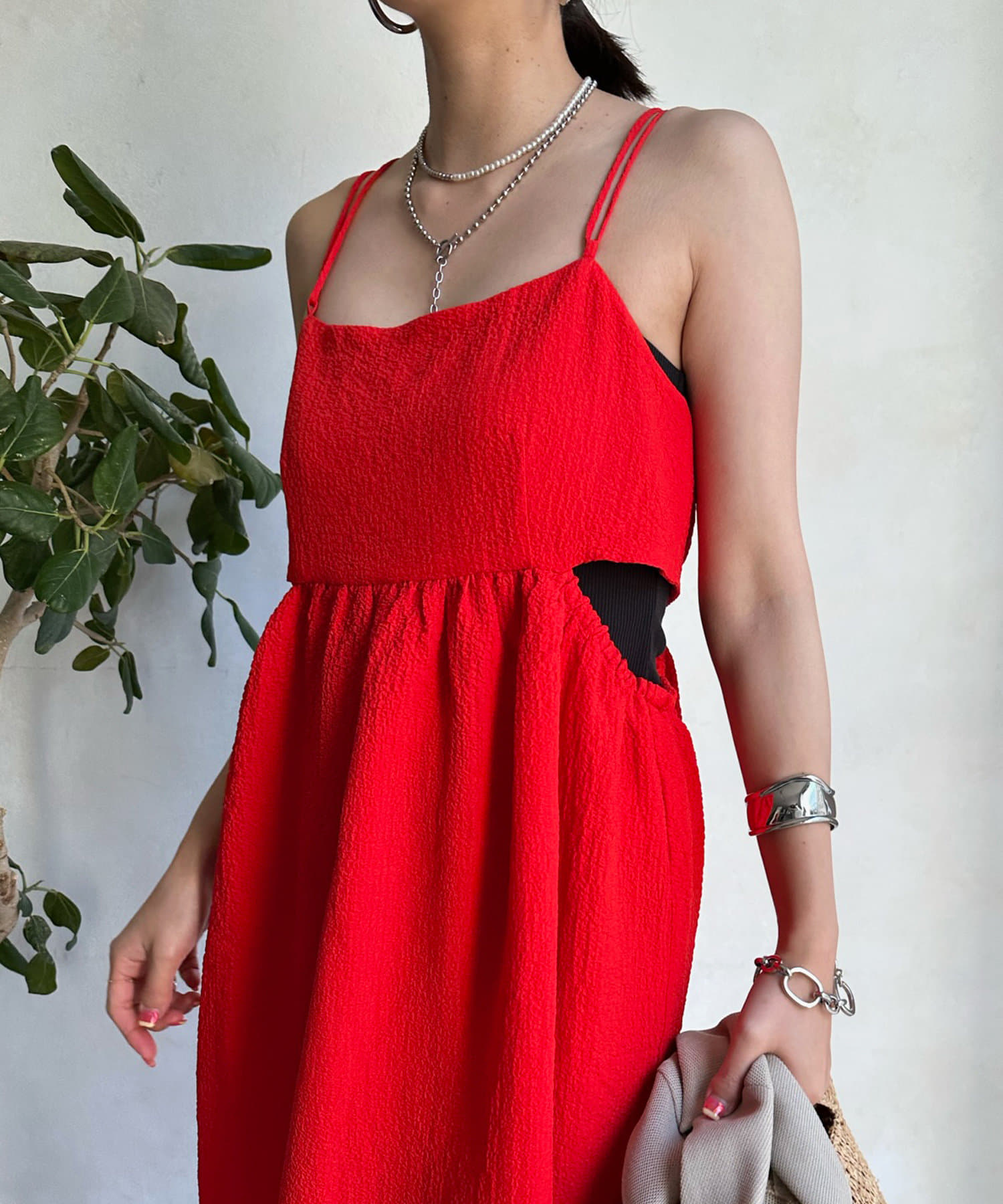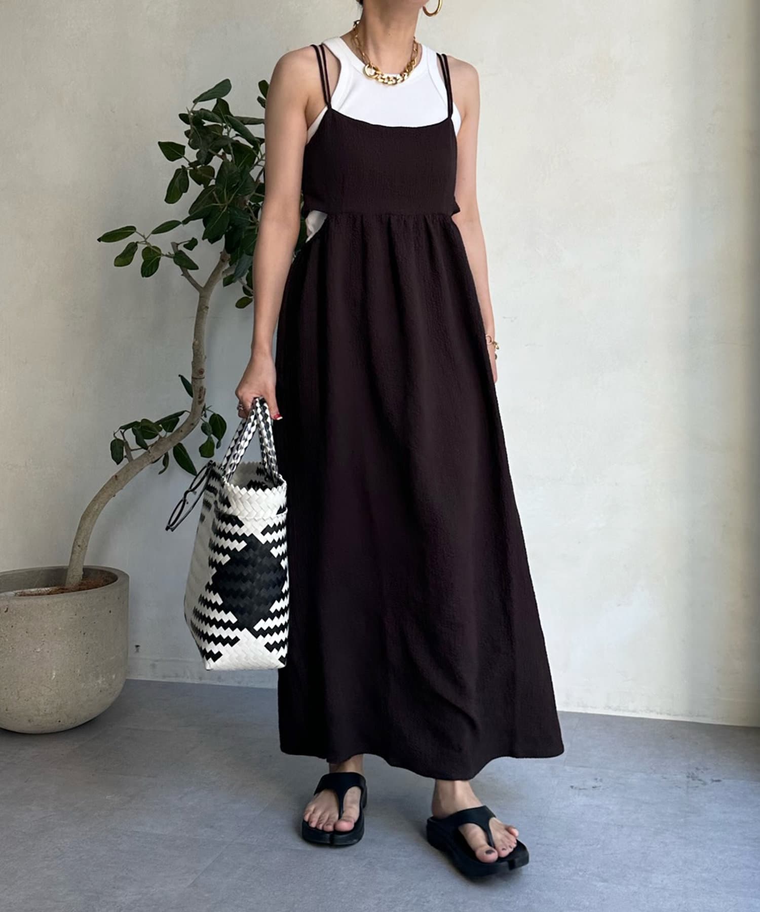 サイドの開きとクロスになった肩紐で、デザインの魅力がたっぷり。
